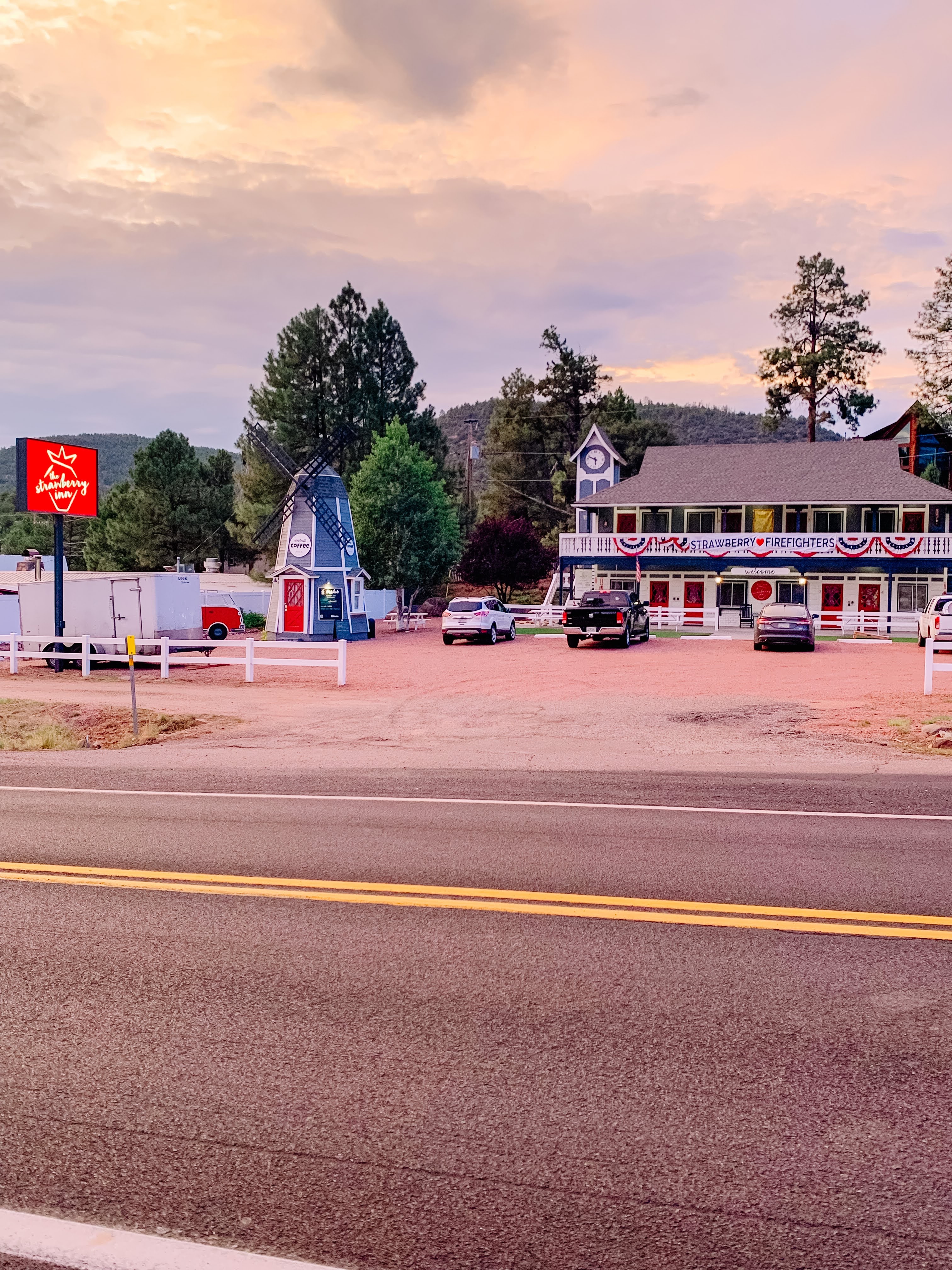 Our retro/Americana themed “micro wedding” was on July 1st, heading into the 4th of July weekend. So our little “mini moon” landed squarely for 4th of July weekend, and we spent it in the most quaint little town(s) of Strawberry and Pine AZ. (Our hotel was in Strawberry but it’s smack dab next to Pine, AZ. So I consider them a package deal lol.)