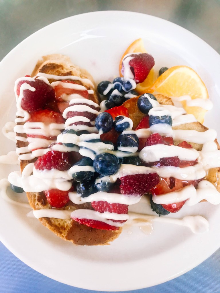 Their special for the morning was red, white, and blue French toast. We also ordered the homemade root beer.
