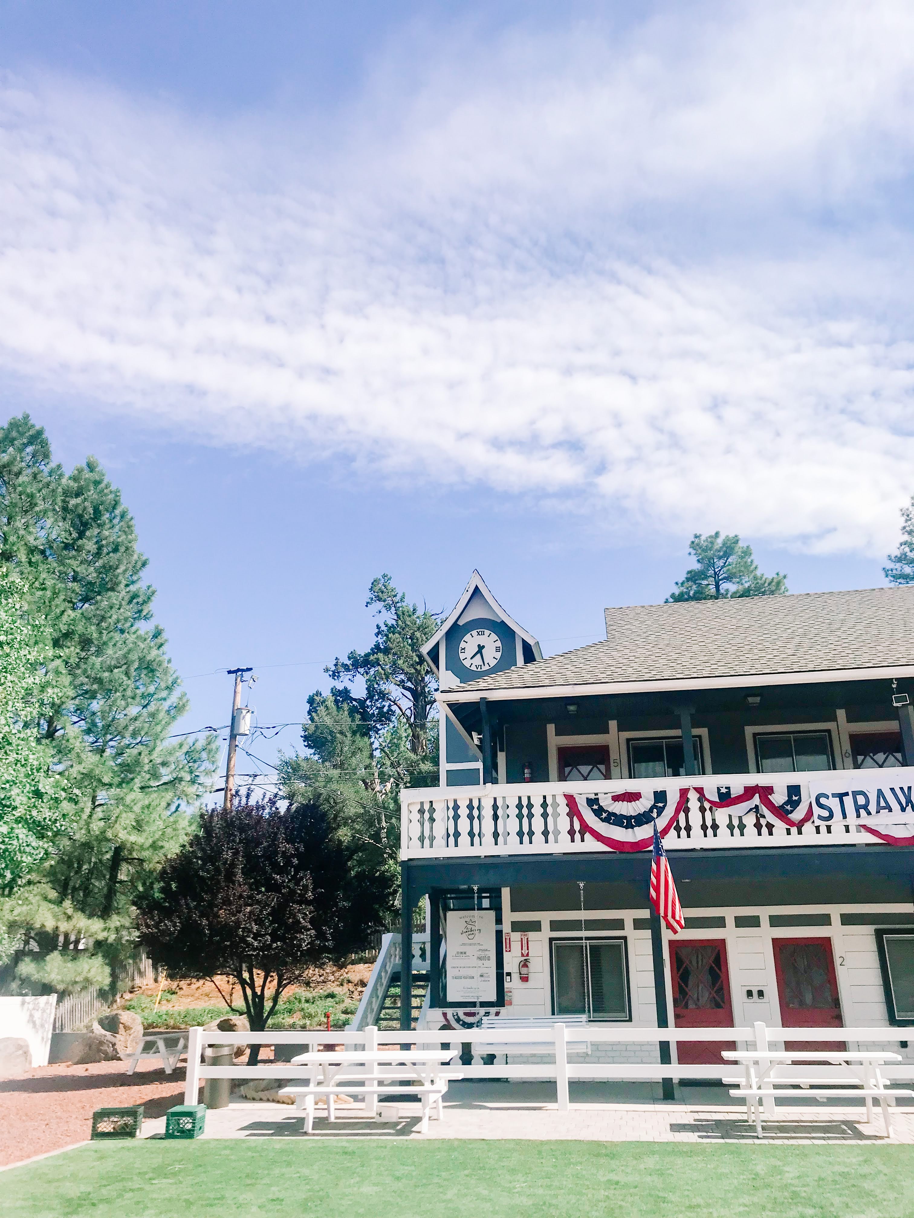 Strawberry and Pine are, excuse my silly giddiness, cuuuuuuuute. Seriously America in a jar–little Mason jars, with red gingham fabric tied with baker’s twine on top that is. Hey! Makes sense to me. But really! There are so many old, and folksy ice cream shops, antique shops, and pretty old houses. It is such a darling place in the Arizona mountains– which to any Arizonian that immediately translates into “perfect summer weather.” It felt so charmingly Americana and Avonlea-ish at the same time.