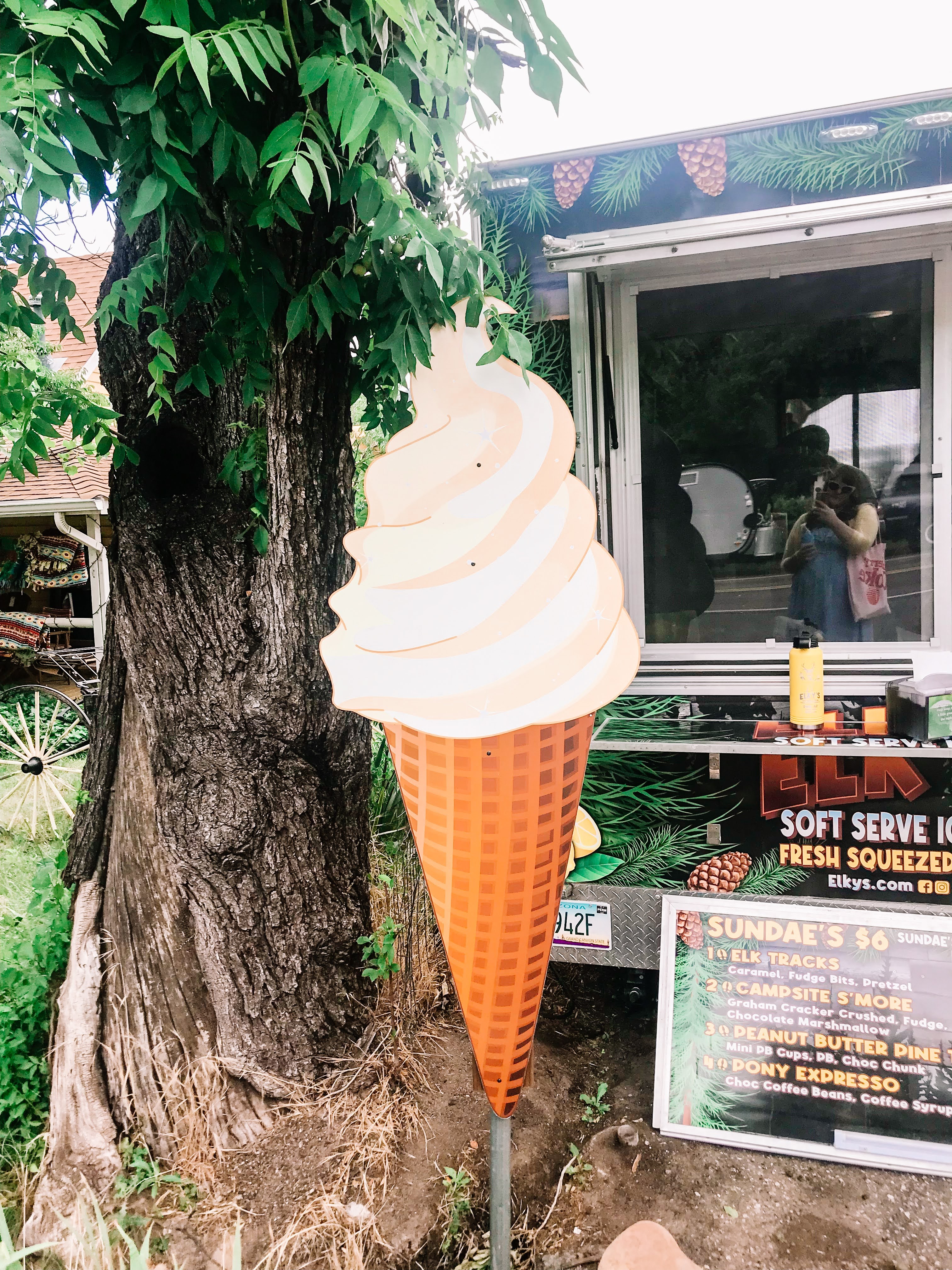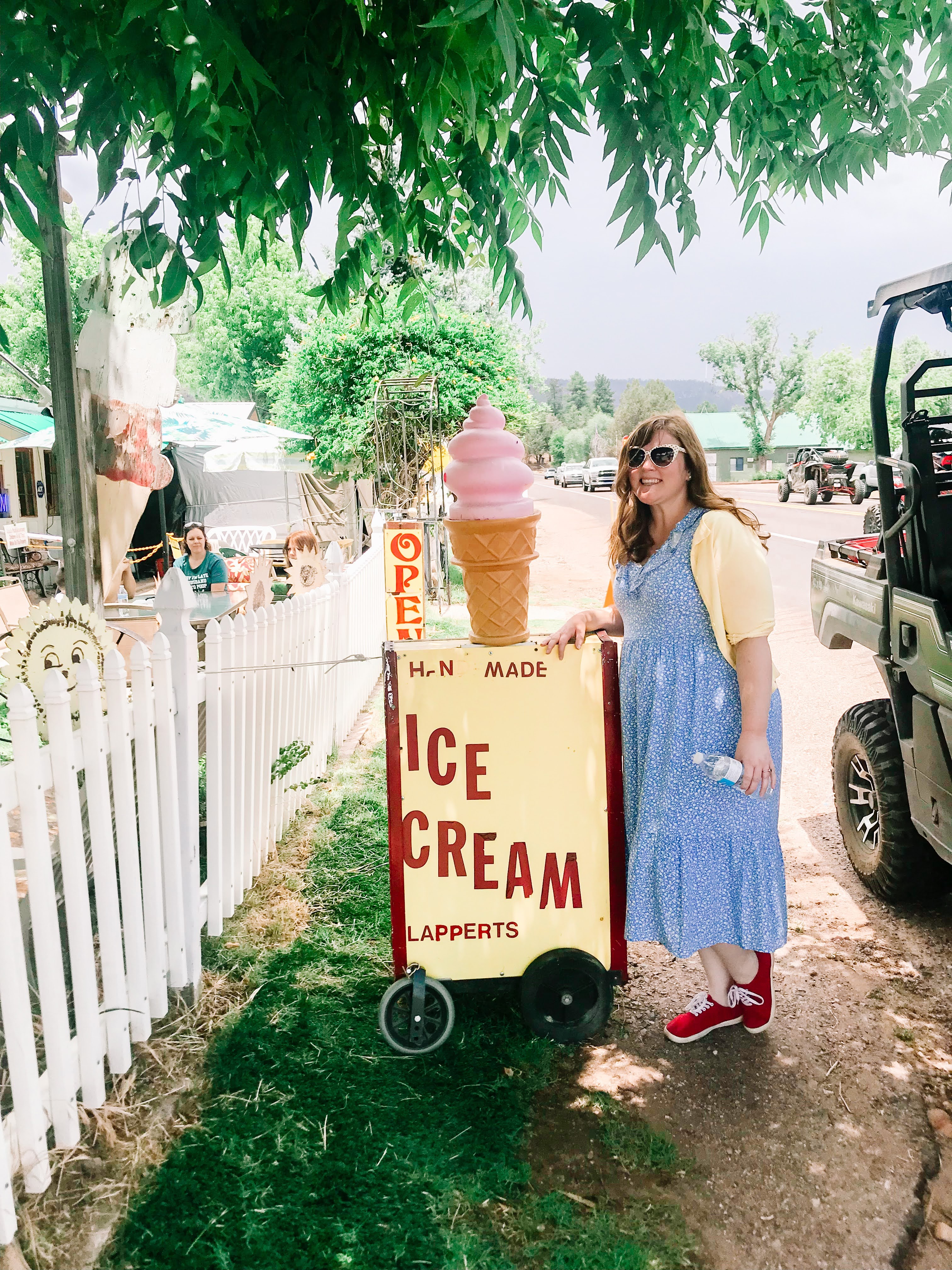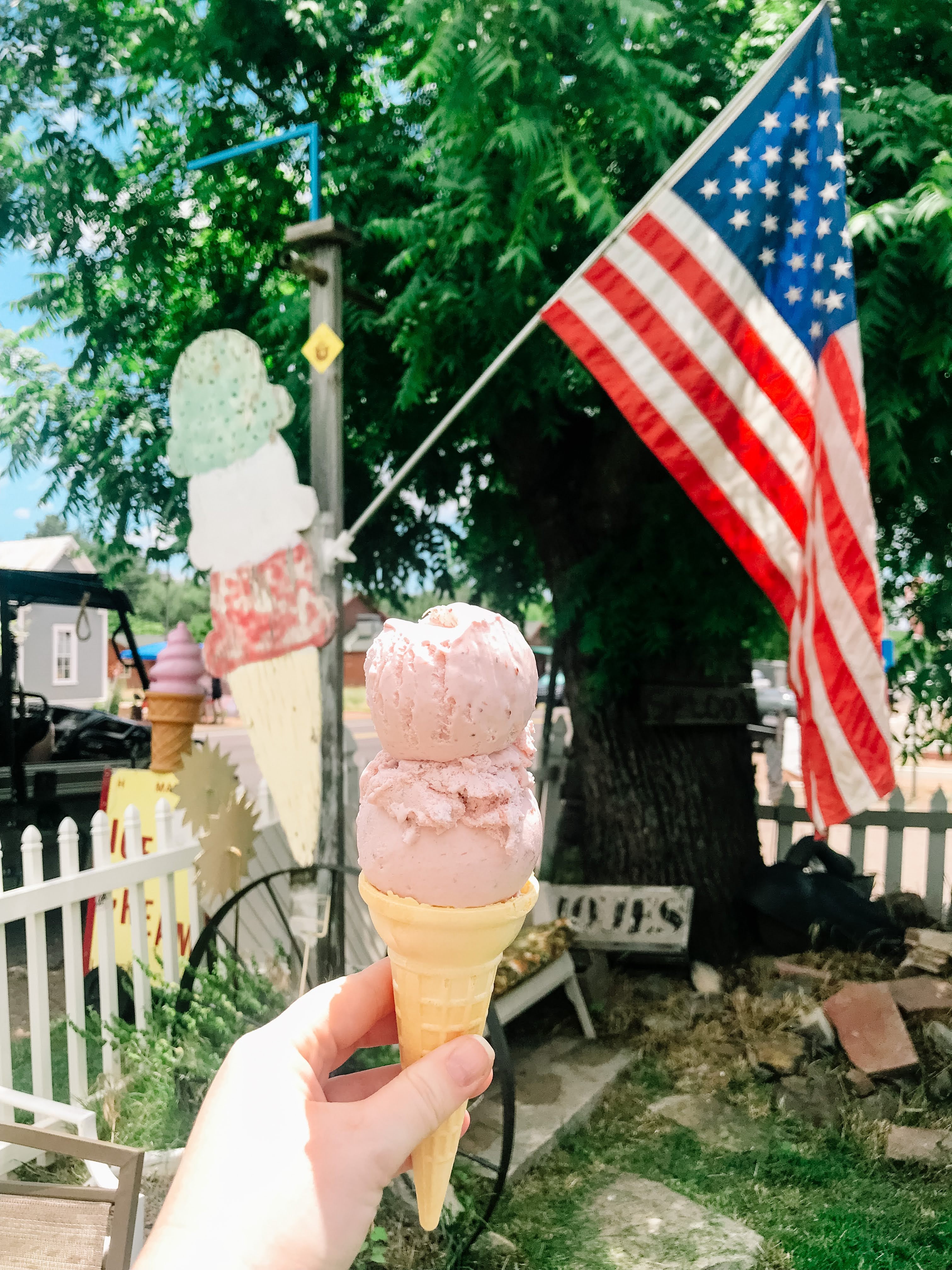 Okay, Pine has QUITE the cute little vintage ice cream scene. Everywhere there was some nostalgic ice cream stand. I gave in and ordered a strawberry ice cream cone. Yes, the strawberry was intentional, like, I HAD to order the homemade strawberry ice cream while we stayed in STRAWBERRY lol. Those kind of quirks drive my mom and sister crazy btw lol.