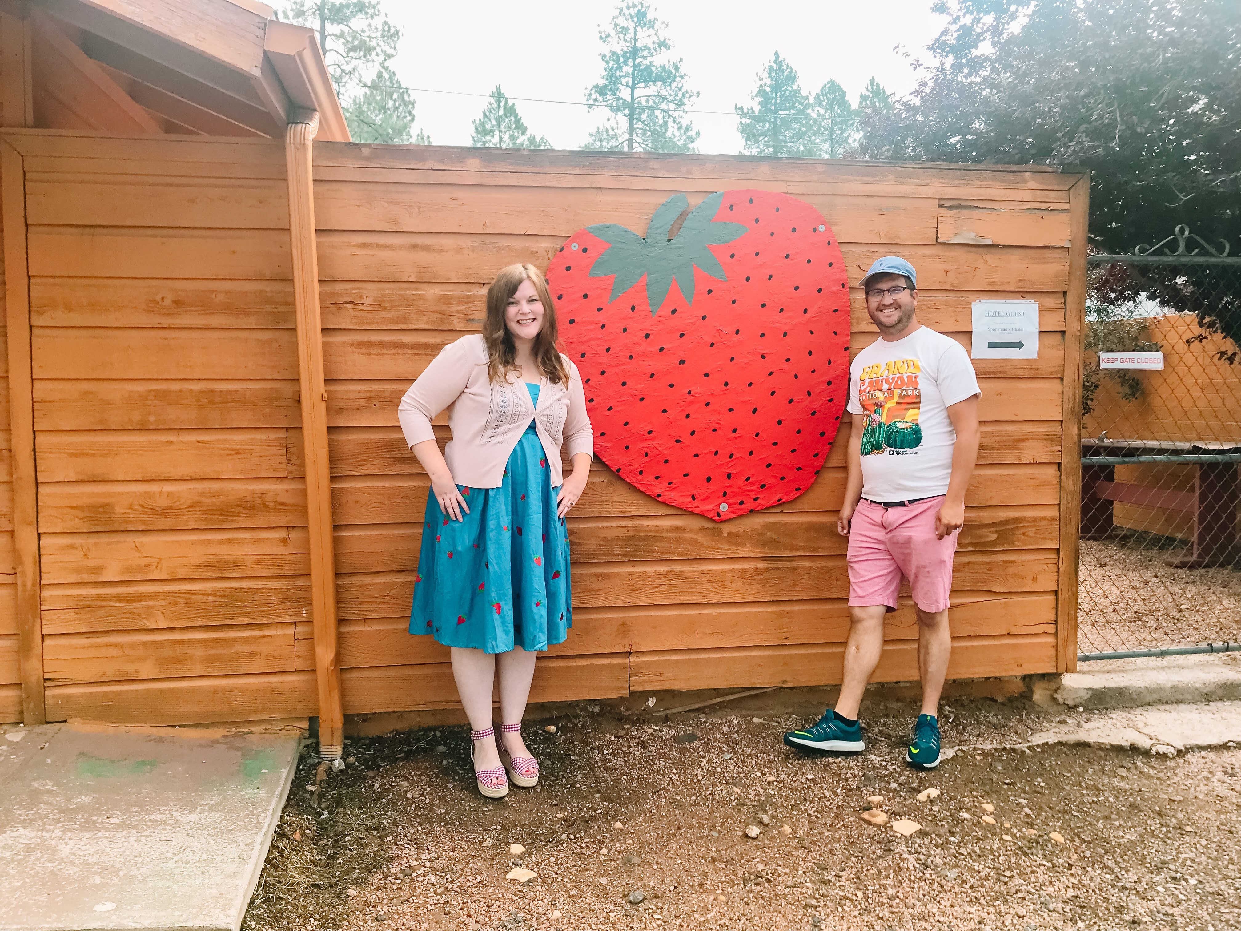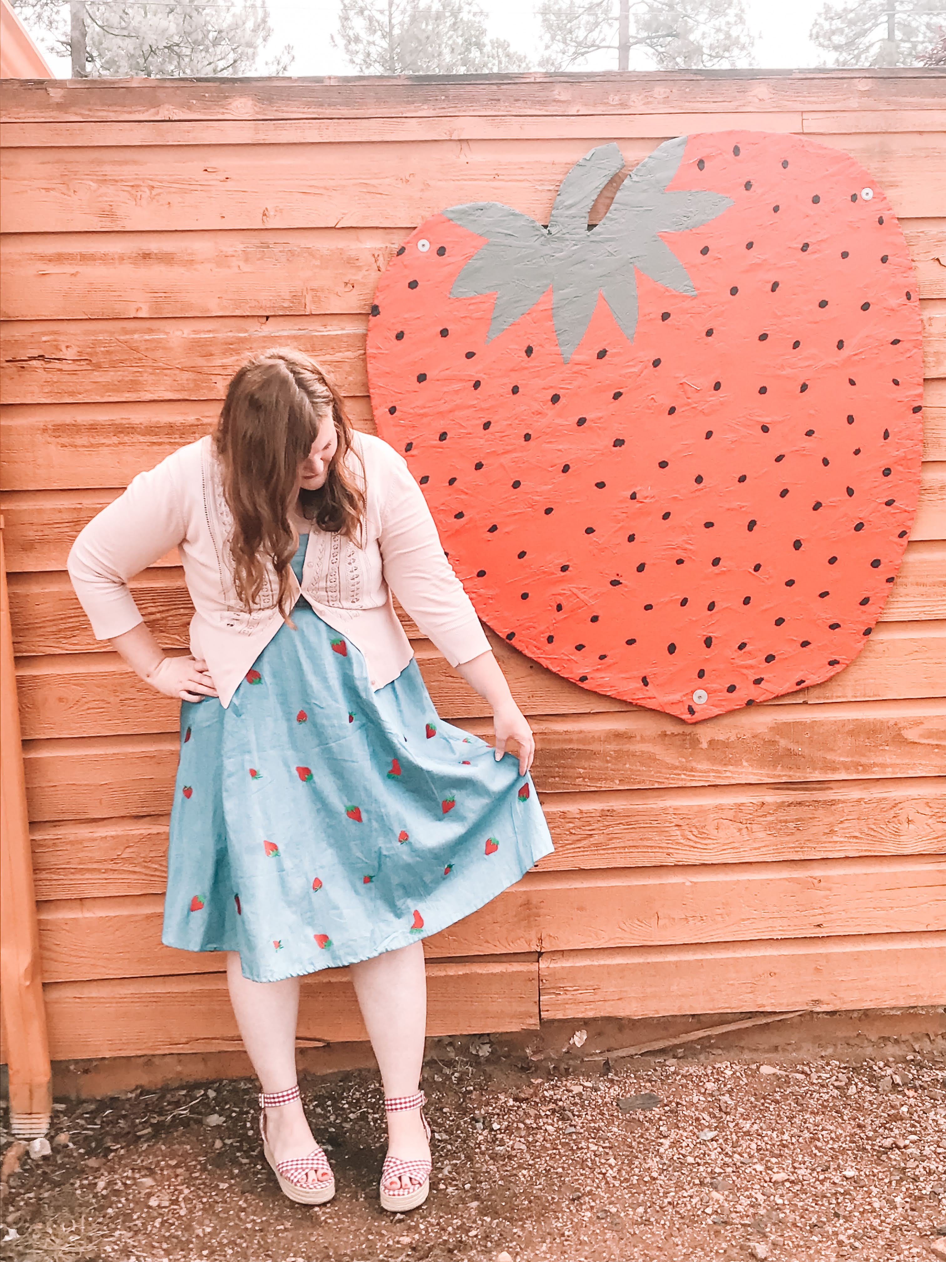 On our way out, we took some stops to take campy tourist pics next to…you guess it, strawberries. In my strawberry dress.
