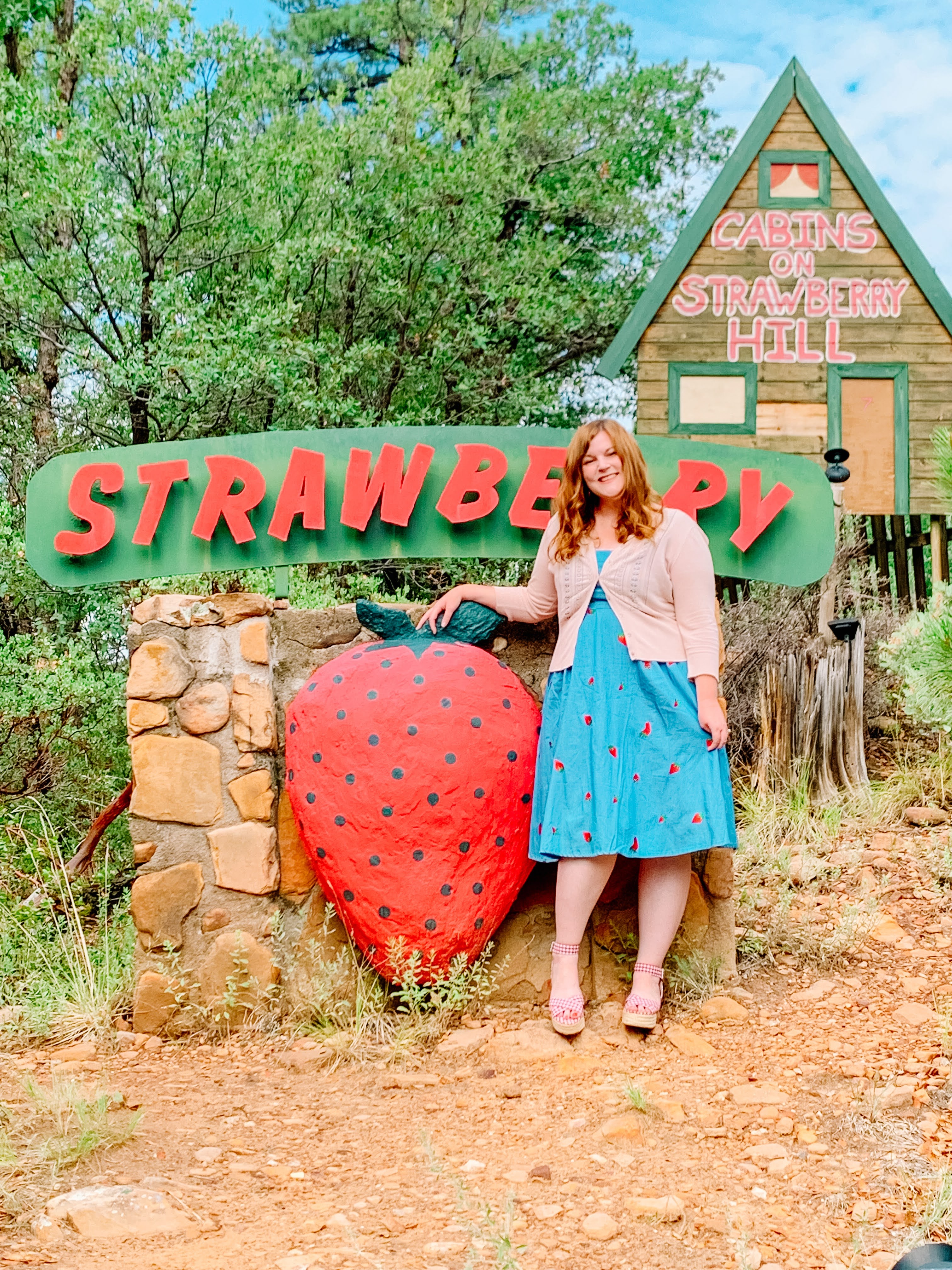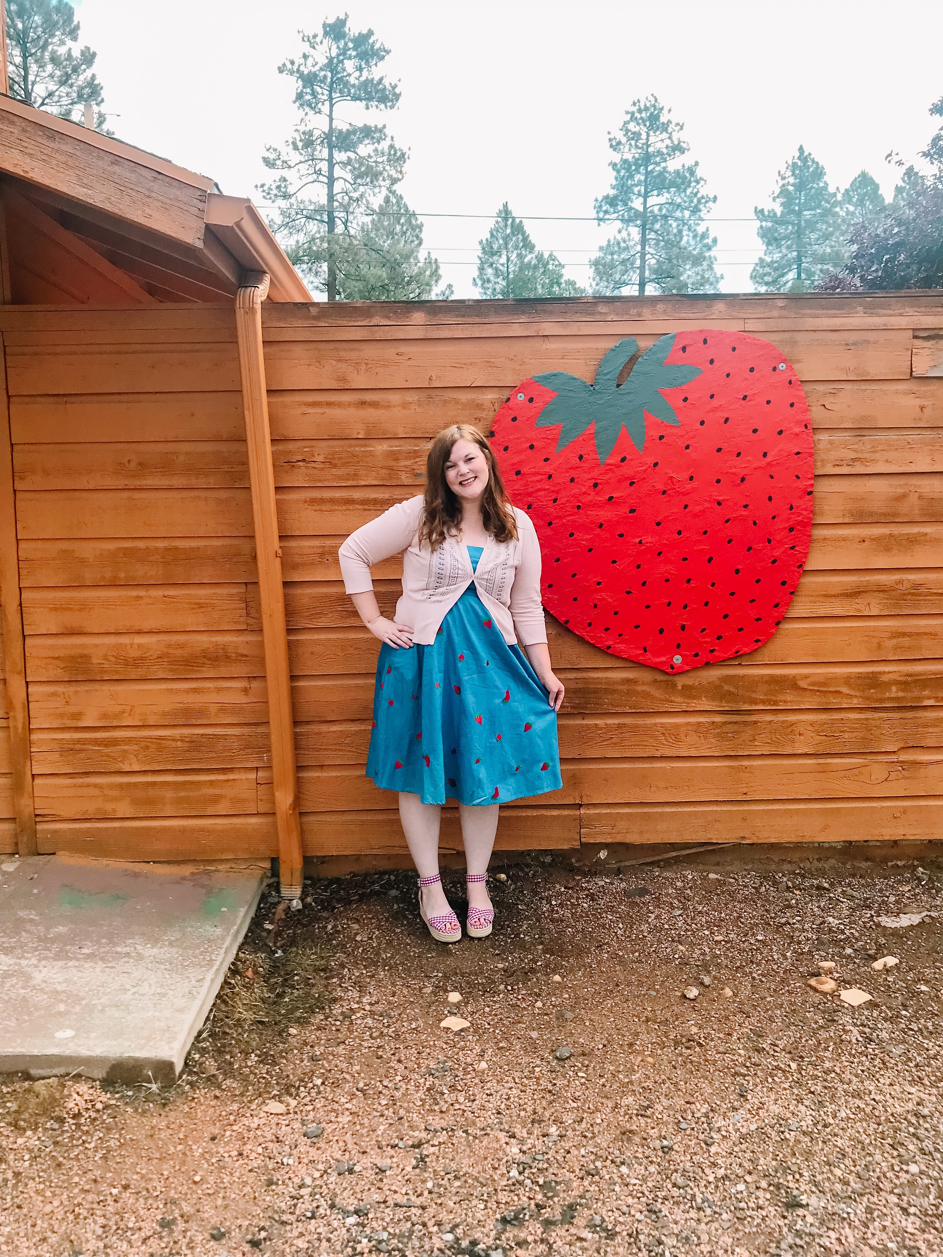 On our way out, we took some stops to take campy tourist pics next to…you guess it, strawberries. In my strawberry dress.