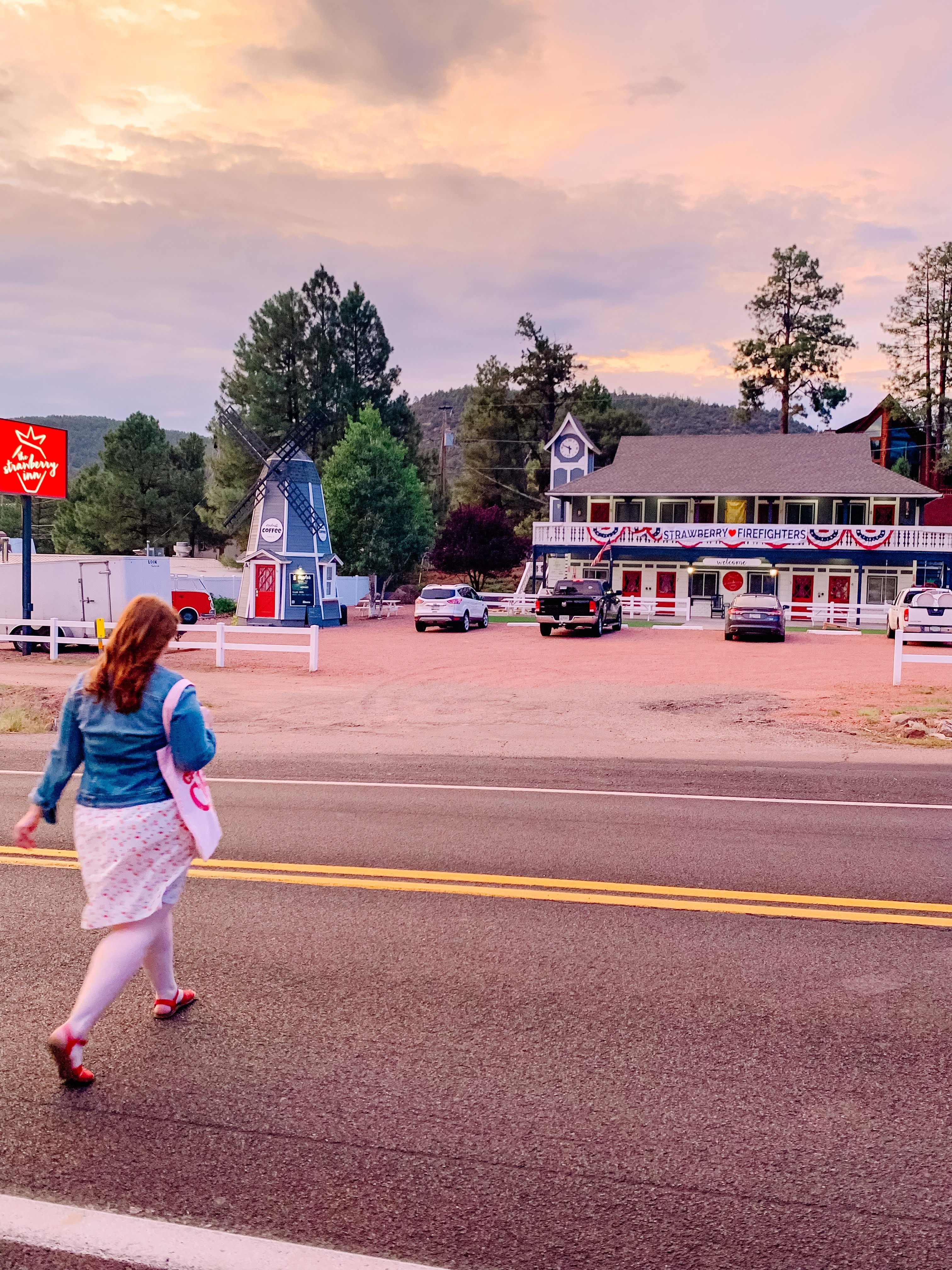 Strawberry and Pine are, excuse my silly giddiness, cuuuuuuuute. Seriously America in a jar–little Mason jars, with red gingham fabric tied with baker’s twine on top that is. Hey! Makes sense to me. But really! There are so many old, and folksy ice cream shops, antique shops, and pretty old houses. It is such a darling place in the Arizona mountains– which to any Arizonian that immediately translates into “perfect summer weather.” It felt so charmingly Americana and Avonlea-ish at the same time.