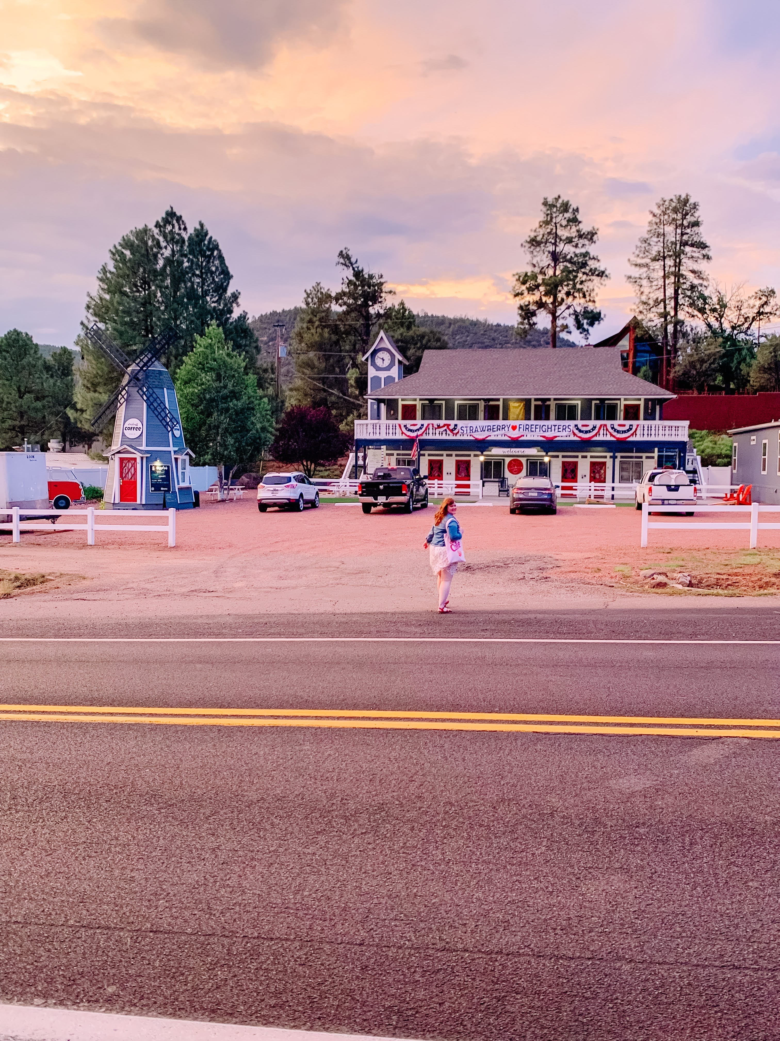 Our retro/Americana themed “micro wedding” was on July 1st, heading into the 4th of July weekend. So our little “mini moon” landed squarely for 4th of July weekend, and we spent it in the most quaint little town(s) of Strawberry and Pine AZ. (Our hotel was in Strawberry but it’s smack dab next to Pine, AZ. So I consider them a package deal lol.)