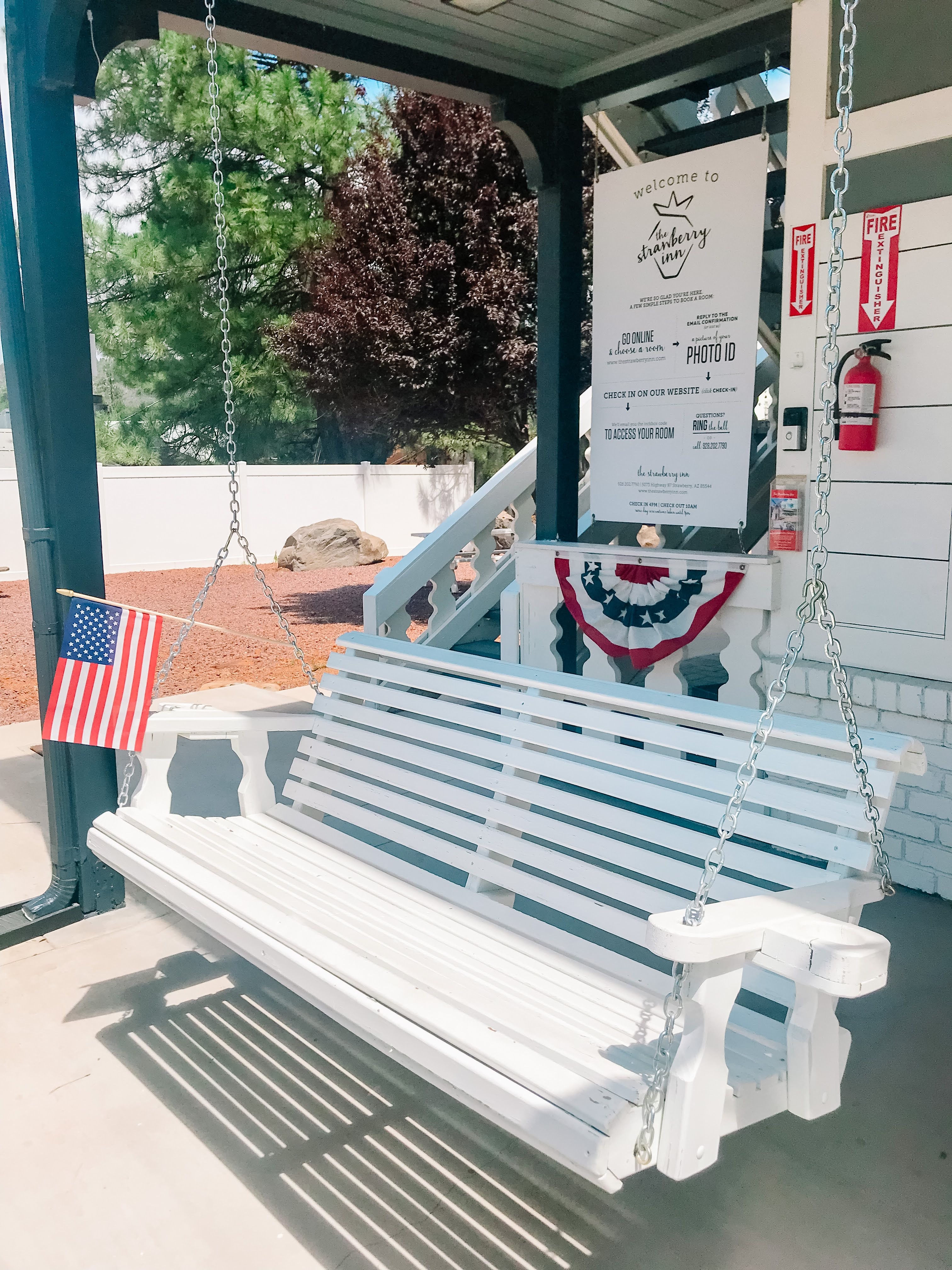 We stayed at the Strawberry Inn which is the perfect little place to stay for 4th of July. It is charming and painted red, white, and blue, and most importantly–THE BUNTING, PEOPLE!