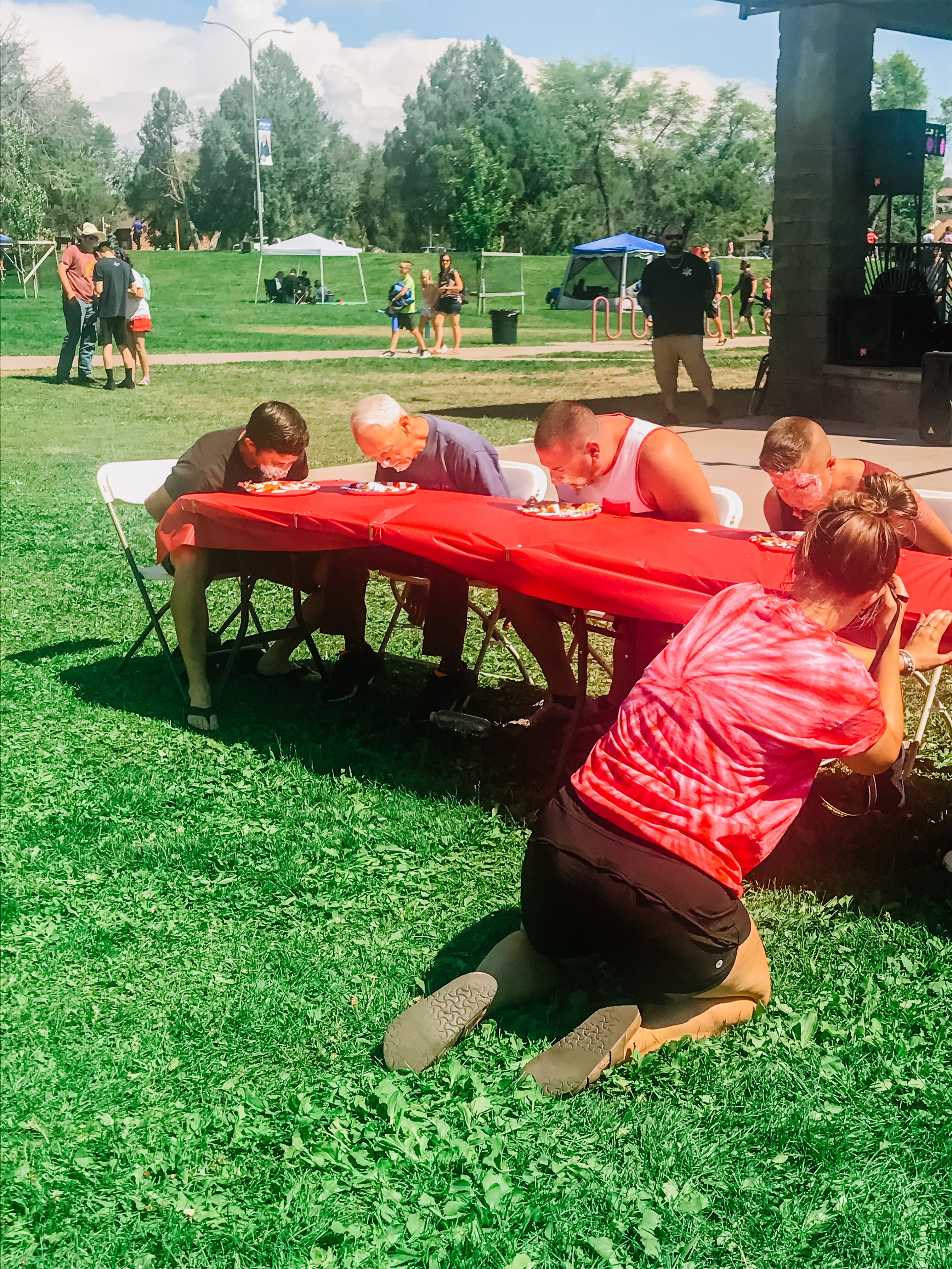 So we went early, at 3 p.m. to watch the pie eating contest. You ALWAYS hear about those happening at 4th of July celebrations but I’ve personally never witnessed it so I NEEDED that experience. Okay so, we watched it and then….guys, it was still freaking hot.