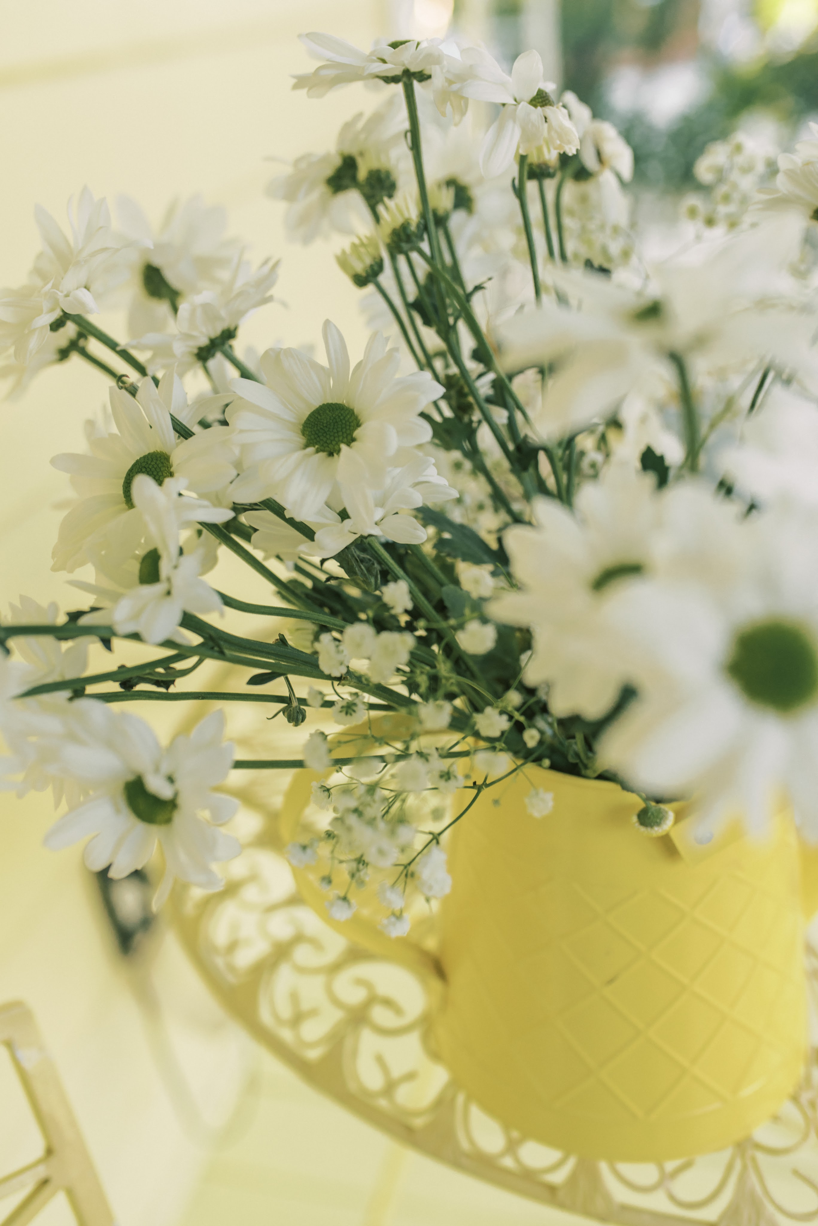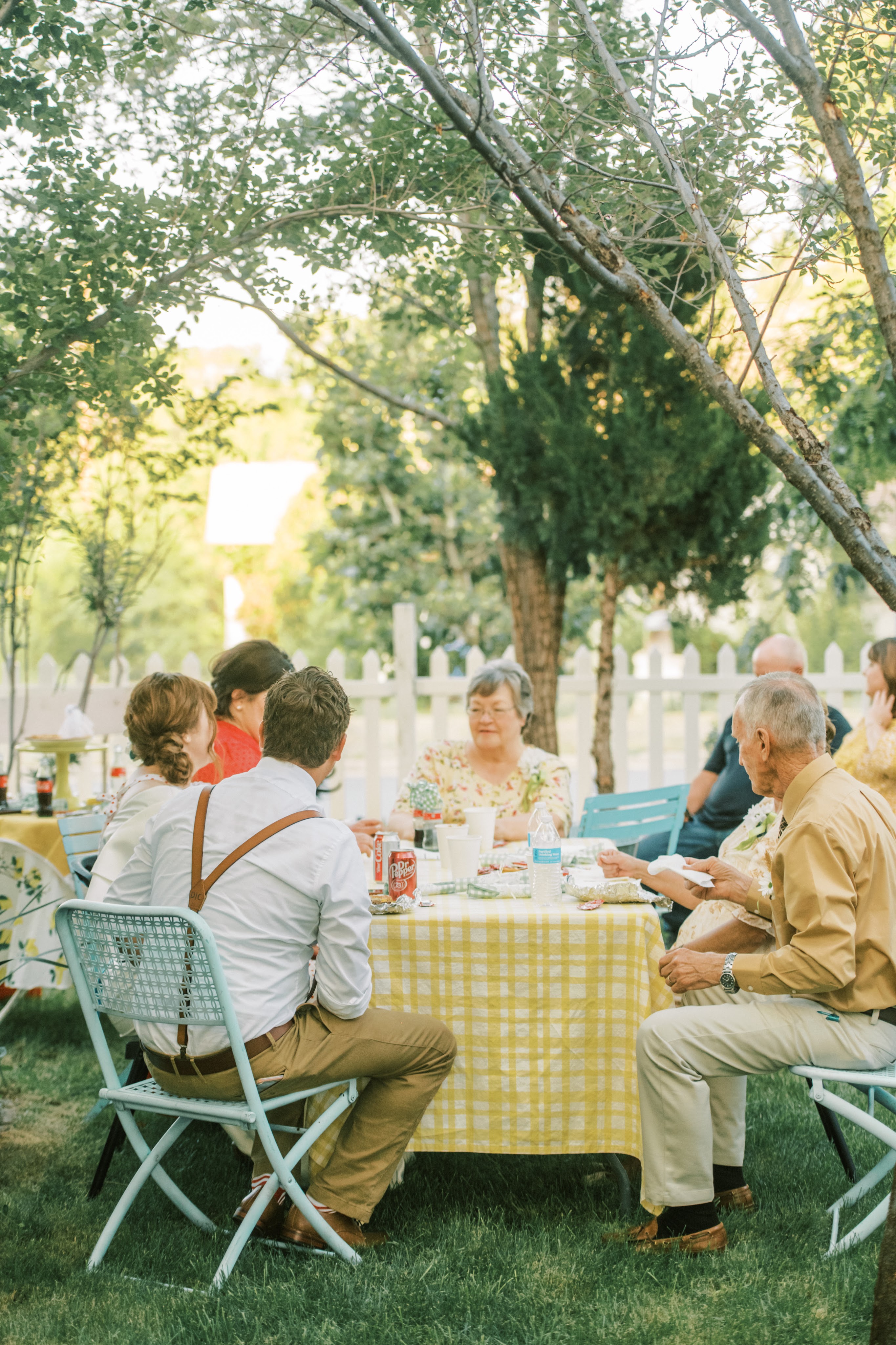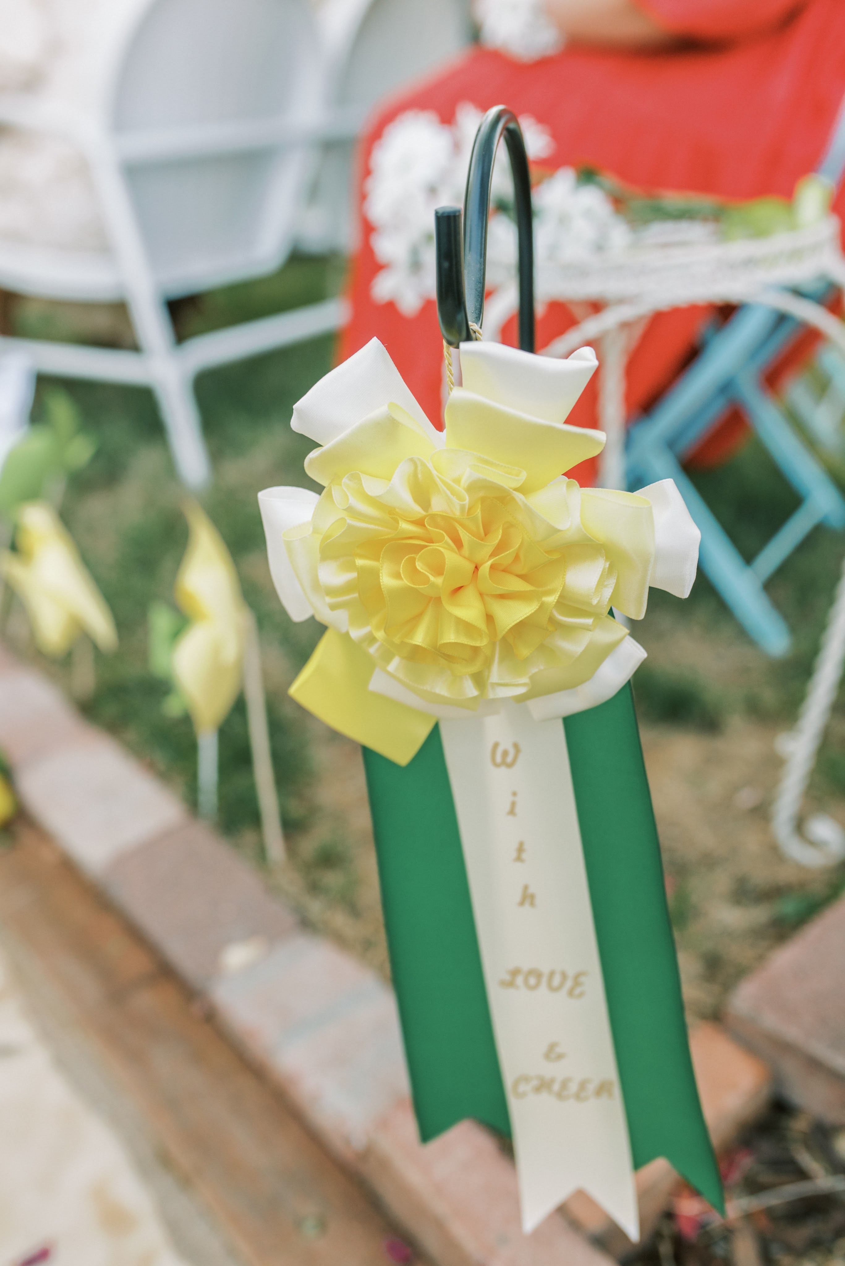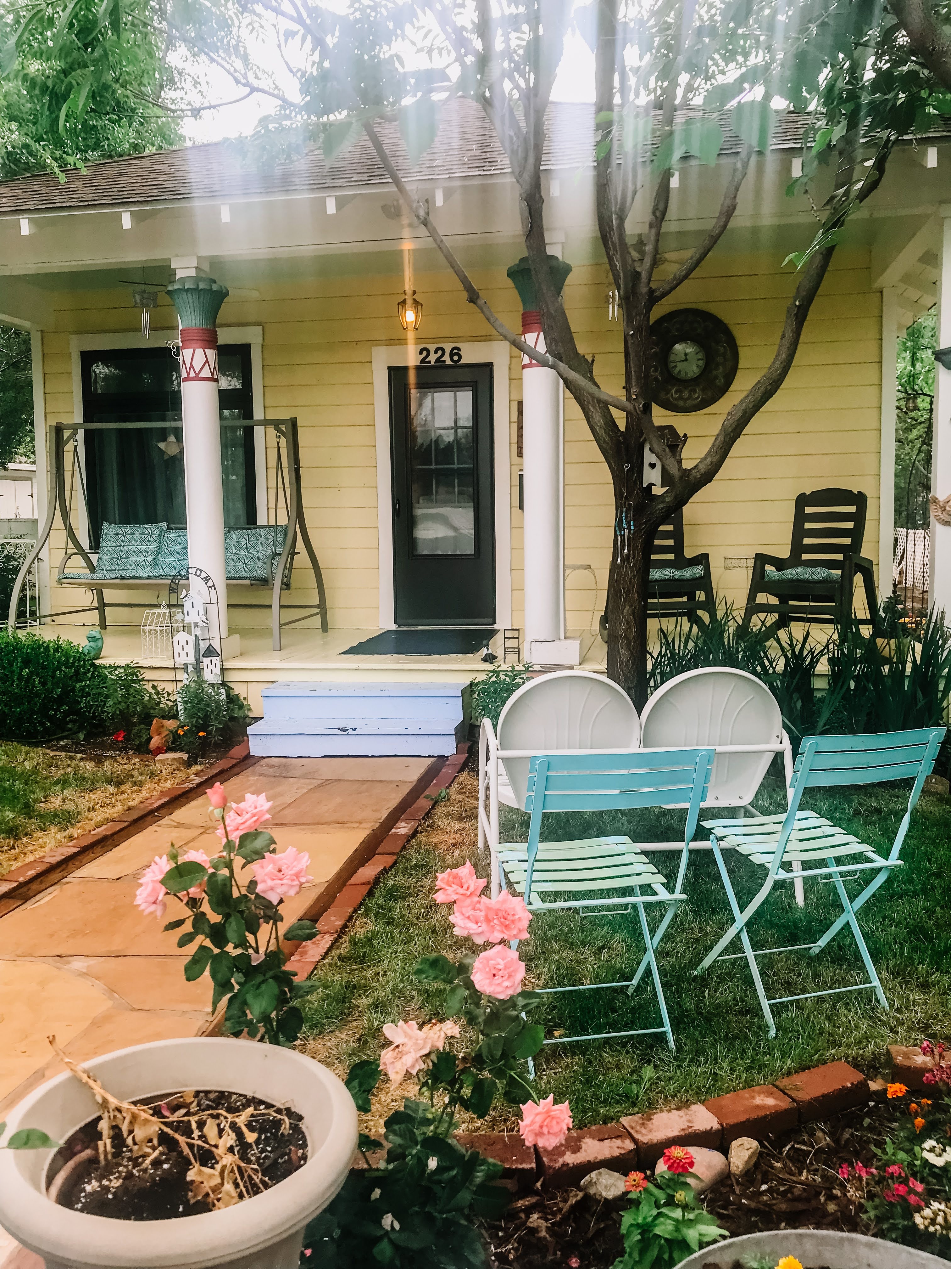 We set out retro lawn chairs in the quaint front yard for our guests and then lined the little walkway to the porch with pinwheels and lemons and daisies. We also hung up an American flag to keep that Americana theme we had going.