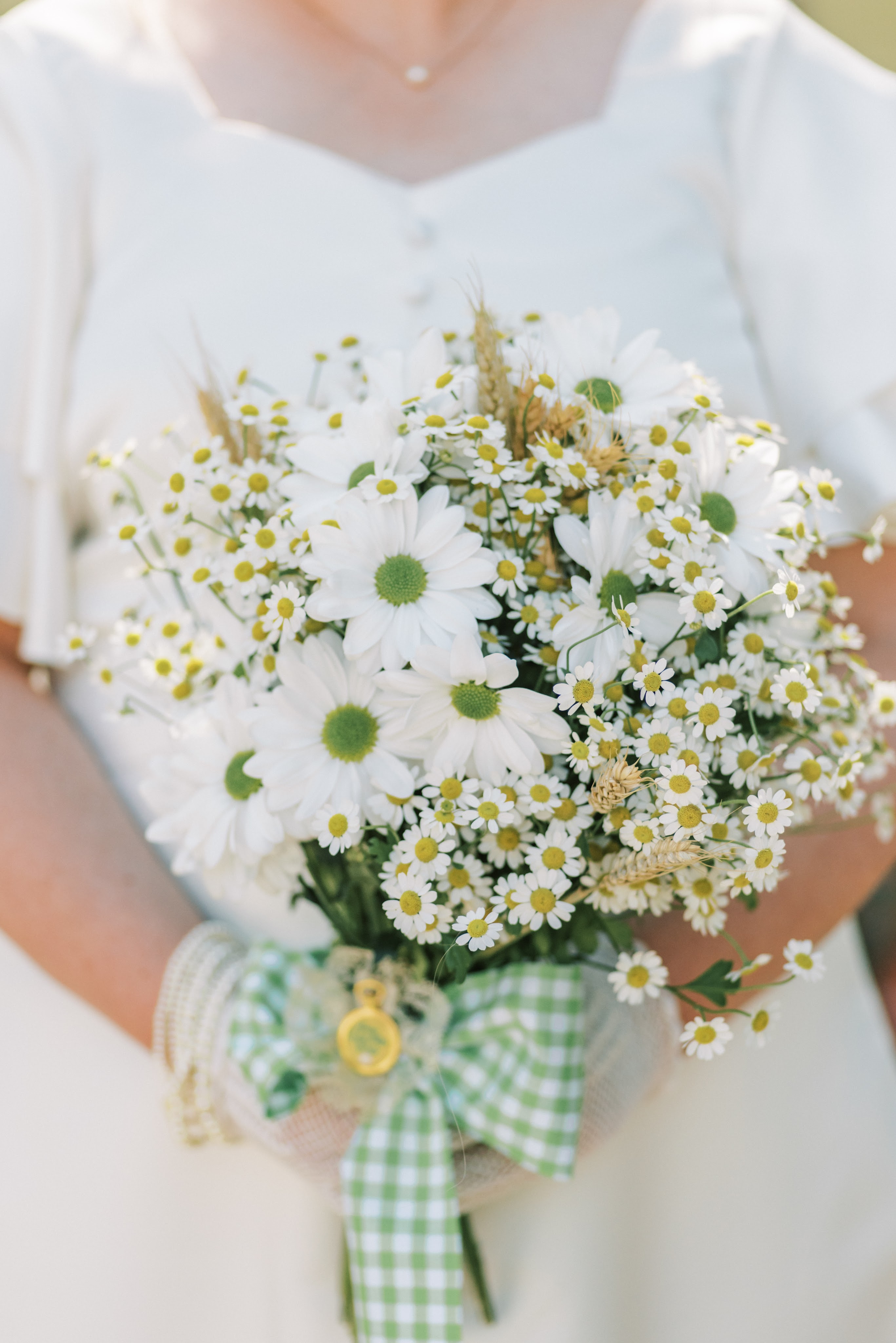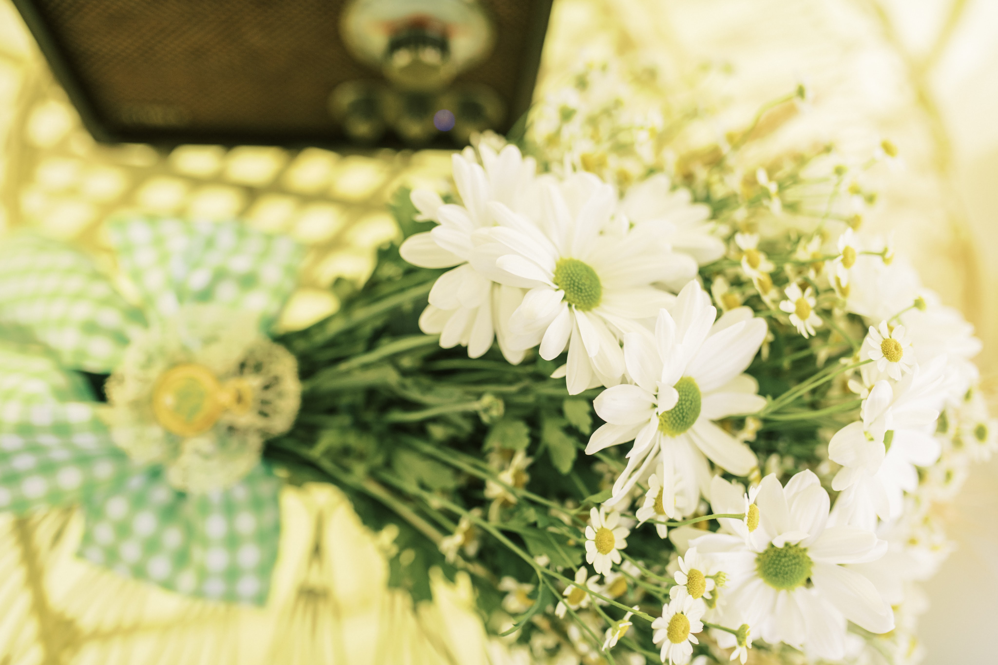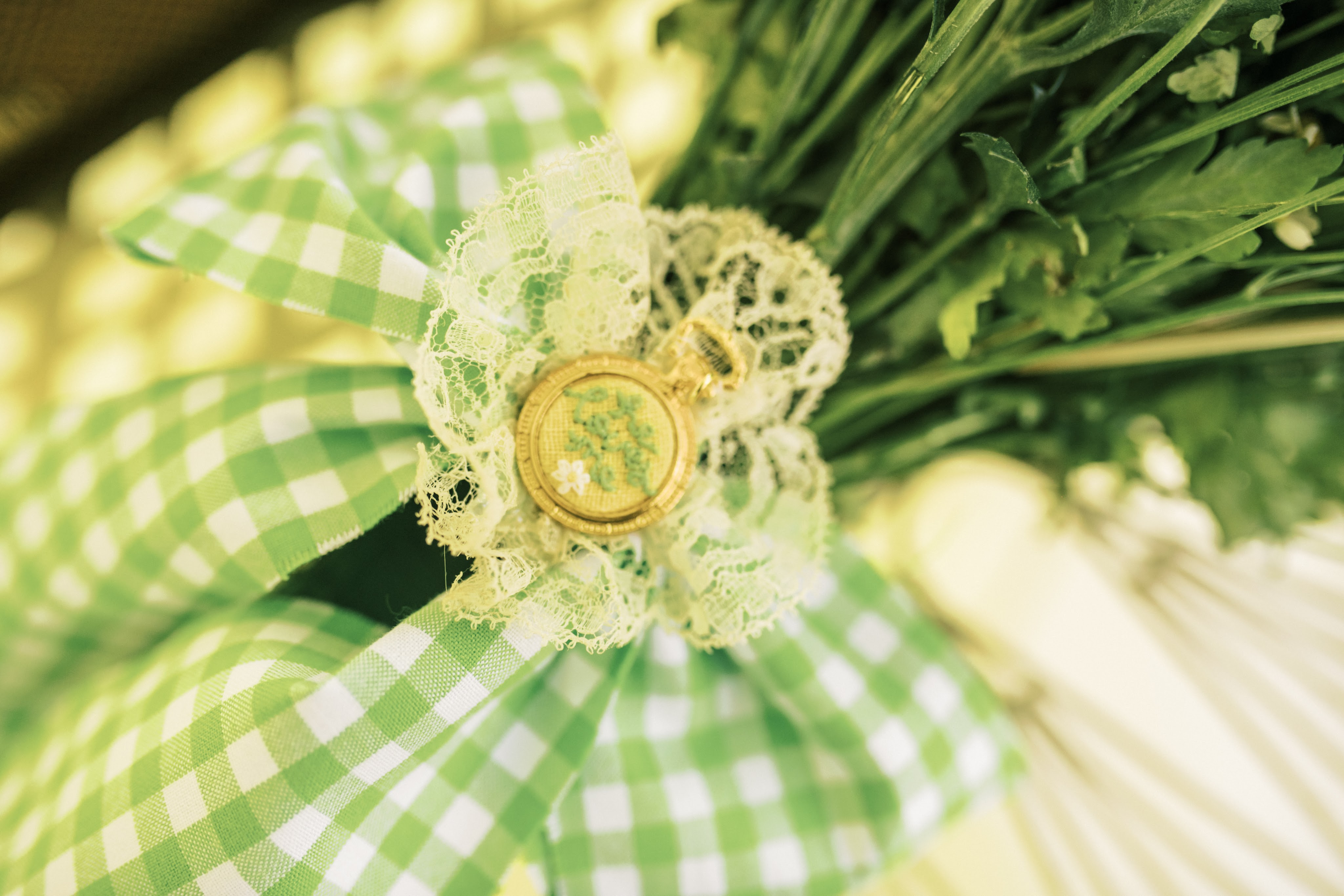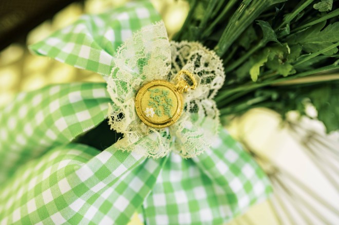 Something Borrowed: Lace from a Vintage 1950’s veil that I incorporated into my bouquet. I had found the veil a while ago from an antique store. My mom and I used it around an embroidery charm I had custom made from Etsy for my daisy bouquet which says “he loves me.”
