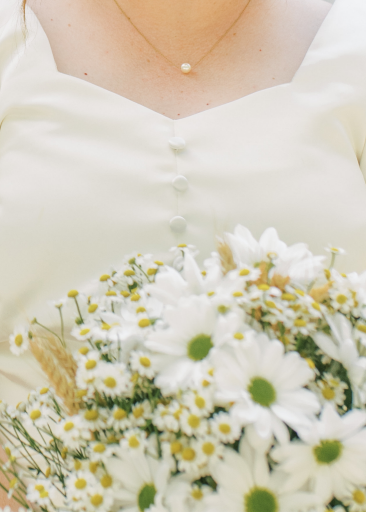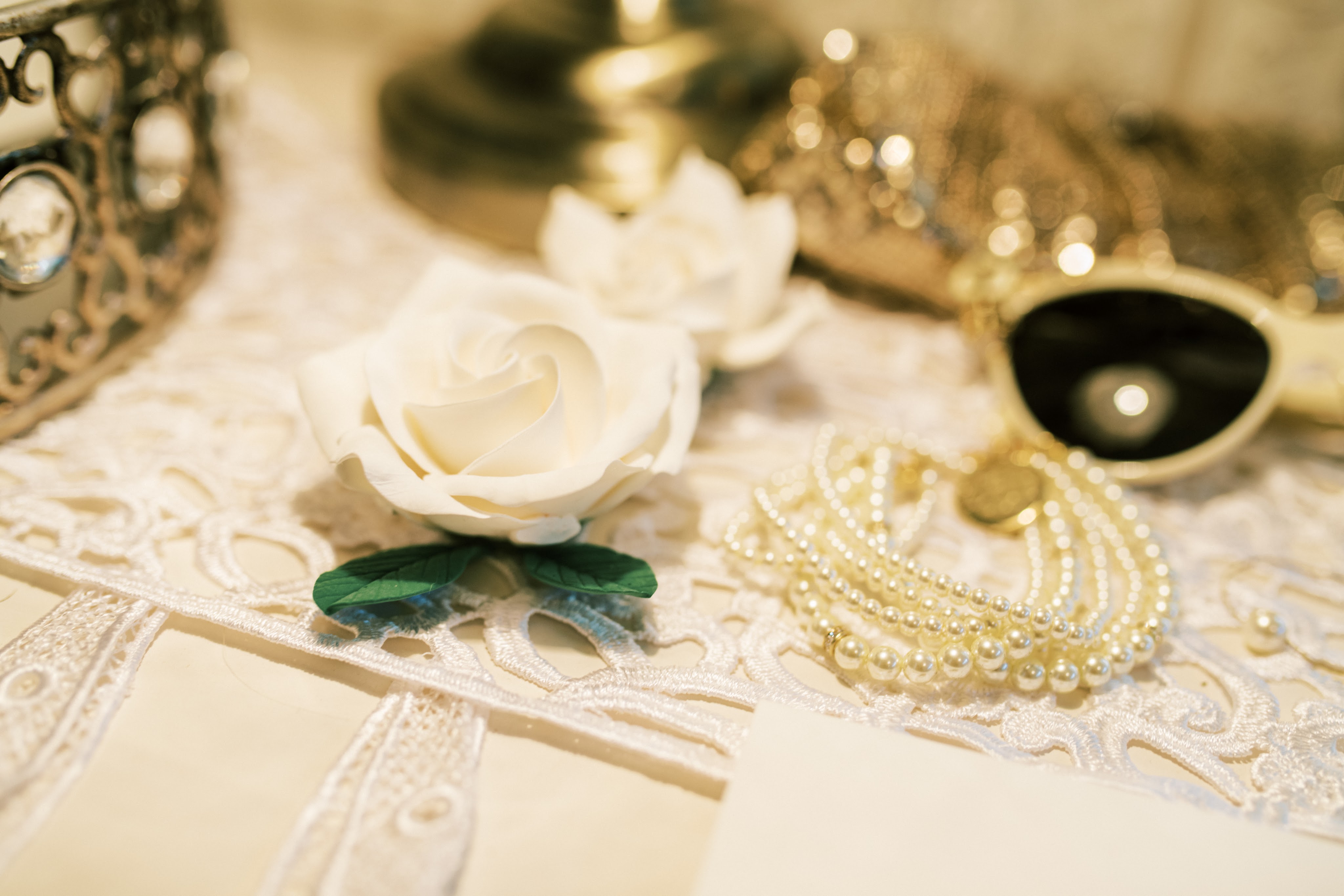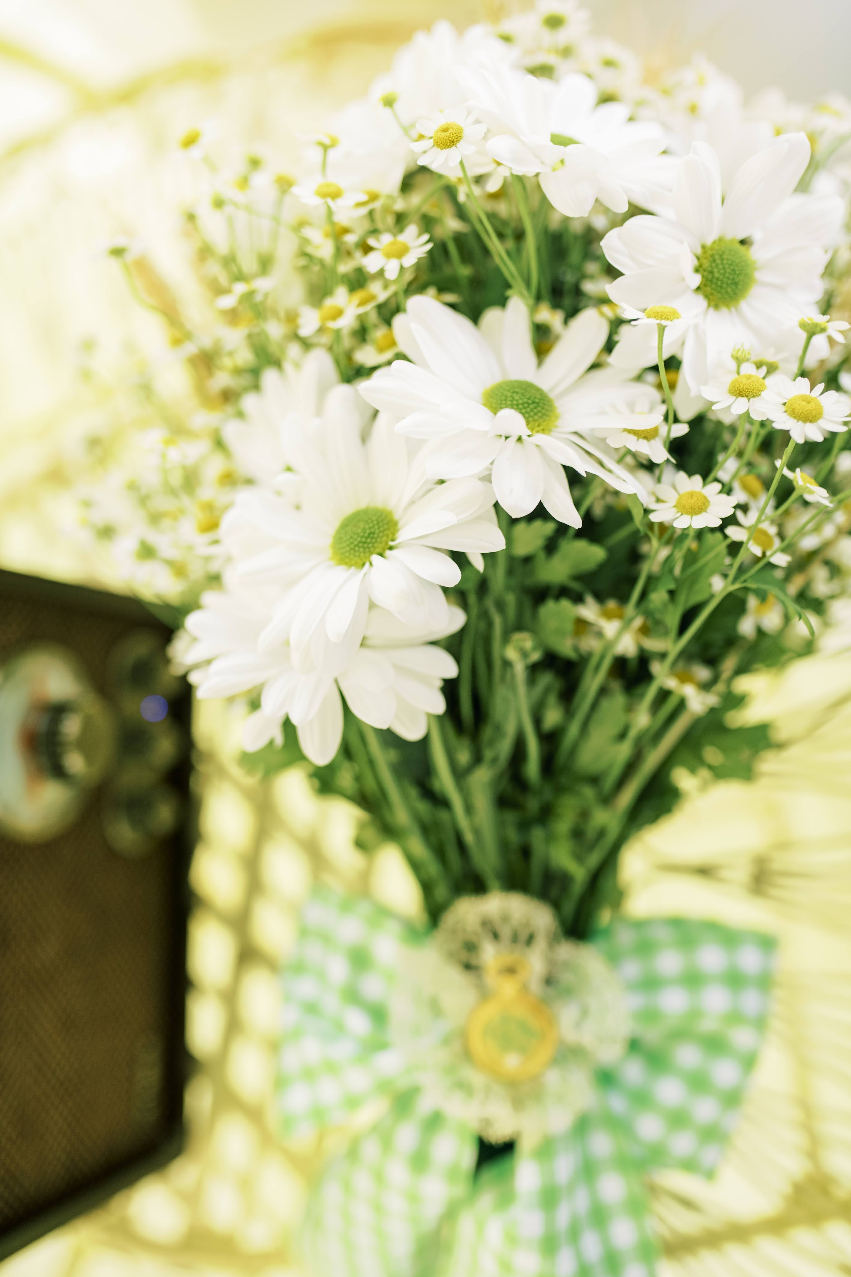 Something Borrowed: Lace from a Vintage 1950’s veil that I incorporated into my bouquet. I had found the veil a while ago from an antique store. My mom and I used it around an embroidery charm I had custom made from Etsy for my daisy bouquet which says “he loves me.”
