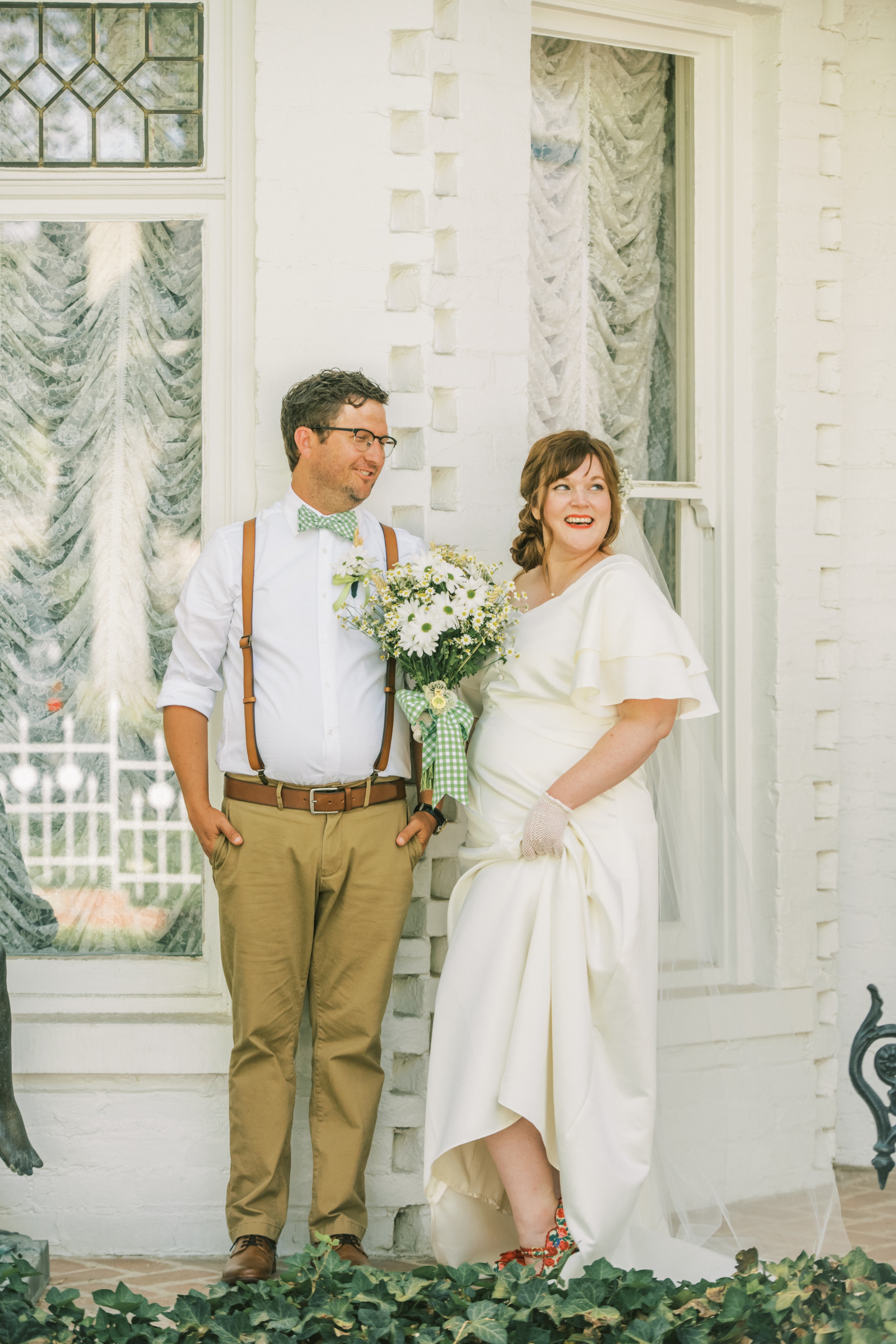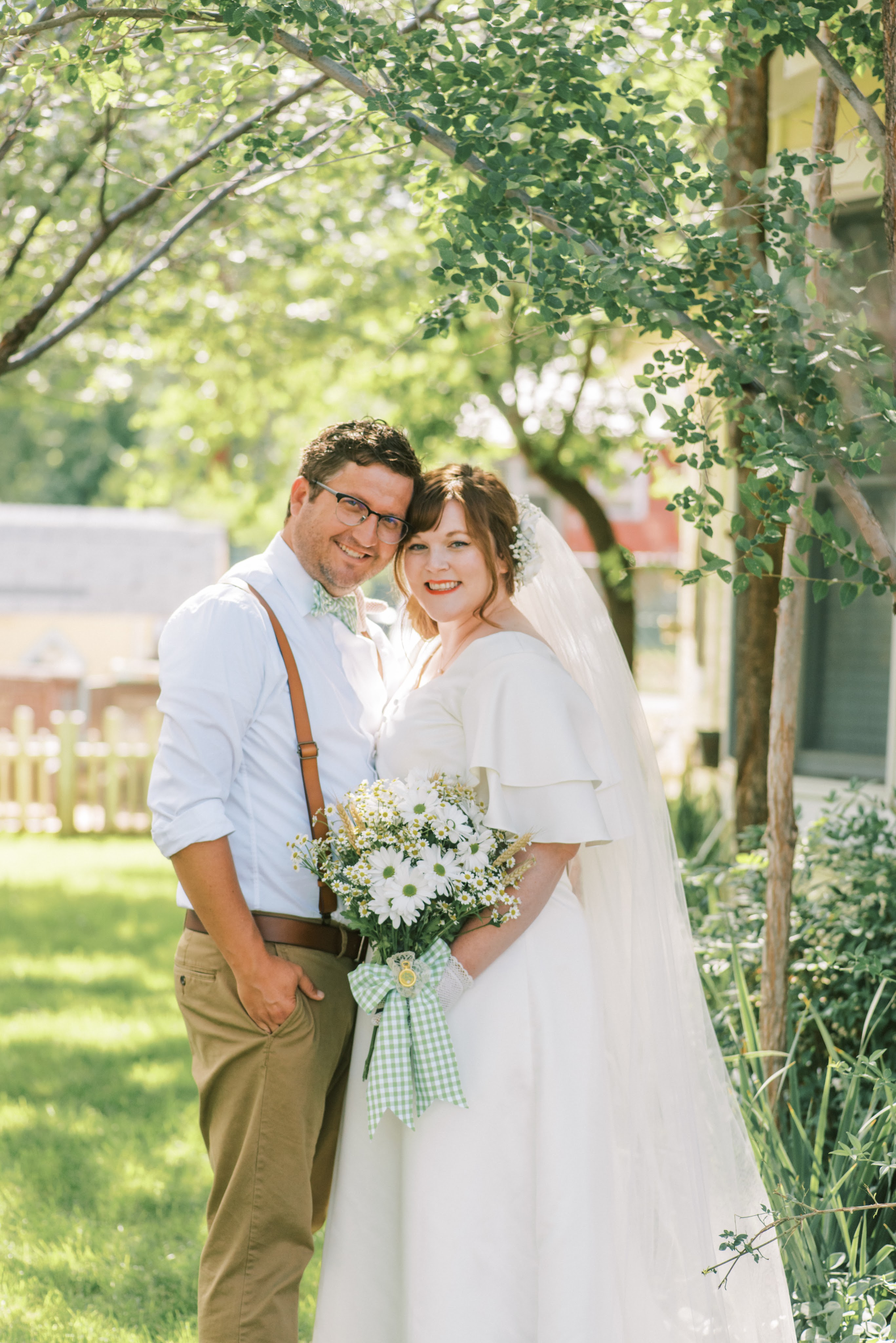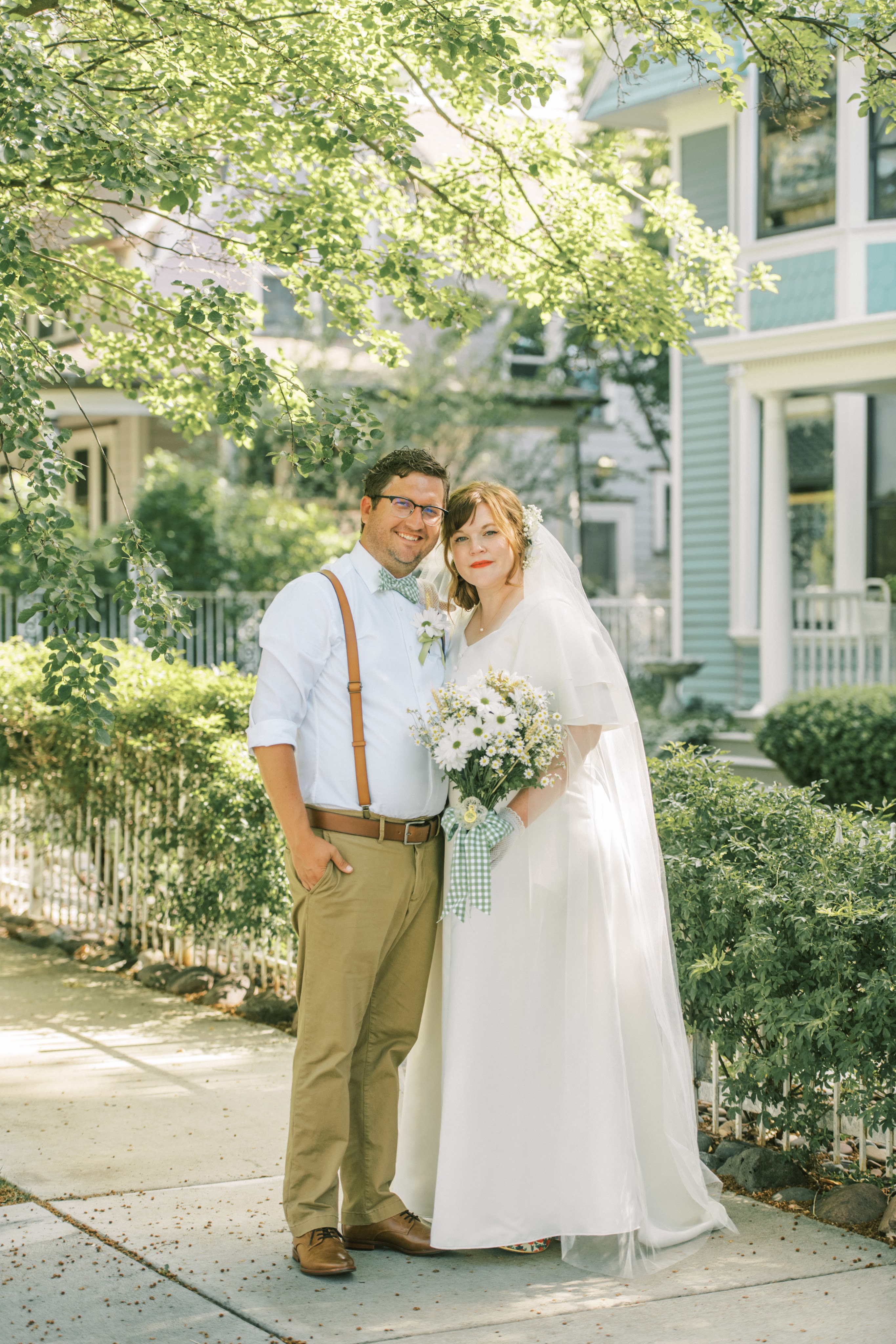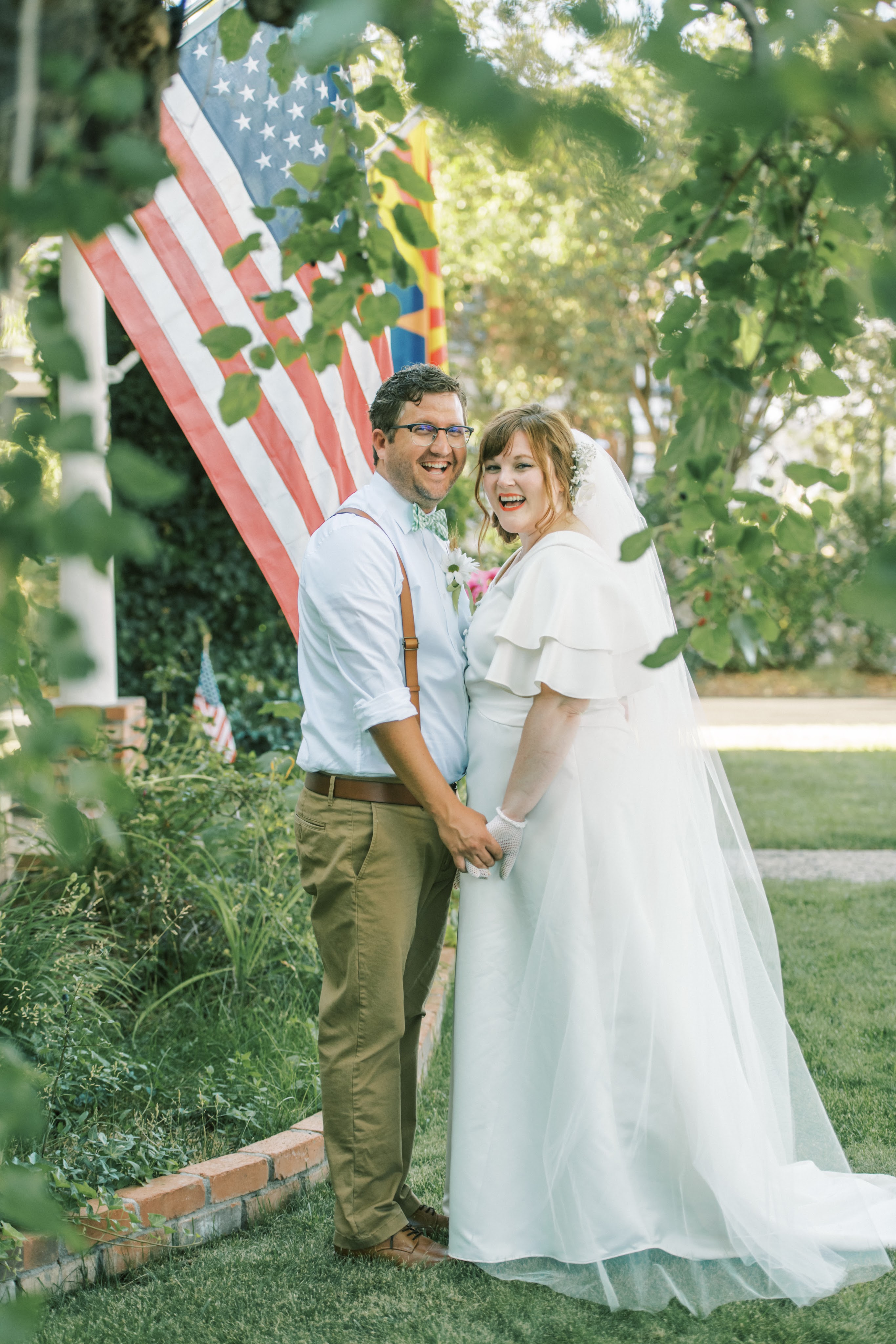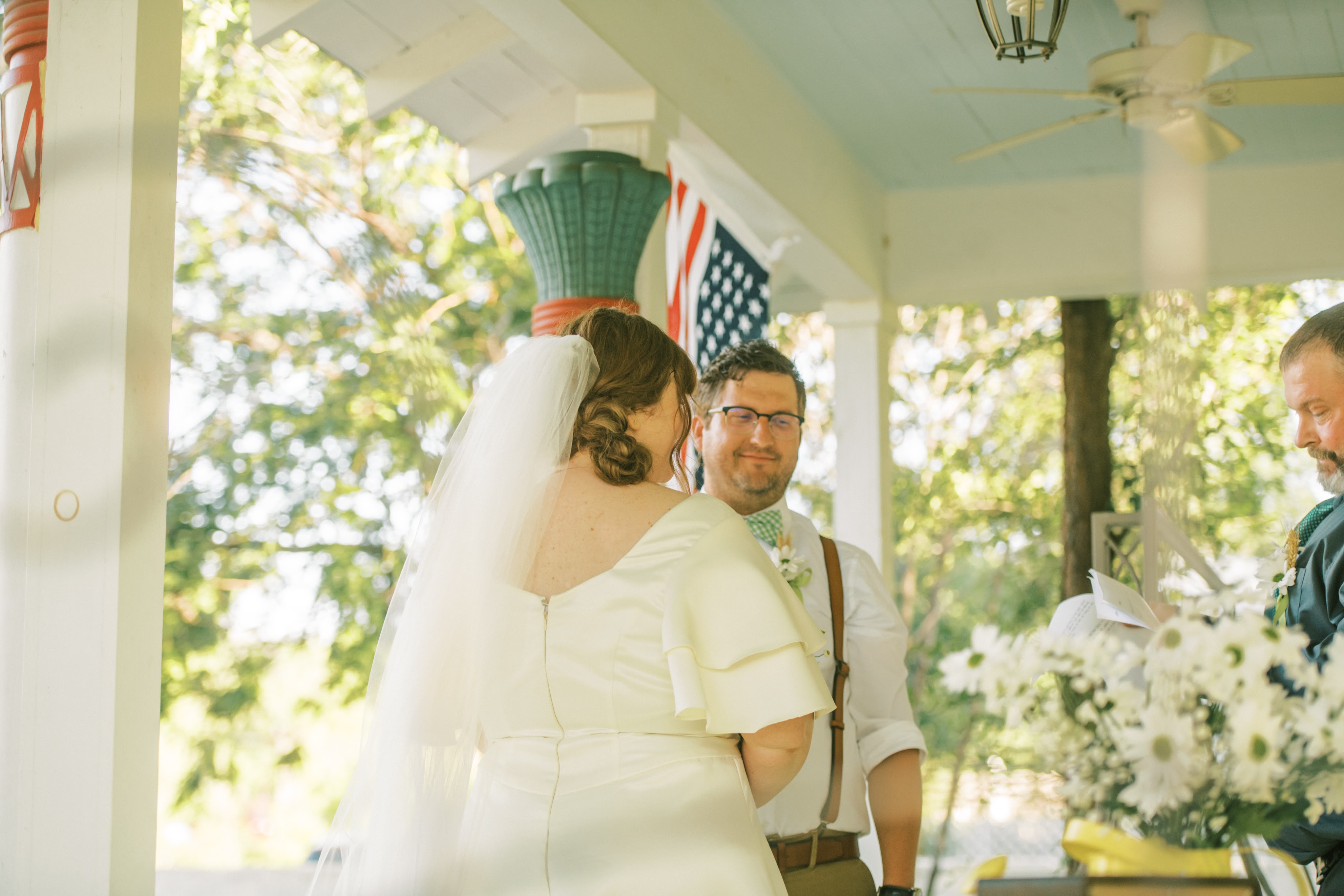 David and I got married on July 1, 2021 in Prescott, Arizona on the front porch of a darling historic yellow home affectionately called The Virginia Dollhouse. It was small and intimate, with only our parents and a few siblings that helped with the wedding: My sister’s boyfriend, Mike, married us, and my sister Shannon did my hair and make-up. The plan was to have a sweet and small wedding and then later have a large reception with family and friends, but for the actual wedding day, I wanted to keep it simple.