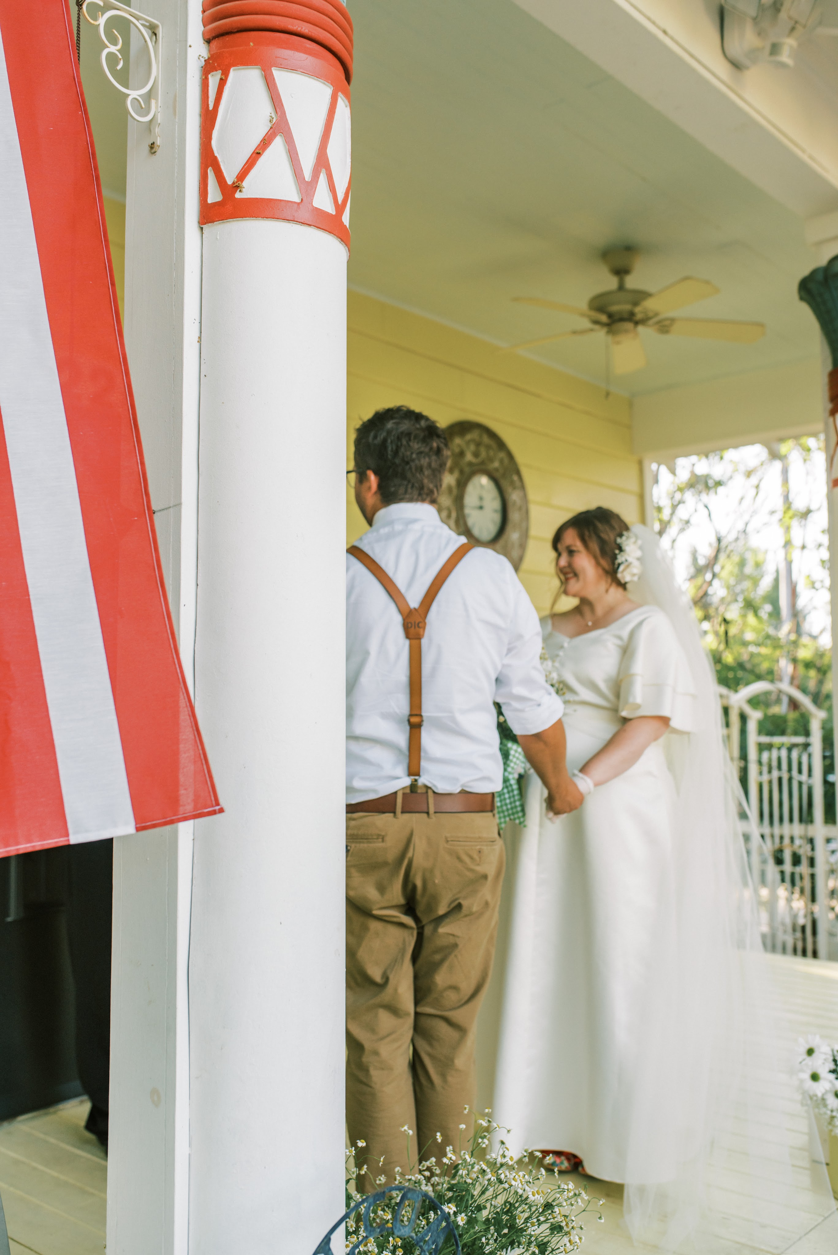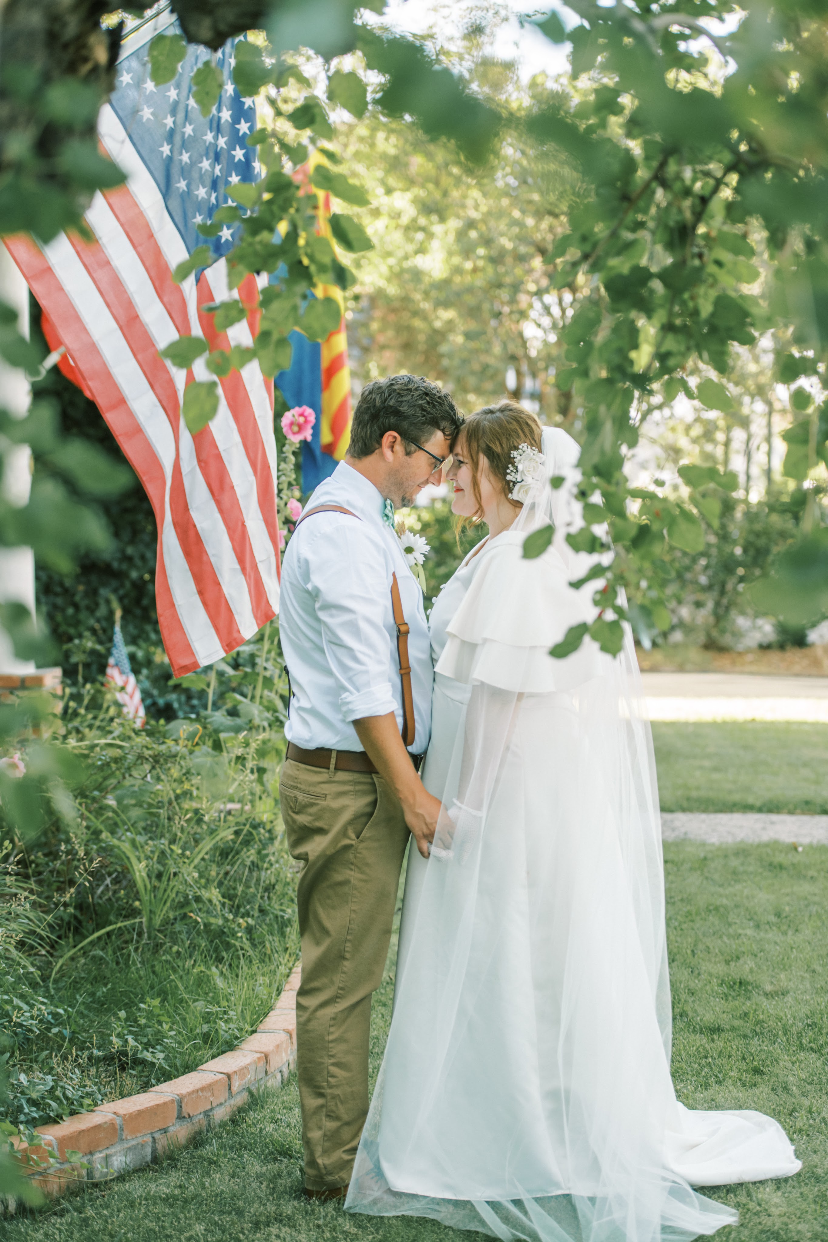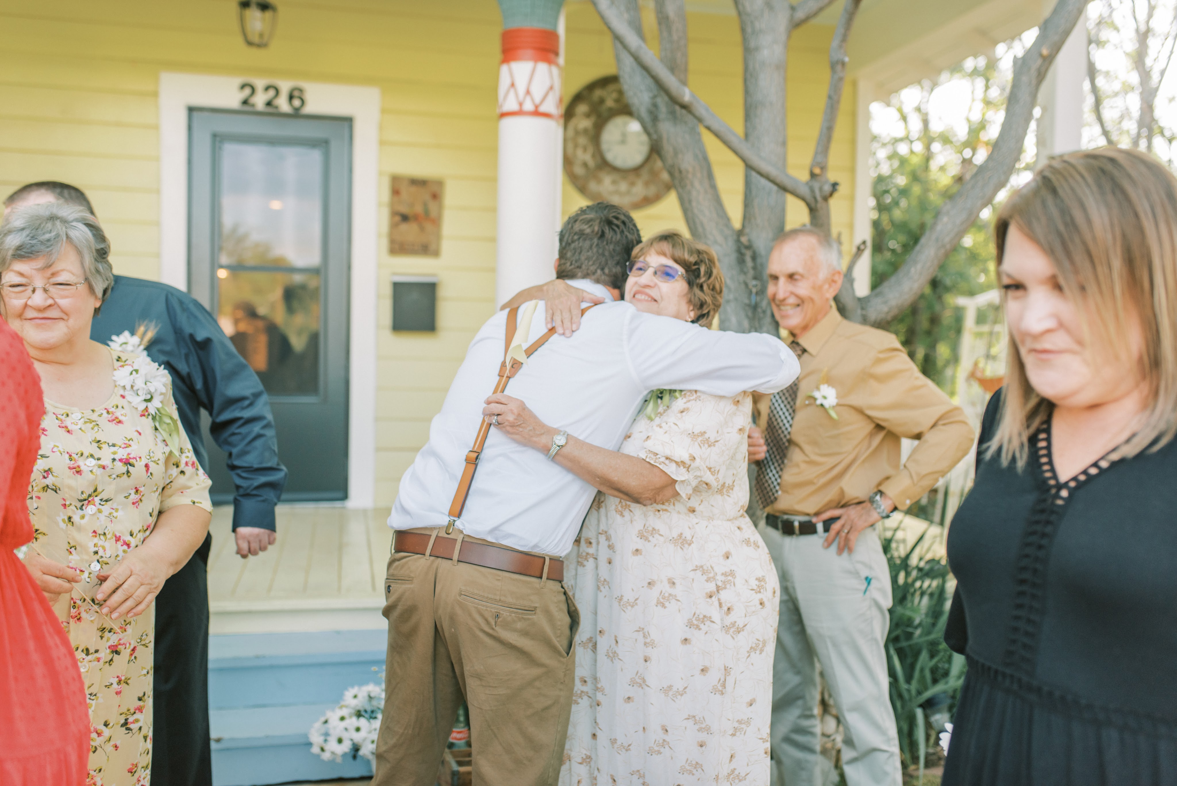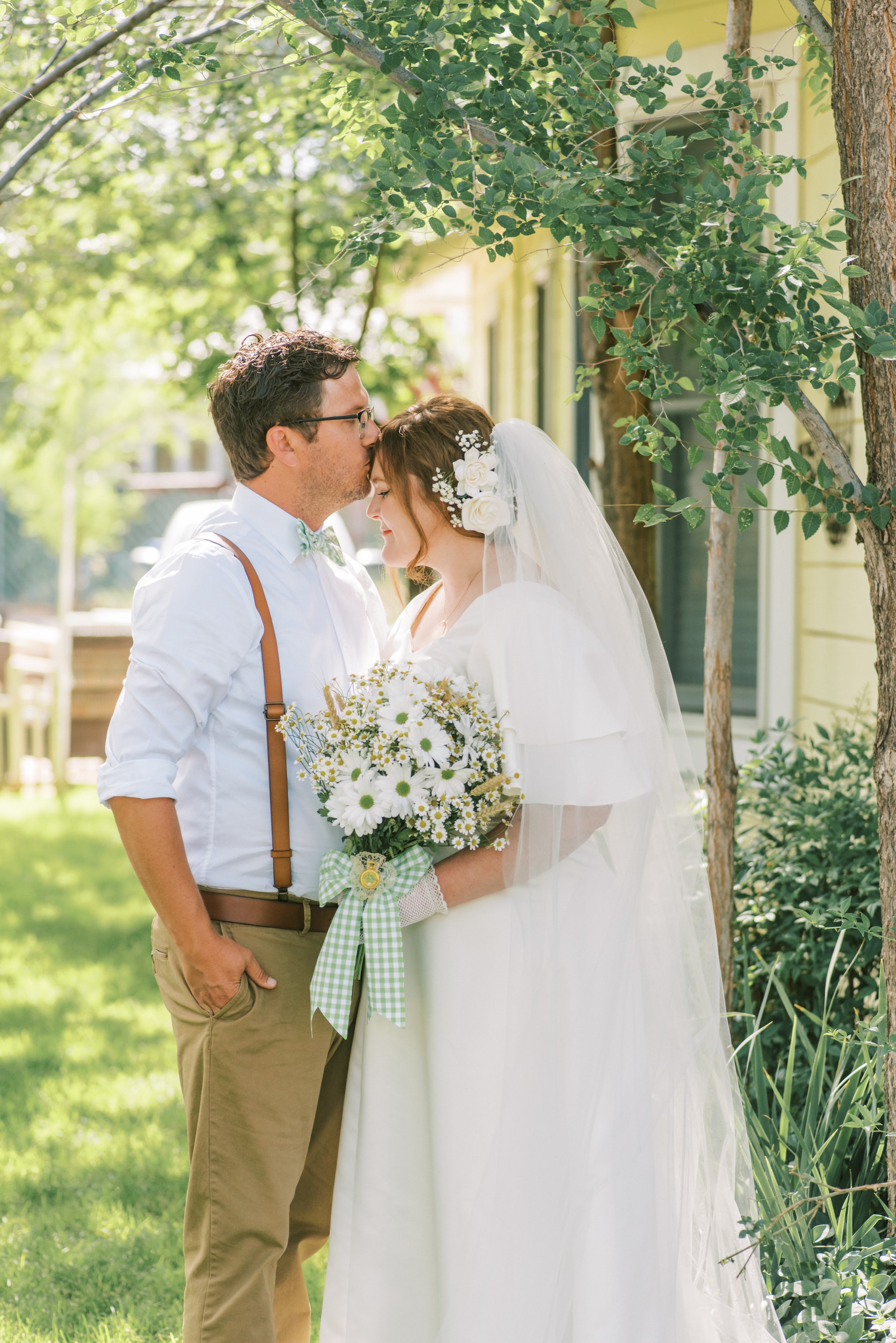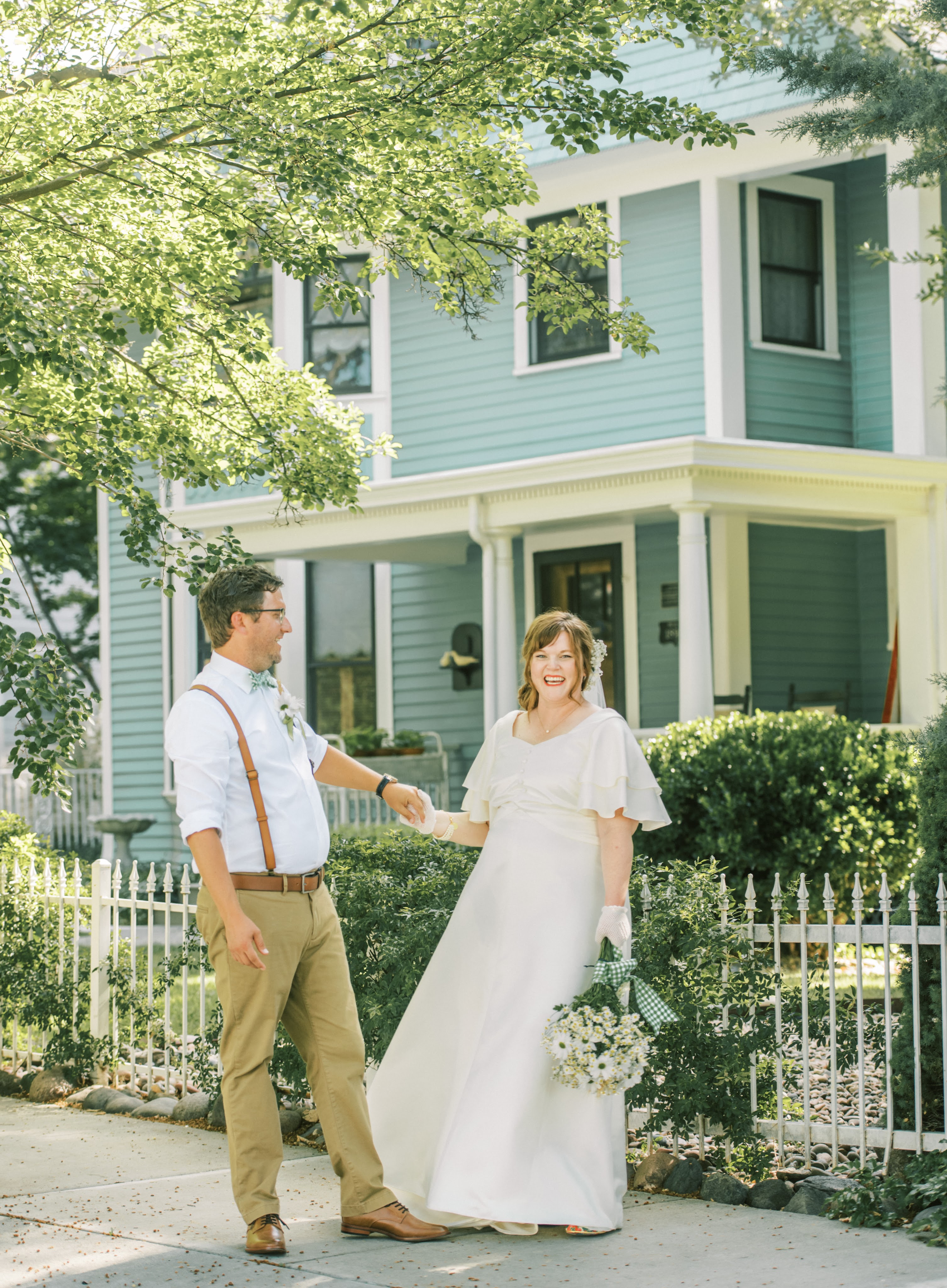 David and I got married on July 1, 2021 in Prescott, Arizona on the front porch of a darling historic yellow home affectionately called The Virginia Dollhouse. It was small and intimate, with only our parents and a few siblings that helped with the wedding: My sister’s boyfriend, Mike, married us, and my sister Shannon did my hair and make-up. The plan was to have a sweet and small wedding and then later have a large reception with family and friends, but for the actual wedding day, I wanted to keep it simple.