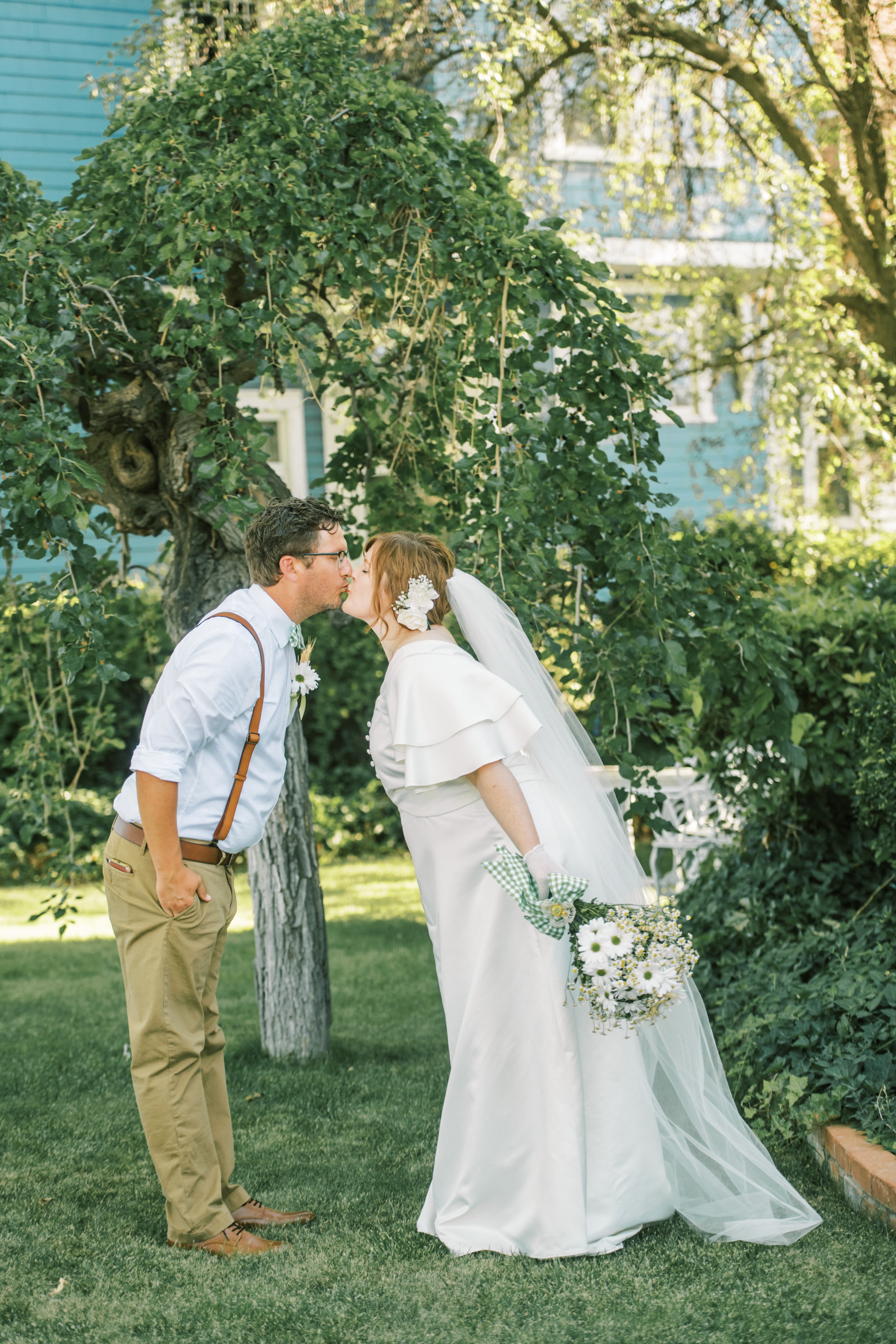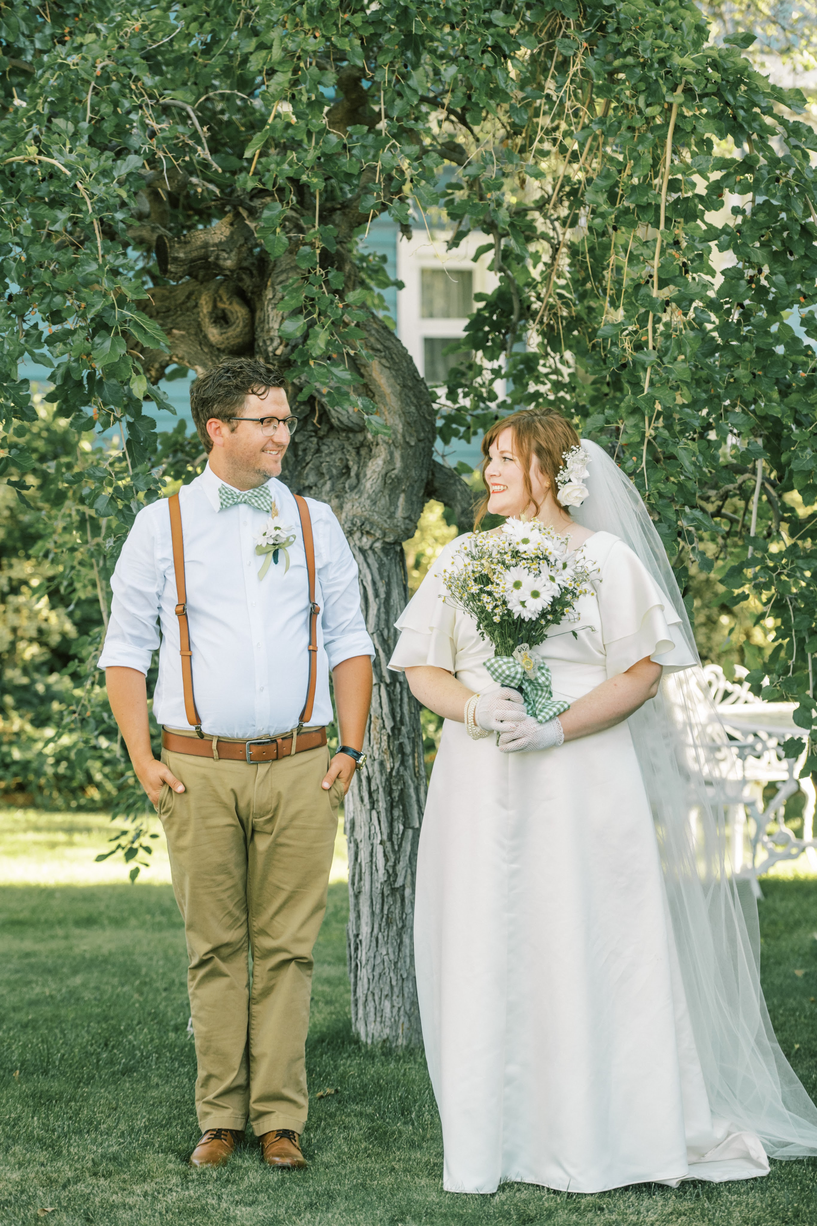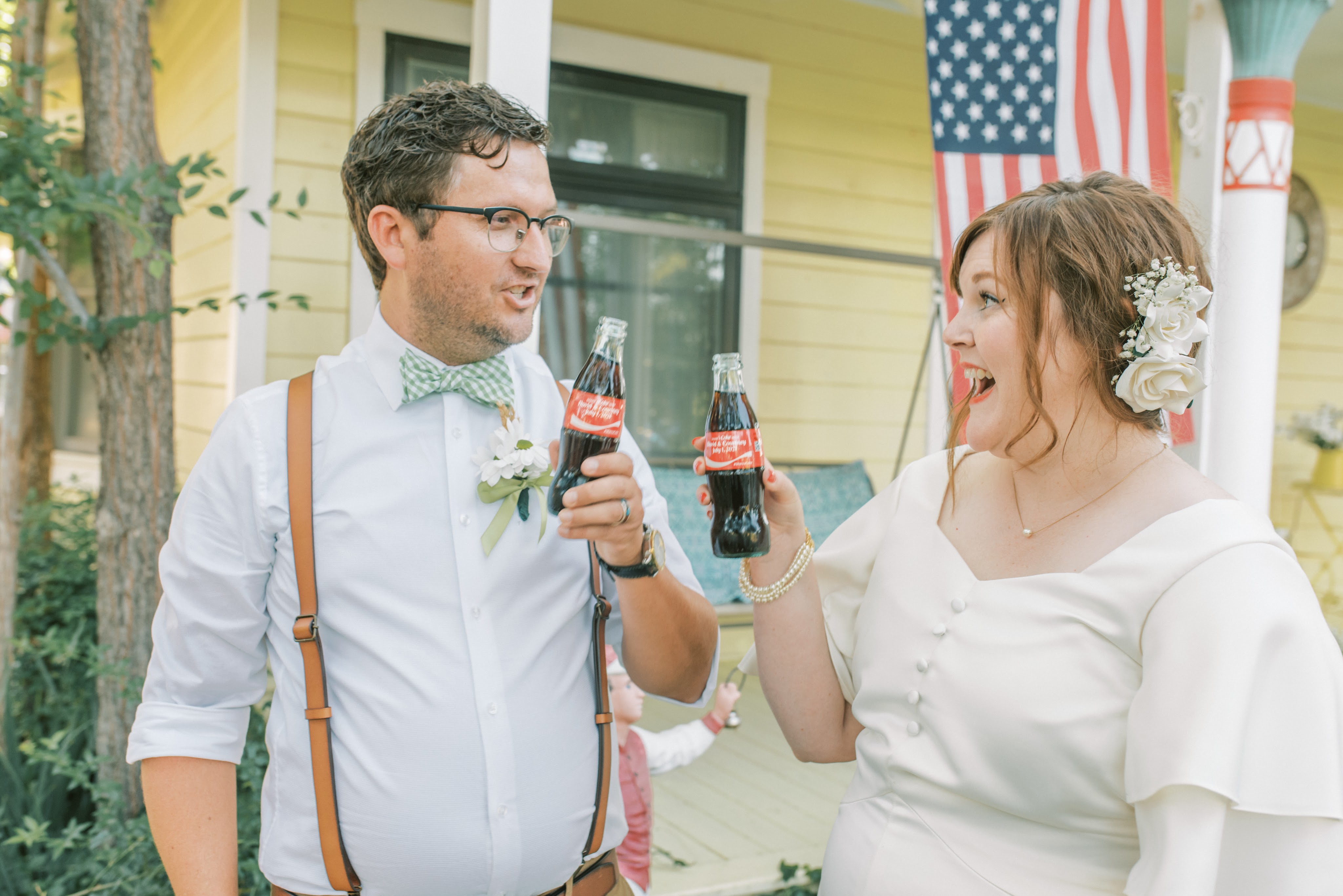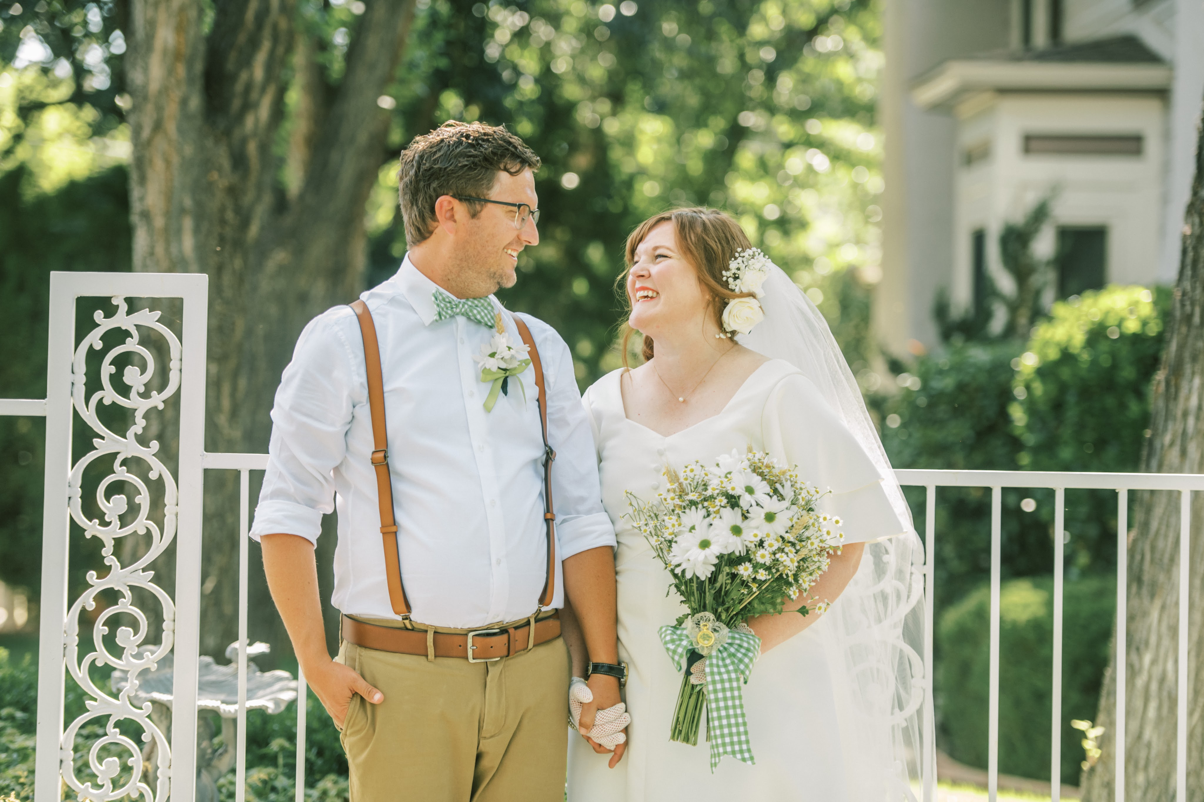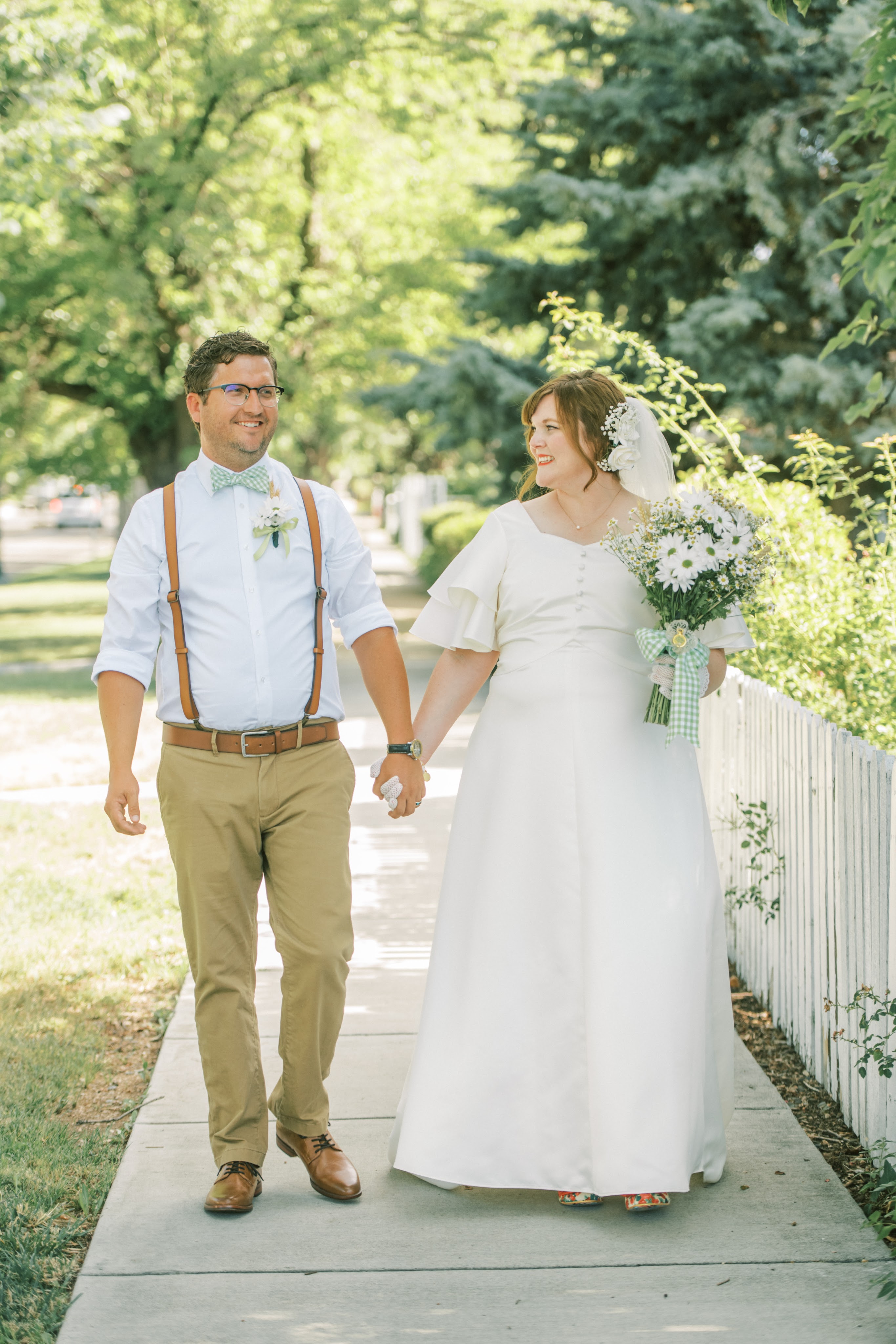 David and I got married on July 1, 2021 in Prescott, Arizona on the front porch of a darling historic yellow home affectionately called The Virginia Dollhouse. It was small and intimate, with only our parents and a few siblings that helped with the wedding: My sister’s boyfriend, Mike, married us, and my sister Shannon did my hair and make-up. The plan was to have a sweet and small wedding and then later have a large reception with family and friends, but for the actual wedding day, I wanted to keep it simple.