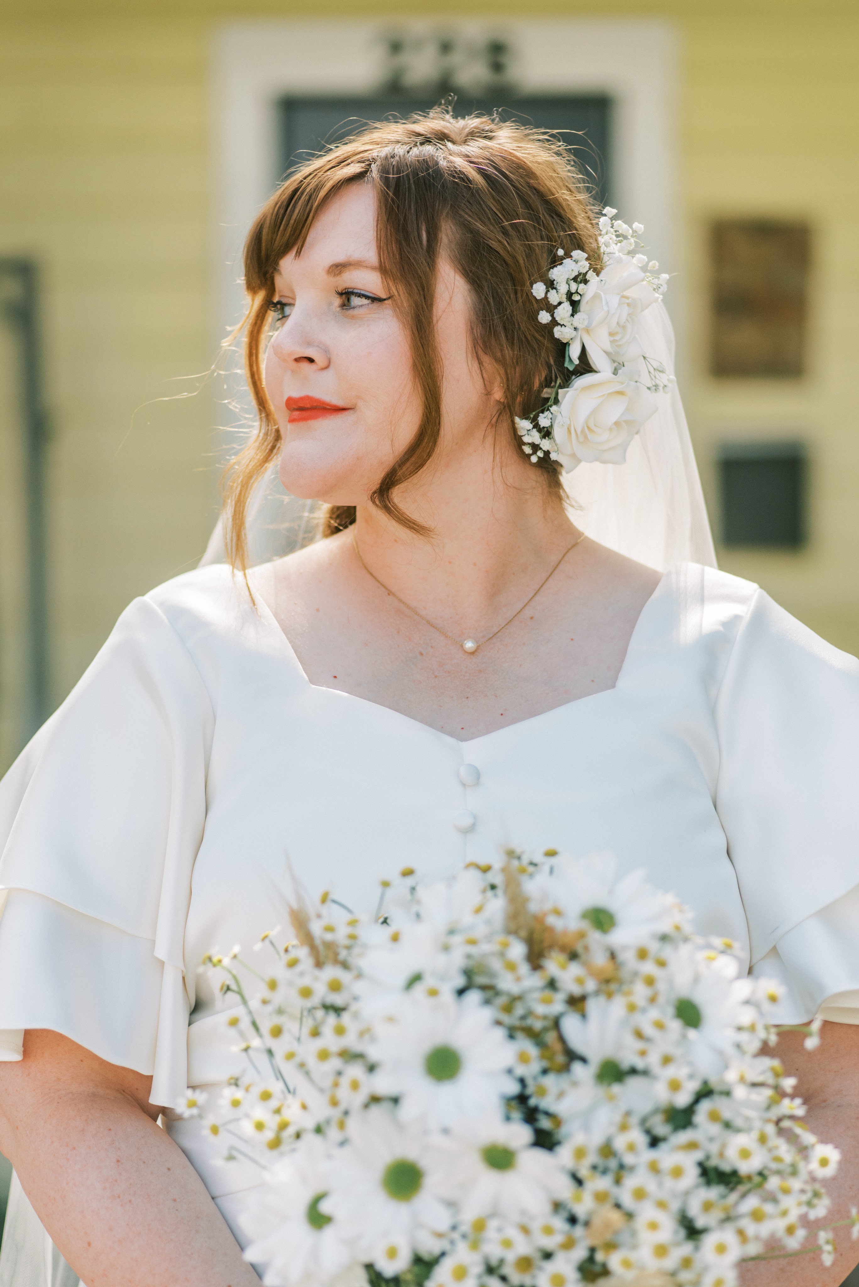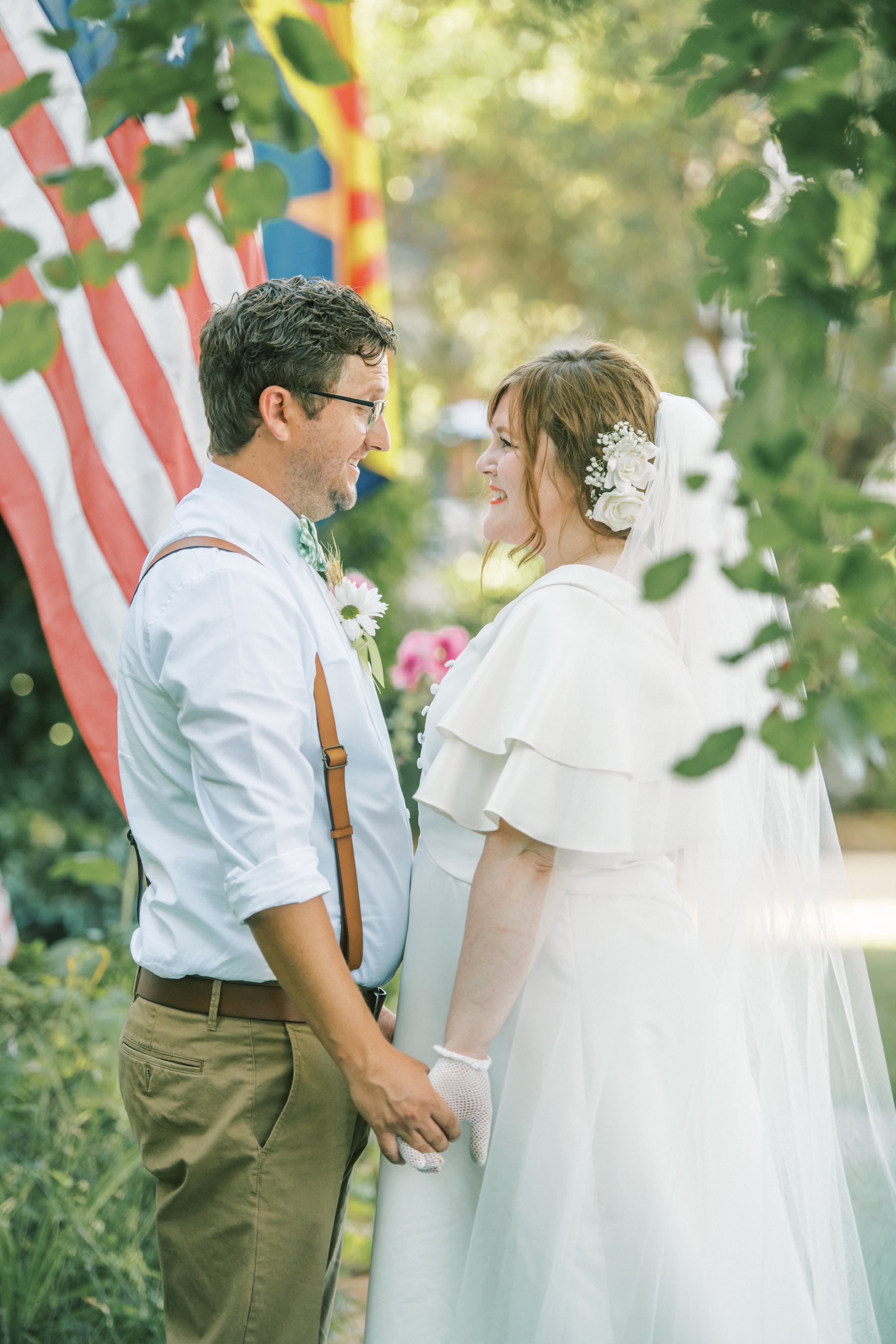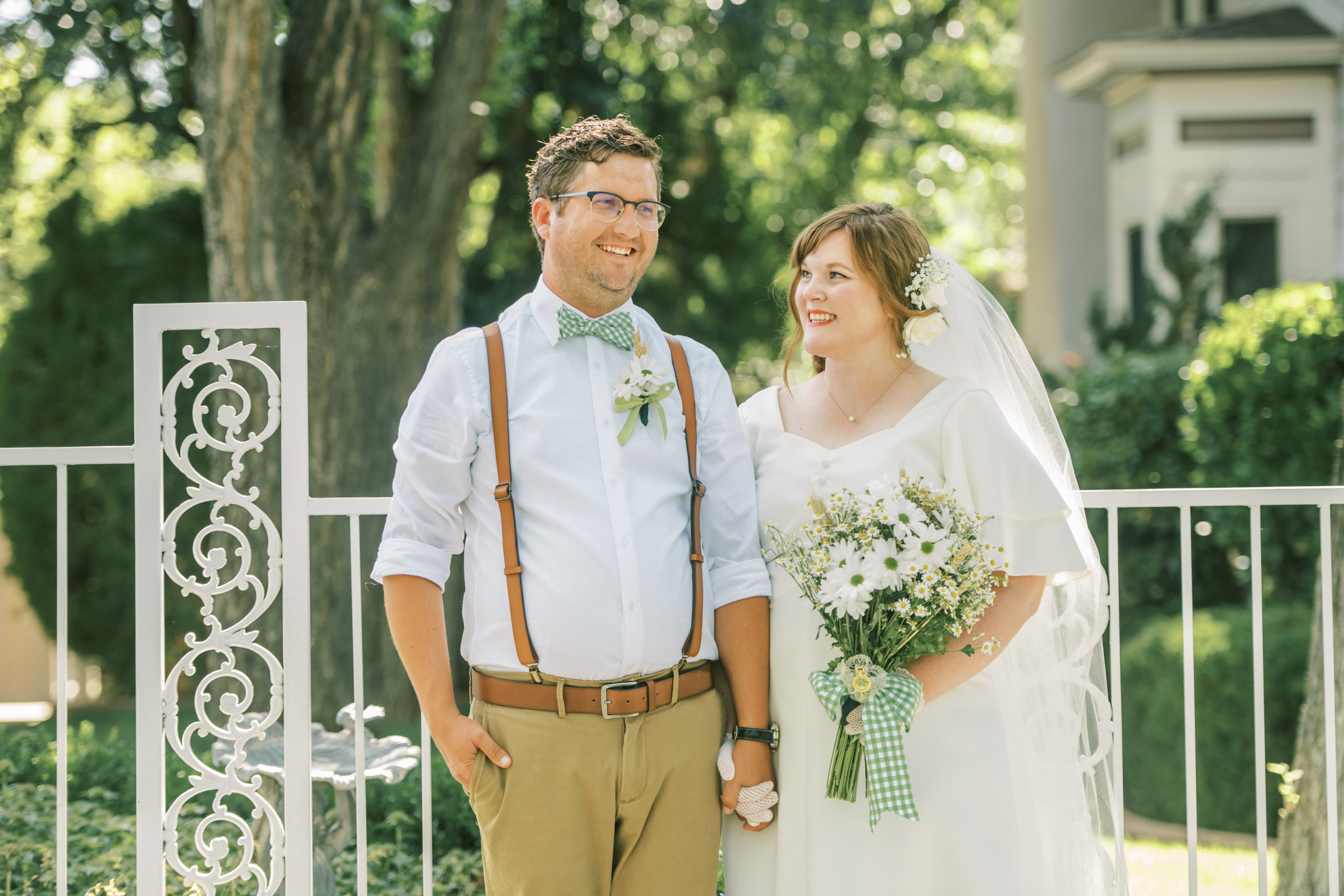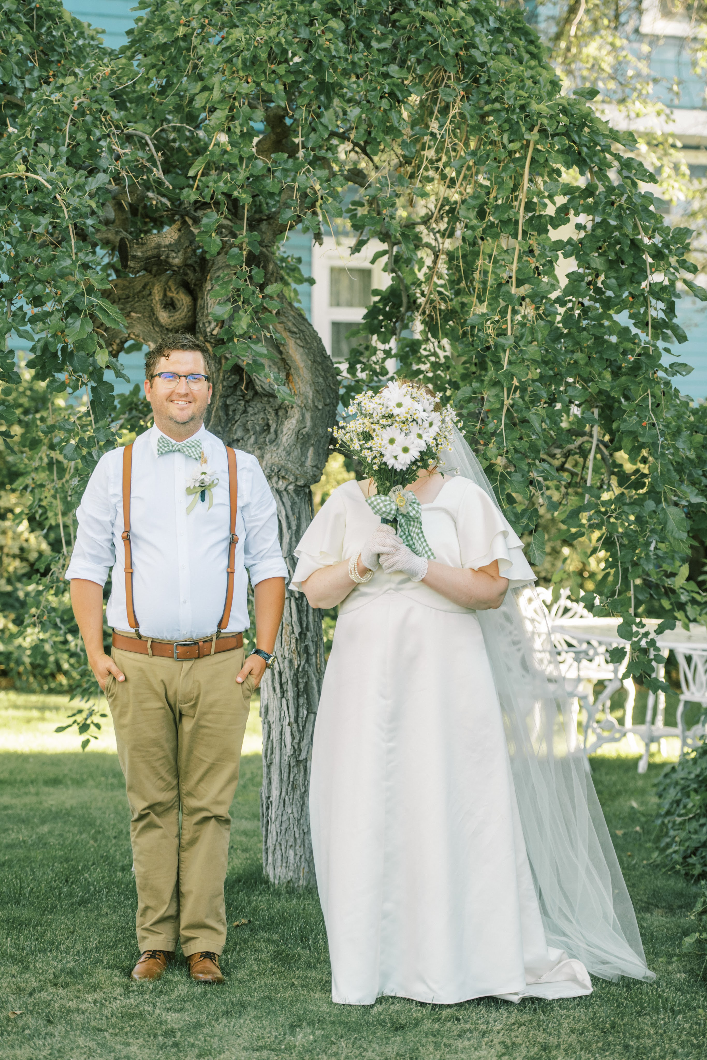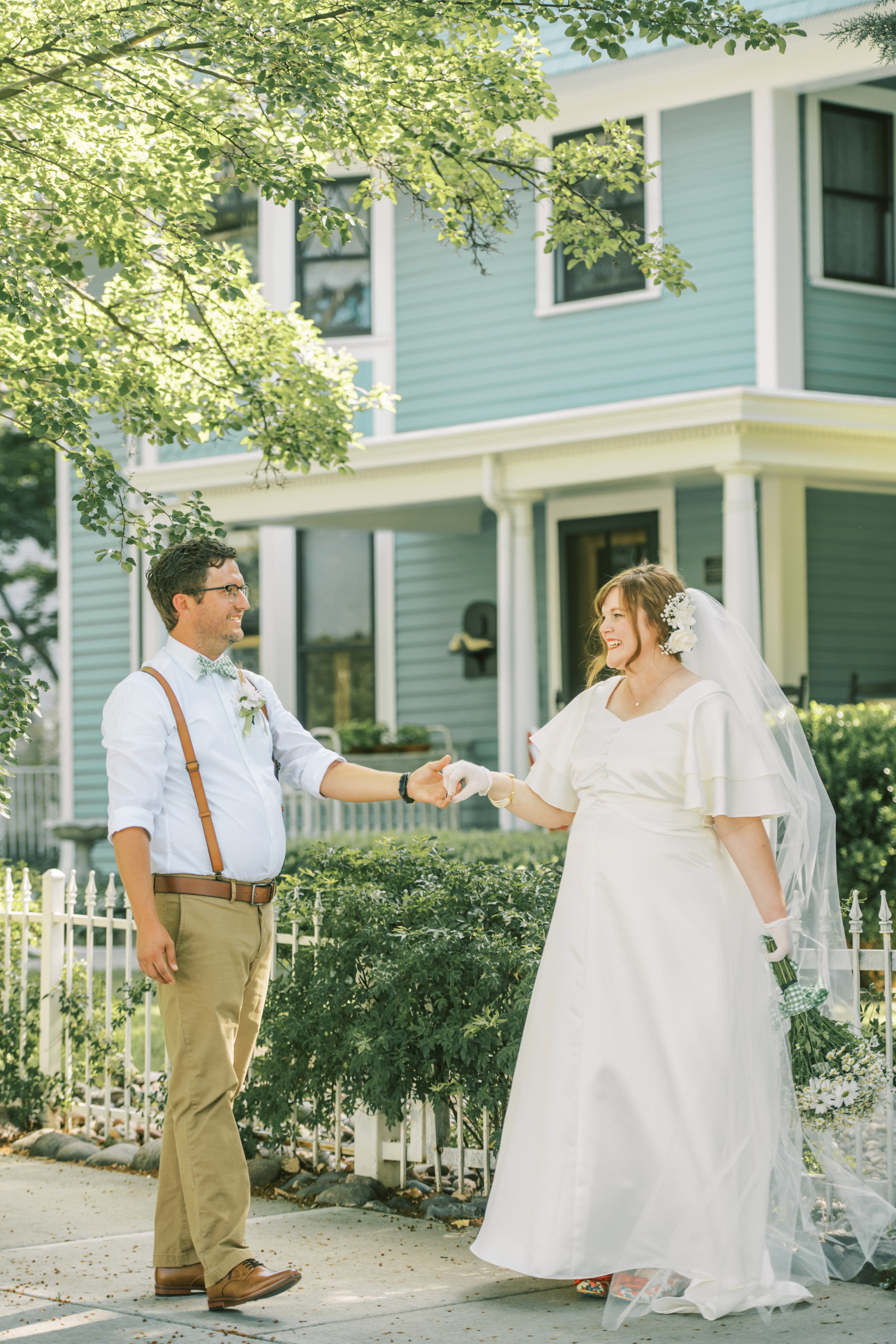 David and I got married on July 1, 2021 in Prescott, Arizona on the front porch of a darling historic yellow home affectionately called The Virginia Dollhouse. It was small and intimate, with only our parents and a few siblings that helped with the wedding: My sister’s boyfriend, Mike, married us, and my sister Shannon did my hair and make-up. The plan was to have a sweet and small wedding and then later have a large reception with family and friends, but for the actual wedding day, I wanted to keep it simple.