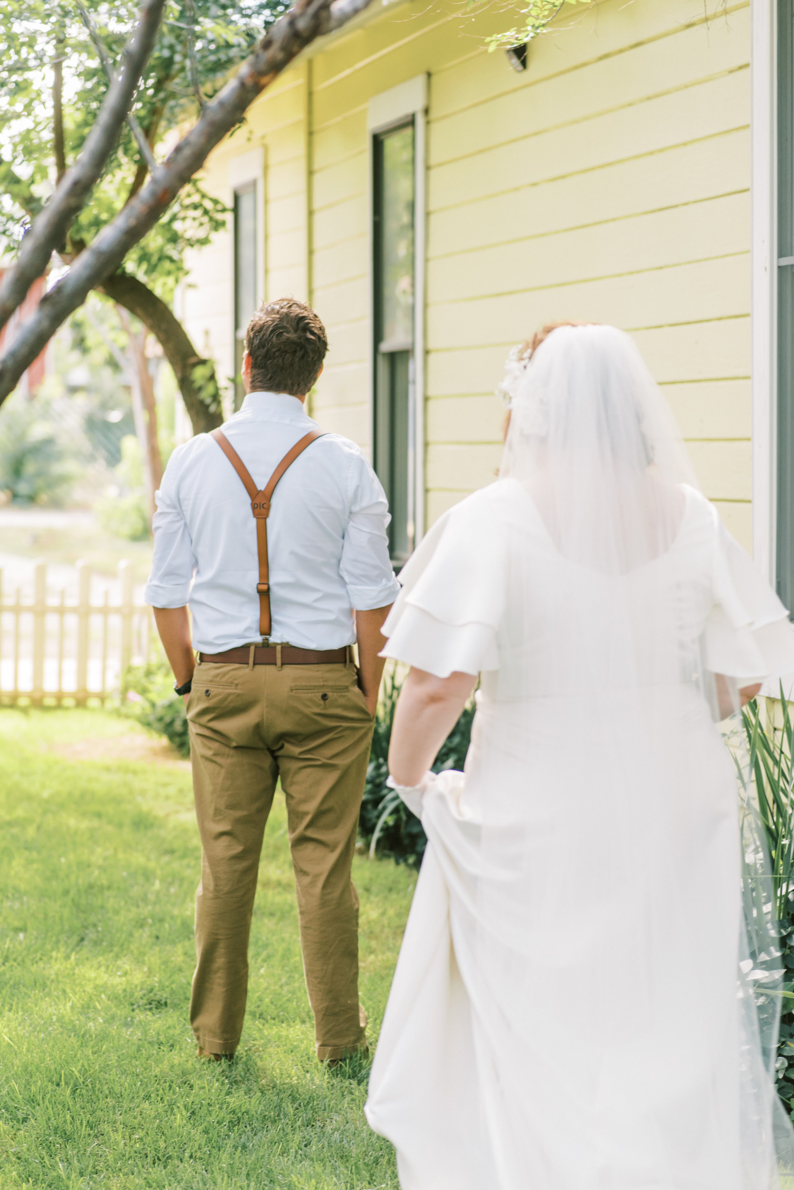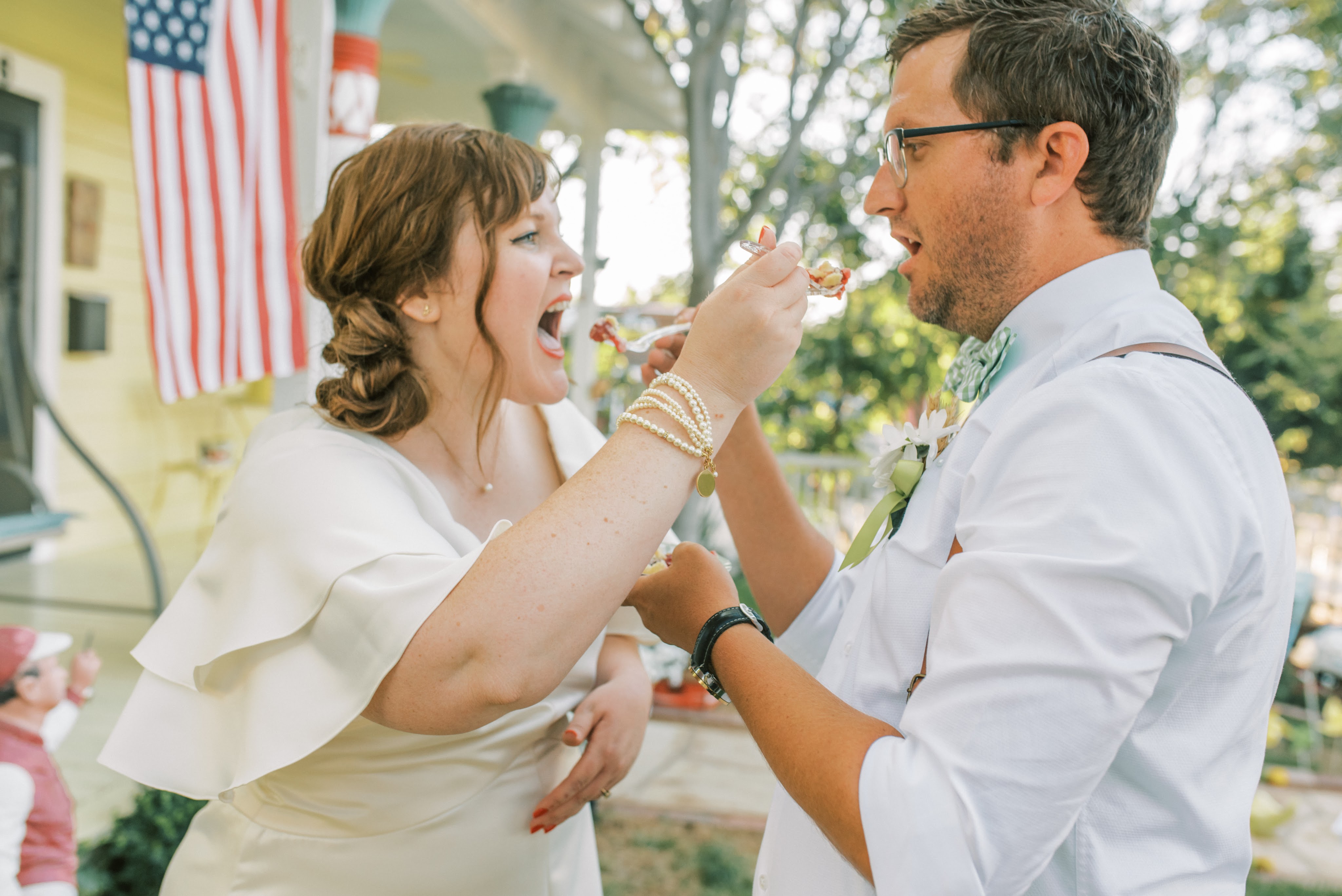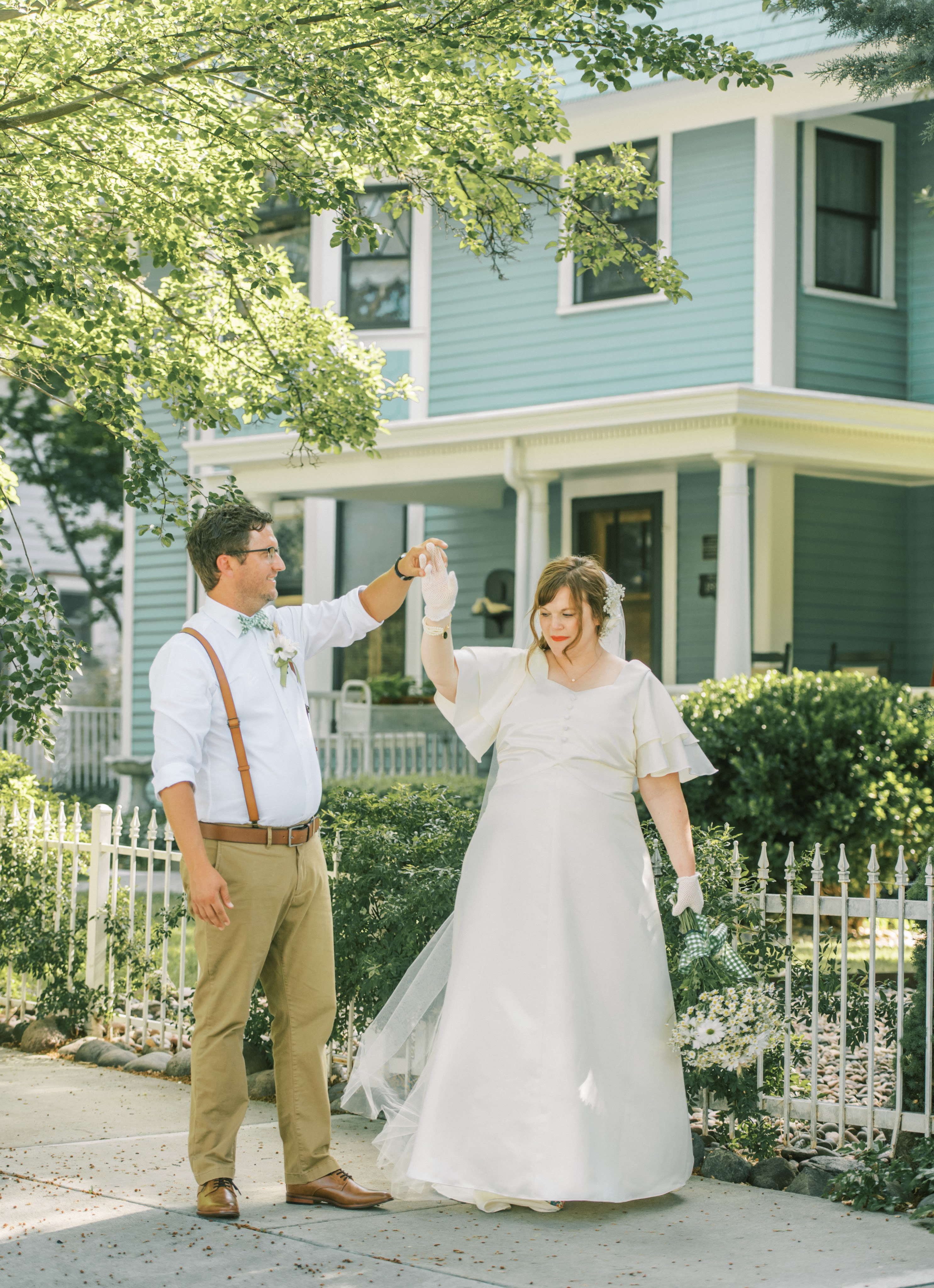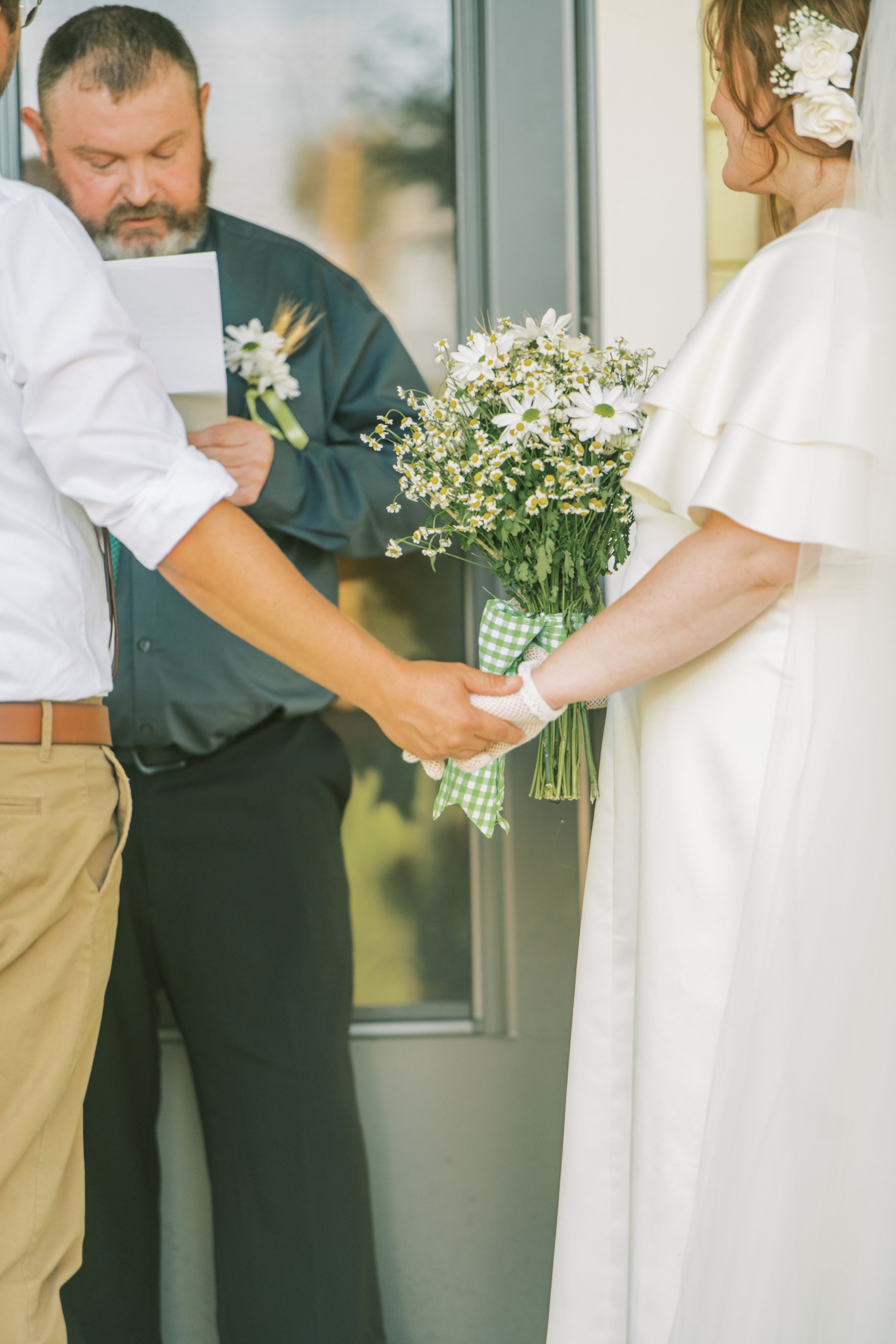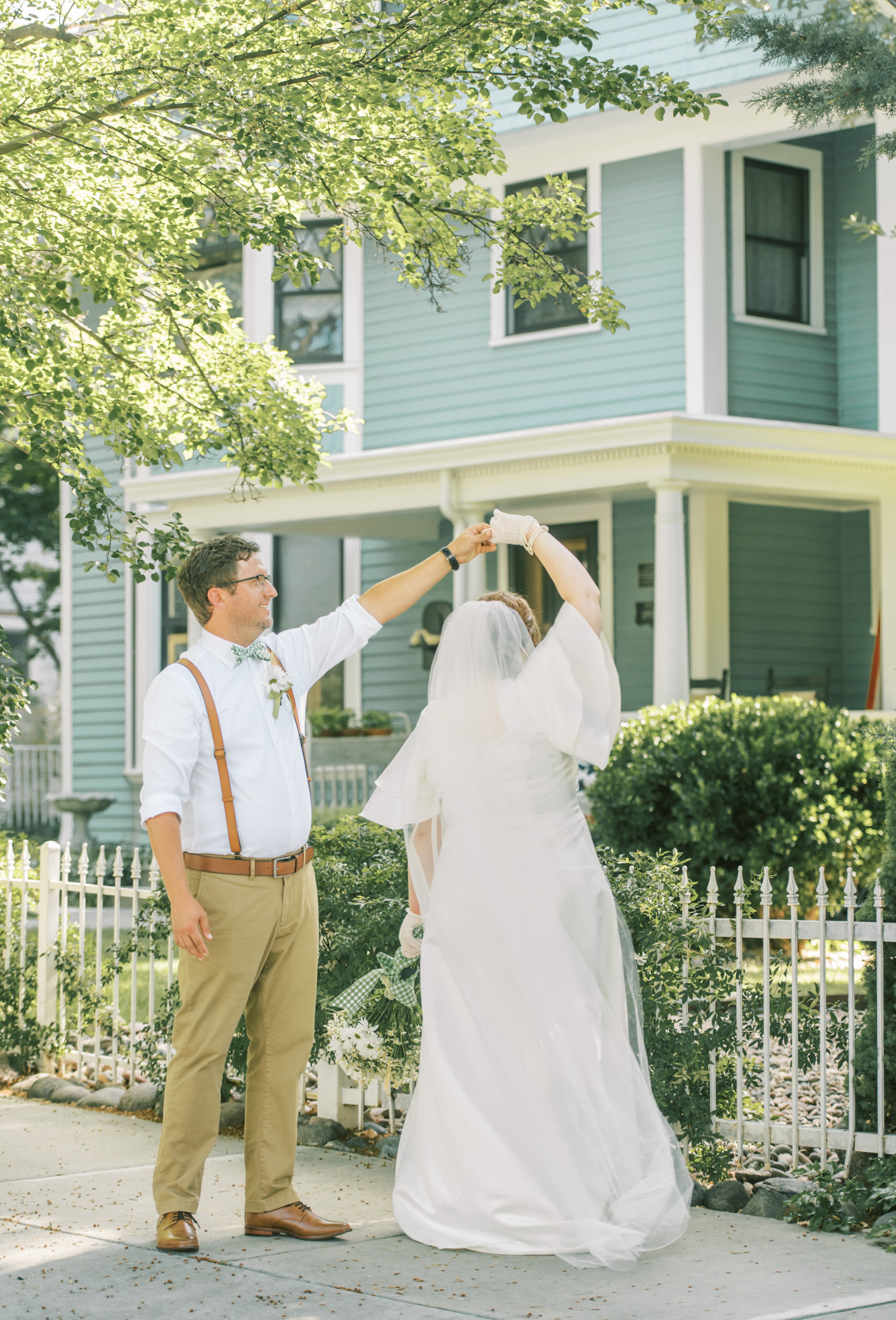 David and I got married on July 1, 2021 in Prescott, Arizona on the front porch of a darling historic yellow home affectionately called The Virginia Dollhouse. It was small and intimate, with only our parents and a few siblings that helped with the wedding: My sister’s boyfriend, Mike, married us, and my sister Shannon did my hair and make-up. The plan was to have a sweet and small wedding and then later have a large reception with family and friends, but for the actual wedding day, I wanted to keep it simple.