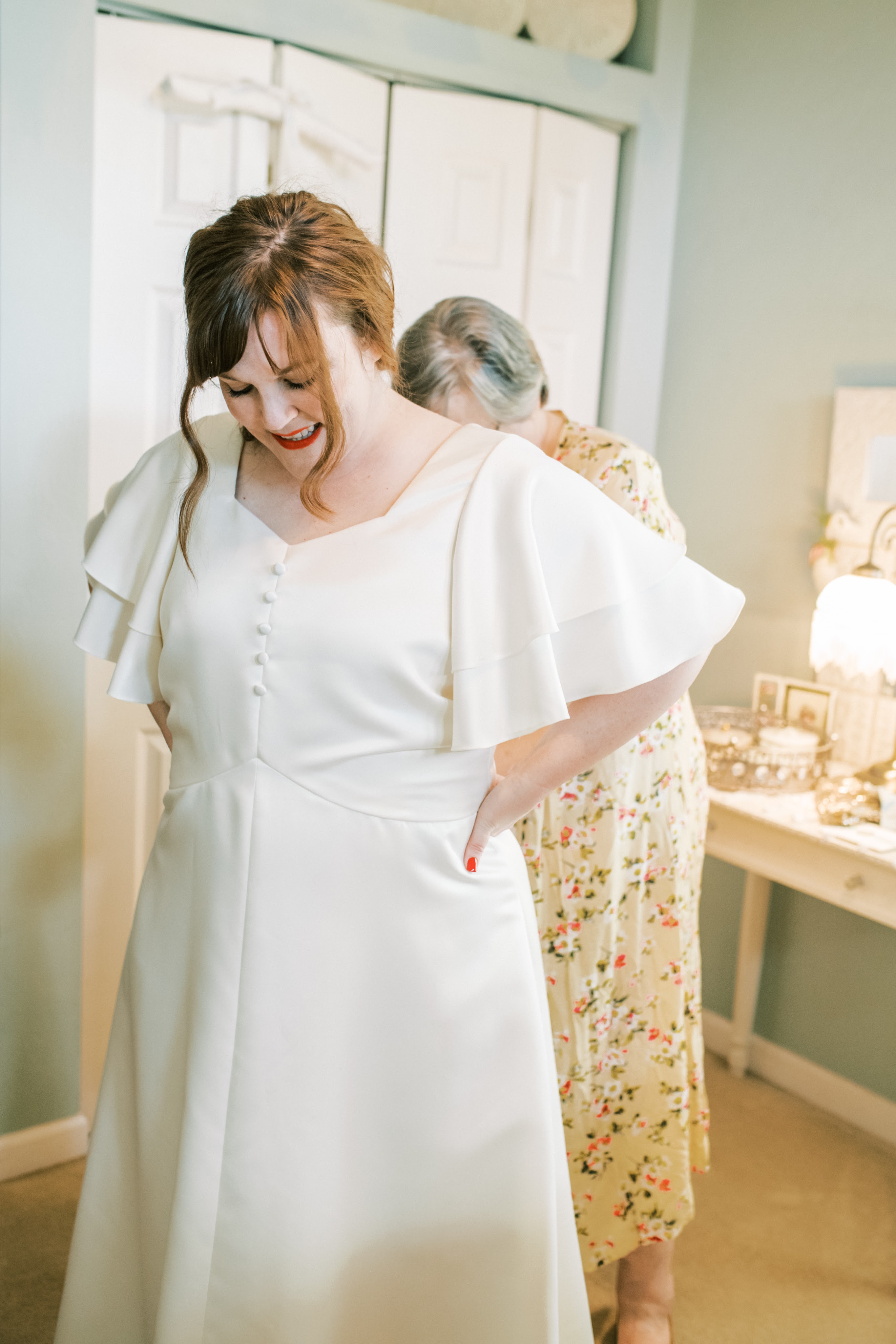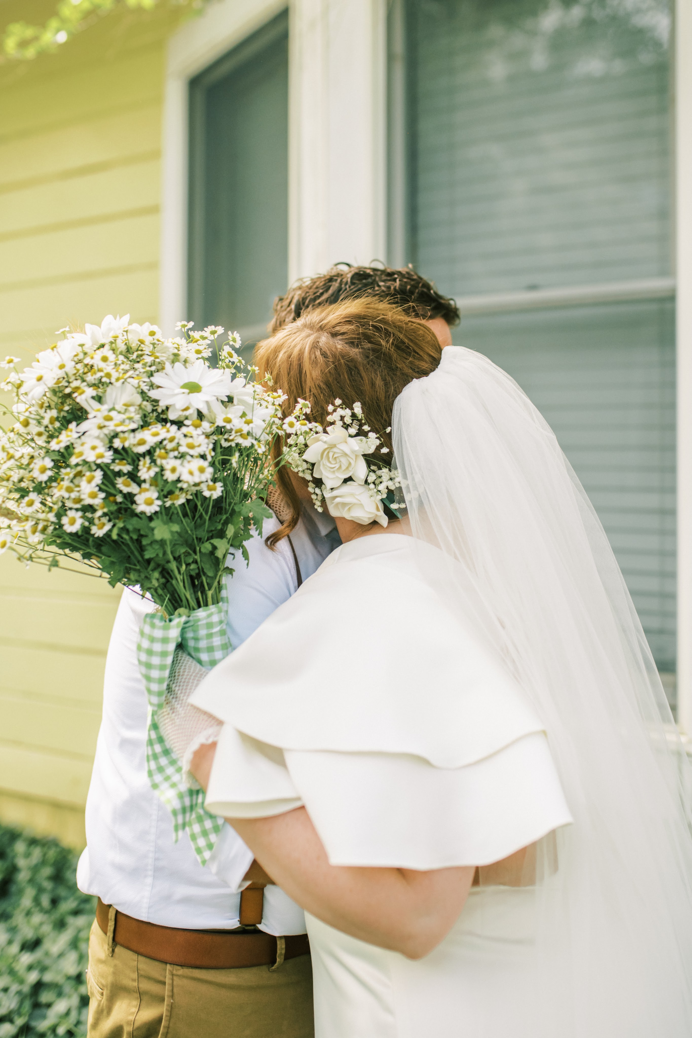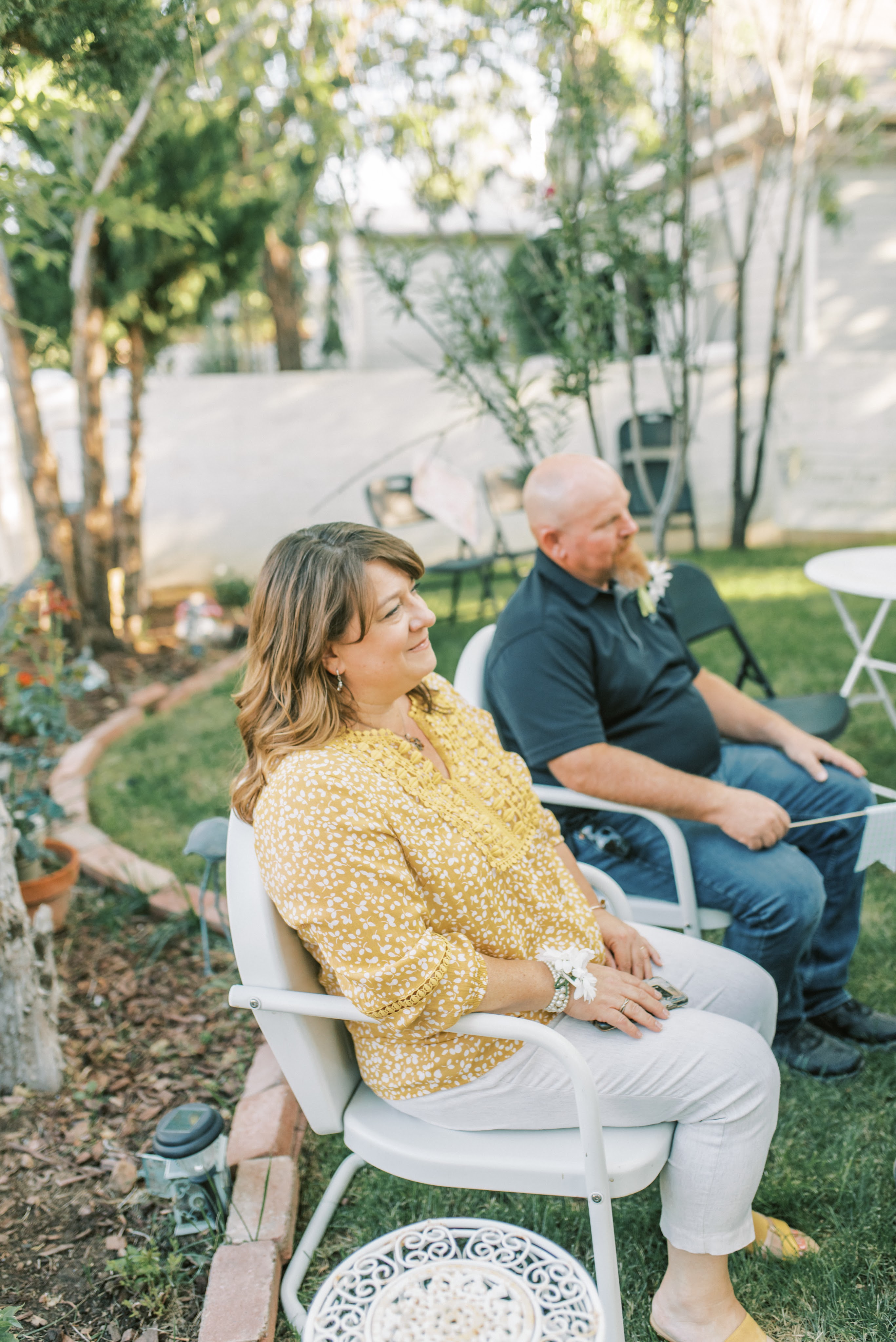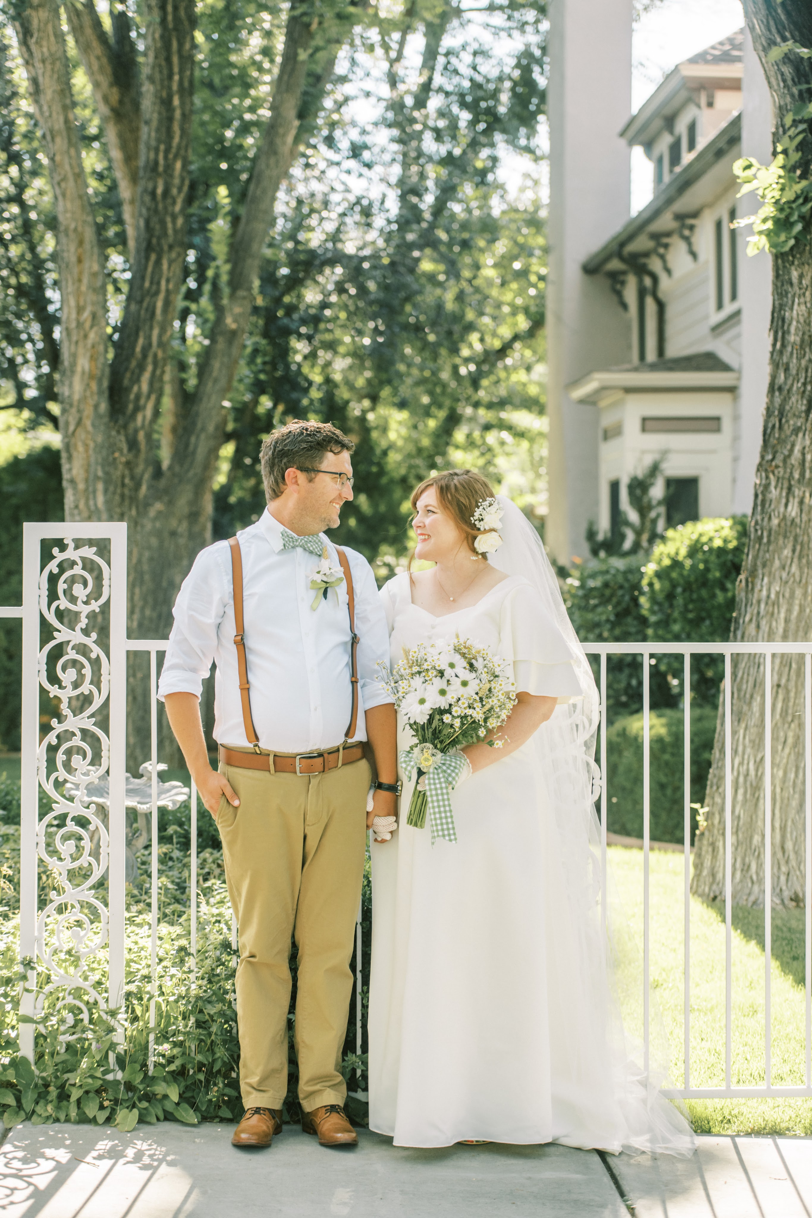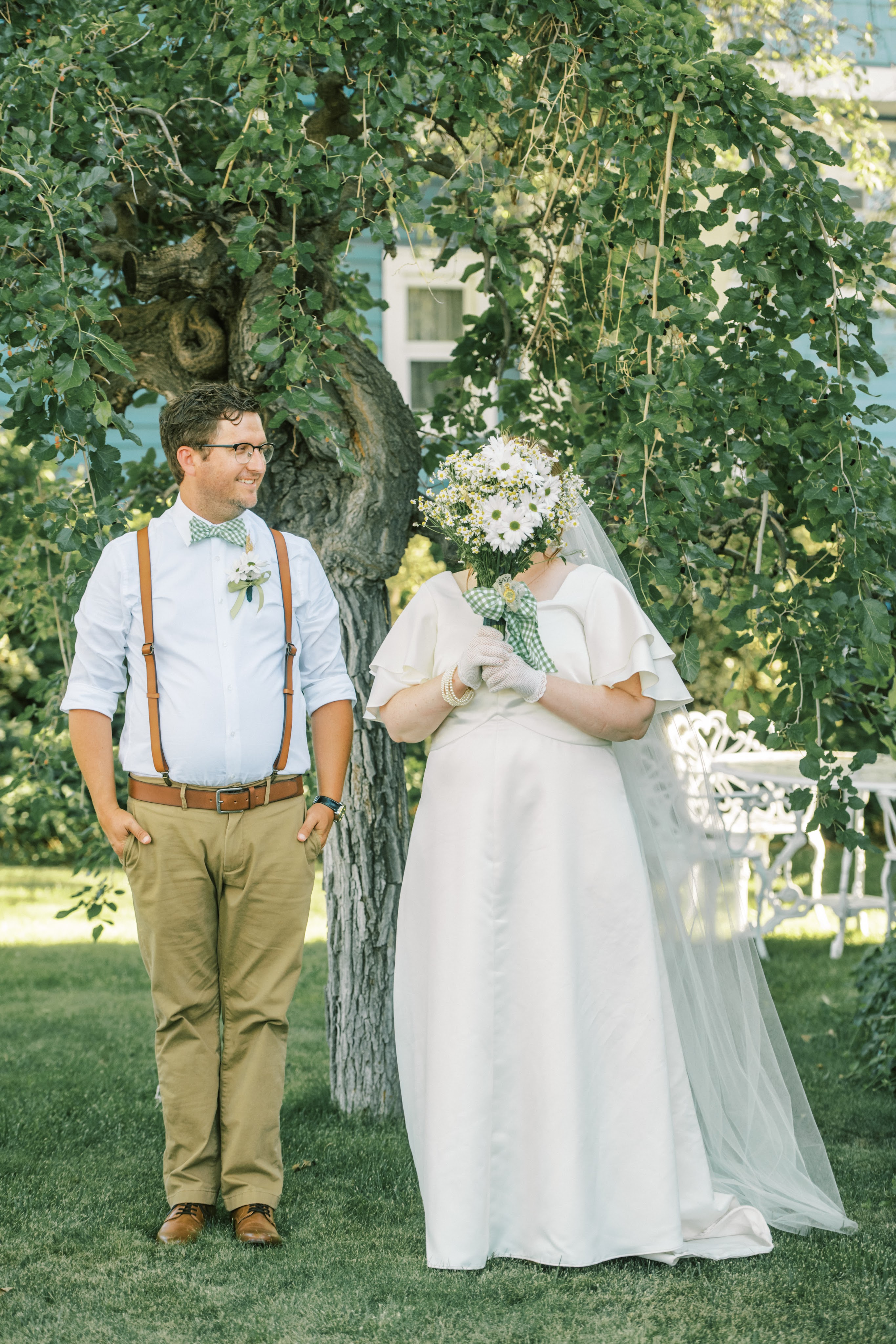 David and I got married on July 1, 2021 in Prescott, Arizona on the front porch of a darling historic yellow home affectionately called The Virginia Dollhouse. It was small and intimate, with only our parents and a few siblings that helped with the wedding: My sister’s boyfriend, Mike, married us, and my sister Shannon did my hair and make-up. The plan was to have a sweet and small wedding and then later have a large reception with family and friends, but for the actual wedding day, I wanted to keep it simple.