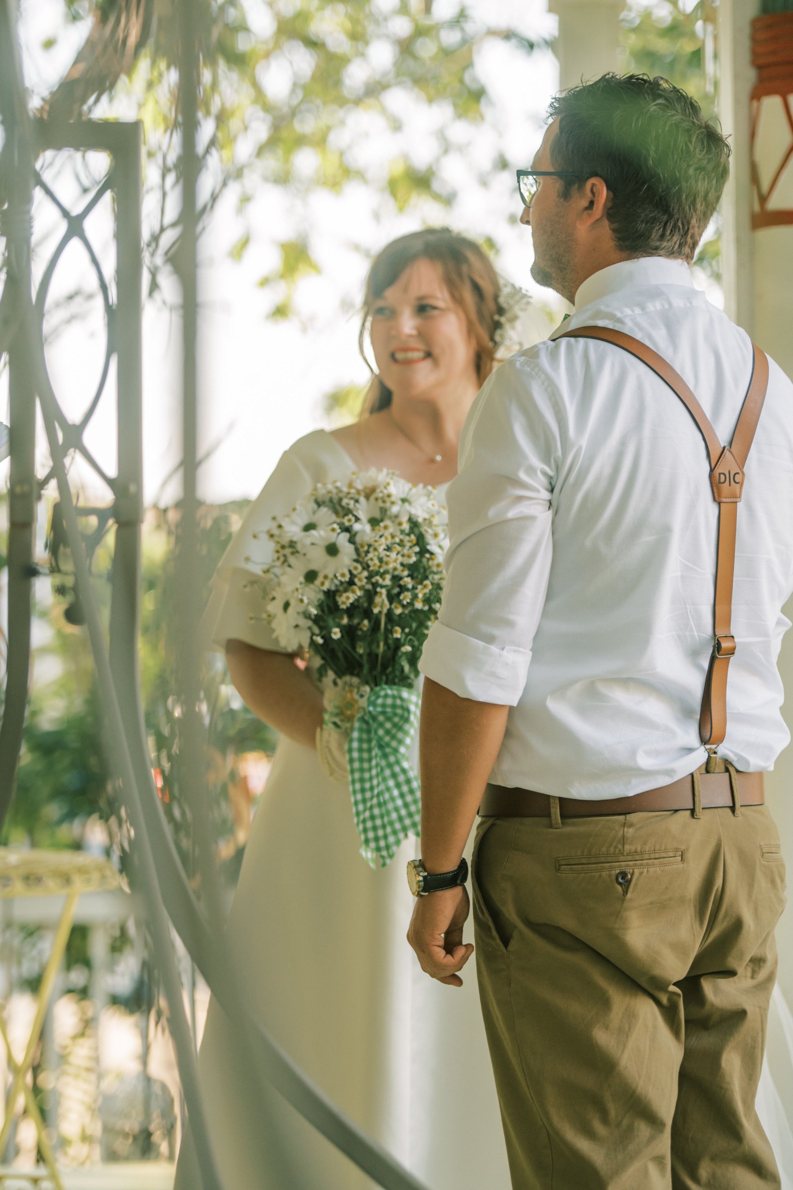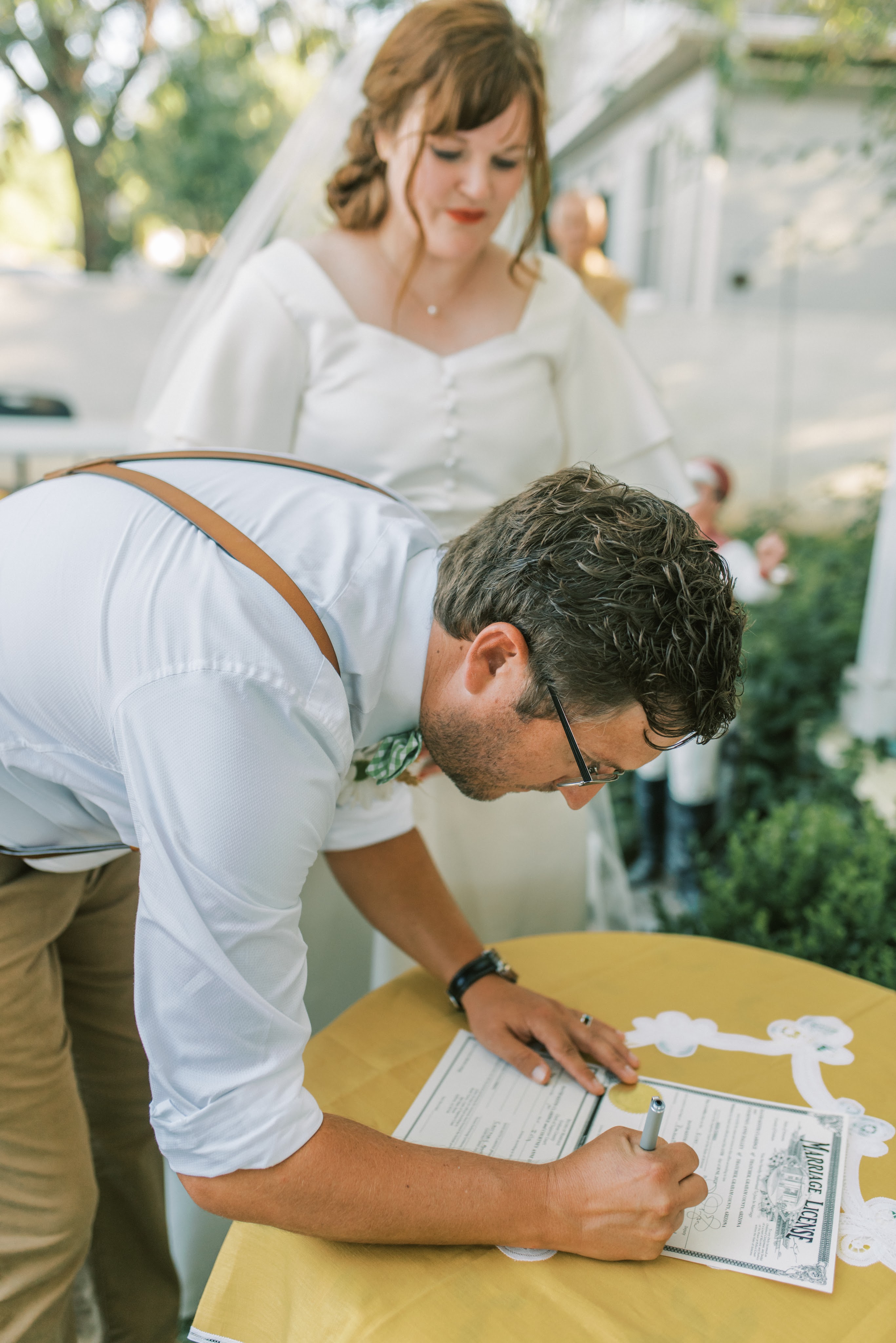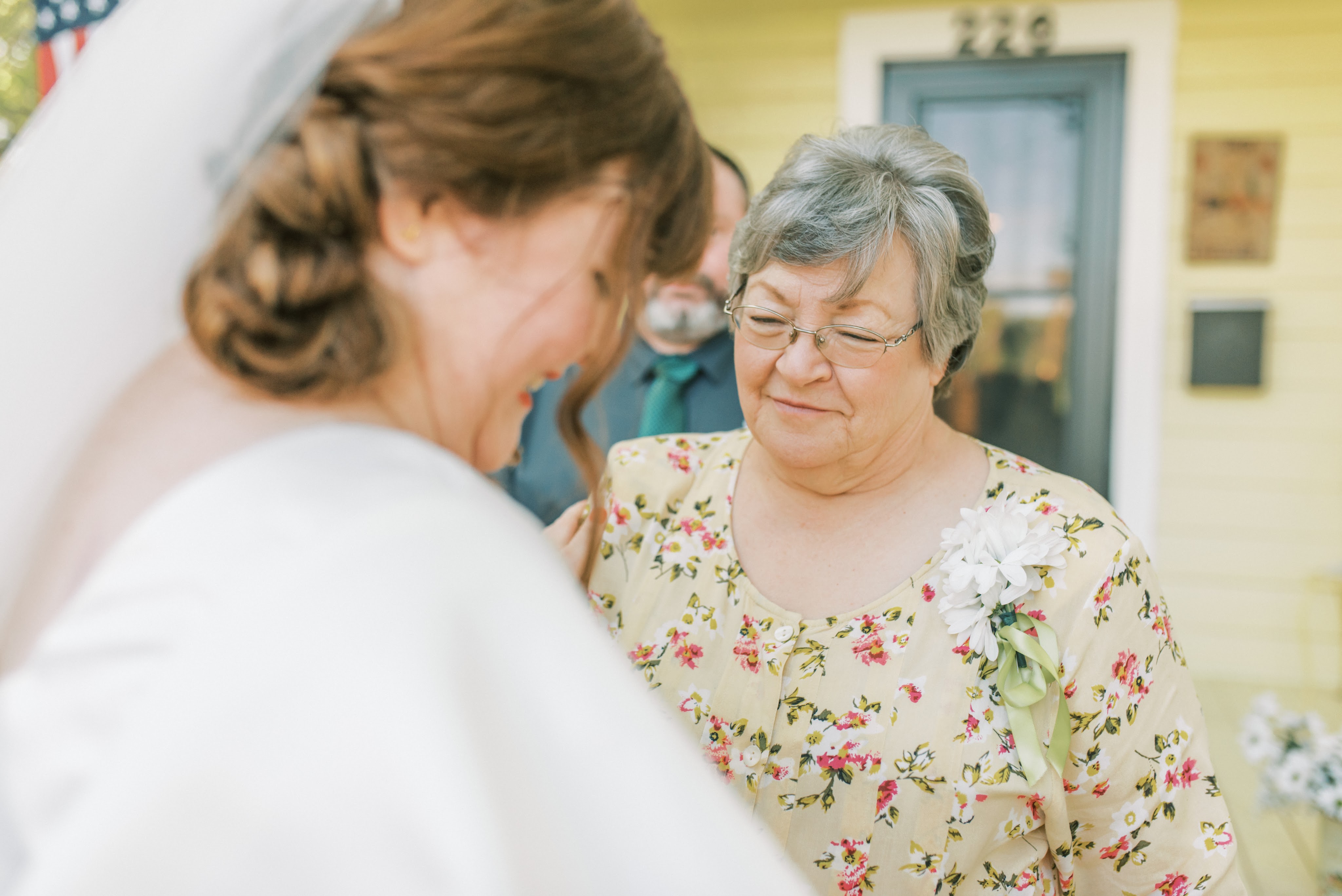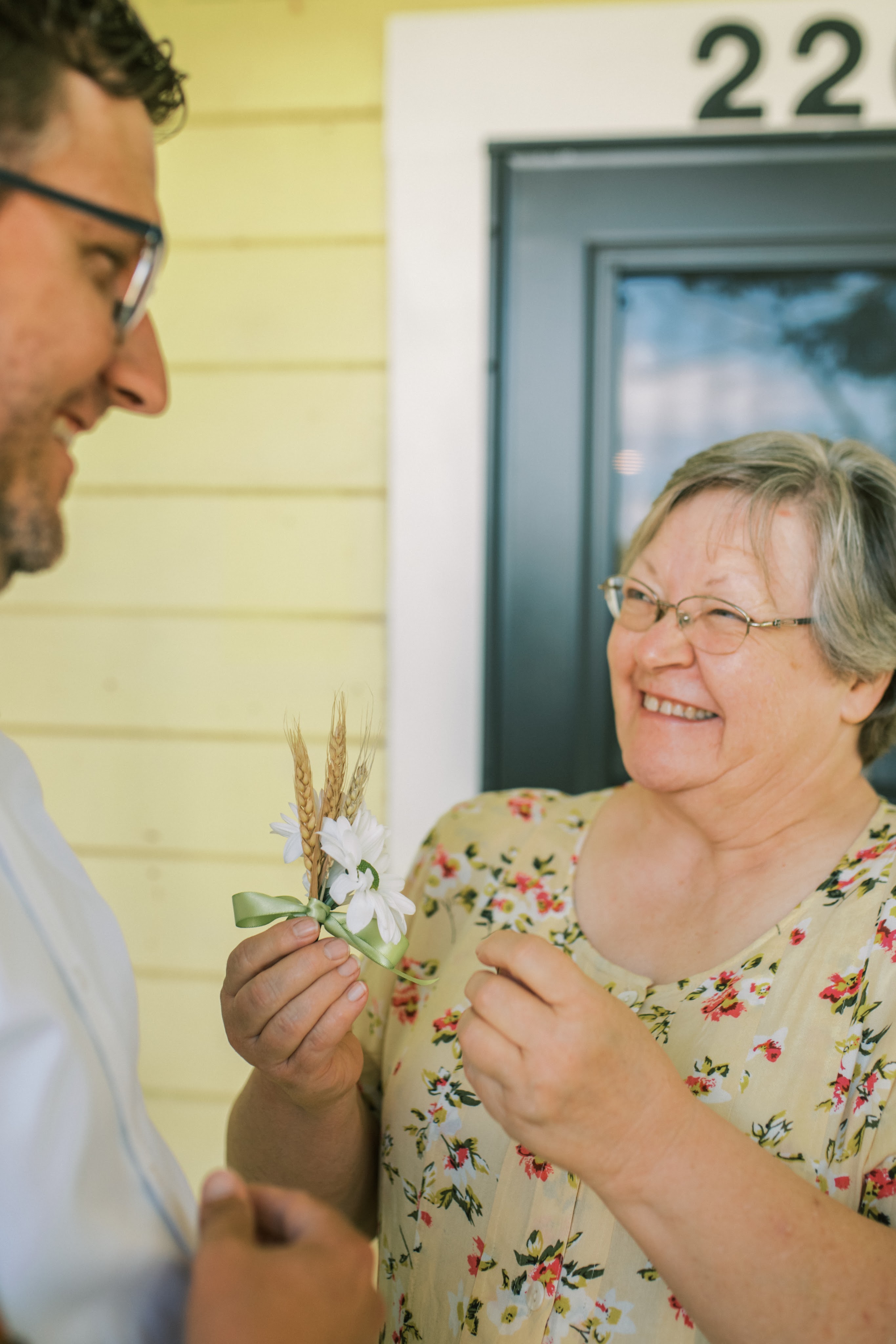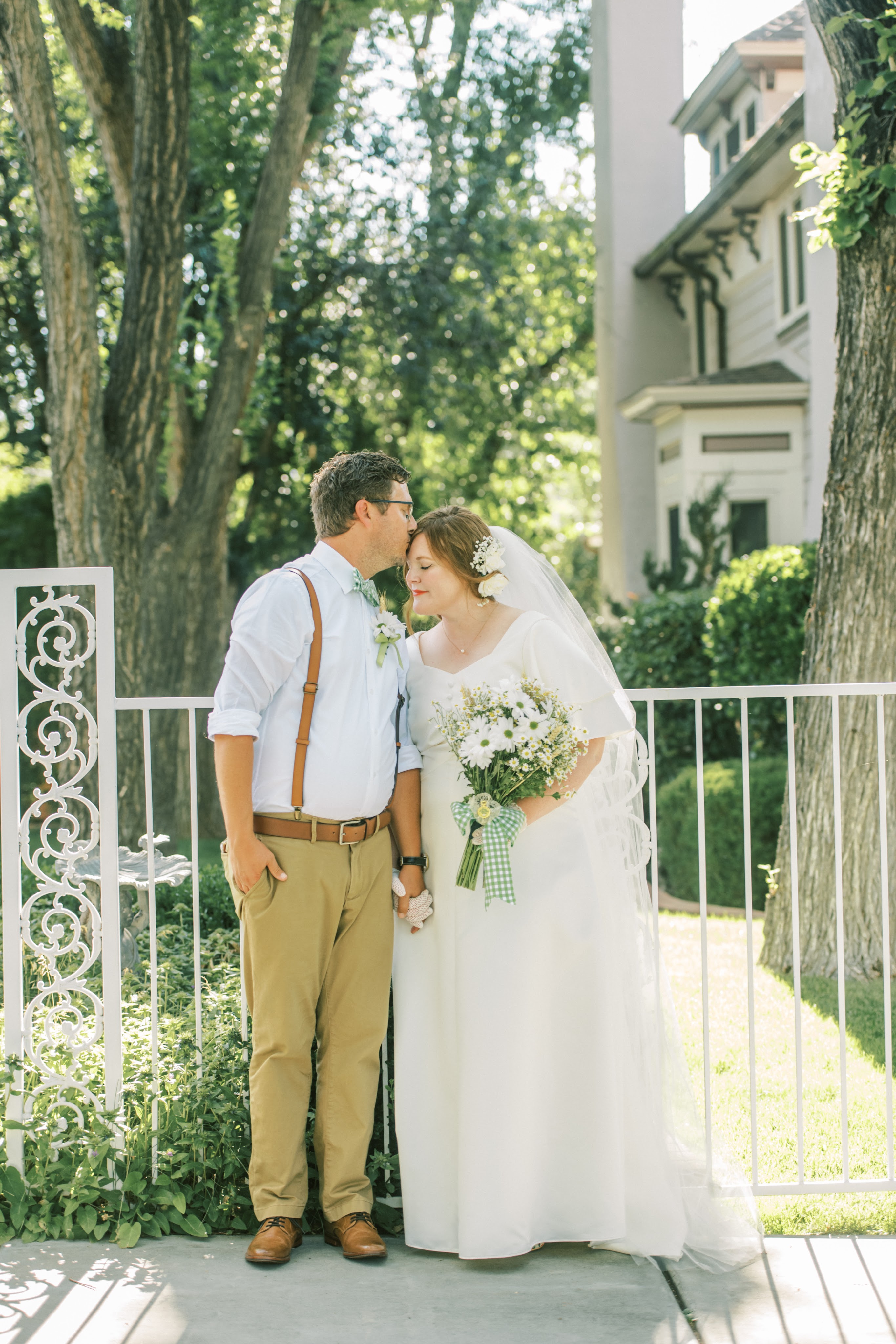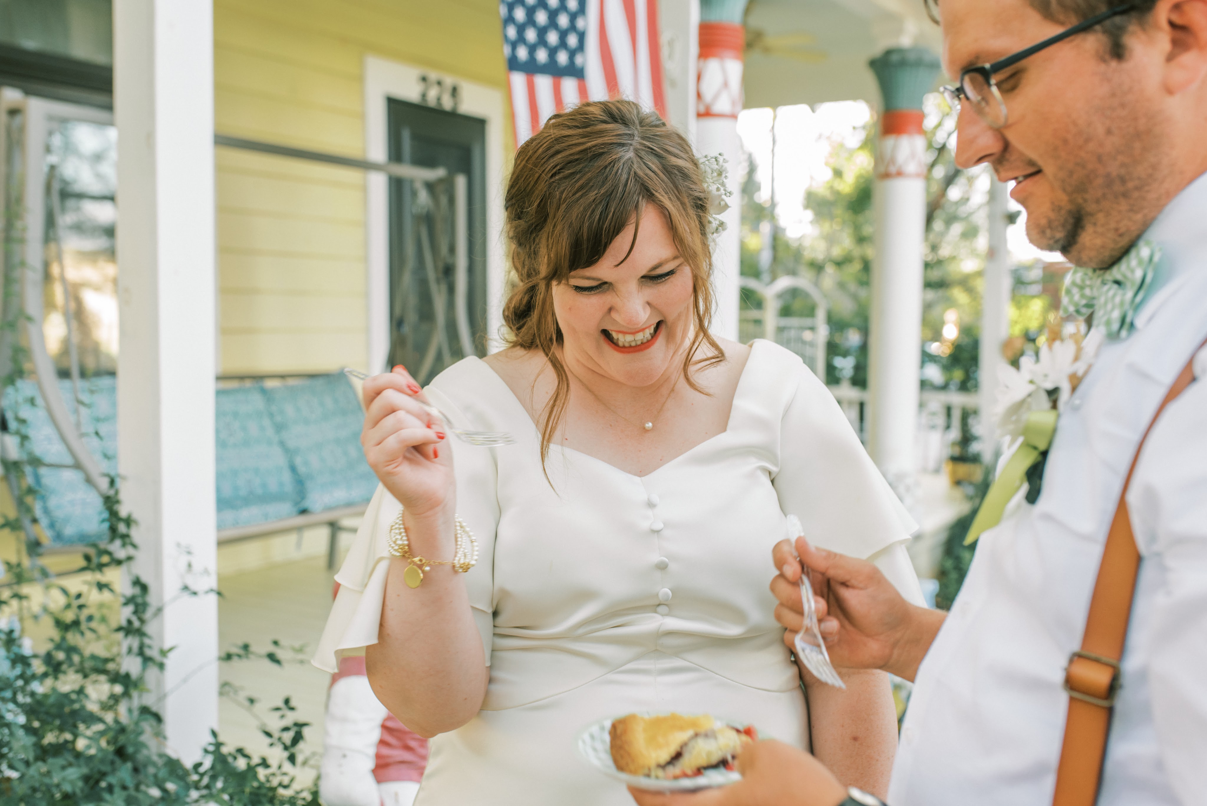 David and I got married on July 1, 2021 in Prescott, Arizona on the front porch of a darling historic yellow home affectionately called The Virginia Dollhouse. It was small and intimate, with only our parents and a few siblings that helped with the wedding: My sister’s boyfriend, Mike, married us, and my sister Shannon did my hair and make-up. The plan was to have a sweet and small wedding and then later have a large reception with family and friends, but for the actual wedding day, I wanted to keep it simple.
