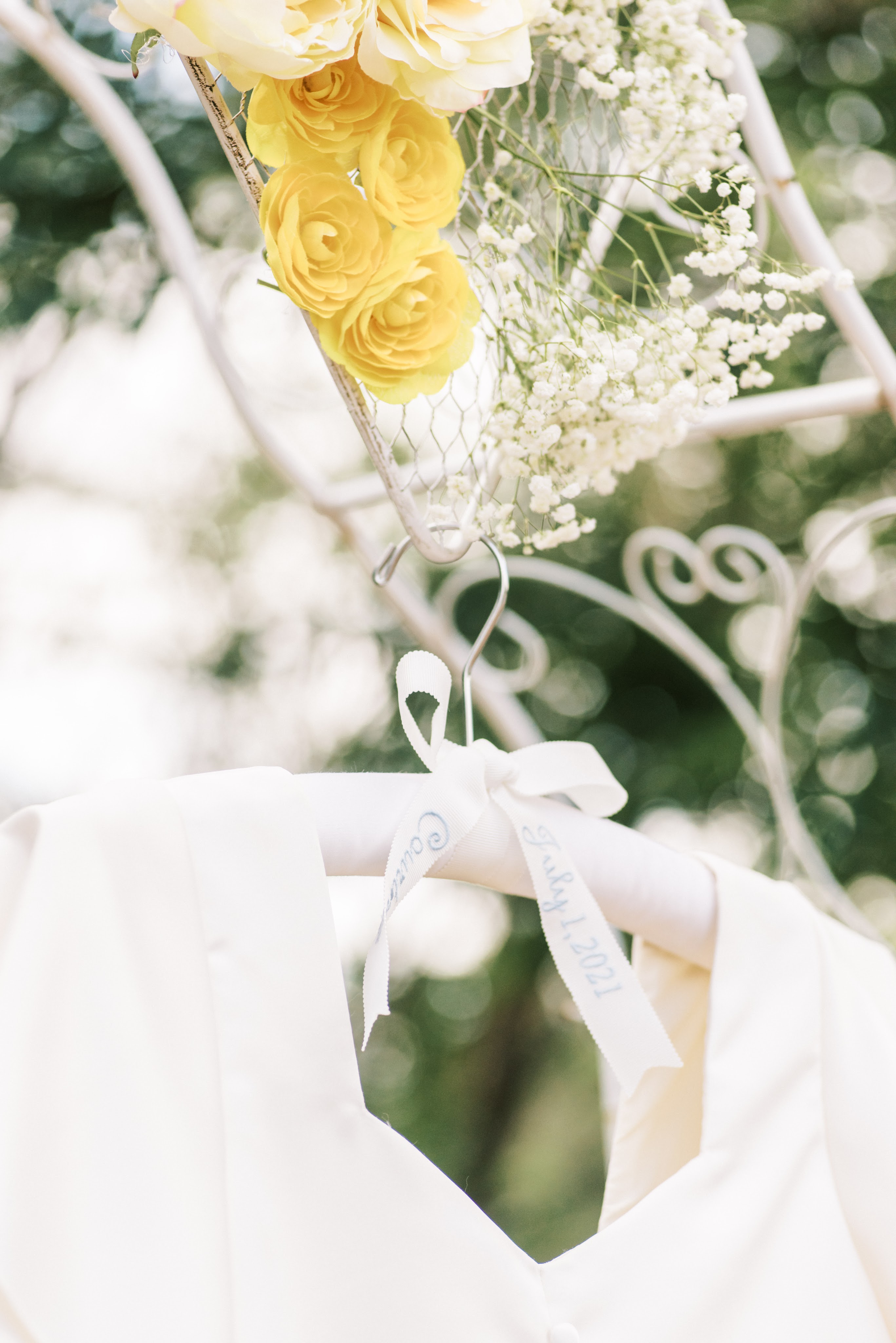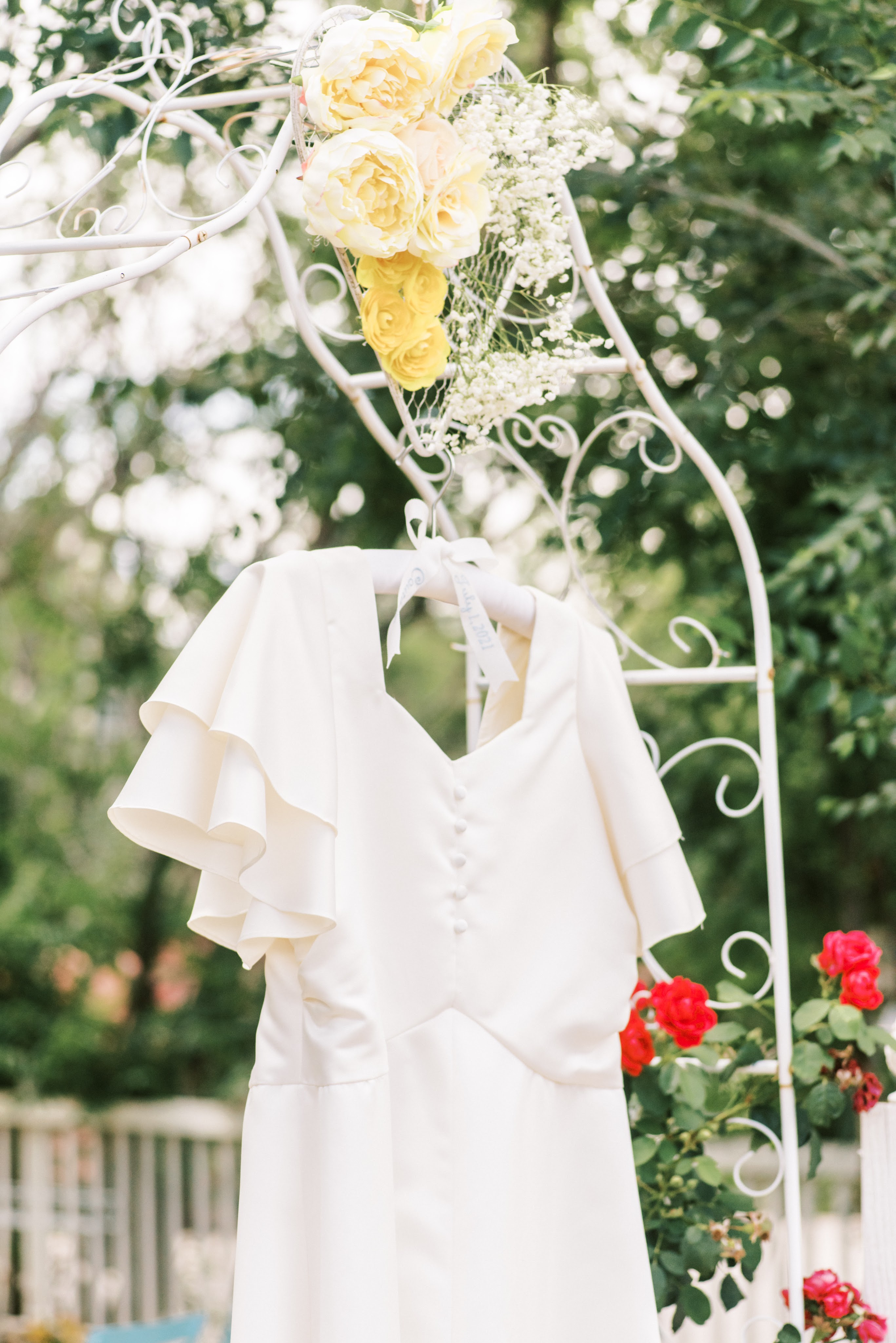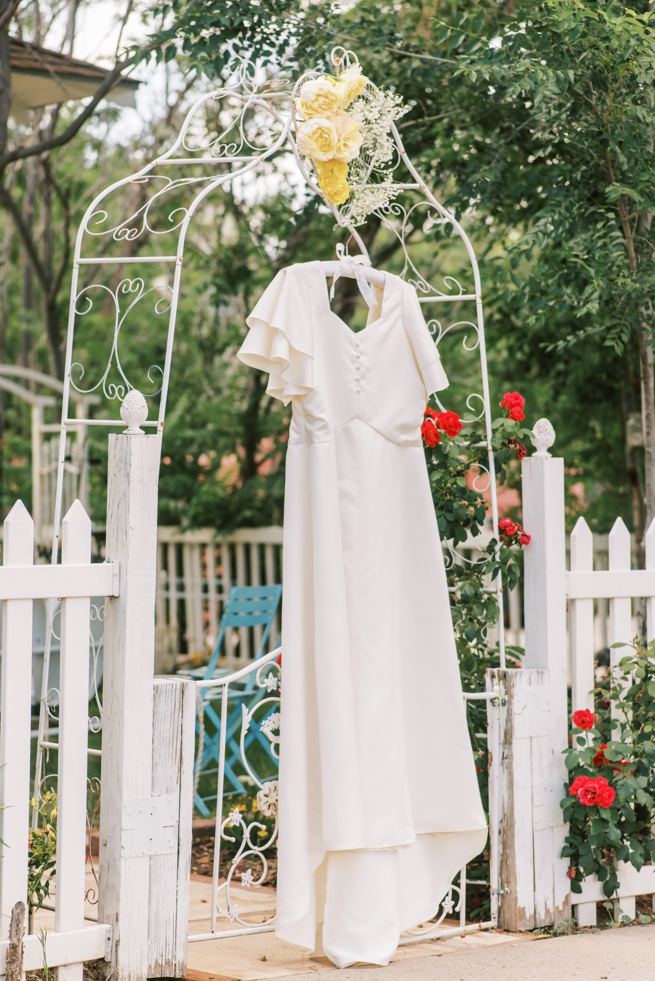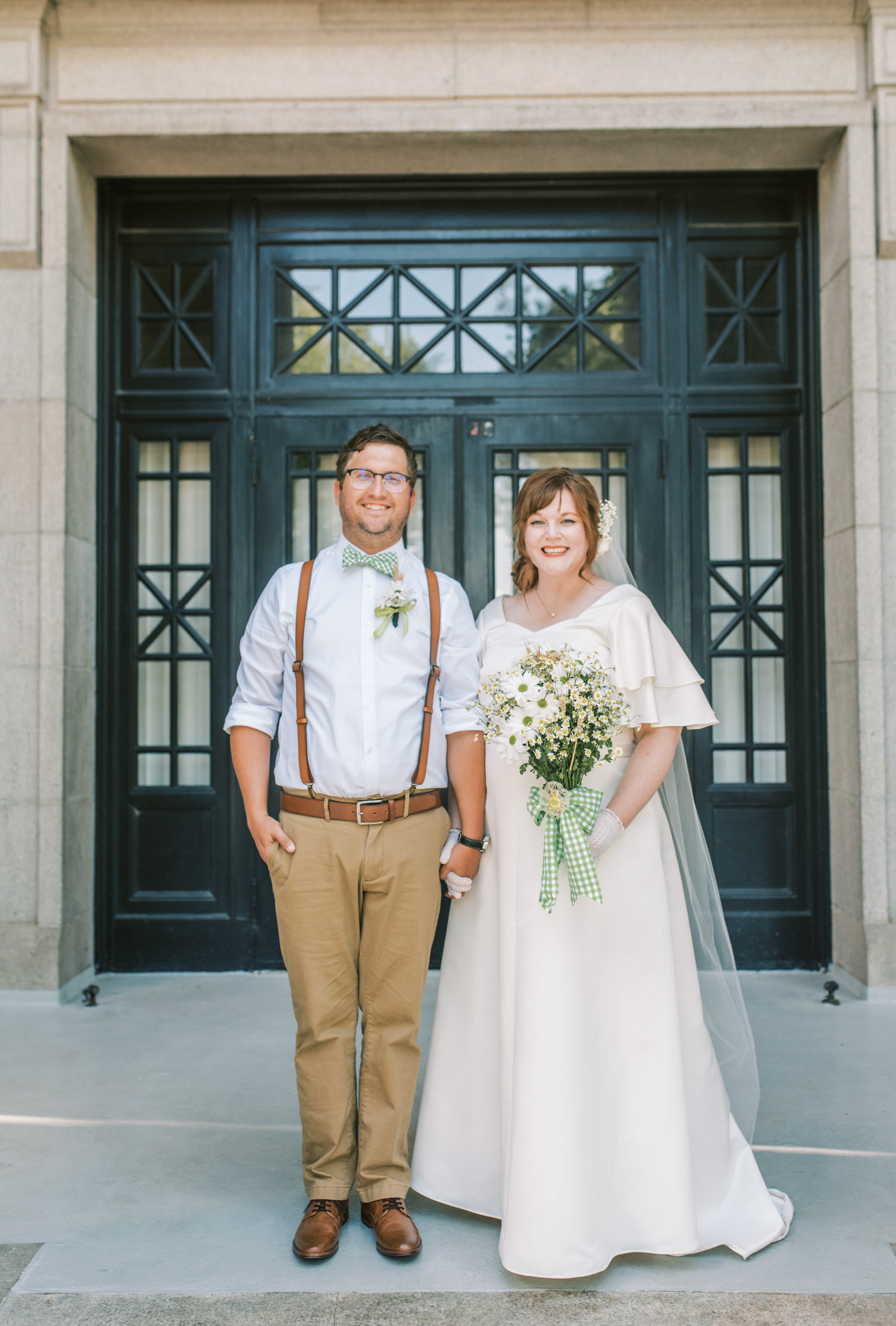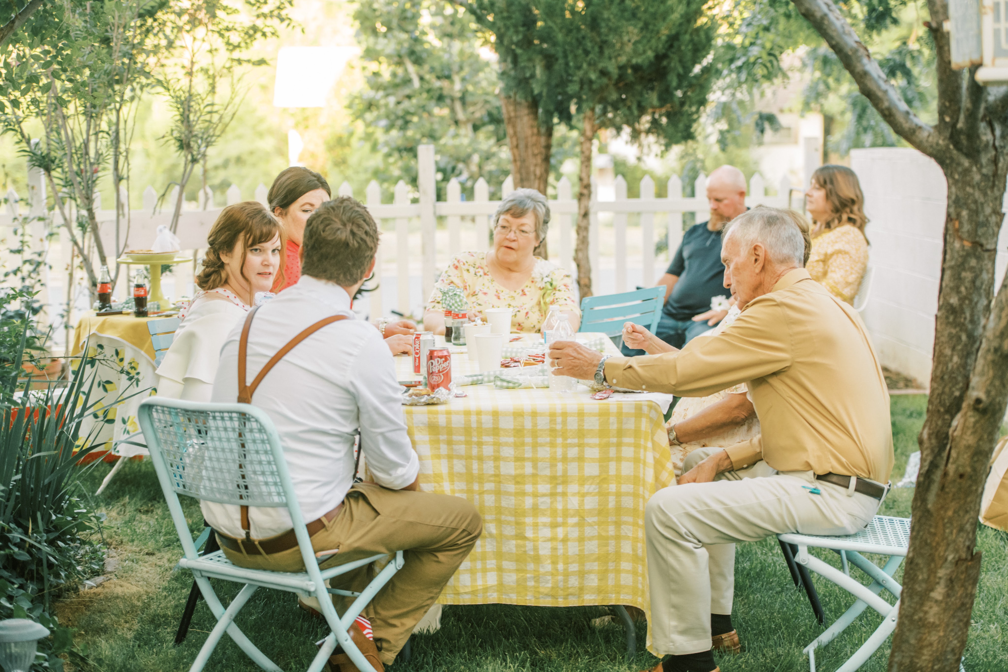 David and I got married on July 1, 2021 in Prescott, Arizona on the front porch of a darling historic yellow home affectionately called The Virginia Dollhouse. It was small and intimate, with only our parents and a few siblings that helped with the wedding: My sister’s boyfriend, Mike, married us, and my sister Shannon did my hair and make-up. The plan was to have a sweet and small wedding and then later have a large reception with family and friends, but for the actual wedding day, I wanted to keep it simple.