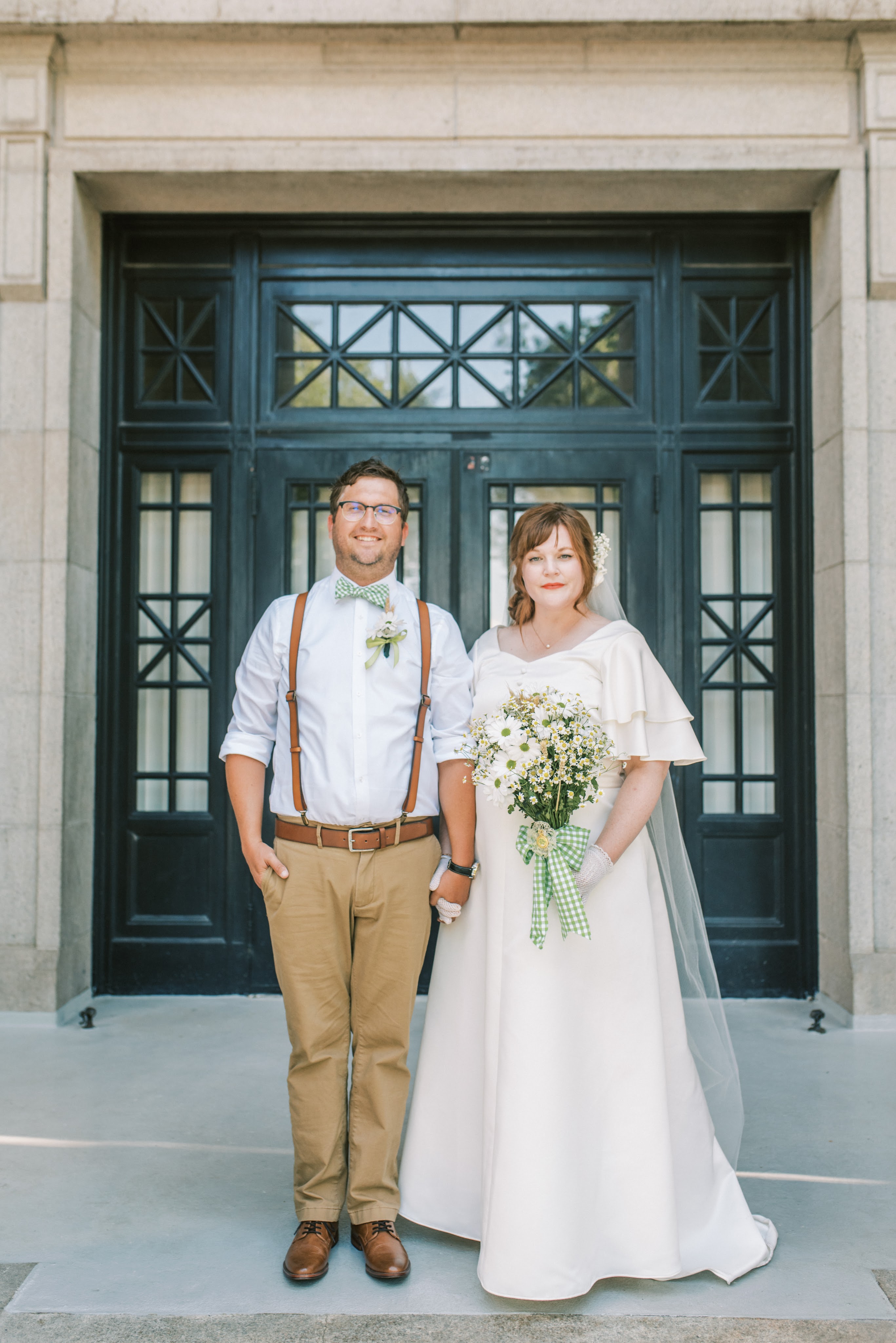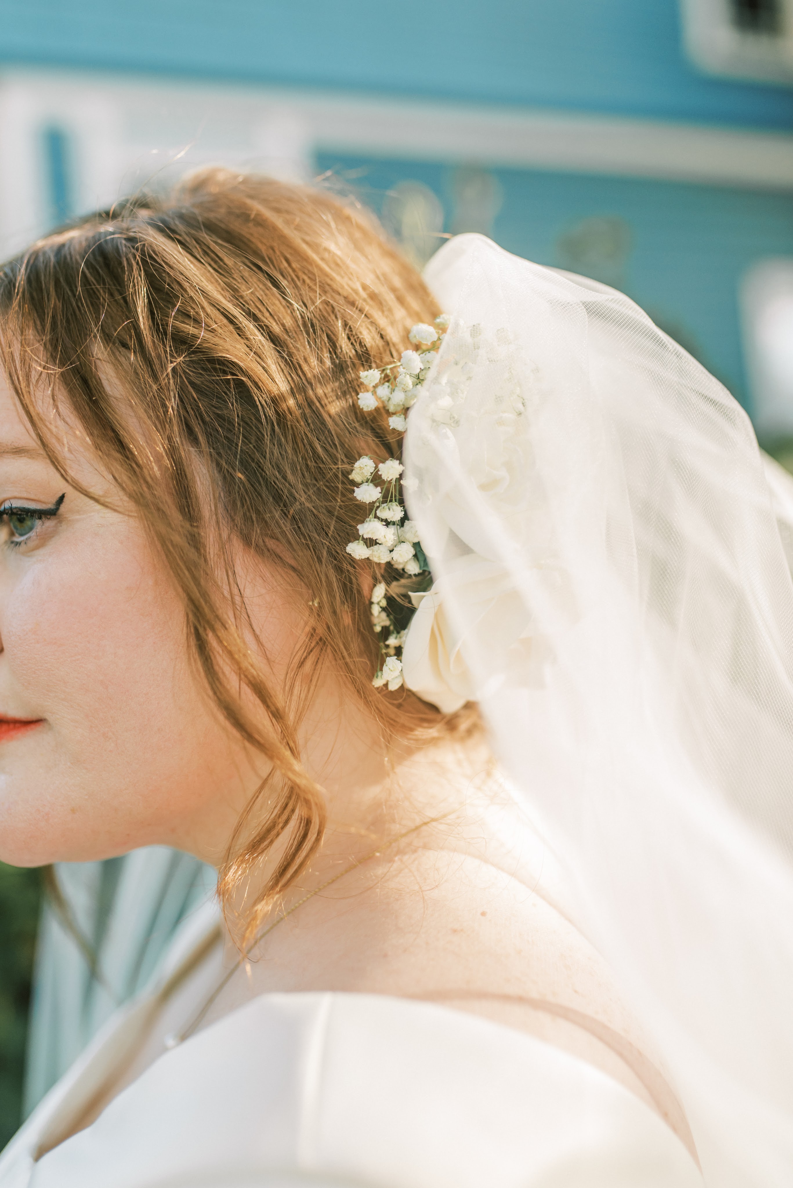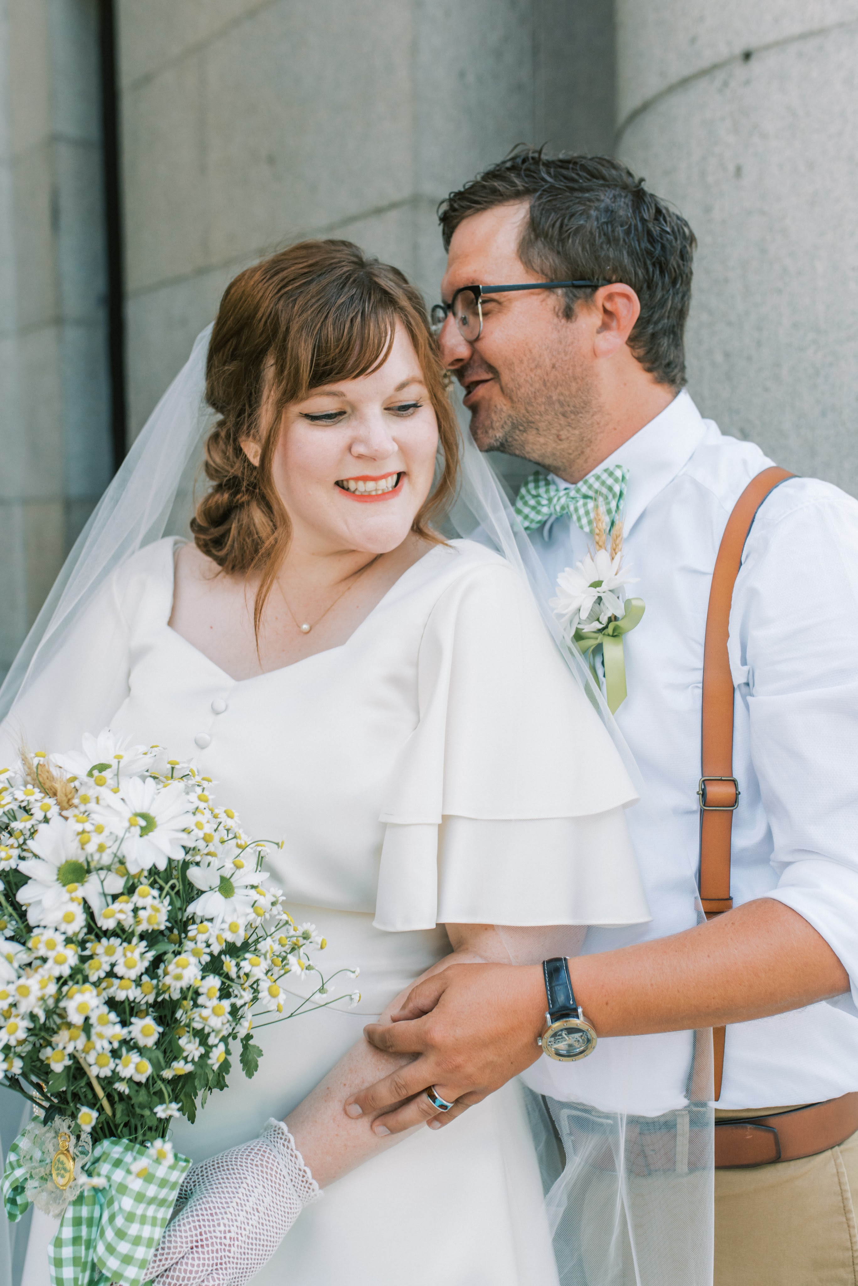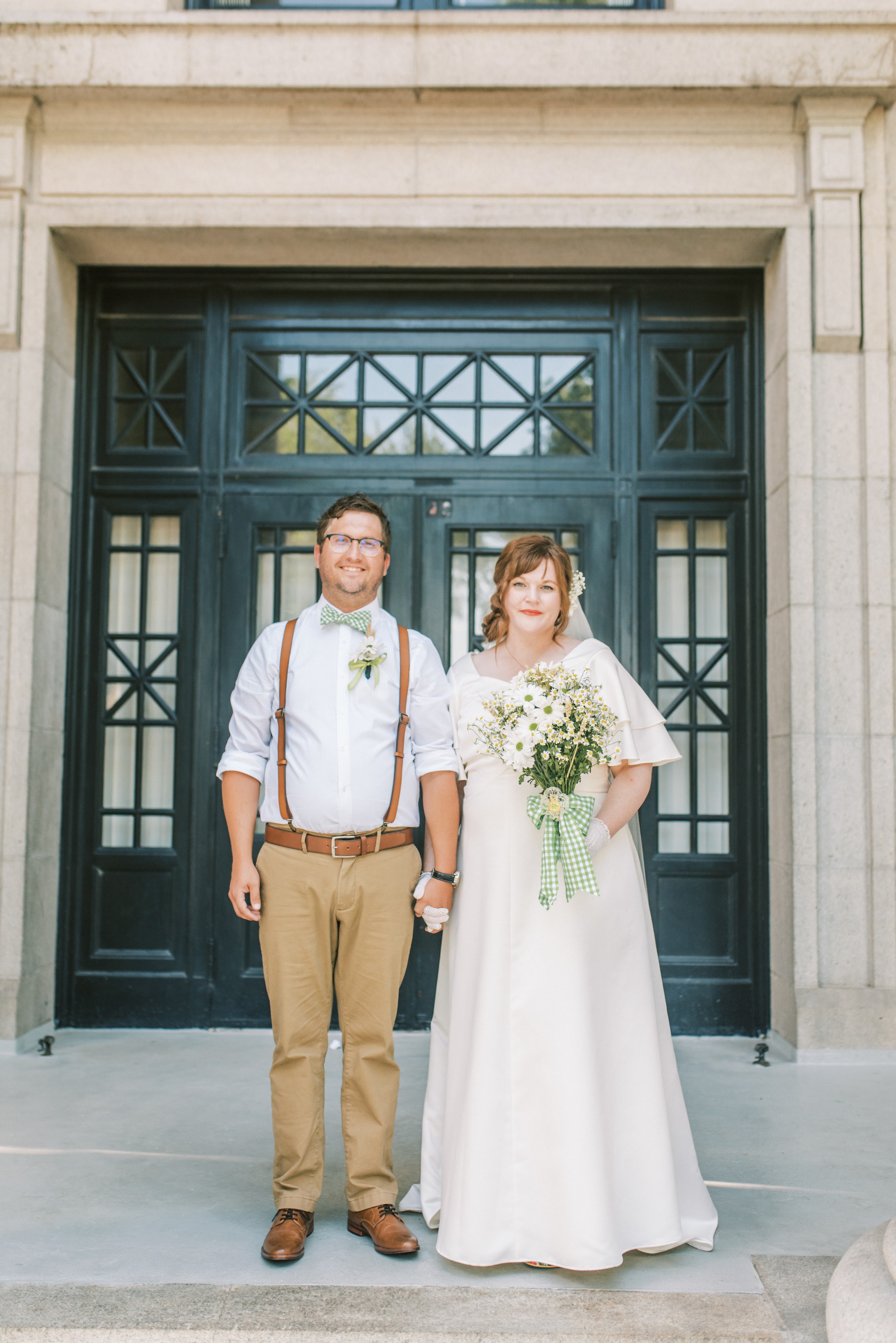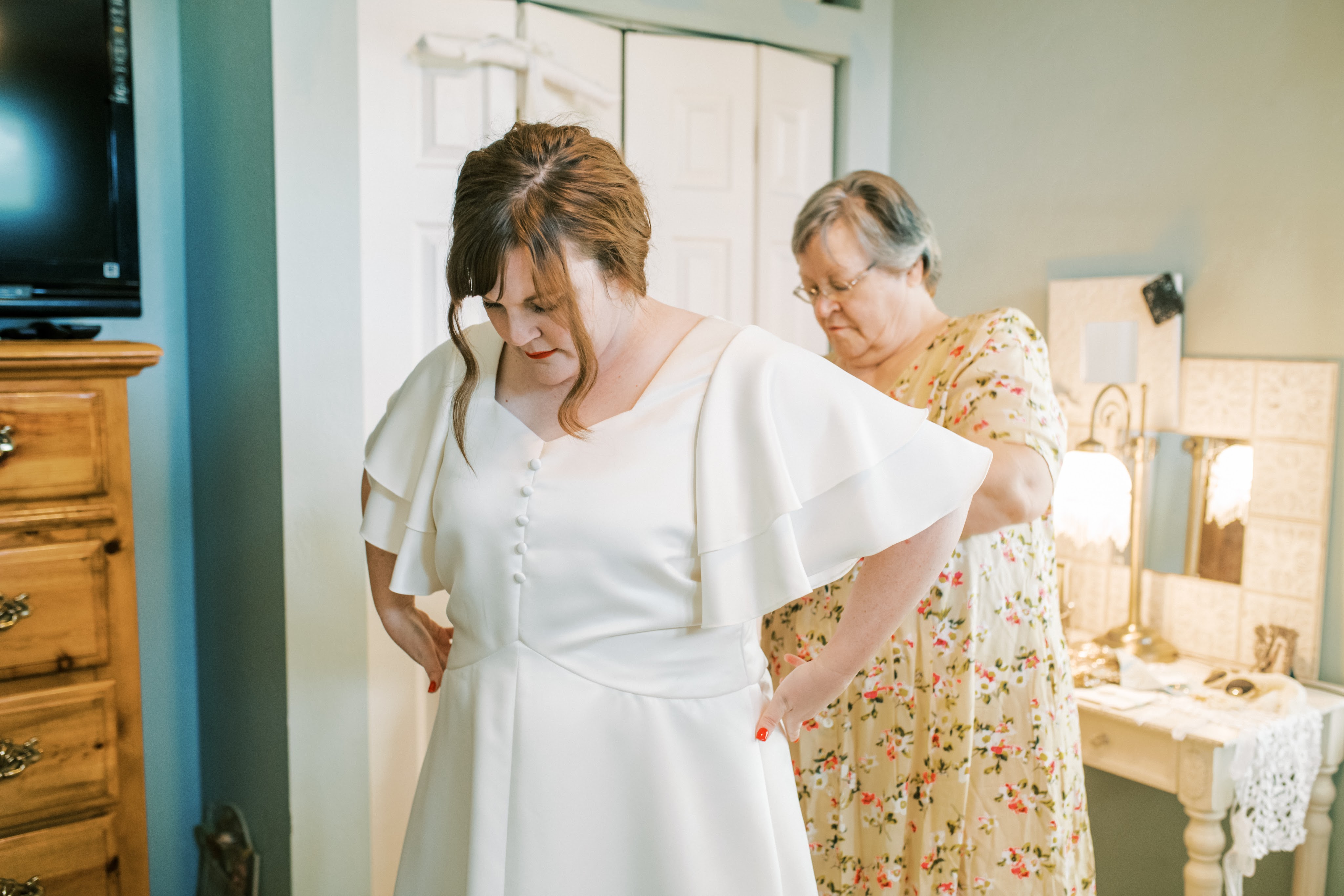 David and I got married on July 1, 2021 in Prescott, Arizona on the front porch of a darling historic yellow home affectionately called The Virginia Dollhouse. It was small and intimate, with only our parents and a few siblings that helped with the wedding: My sister’s boyfriend, Mike, married us, and my sister Shannon did my hair and make-up. The plan was to have a sweet and small wedding and then later have a large reception with family and friends, but for the actual wedding day, I wanted to keep it simple.