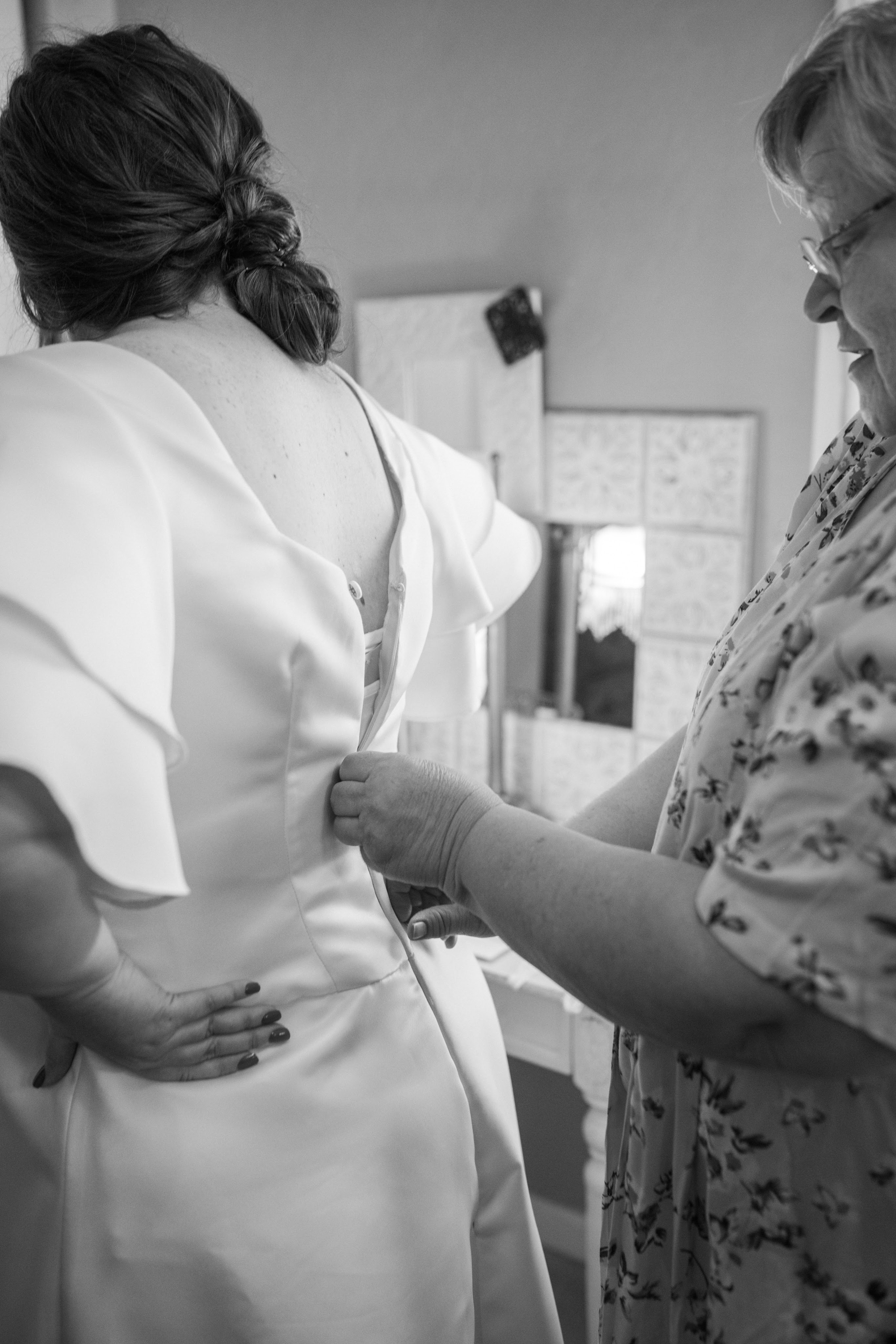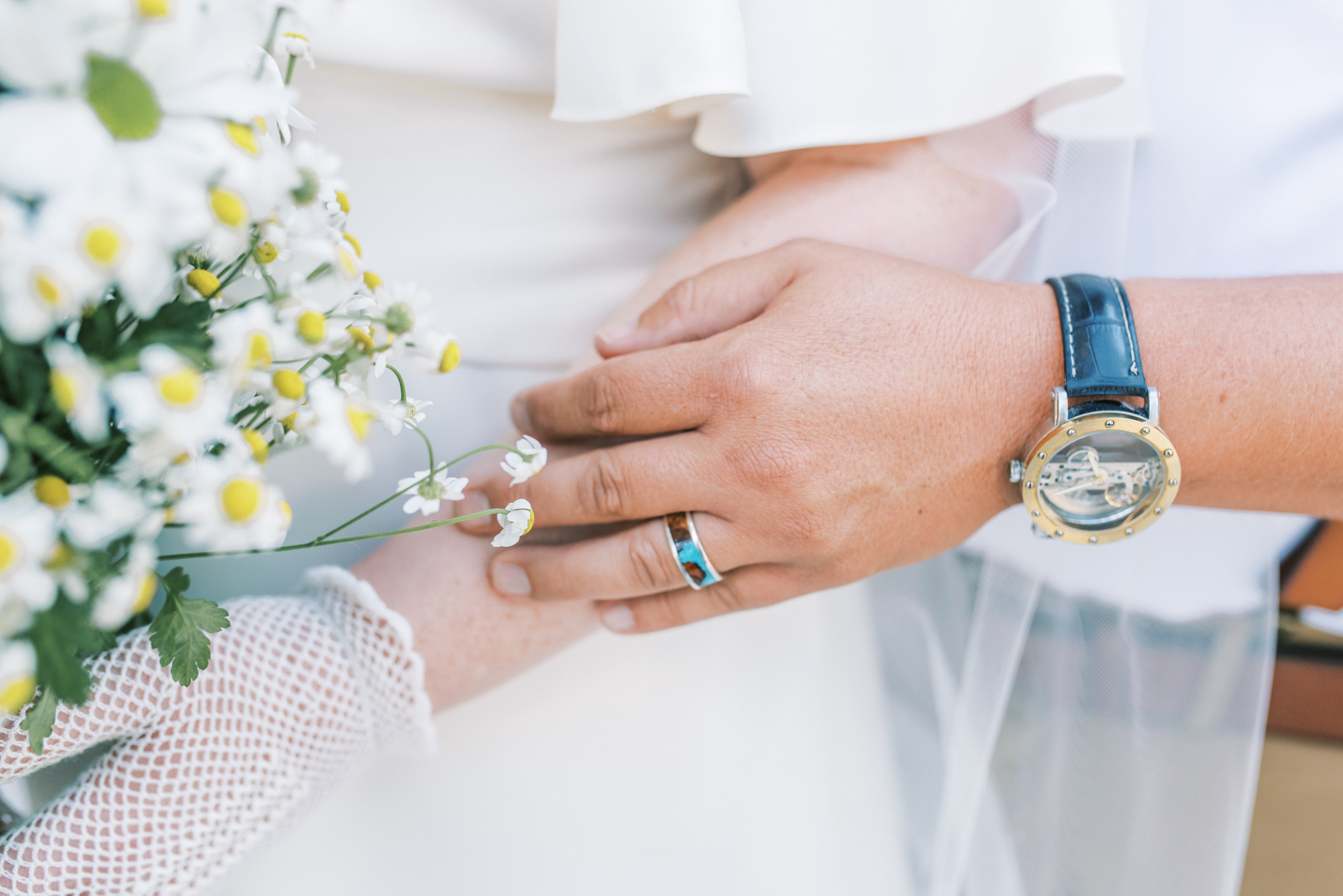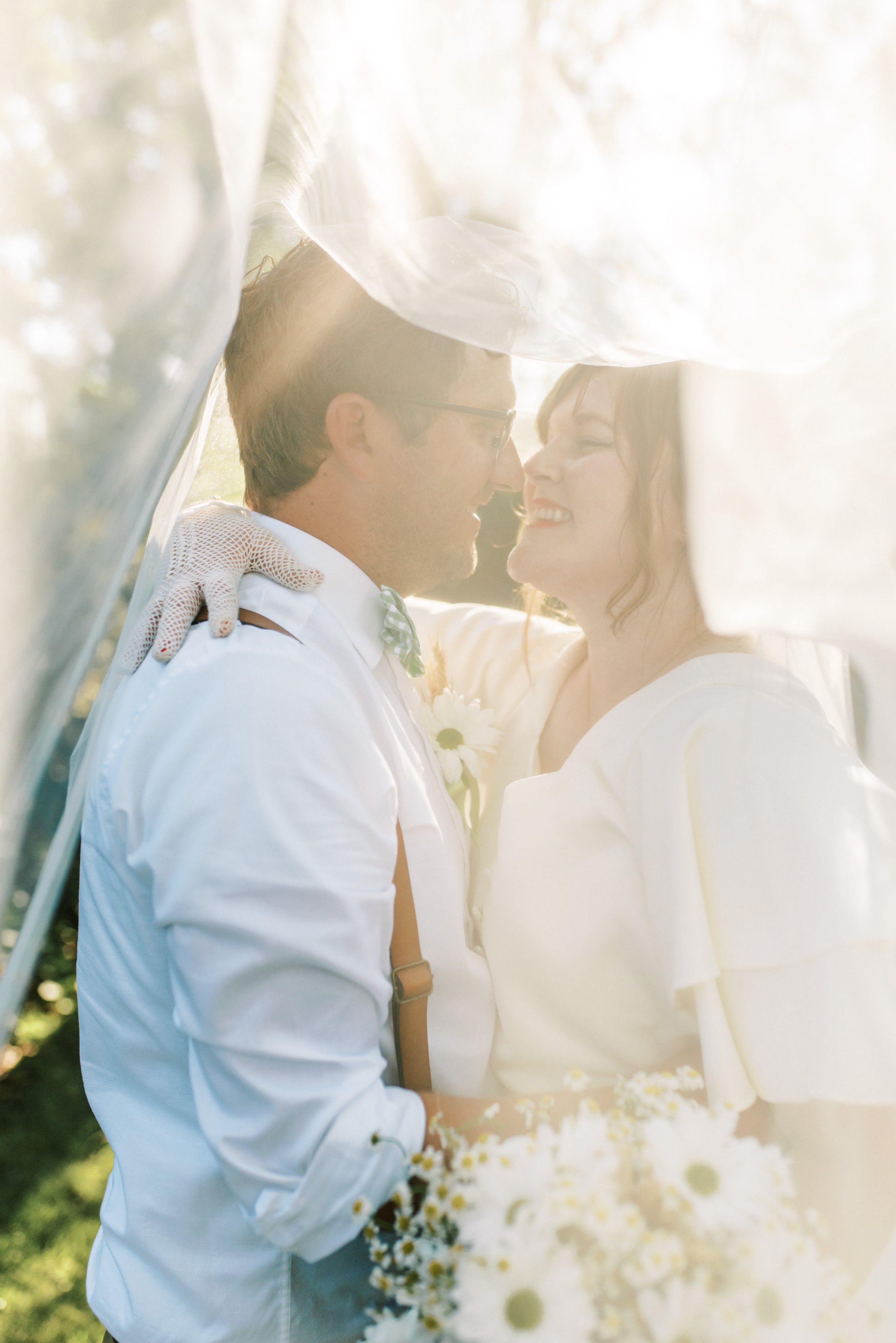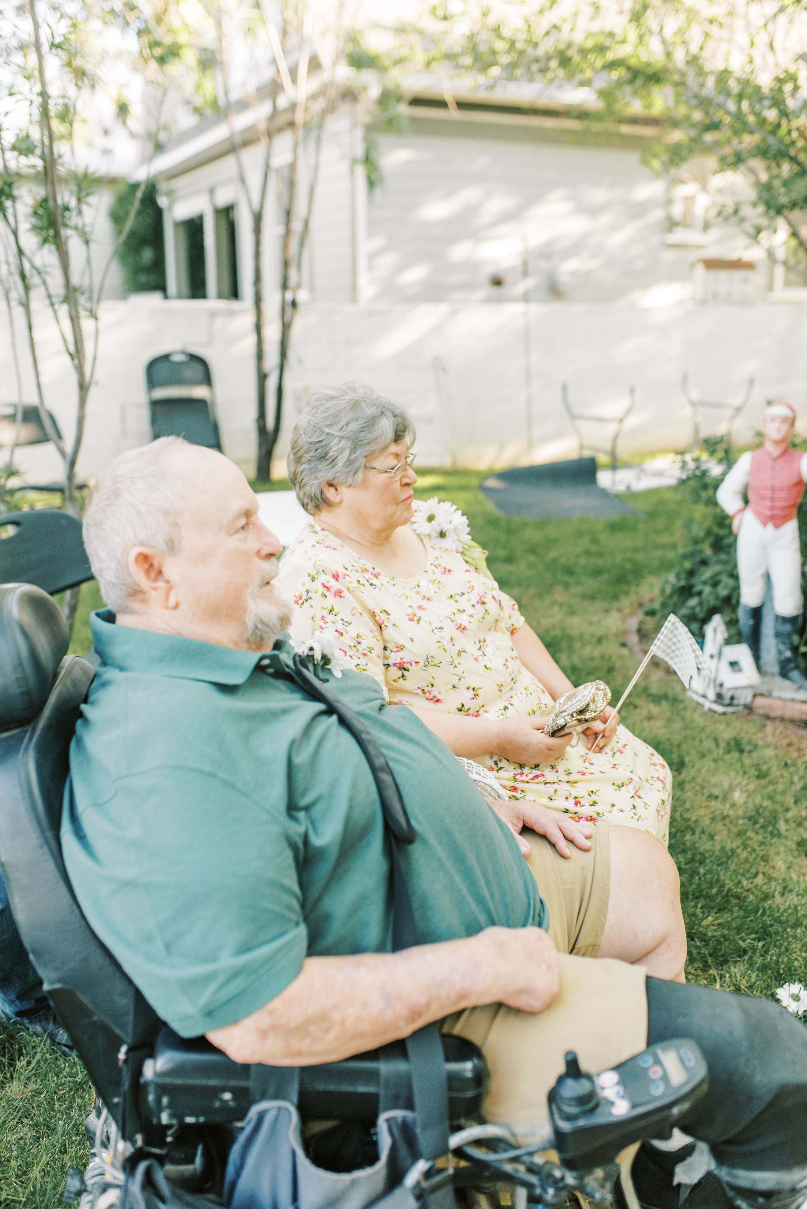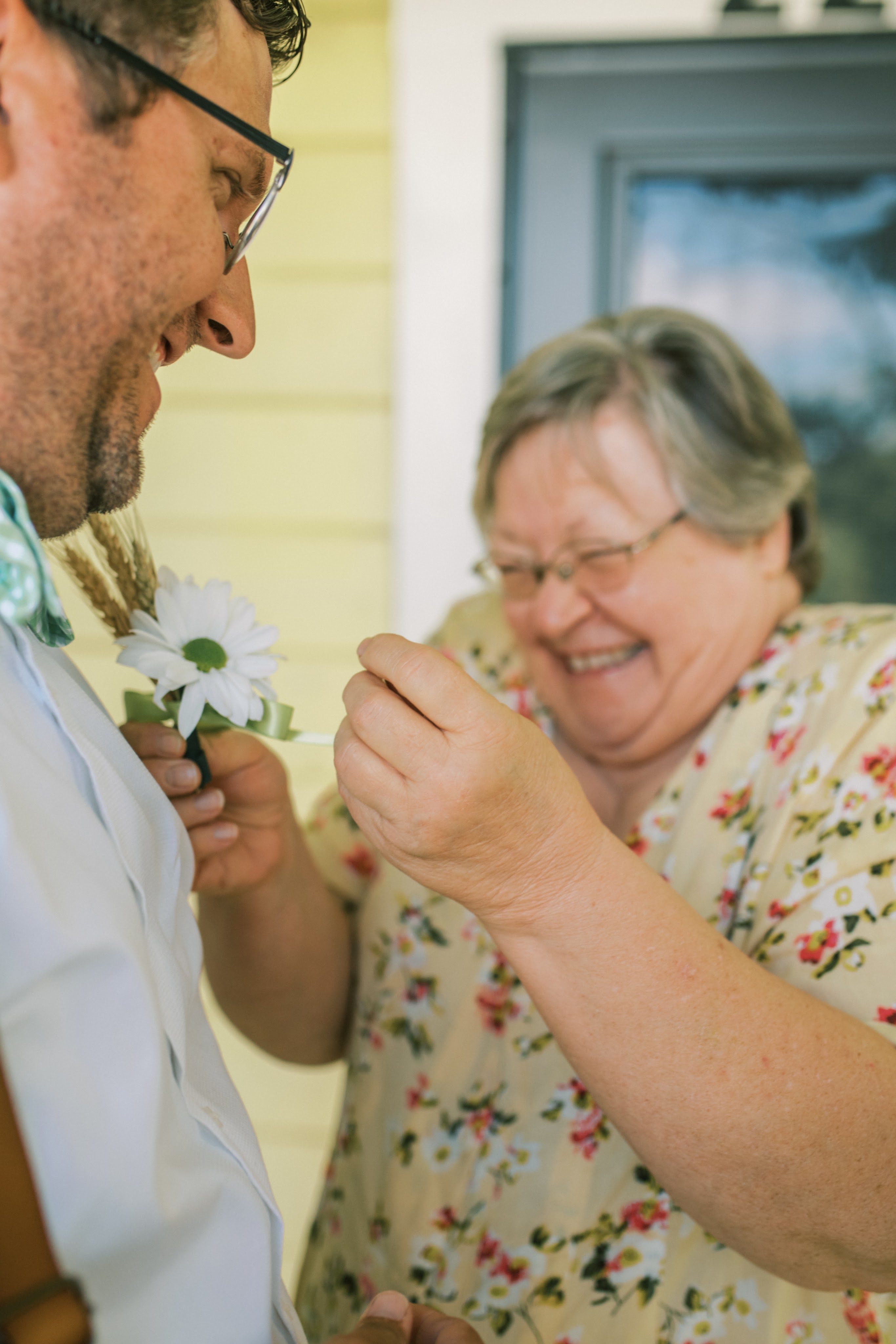 David and I got married on July 1, 2021 in Prescott, Arizona on the front porch of a darling historic yellow home affectionately called The Virginia Dollhouse. It was small and intimate, with only our parents and a few siblings that helped with the wedding: My sister’s boyfriend, Mike, married us, and my sister Shannon did my hair and make-up. The plan was to have a sweet and small wedding and then later have a large reception with family and friends, but for the actual wedding day, I wanted to keep it simple.