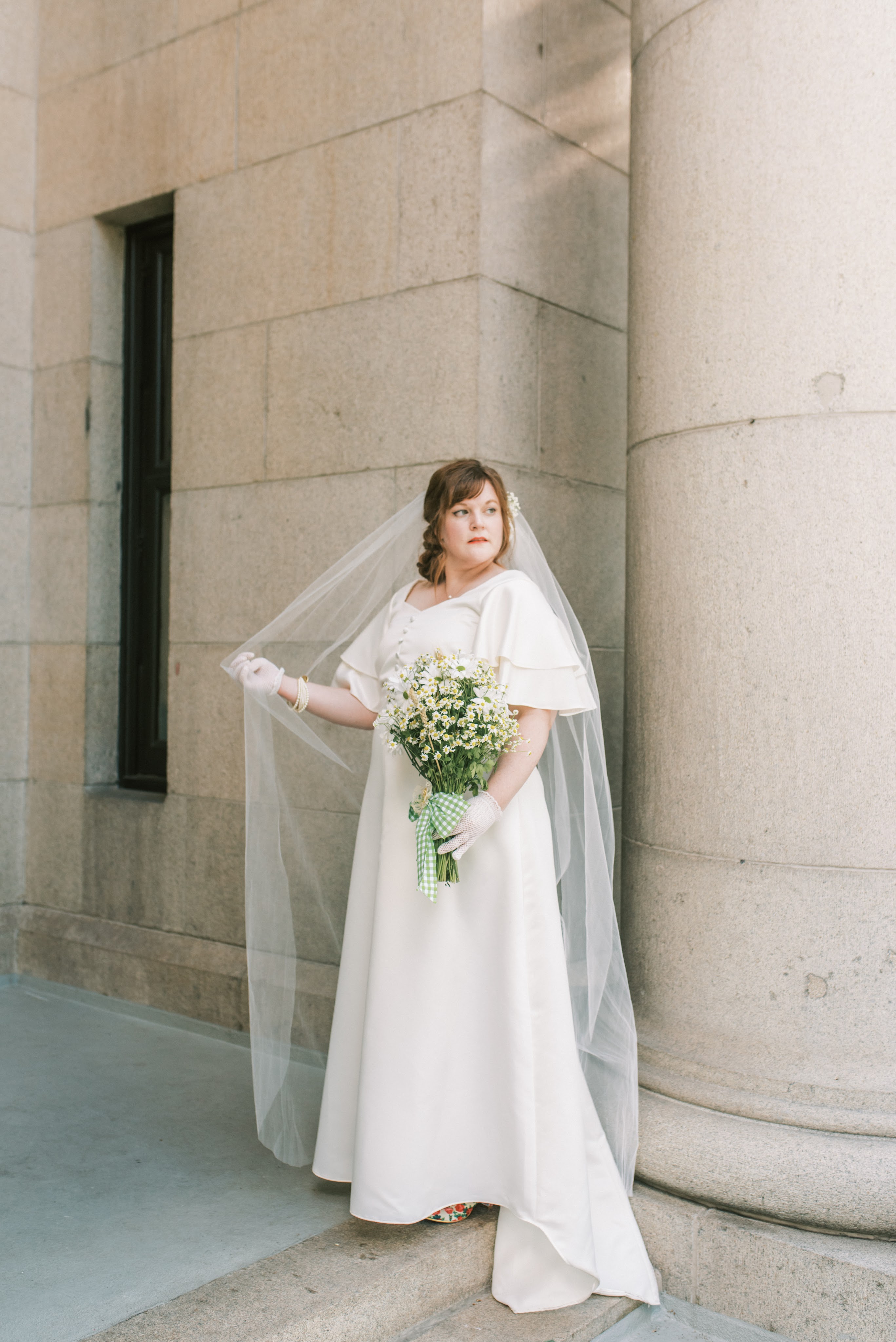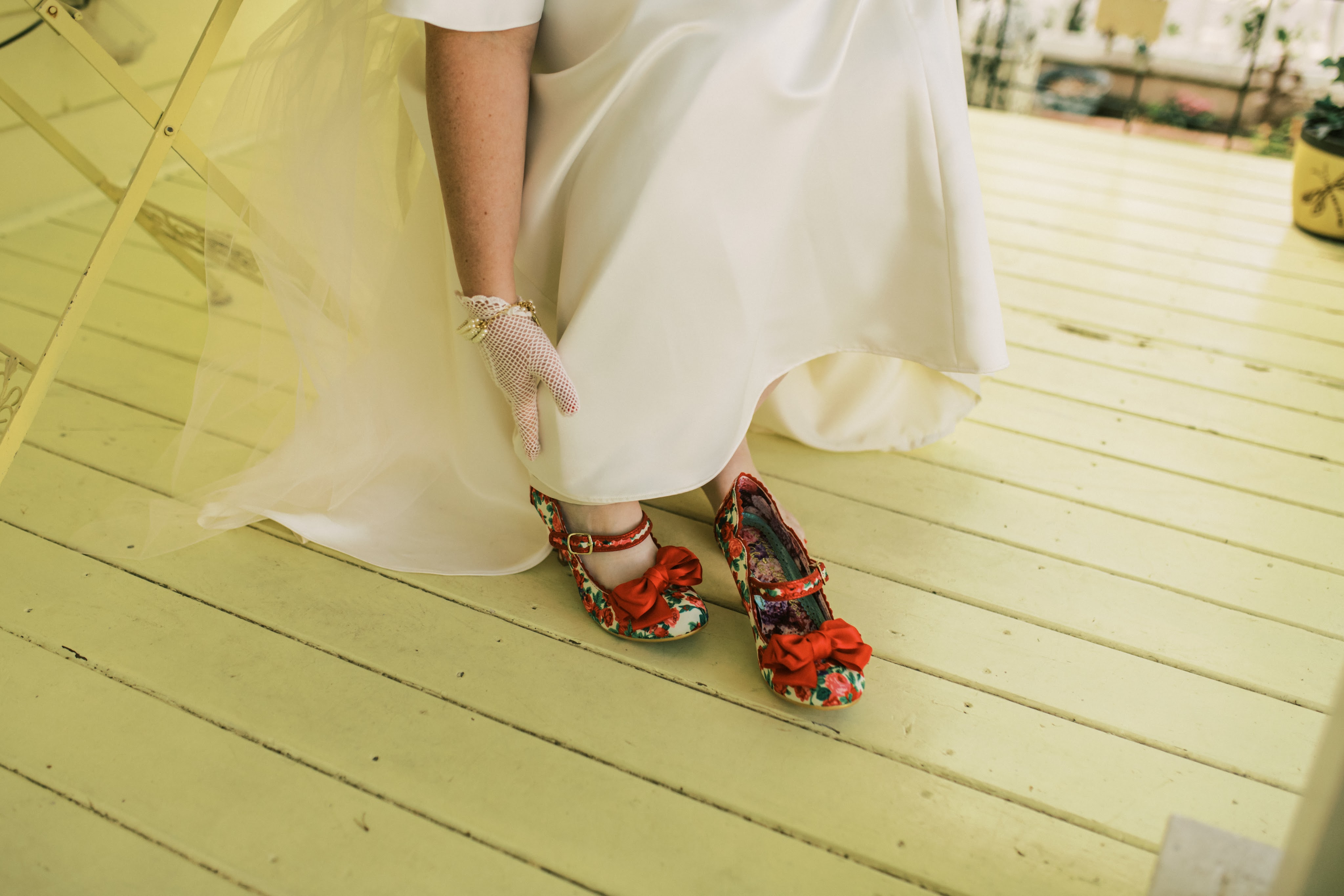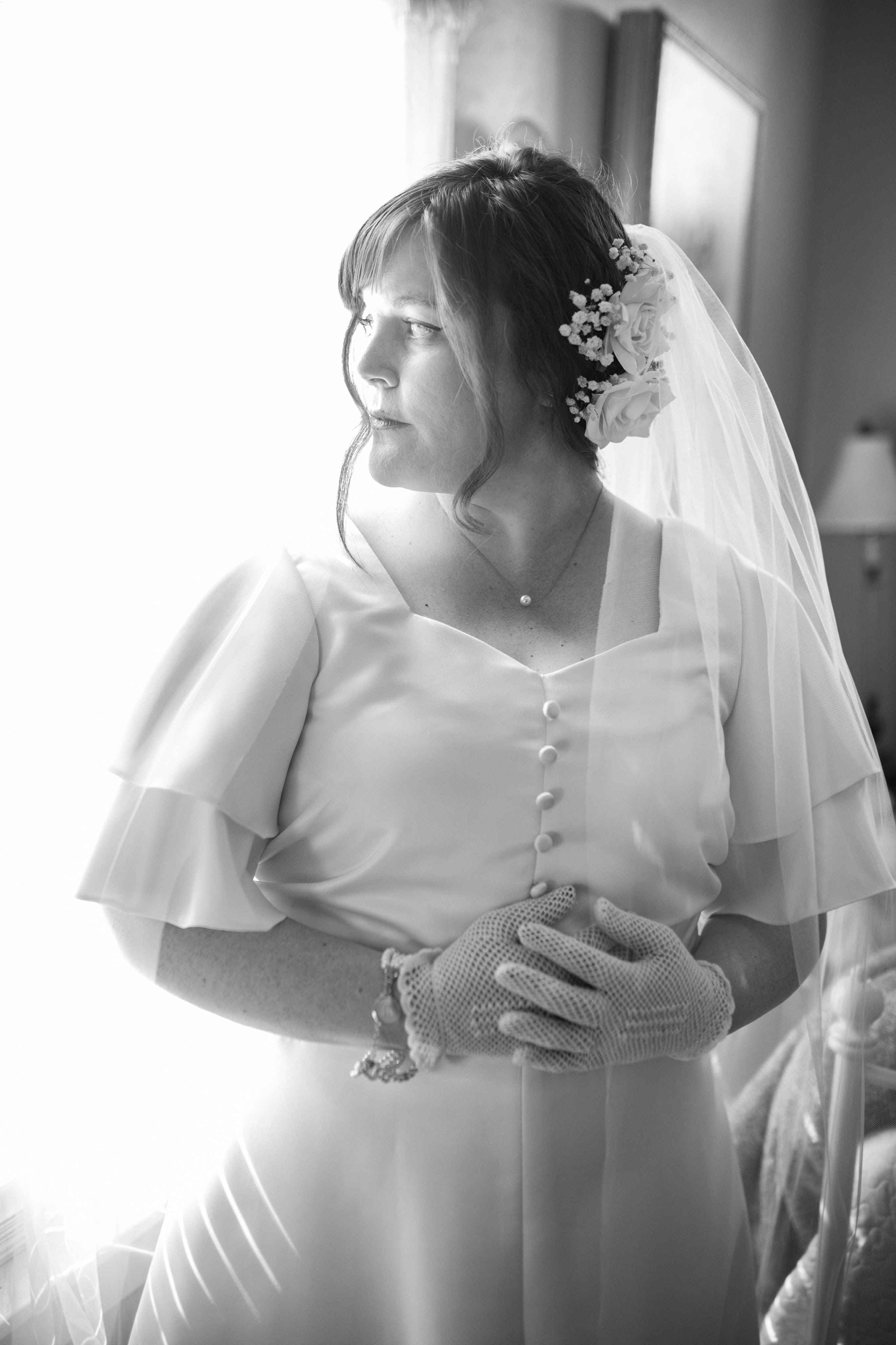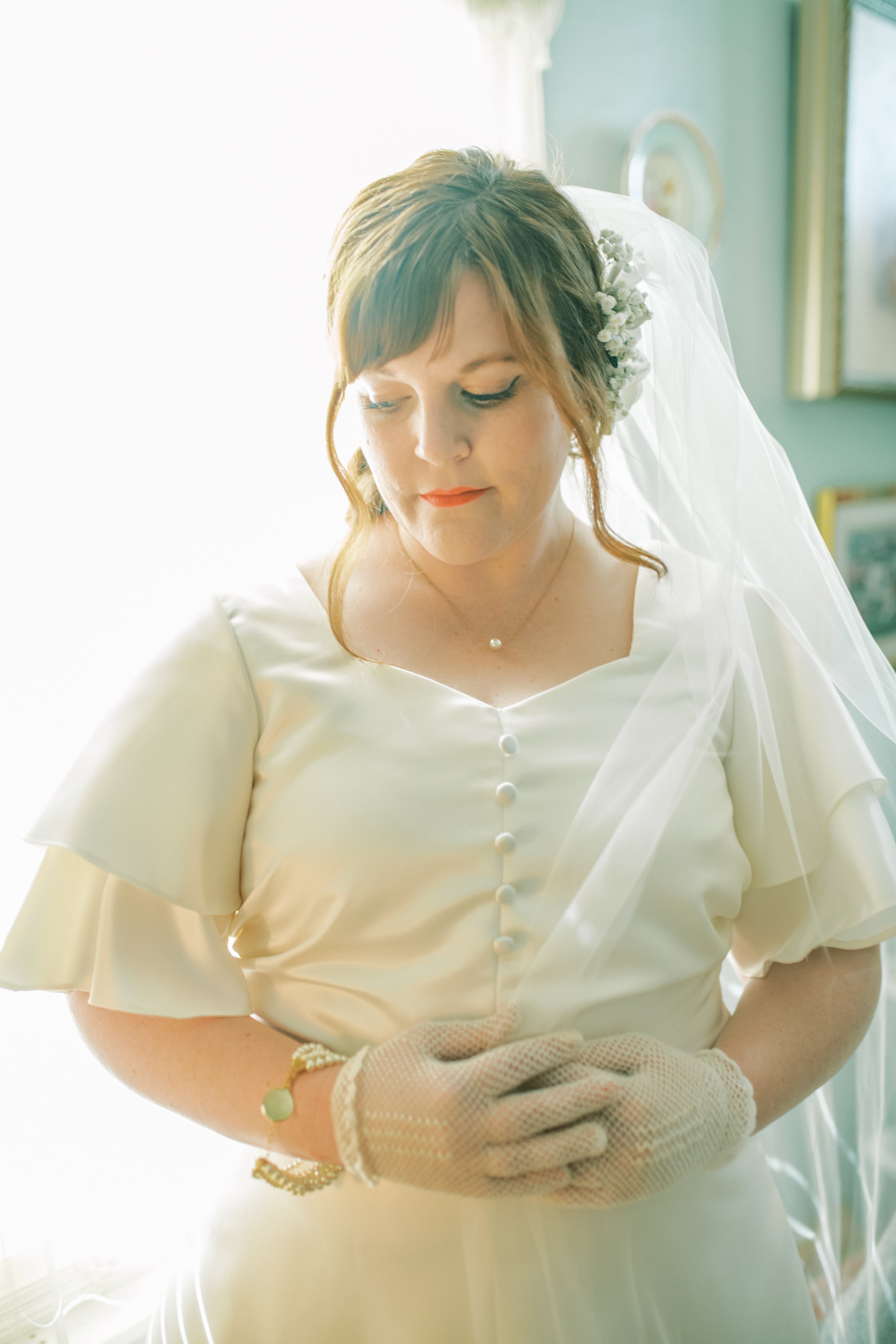 Growing up, my mom always sewed my special dresses and I wanted her to sew my wedding dress. I also fell in love when I was around eighteen years old of the bridal ensemble Claudette Colbert wore in It Happened One Night. I’ve always been a huge vintage/retro fan and loved the 1930’s bridal silhouette especially. So that is what my dress too inspiration from.