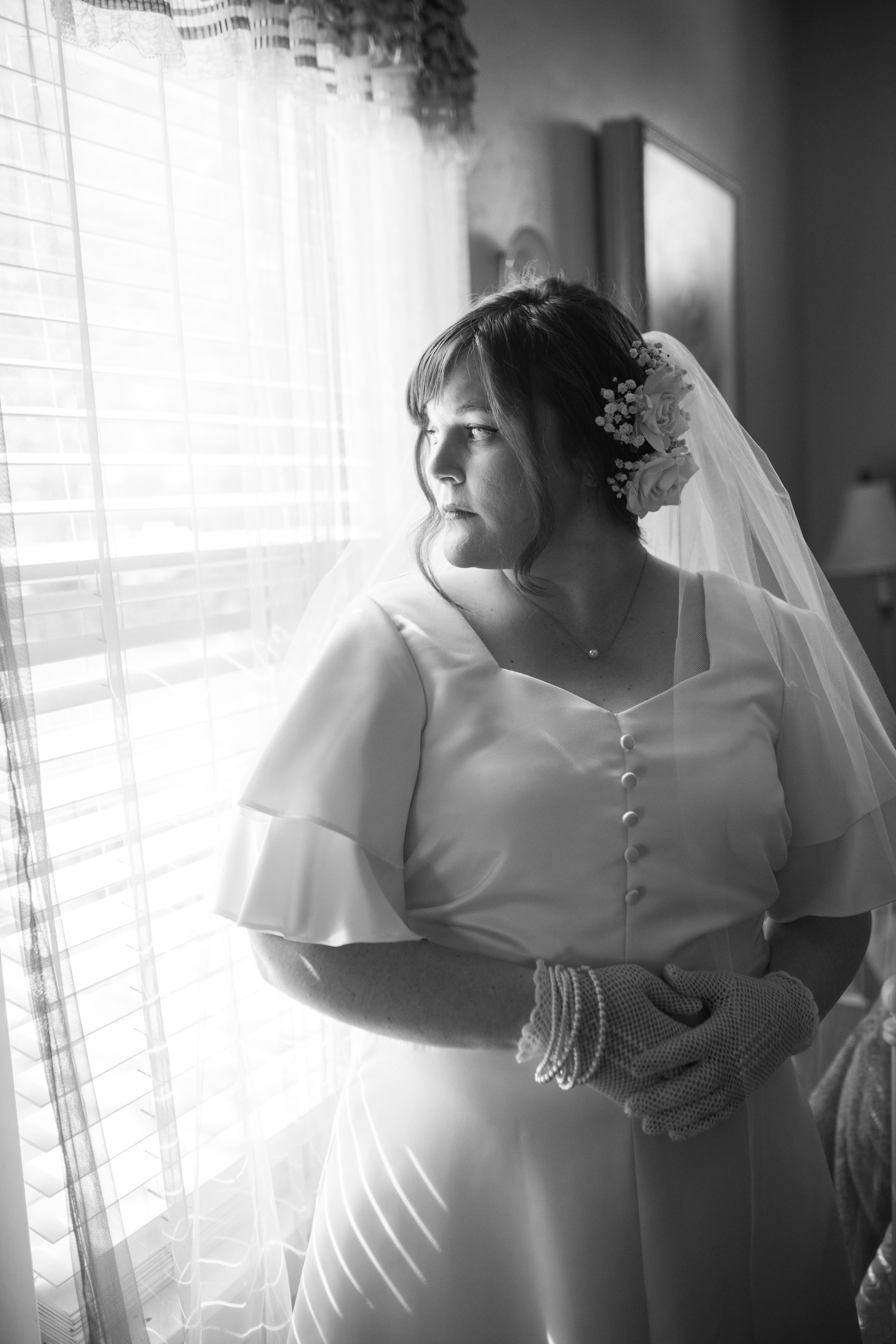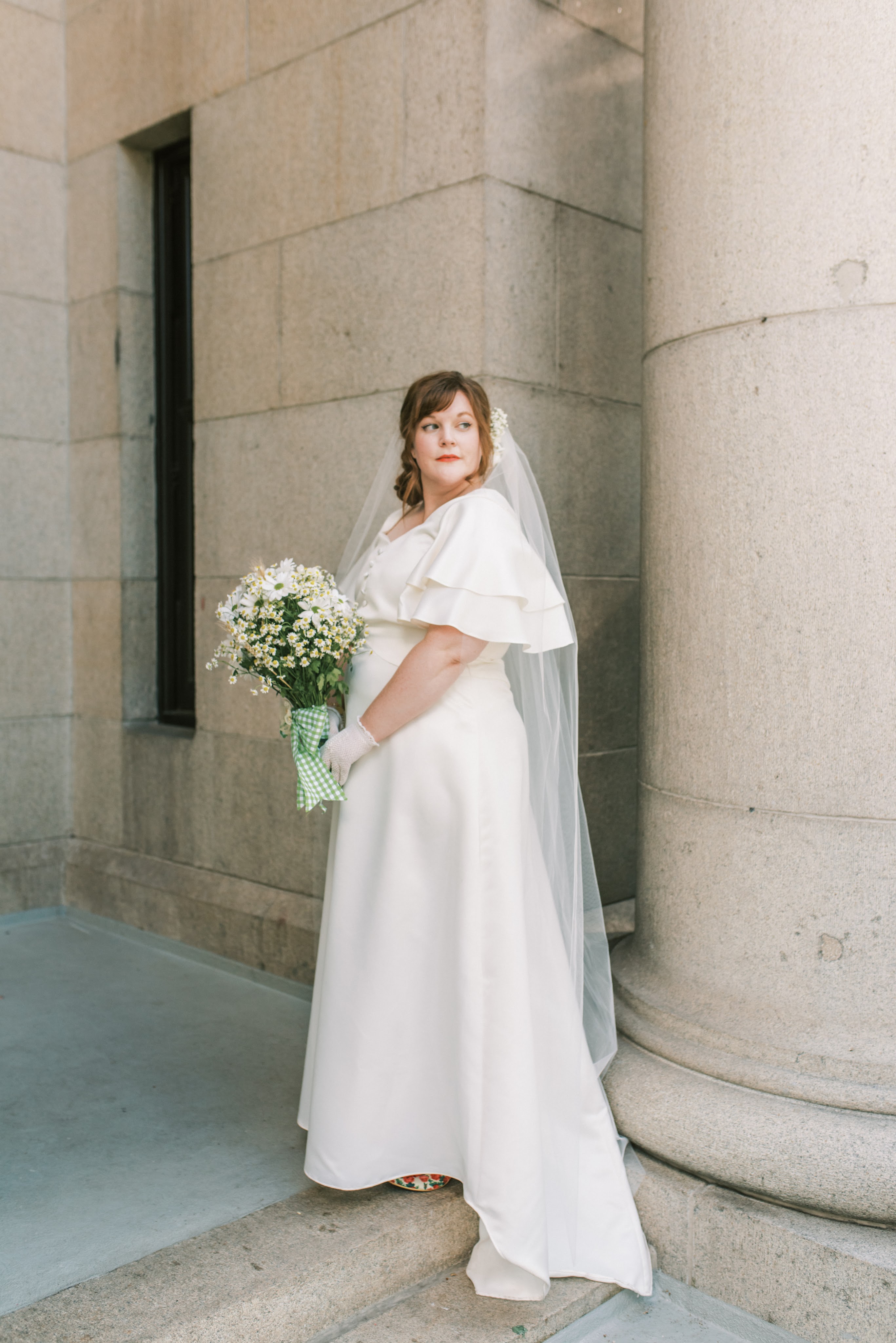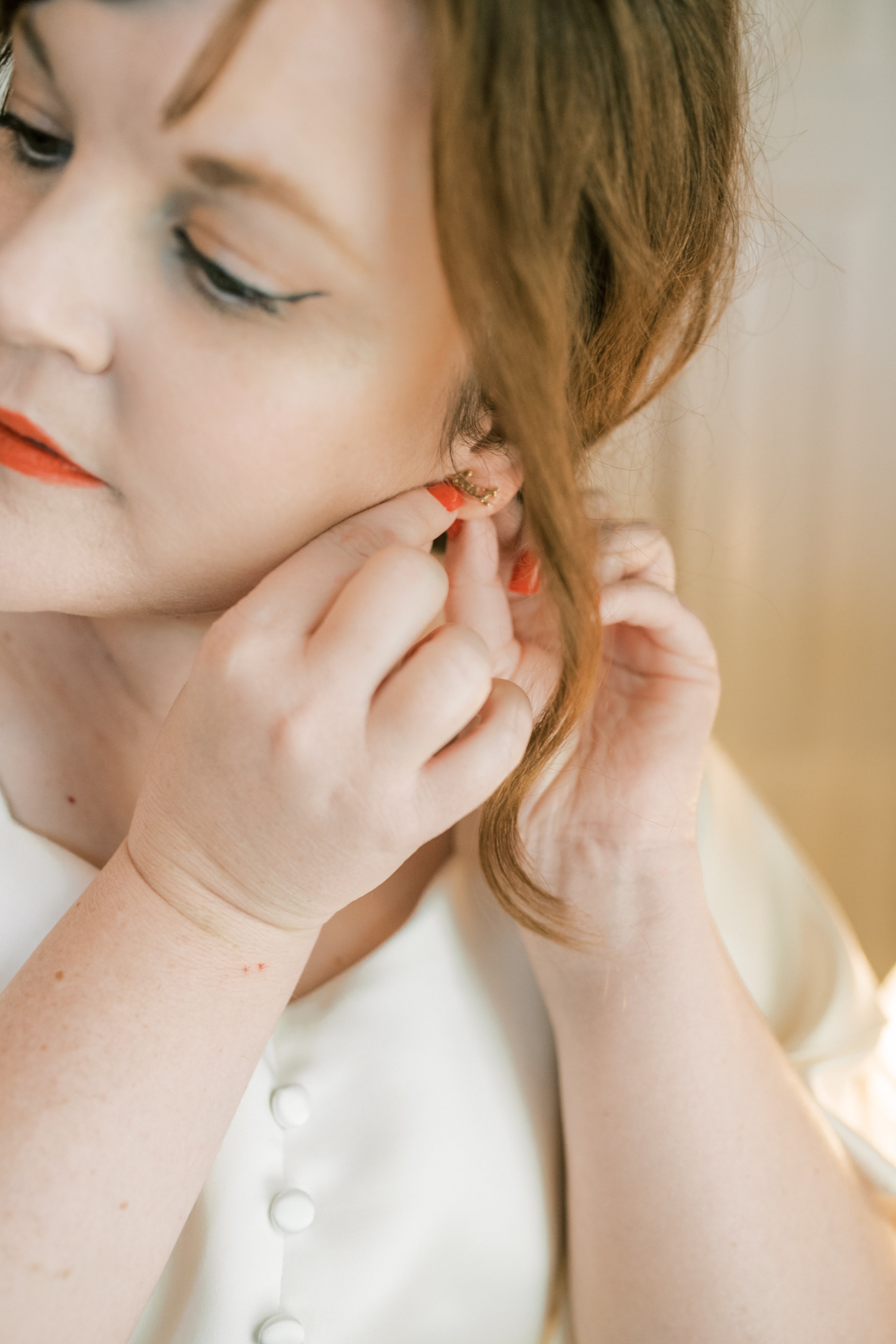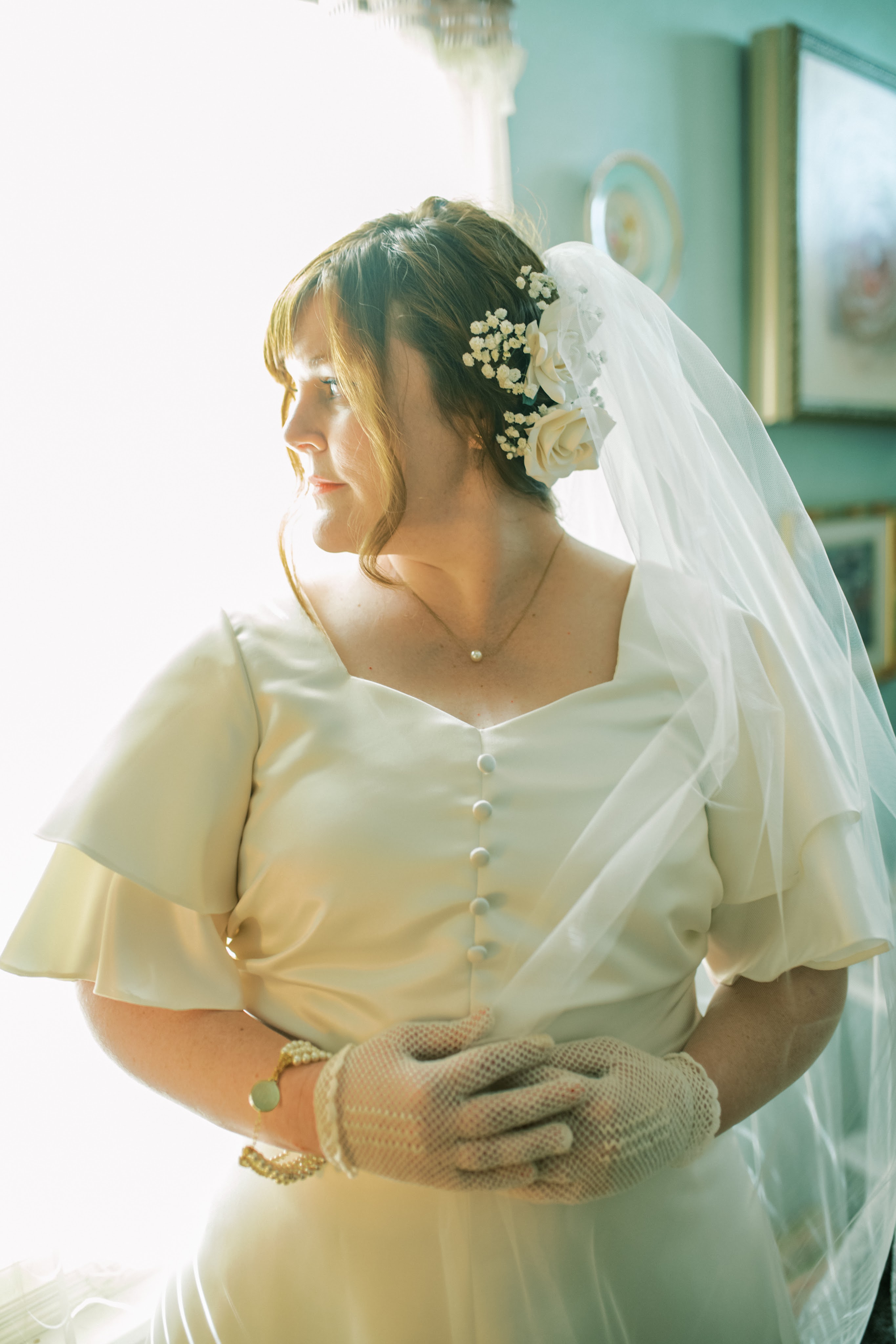 Growing up, my mom always sewed my special dresses and I wanted her to sew my wedding dress. I also fell in love when I was around eighteen years old of the bridal ensemble Claudette Colbert wore in It Happened One Night. I’ve always been a huge vintage/retro fan and loved the 1930’s bridal silhouette especially. So that is what my dress too inspiration from.