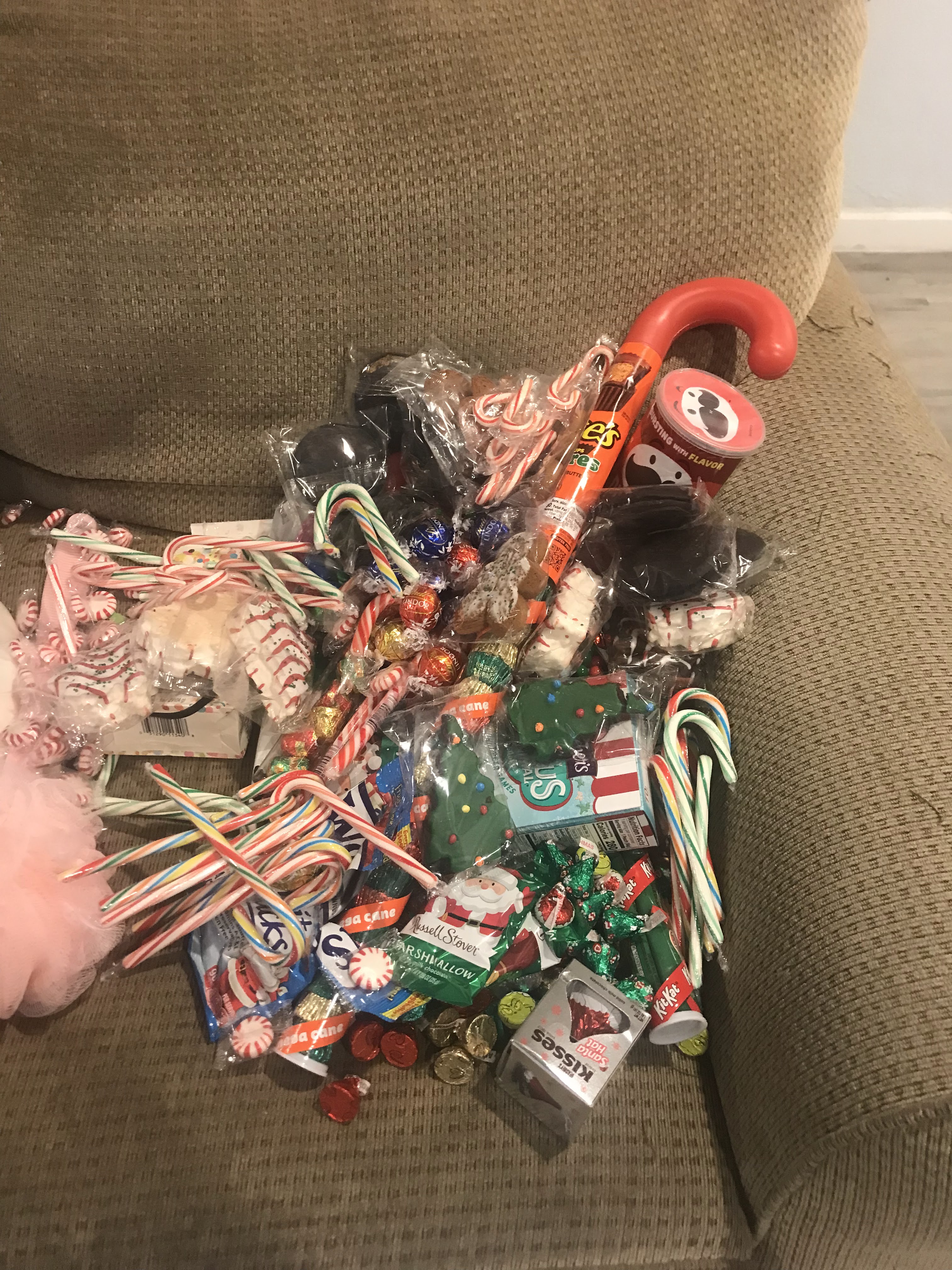 For a less pretty picture…this is all of the candy the Claridge household–which consists of one adult male and one adult female–acquired through the Christmas season. Yikes. David and I are both heavily nostalgic beings, and impulsively bought all the Christmas candy/treats we remembered as kids. It accumulated because…well, we don’t have any kids and two adults can handle SO MUCH SUGAR.