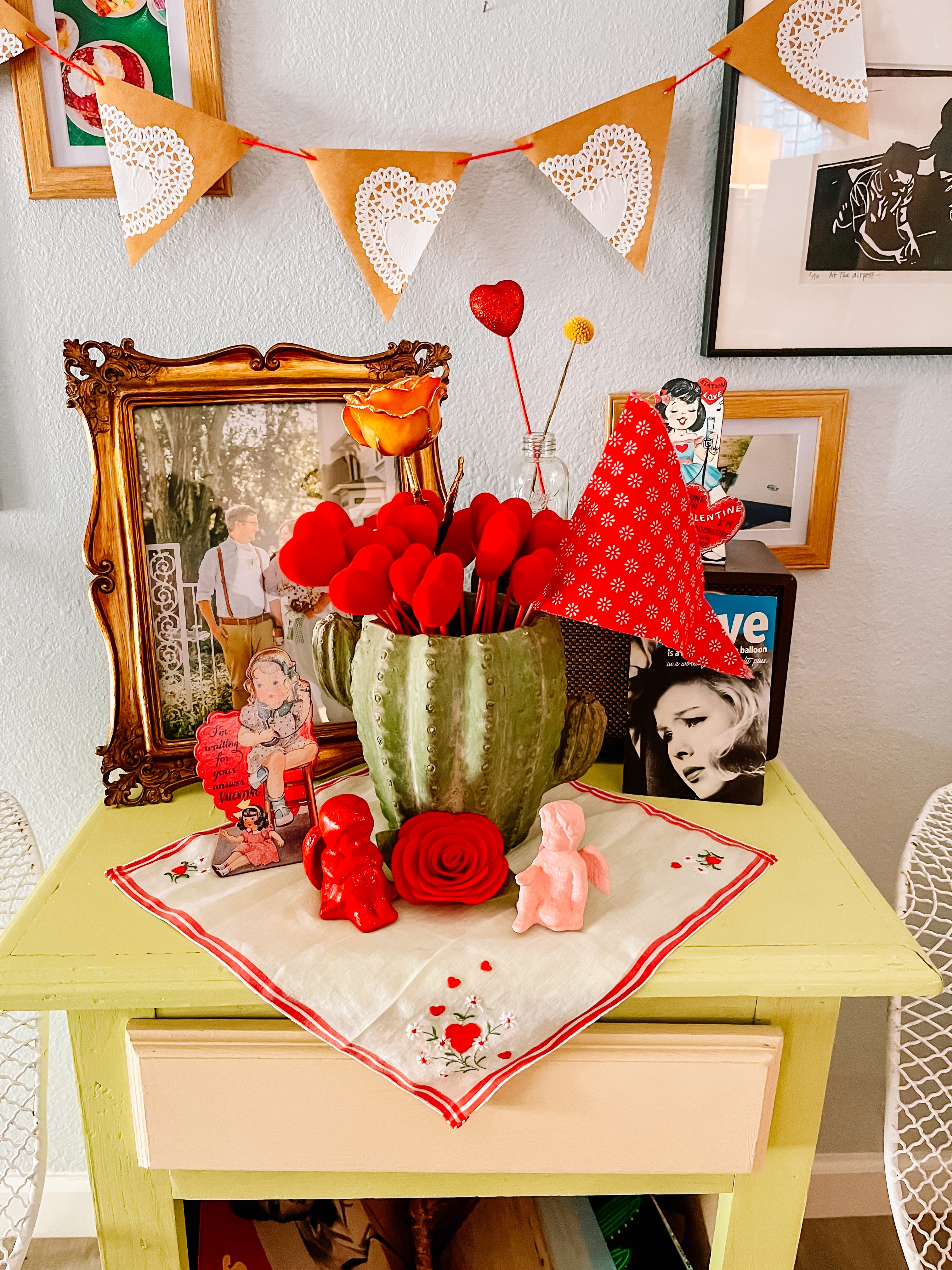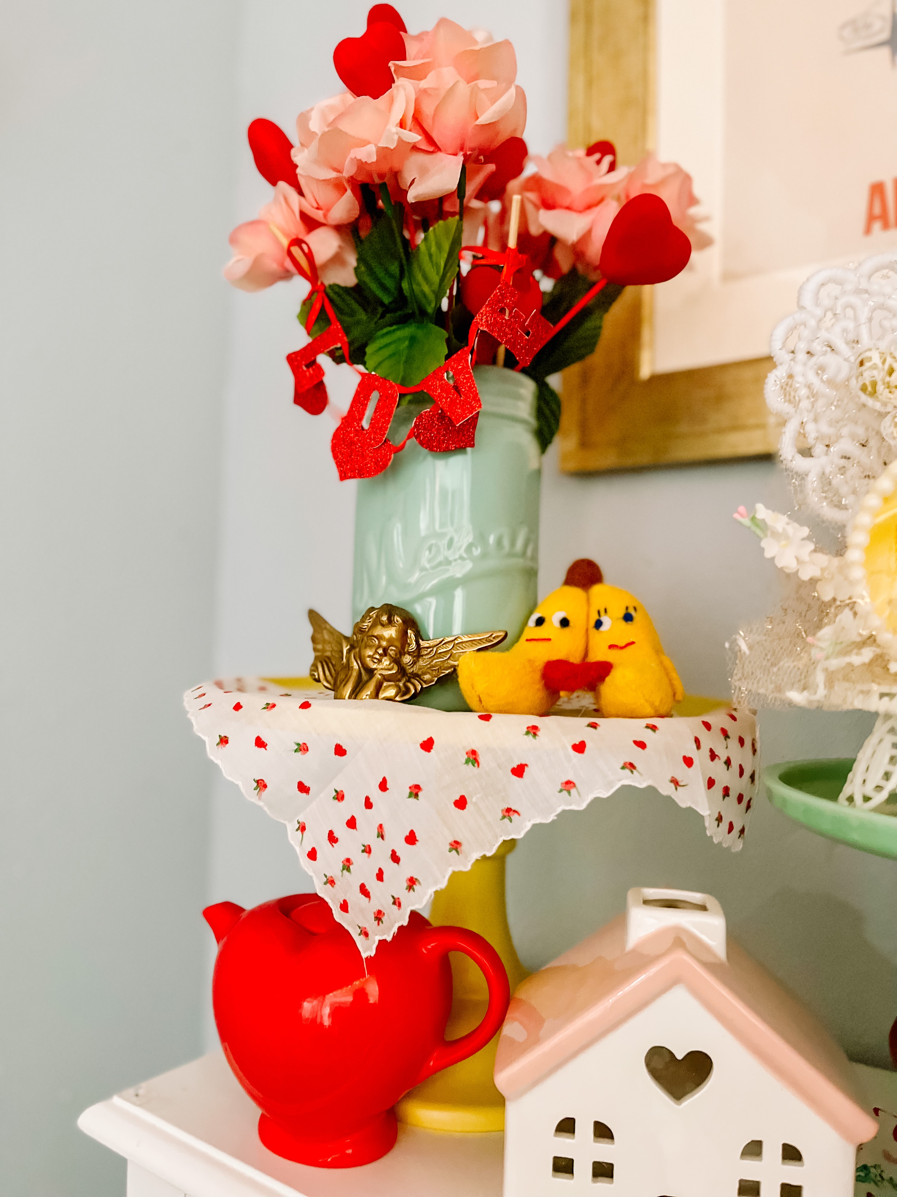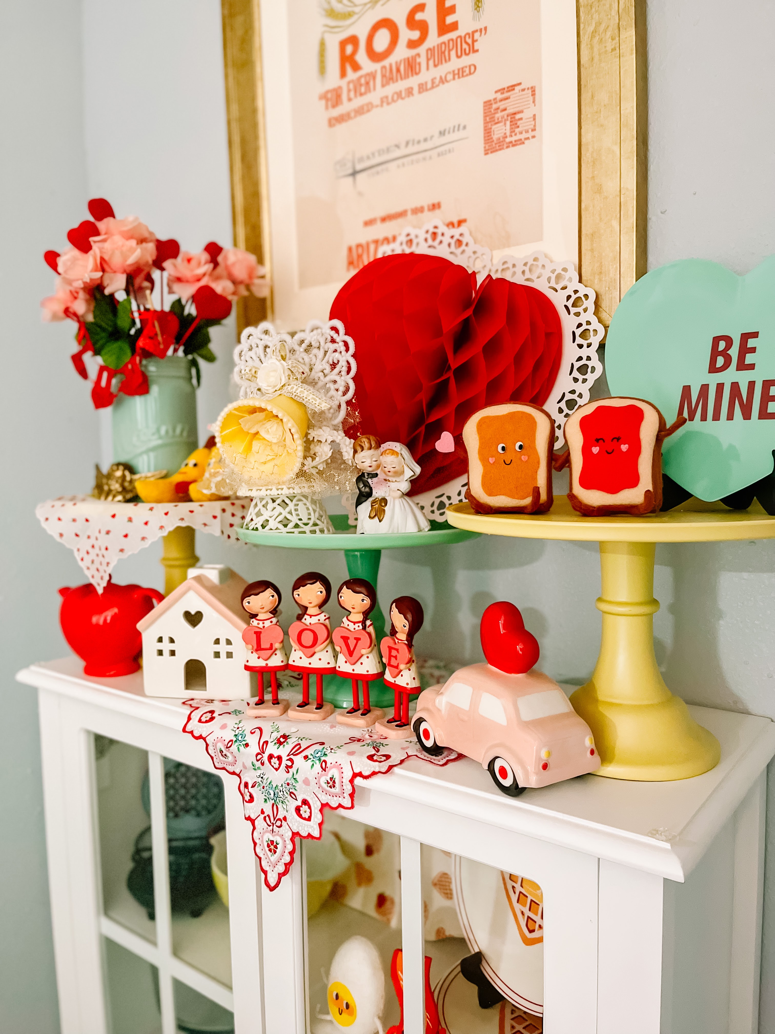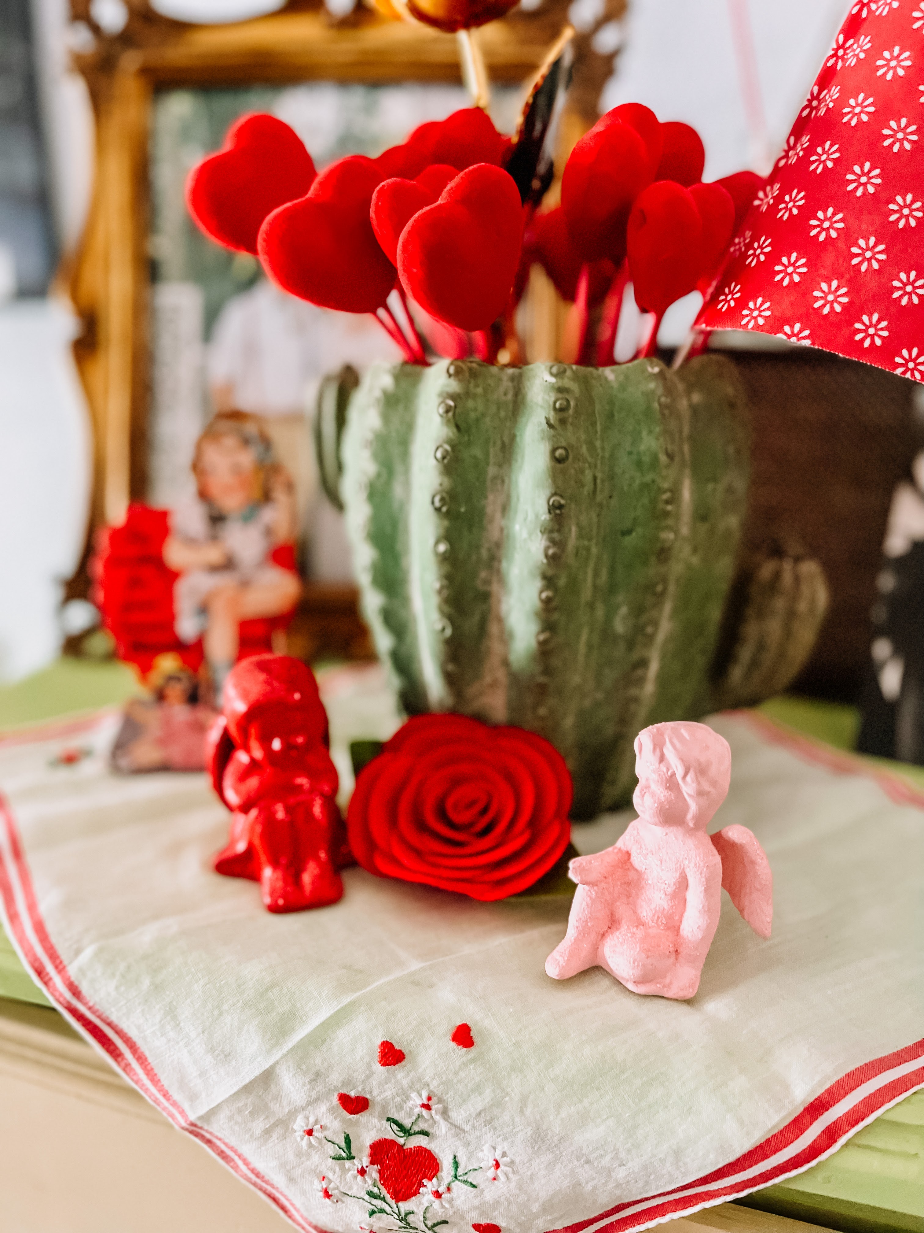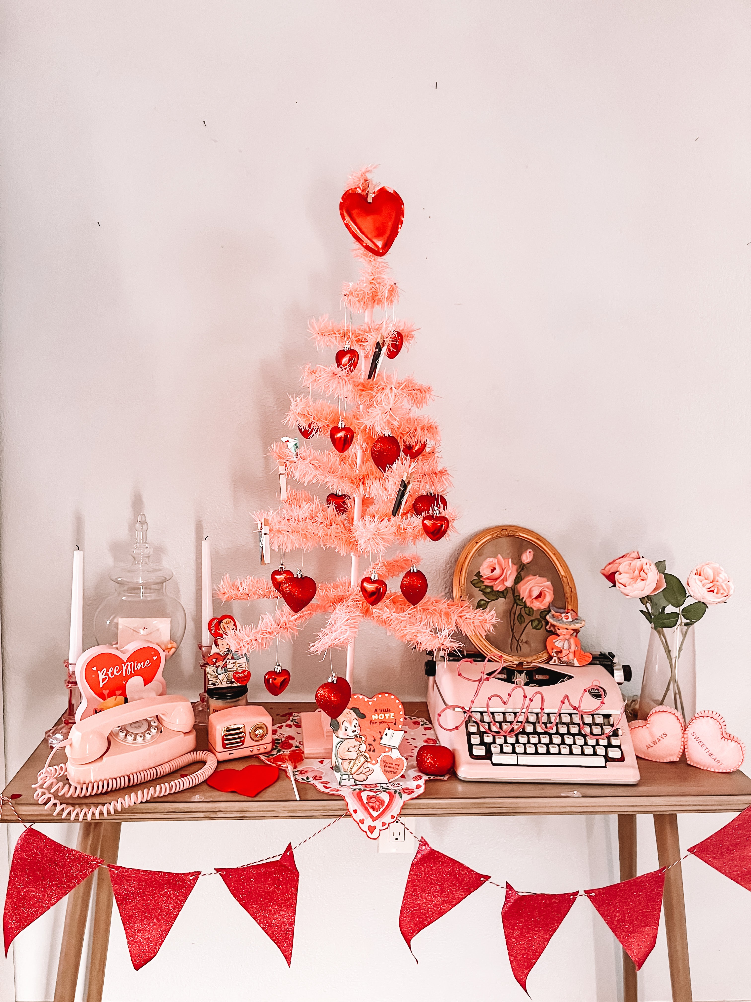 Having been single for most of my adult life *tooth twinkle* my prevailing memory of Valentines Day was not of my MAN or accepting a big ole bouquet of “what a surprise” roses at work like I was Miss America. Nope. I mostly remember my momma’s pink and red table. It was so just SO DAMN PRETTY. So honestly, I never really cared if I was single AF on Feb 14, I just cared that Valentine’s Day was just so pink, so red, so pretty. And forget chocolate, give me Brach’s cinnamon hearts and Little Debbies pink heart tea cakes!