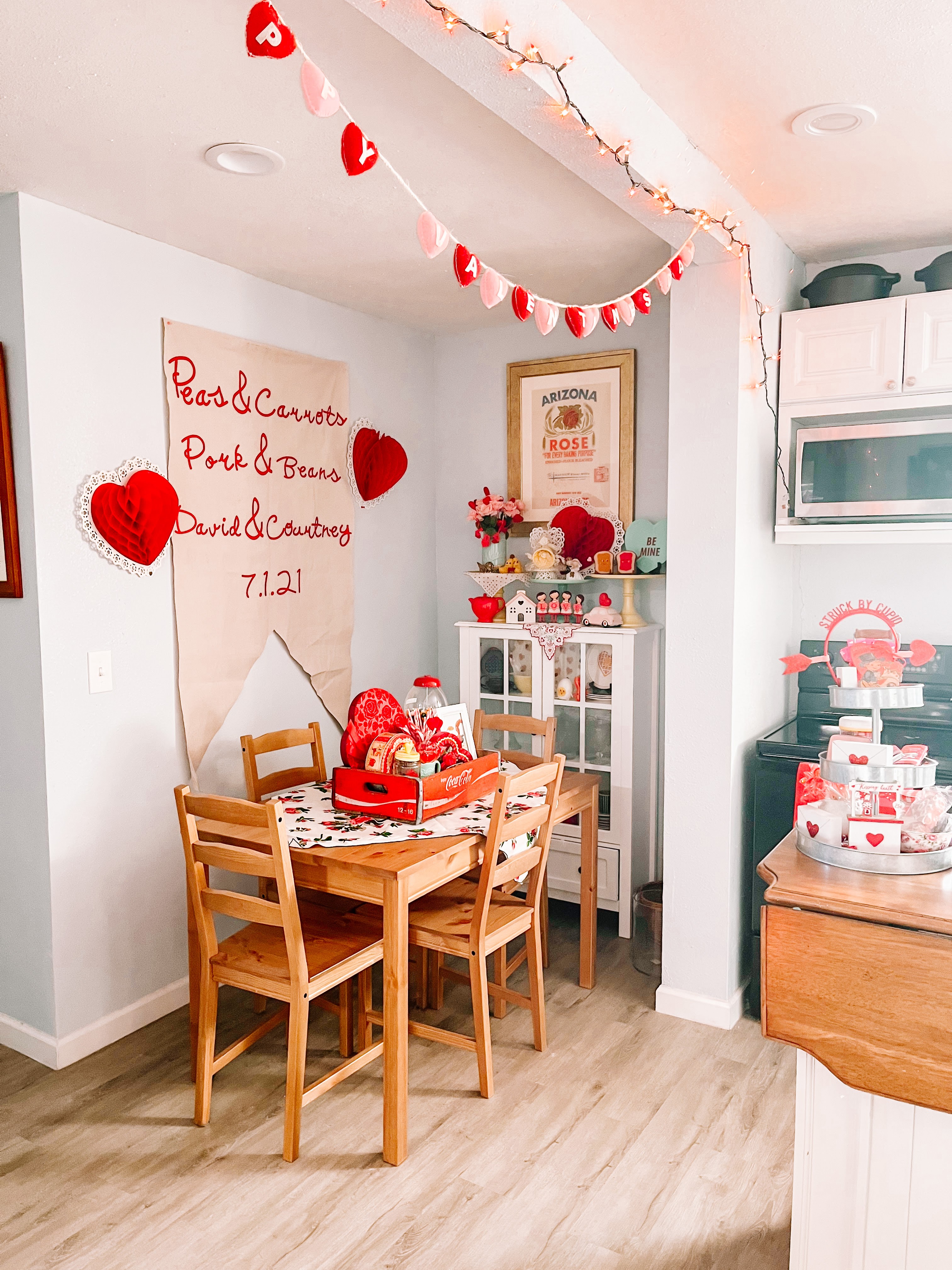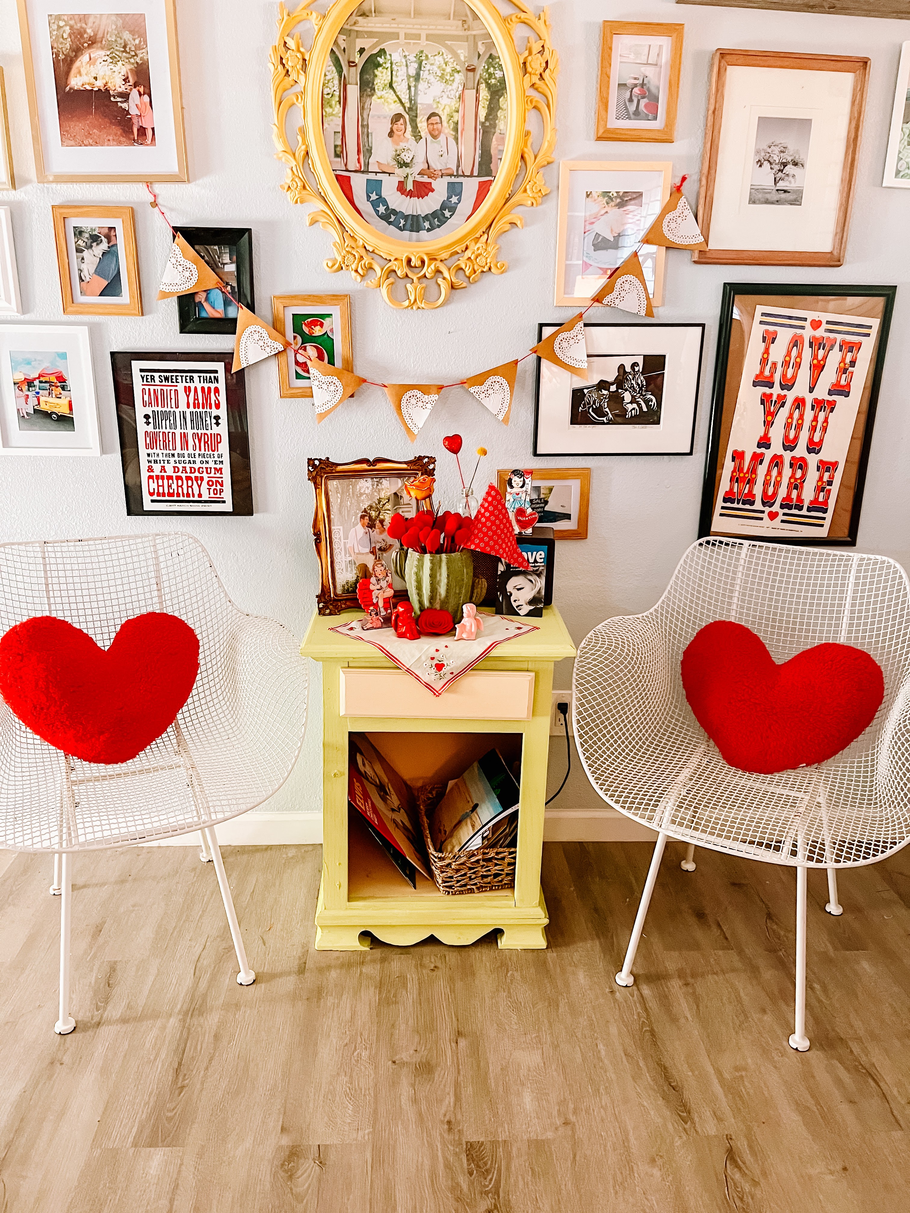 Anyway. I decorated my house! This was our first Valentine’s Day as a married couple but we didn’t really do anything. Bah! Is that a SIN for a Millennial to admit that on her BLOG … on the INTERNET? It’s true. We decided to go to my hometown for its annual Gold Rush Days and celebrate Super Bowl instead. Yes! Our romantic weekend involved the carnival, eating a crap ton of nachos, and antiquing like old farts. Yep! Sums it up.