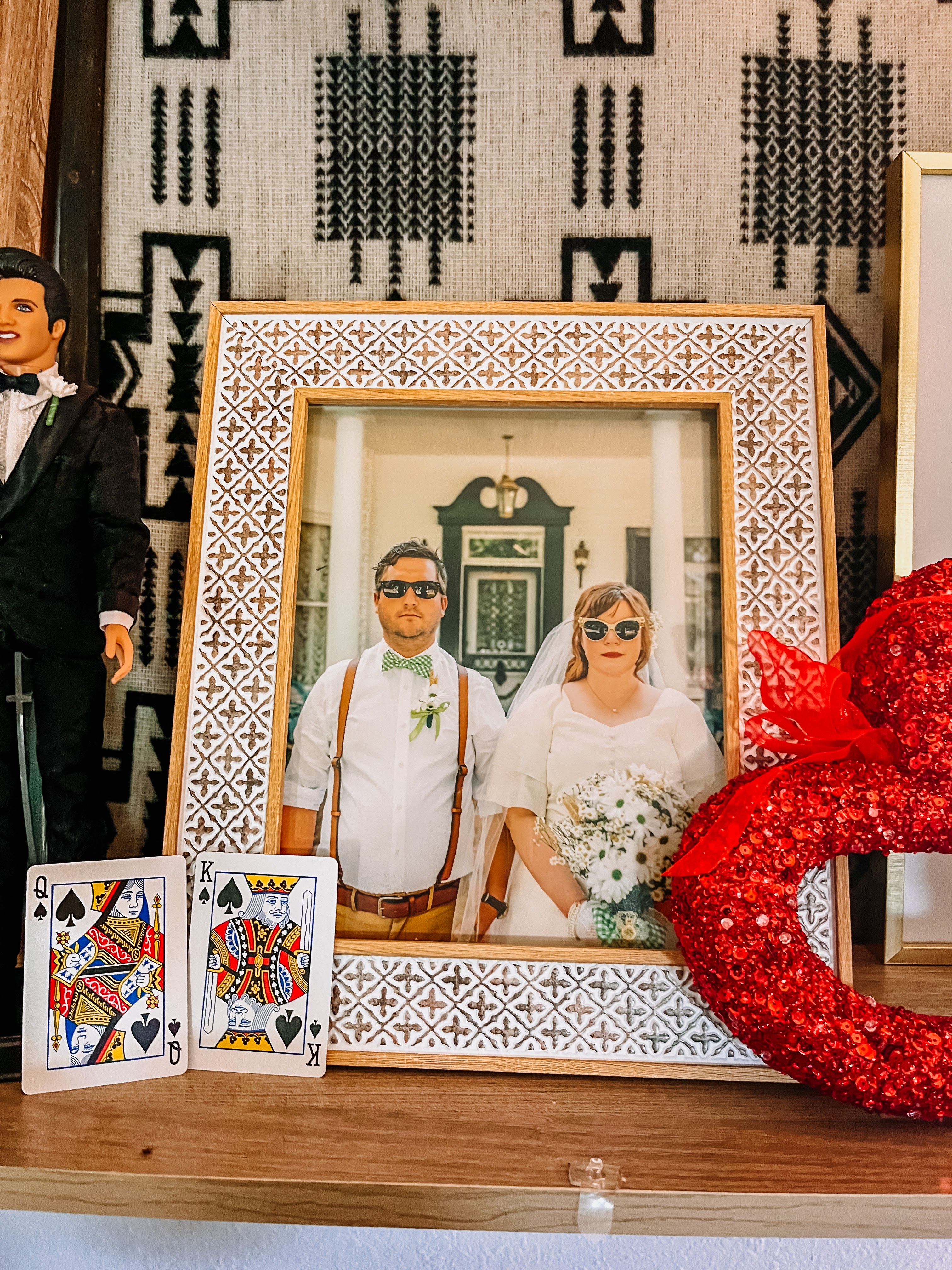 Not the greatest quality pic. A thousand pardons. Also, I am fully aware that our artwork on the shelf needs to be rearranged. David just recently bought this new piece of Native American weaving and it competes with my Lord Huron art piece. I’ll get a smaller frame for that piece eventually and it will look more in balance eventually, just not in February 2022 LOL.