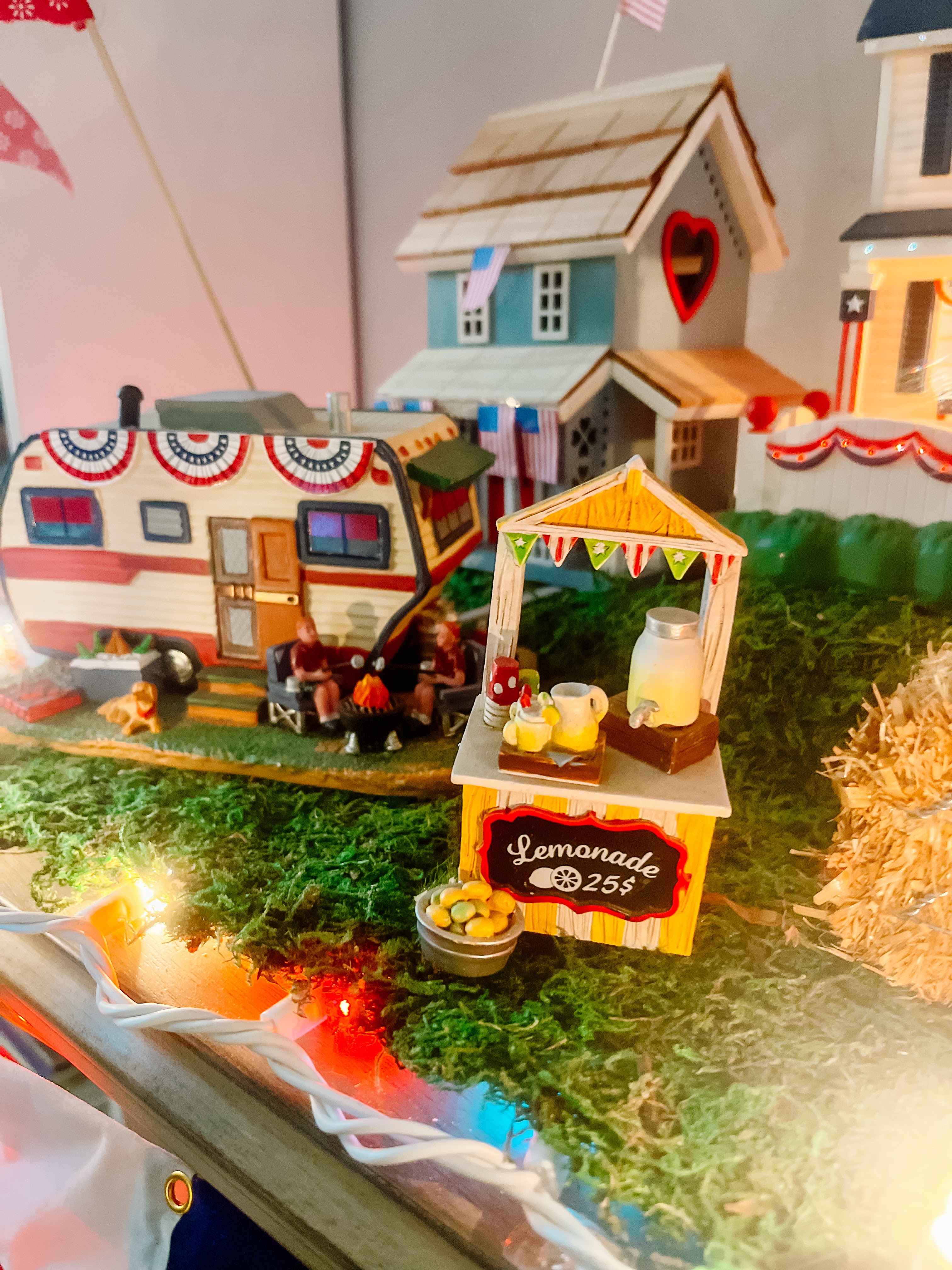I asked David one morning…did you ever think you would have a 4th of July village in your home that was so EXTRA?