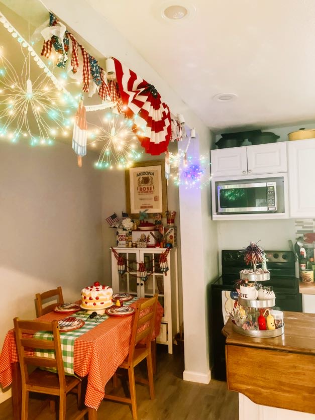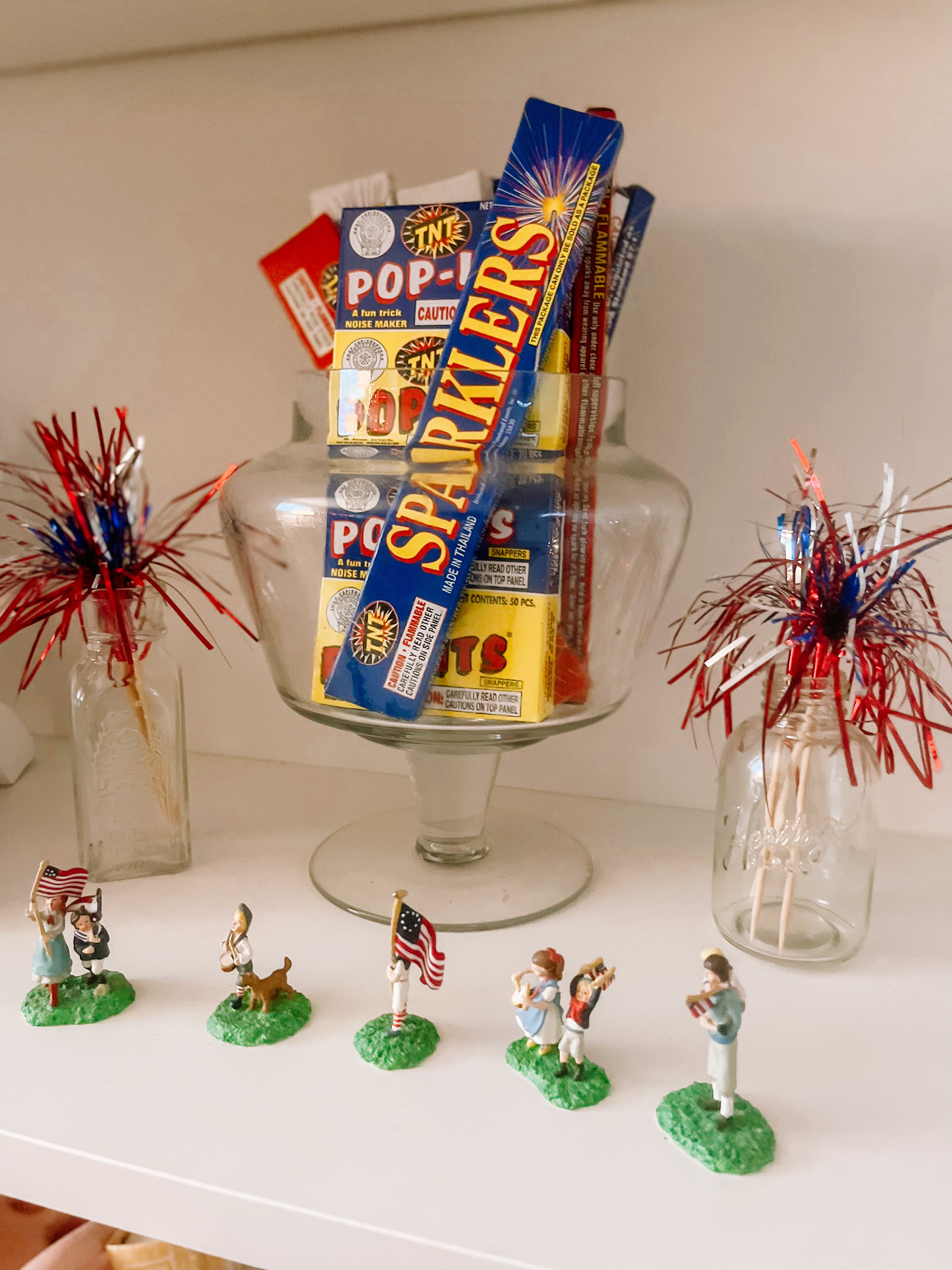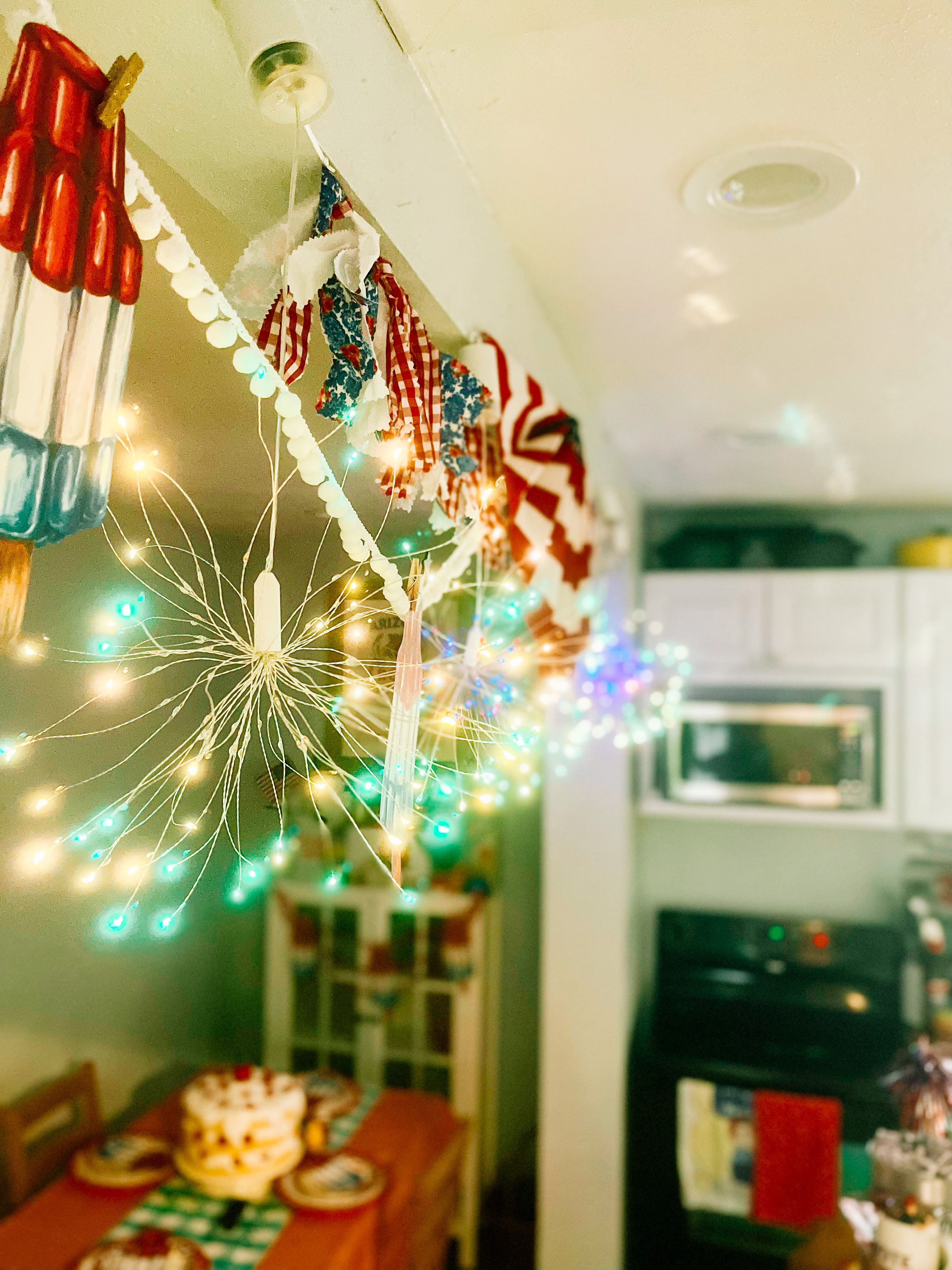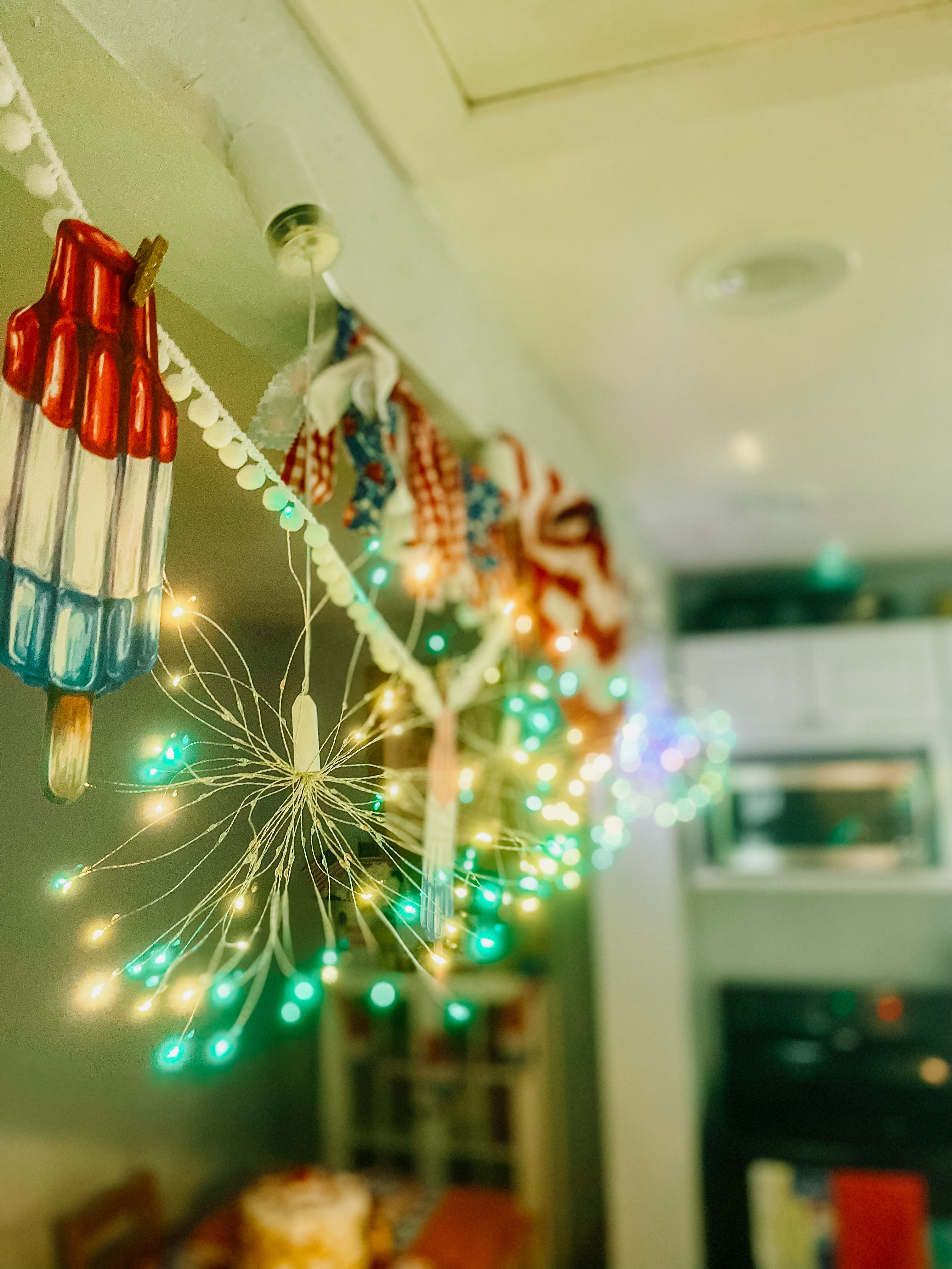This year I bought these four “firework” lights. They’re marketed for Christmas but I snagged them for my 4th of July decor. They blink and literally look like fireworks which is quirky and cute.