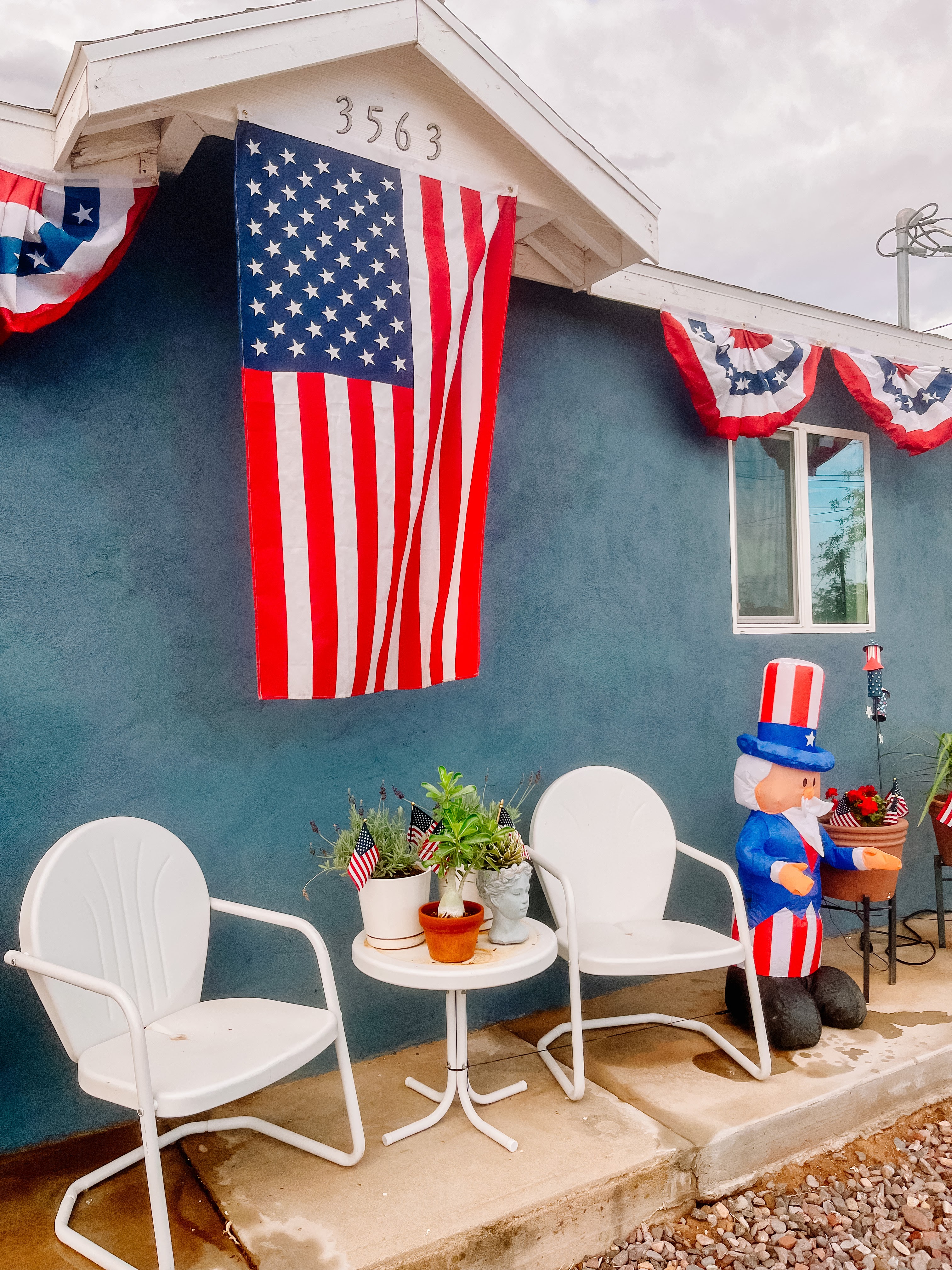 Our little honeymoon rental home! Which is blue and really rocks that whole red, white and blue. We put up bunting this year! I have this THING for patriotic bunting. Everytime we drive by a house with bunting I’ll point and say “Bunting!”
