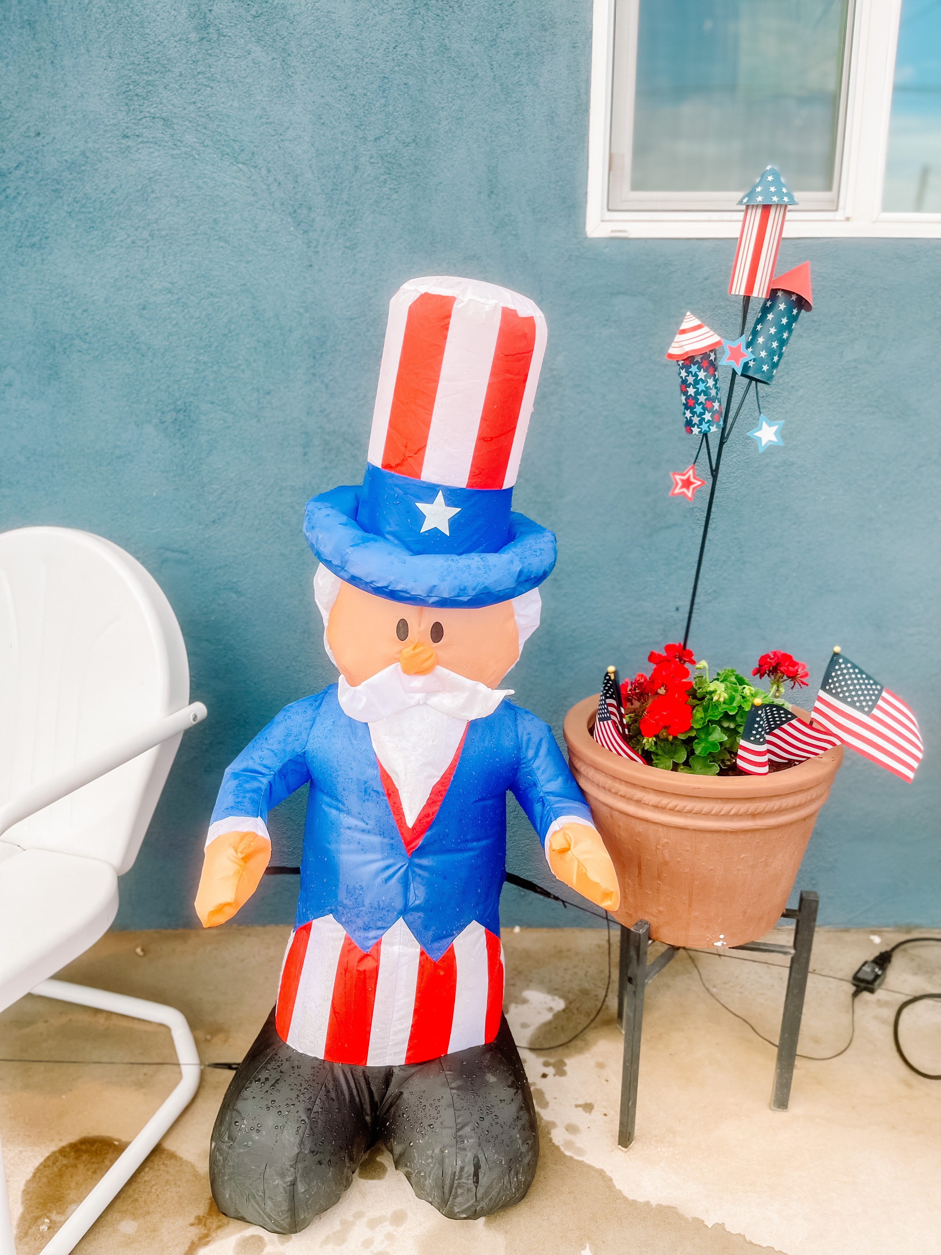 I’m also not the biggest fan of inflatable yard decor. But Walmart had this little Uncle Sam for fifteen bucks. Sold!