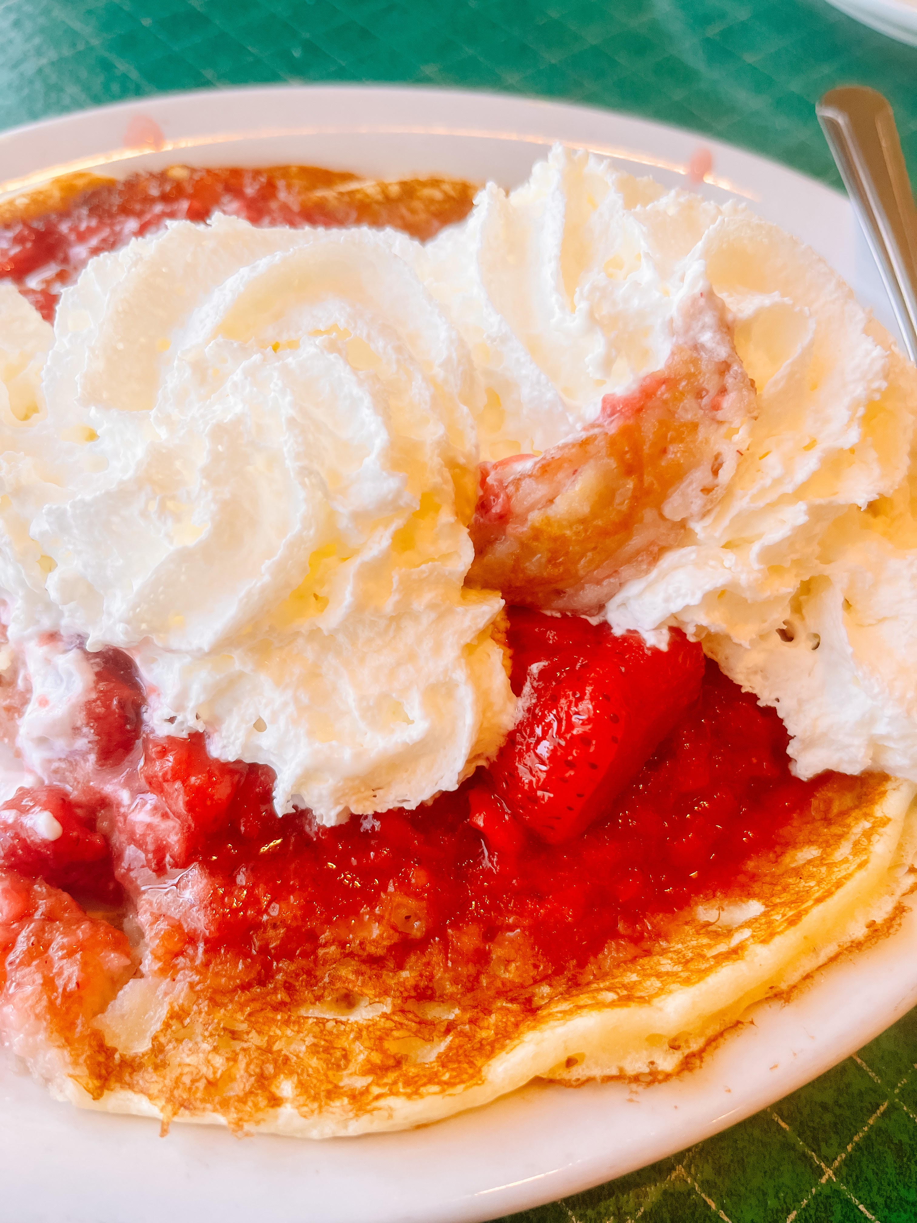 Both times I ordered their flannel cakes that are literally.so.damn.good. They’re like a thin, nutty pancake covered with thrashings of strawberry sauce and whipped cream. I’m sensing a wedding anniversary tradition???
