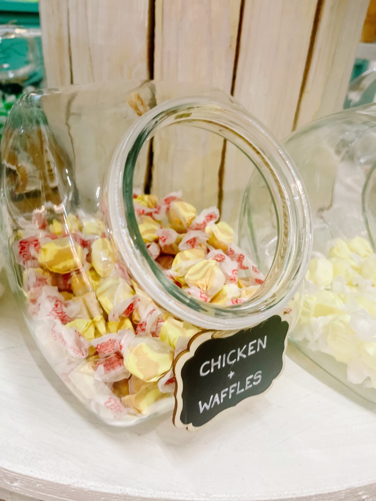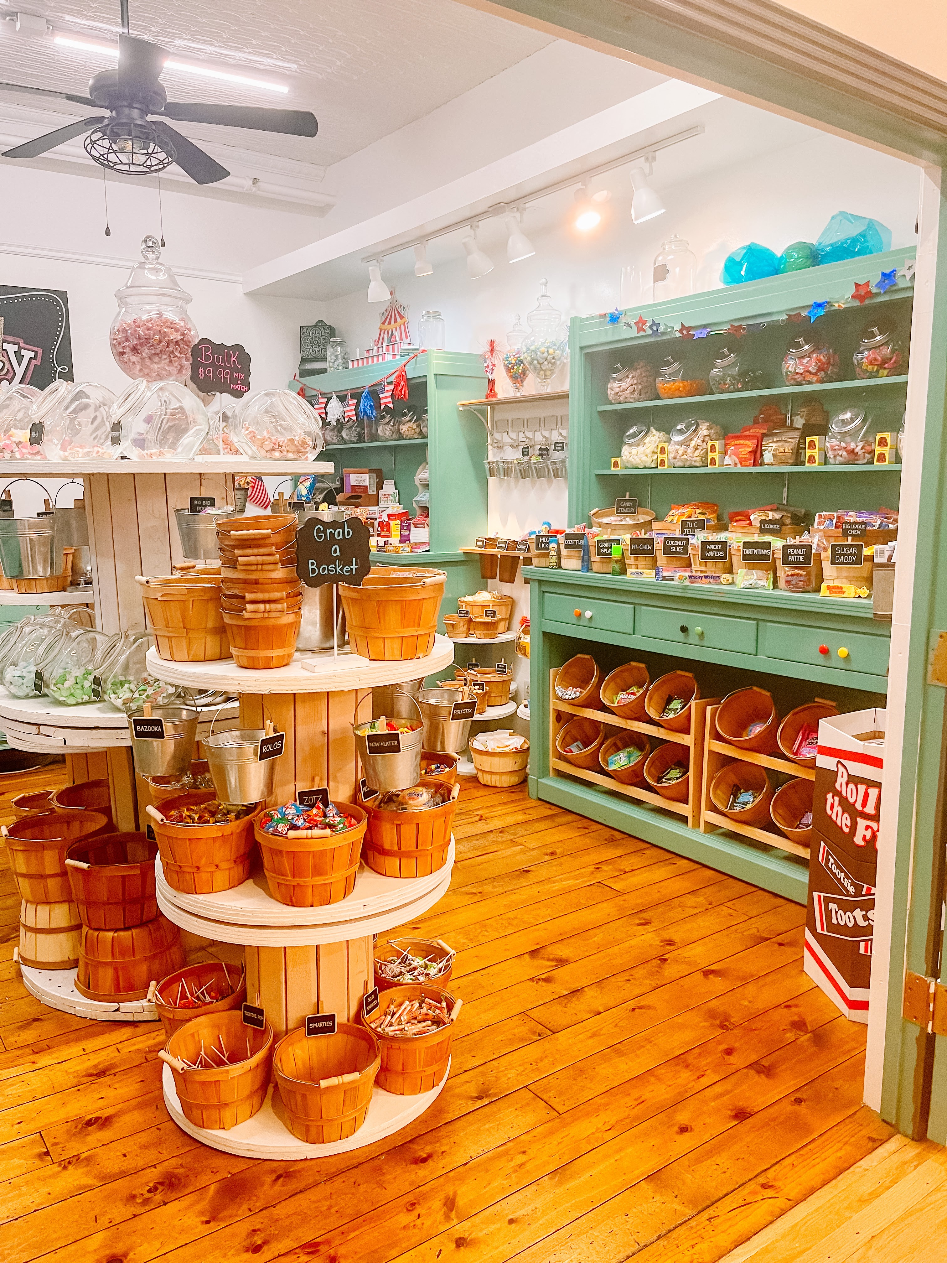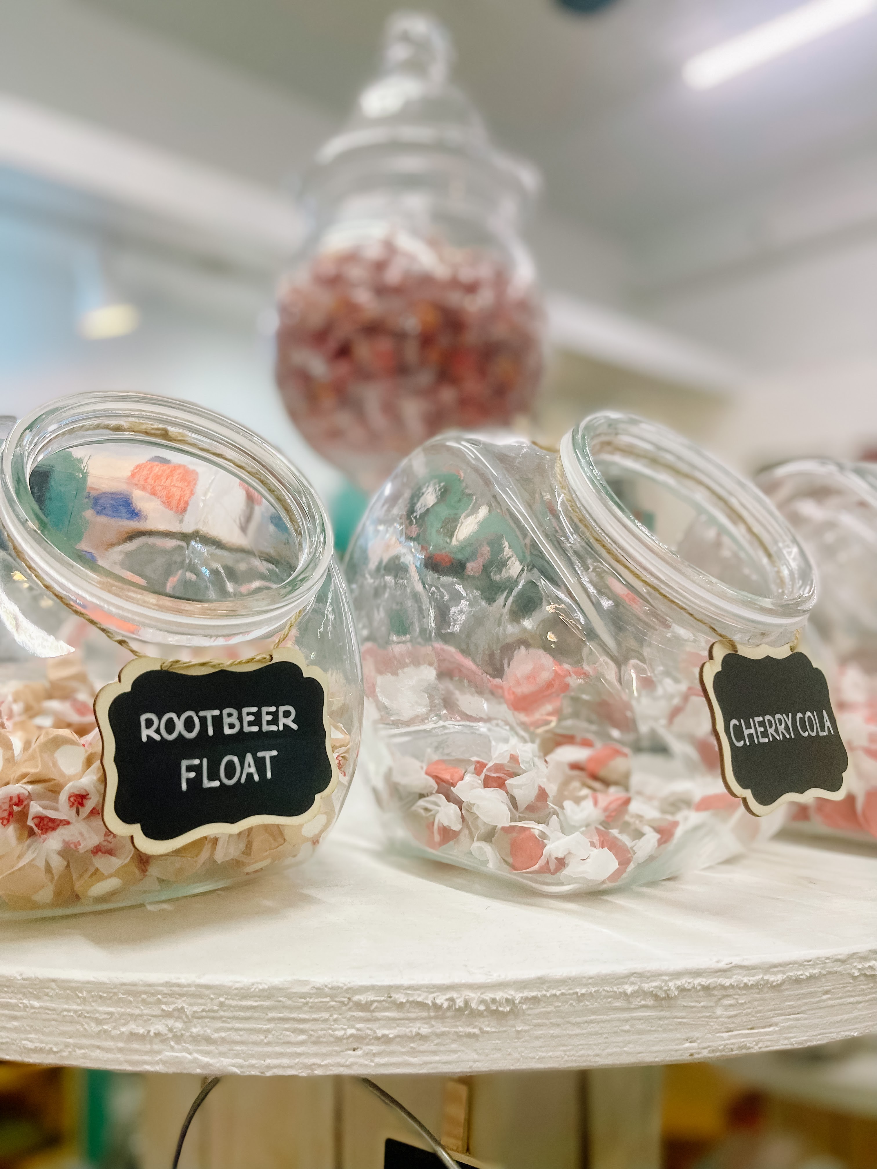 We walked around all of its charming little shops off Courthouse Square including a hipster (is that a word we use anymore?) plant shop, a shop dedicated to just crazy socks, homemade soaps, and an old fashioned candy shop where we bought lots and lots of salt water taffy with fun summer flavors such as root beer float, cherry cola and chicken and waffles.