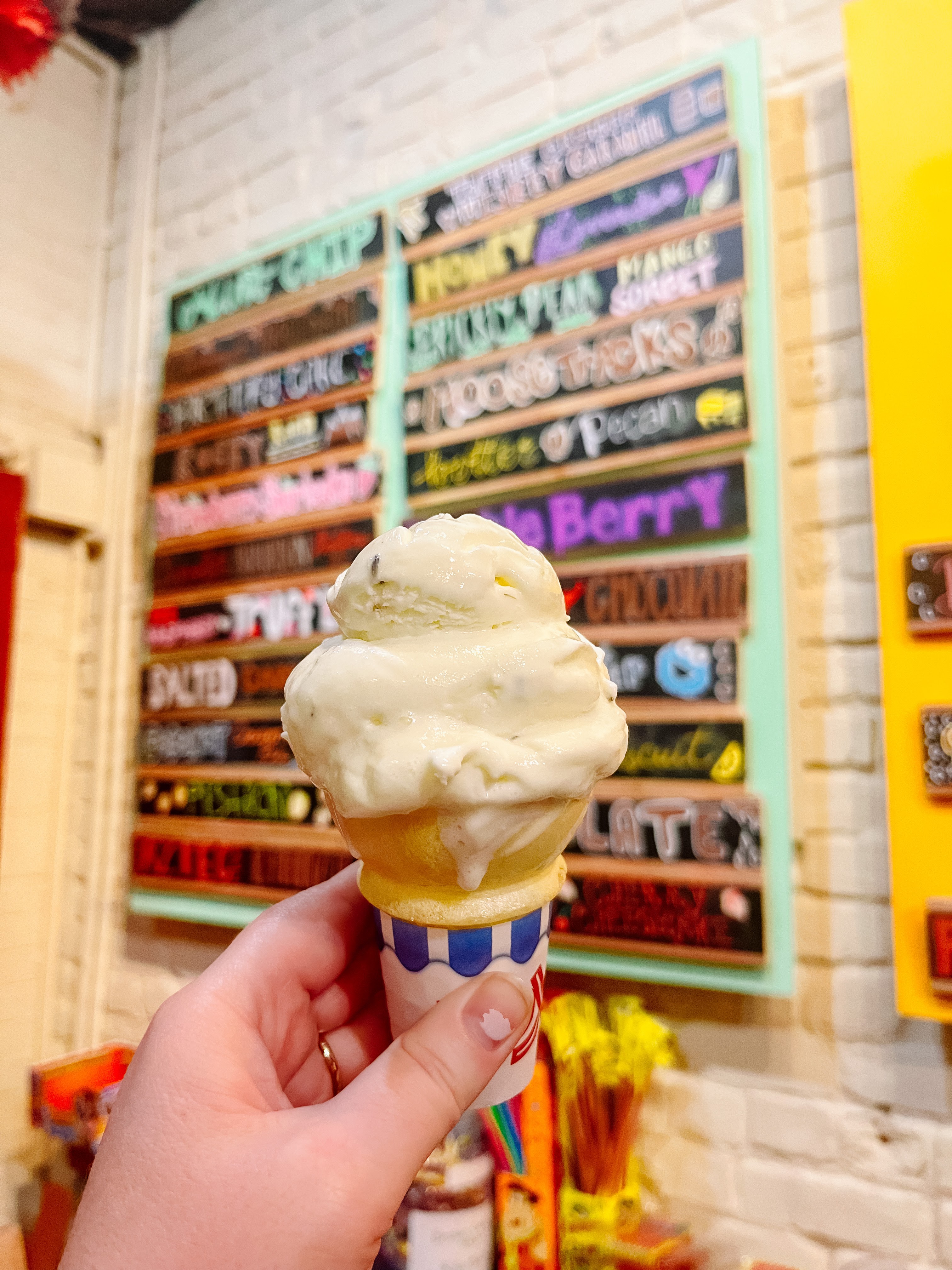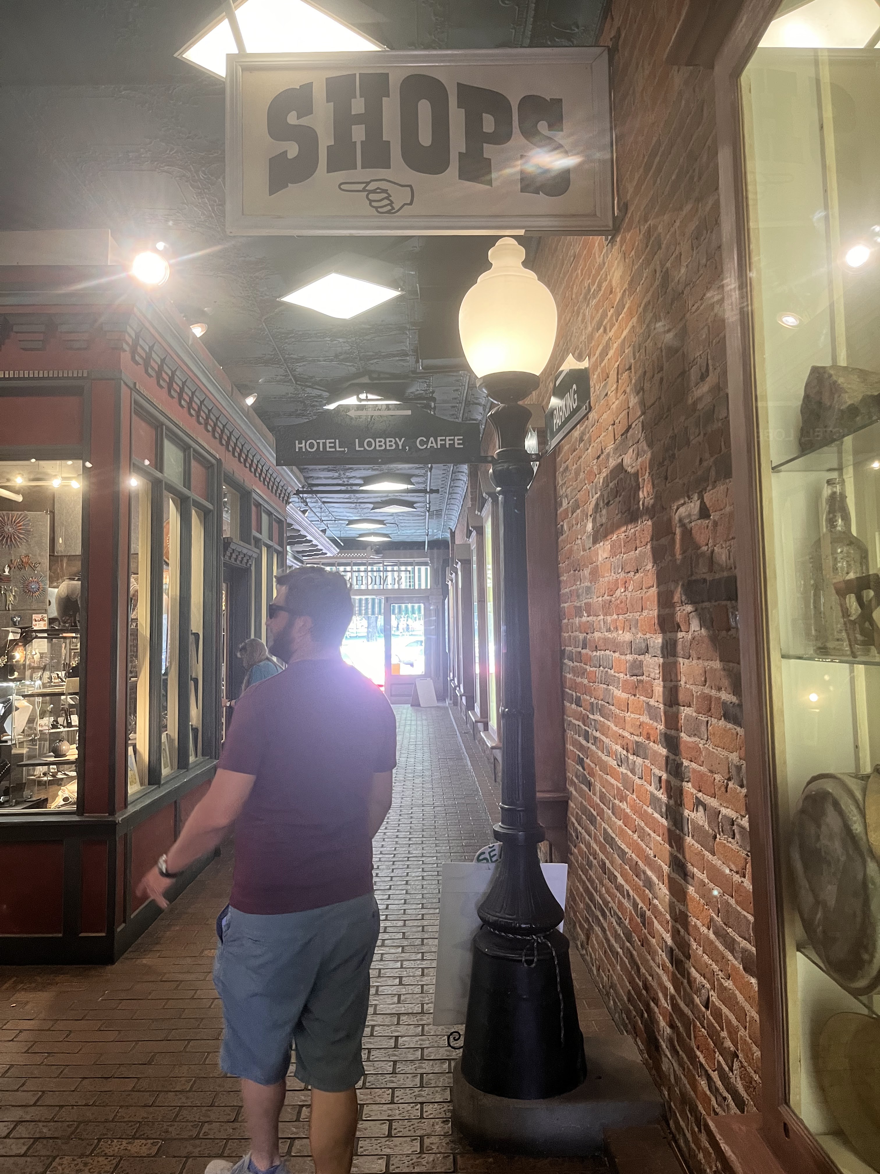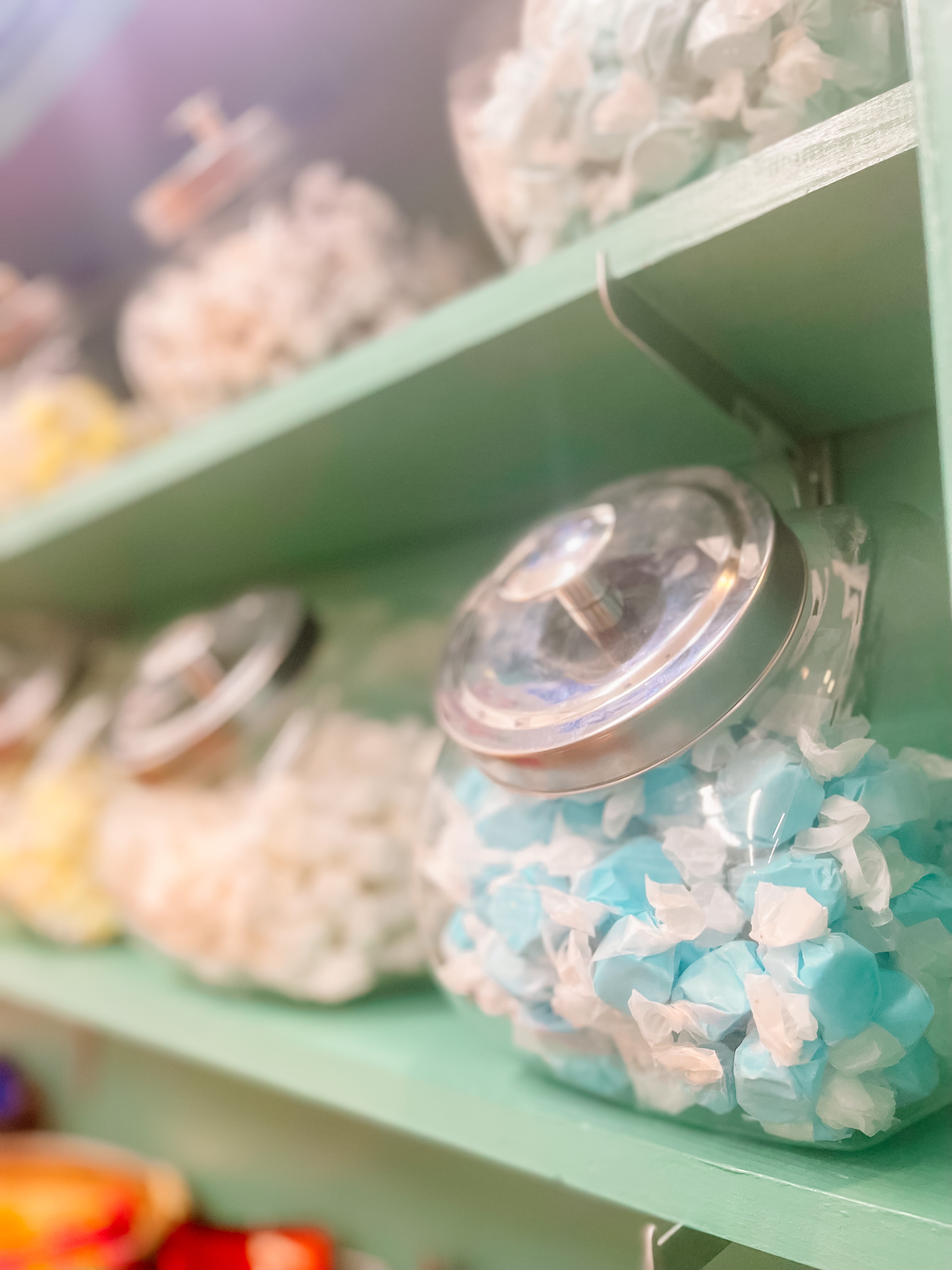 We walked around all of its charming little shops off Courthouse Square including a hipster (is that a word we use anymore?) plant shop, a shop dedicated to just crazy socks, homemade soaps, and an old fashioned candy shop where we bought lots and lots of salt water taffy with fun summer flavors such as root beer float, cherry cola and chicken and waffles.