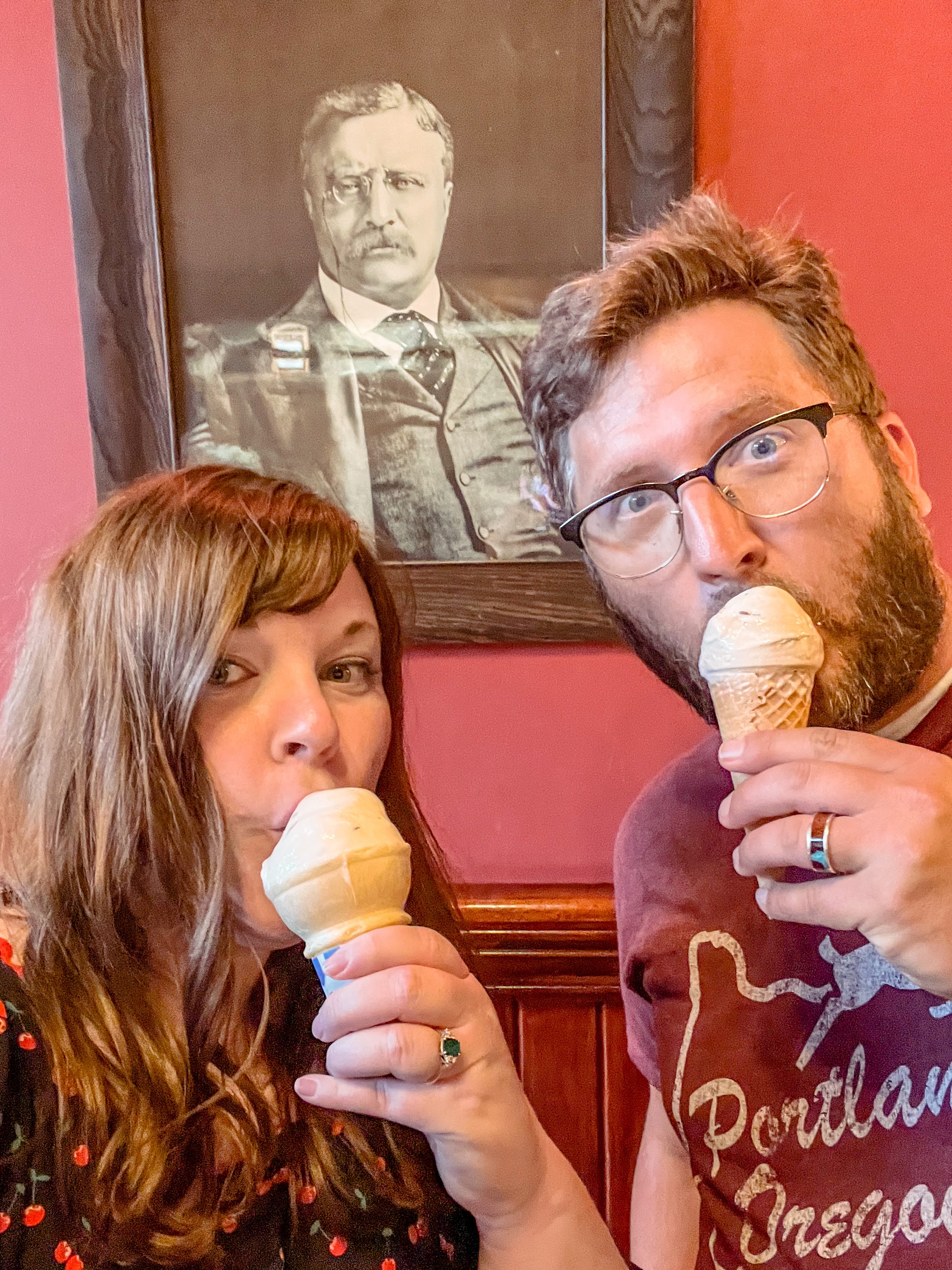 So last year, the night before our wedding, David stayed at the historic St. Michael Hotel while my sister and I I stayed the night in the yellow house. David took an evening stroll, got an ice cream cone and walked back to his hotel room, but snapped a selfie with Teddy Roosevelt’s portrait in the foyer before heading up to his room (Okay, brief history lesson: Teddy Roosevelt stayed in the hotel in late 1800s as most of the Rough Riders were recruited from Prescott. Sorry, my history geek is showing.)