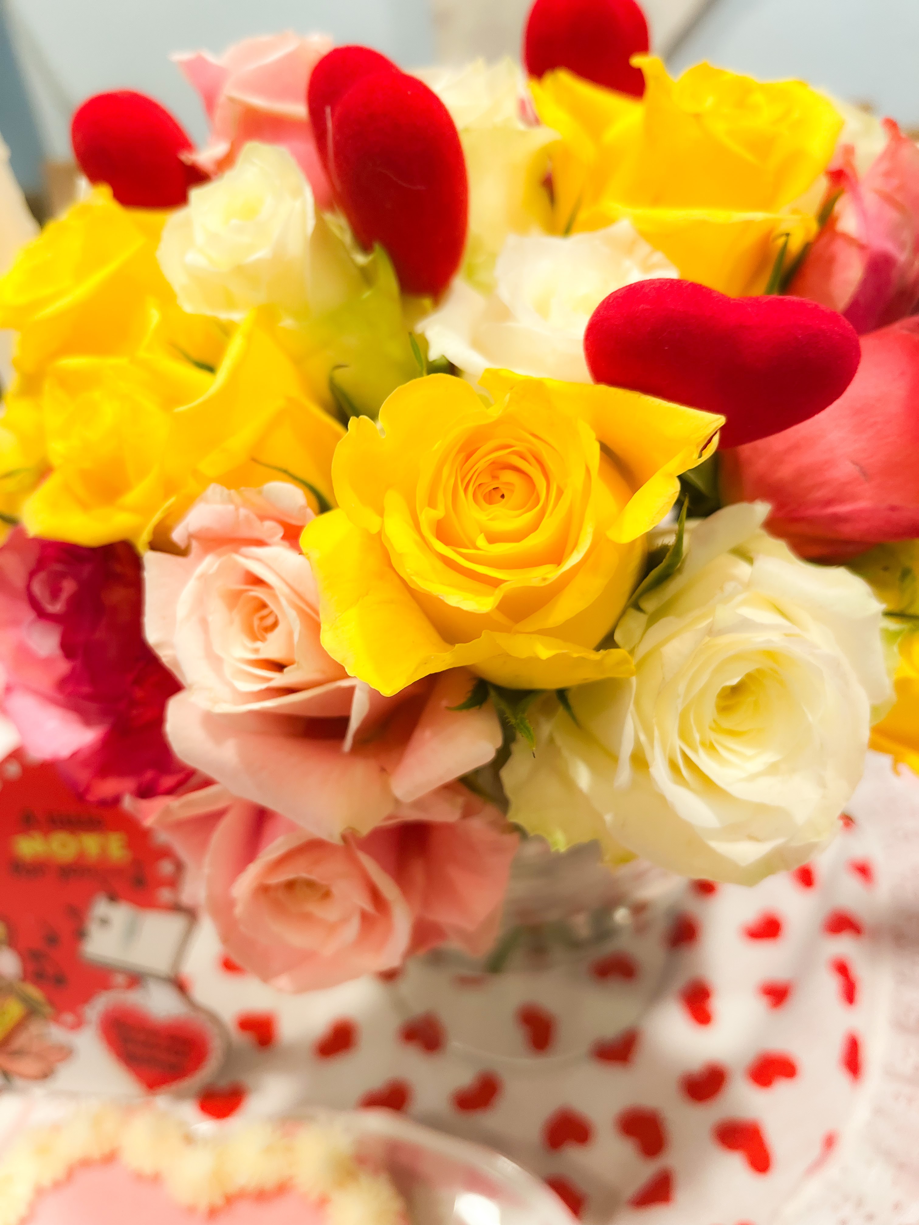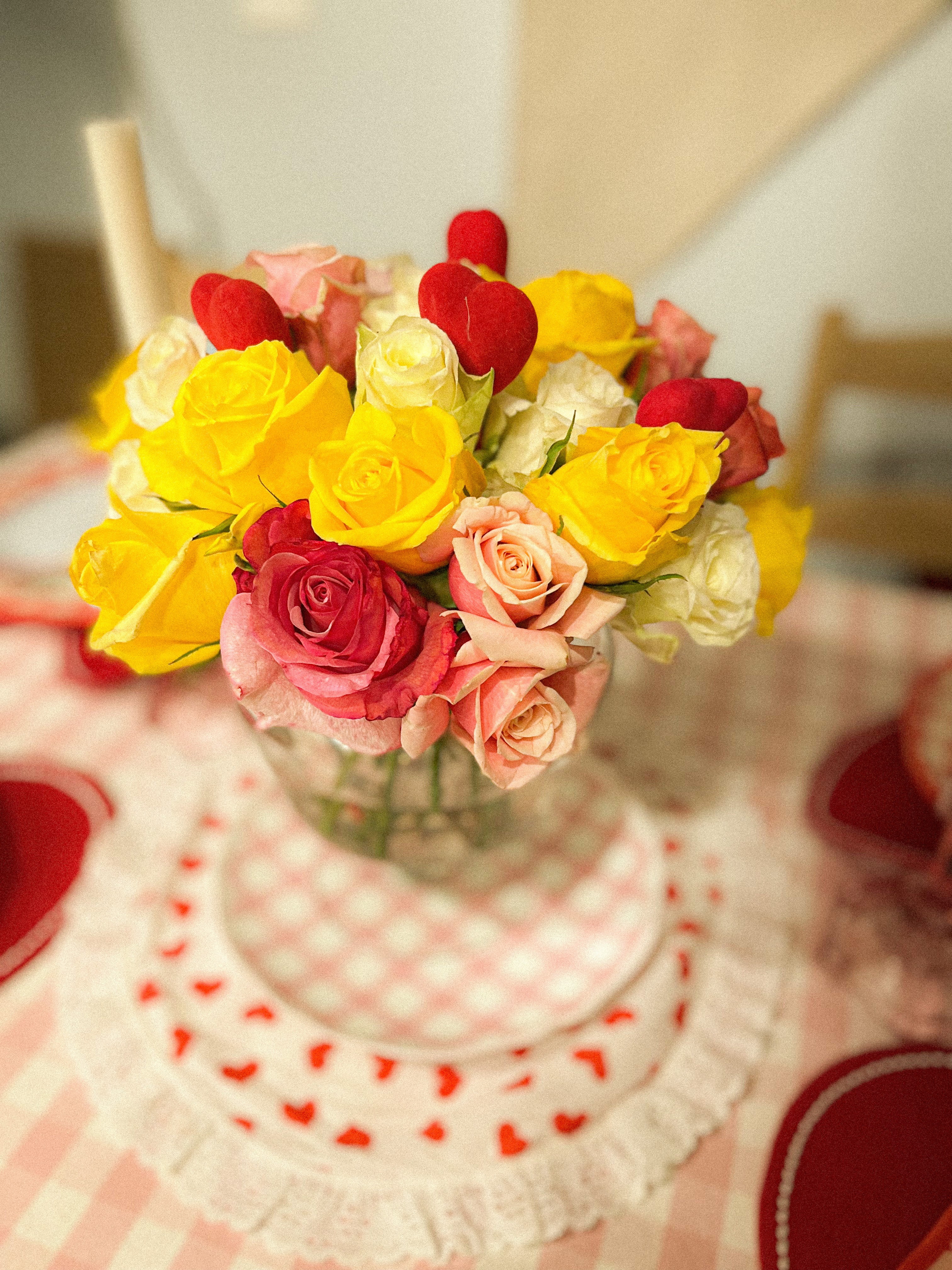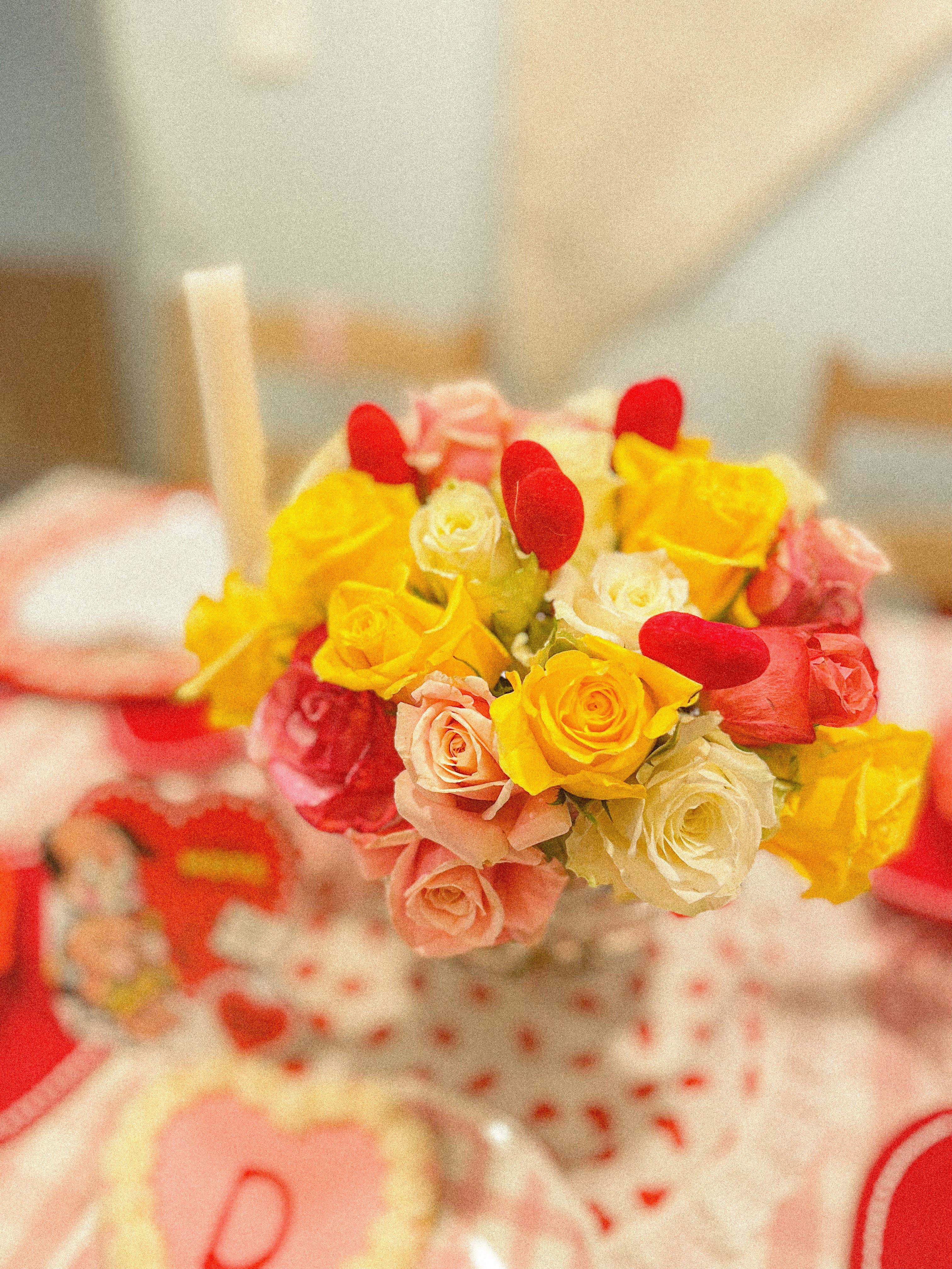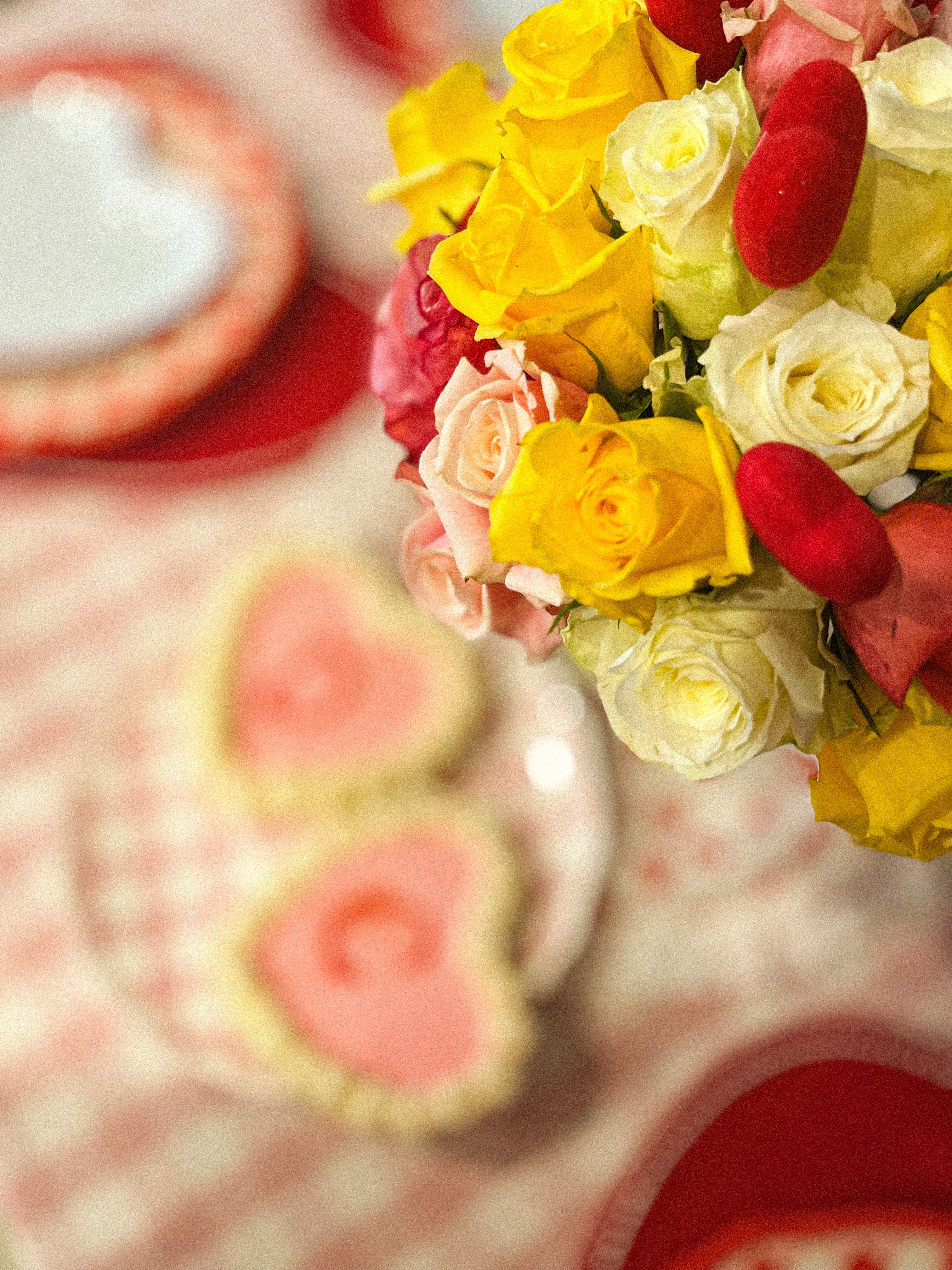 The fun thing about getting married with the possibility of babies (fingers crossed) in the future, is the conscious effort of creating traditions. Holidays and traditions are essentially synonymous, and one of the things I always wanted to make into my lil’ V-Day tradition with my own family is to bake giant heart shaped sugar cookies with pink and red frosting. I wanted to spell out everyone’s names in frosting and use it as a place card for a fancy schmancy V-day breakfast or for dinner.