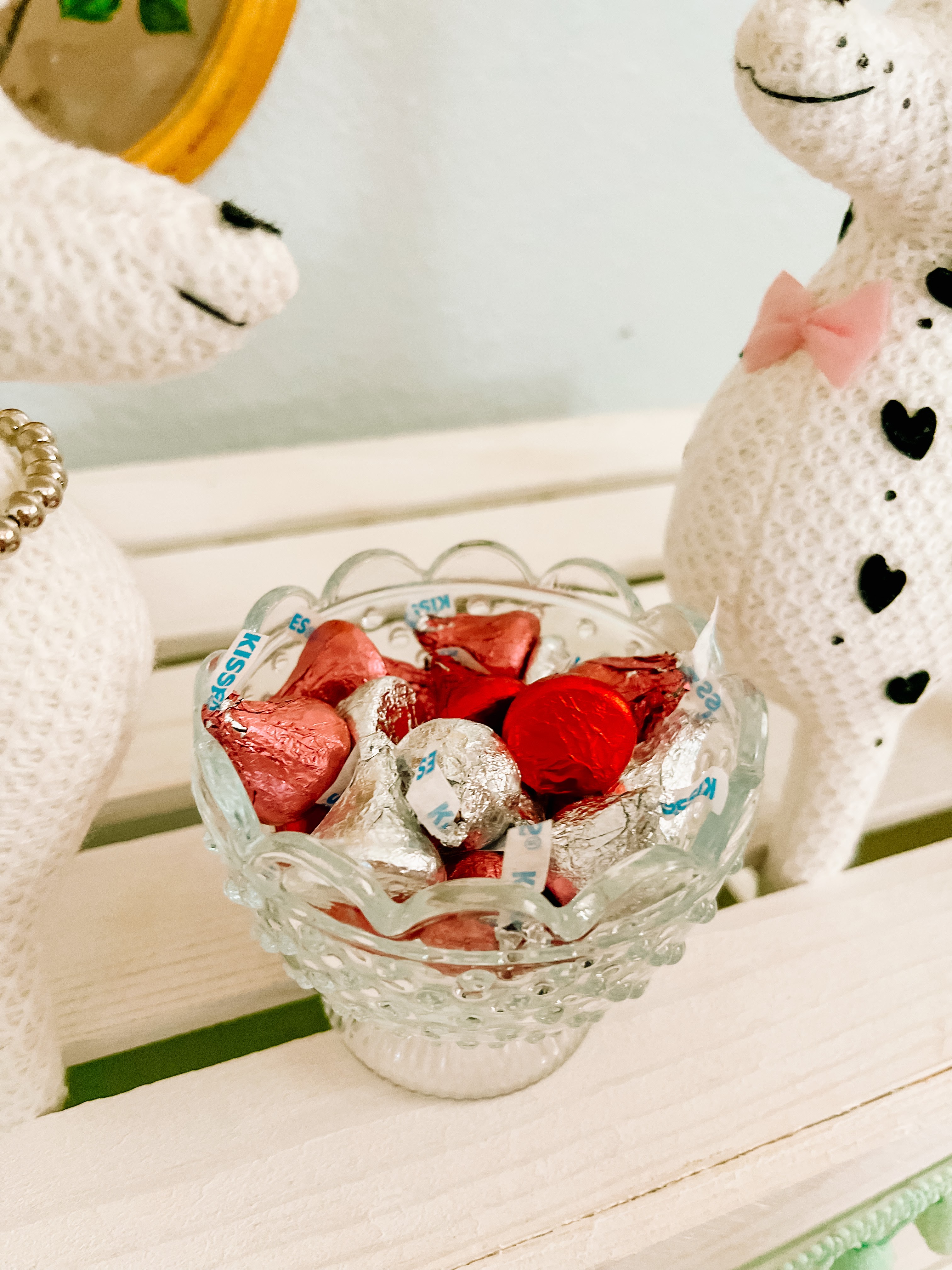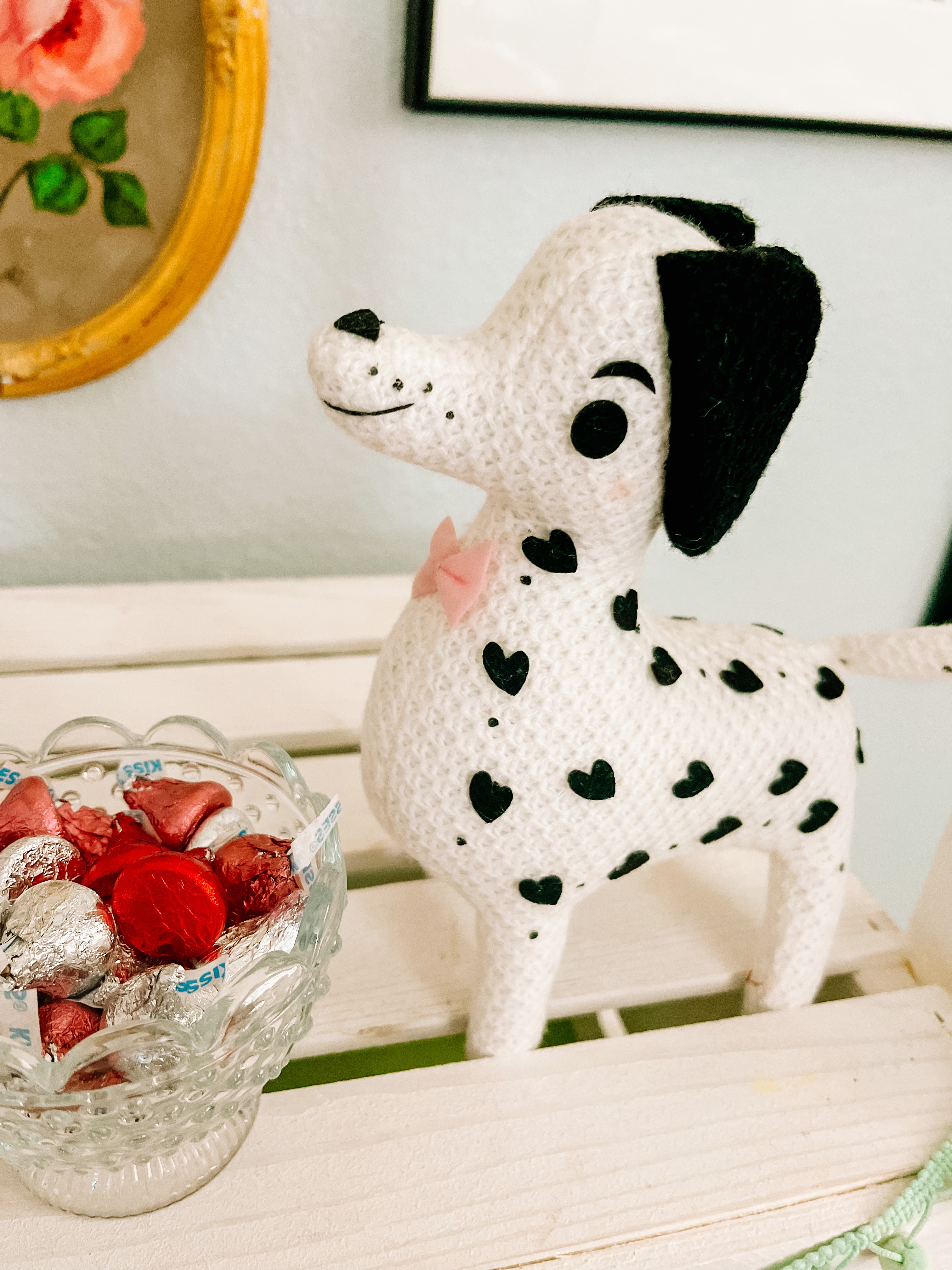 My lil’ darlin’ puppy love kissing booth. All together now! Awww! Okay but really, I got these Valentine’s dogs from Target a couple years ago and I just freaking adore them. The Dalmation and his heart shaped spots? COME ON!