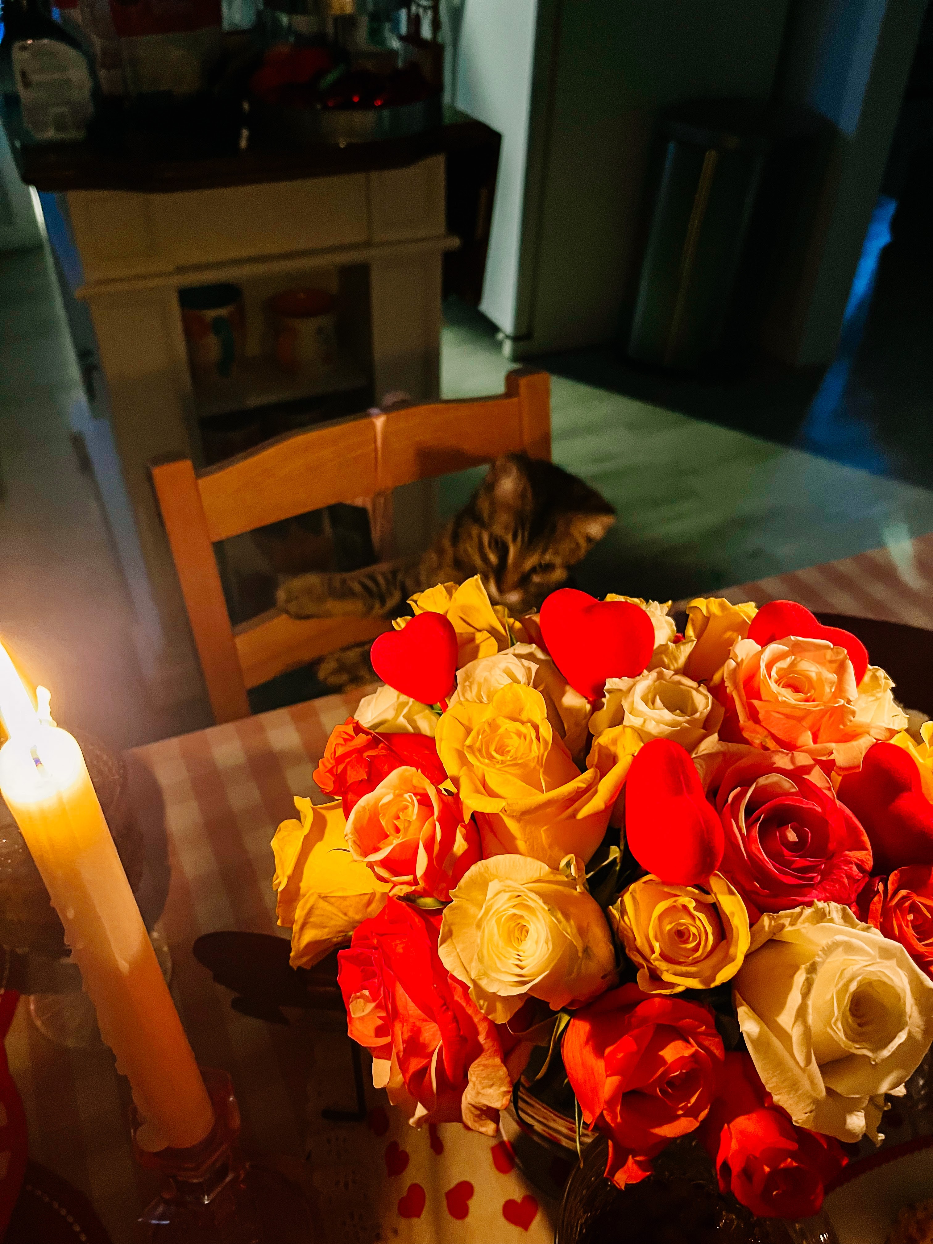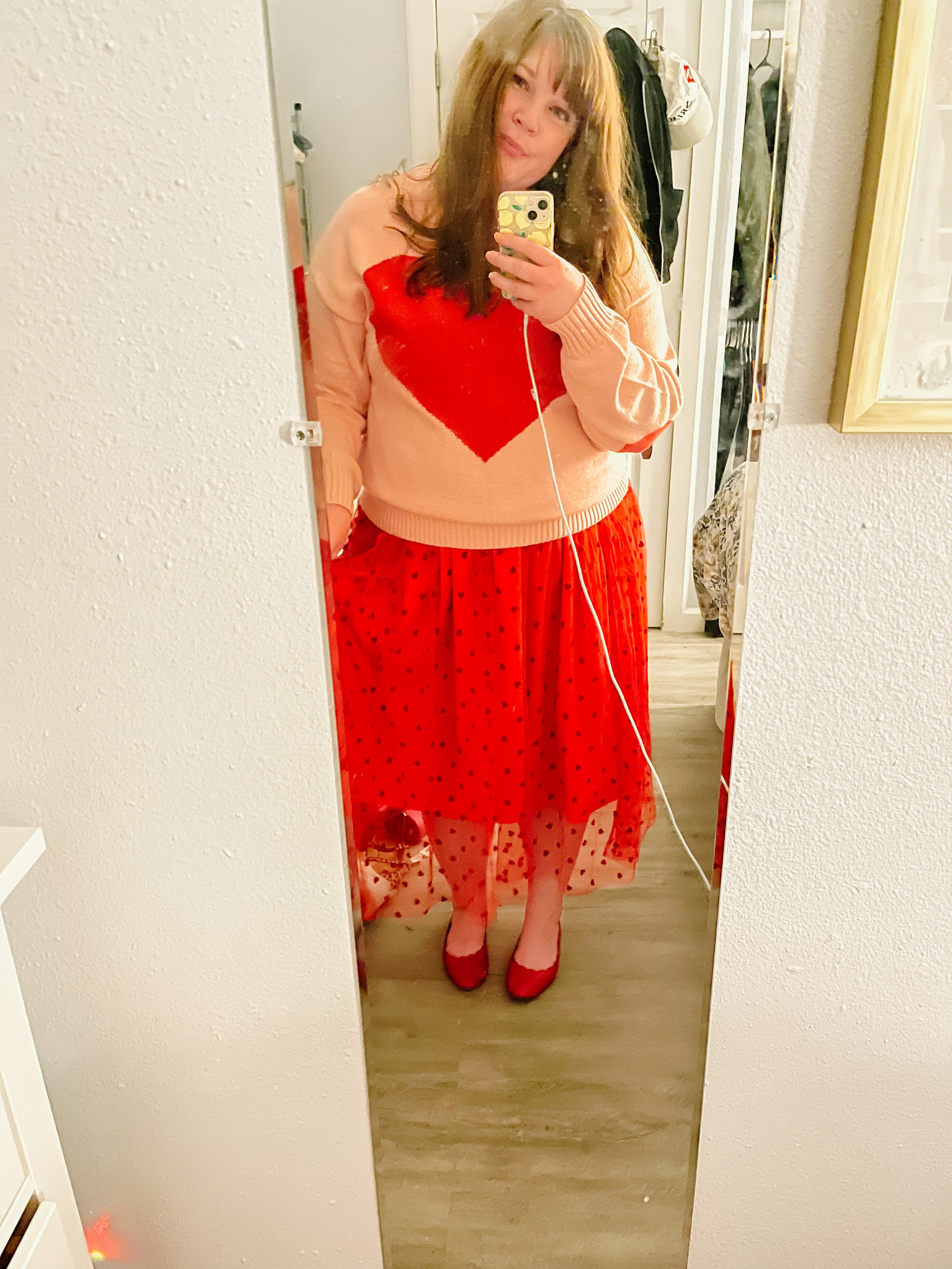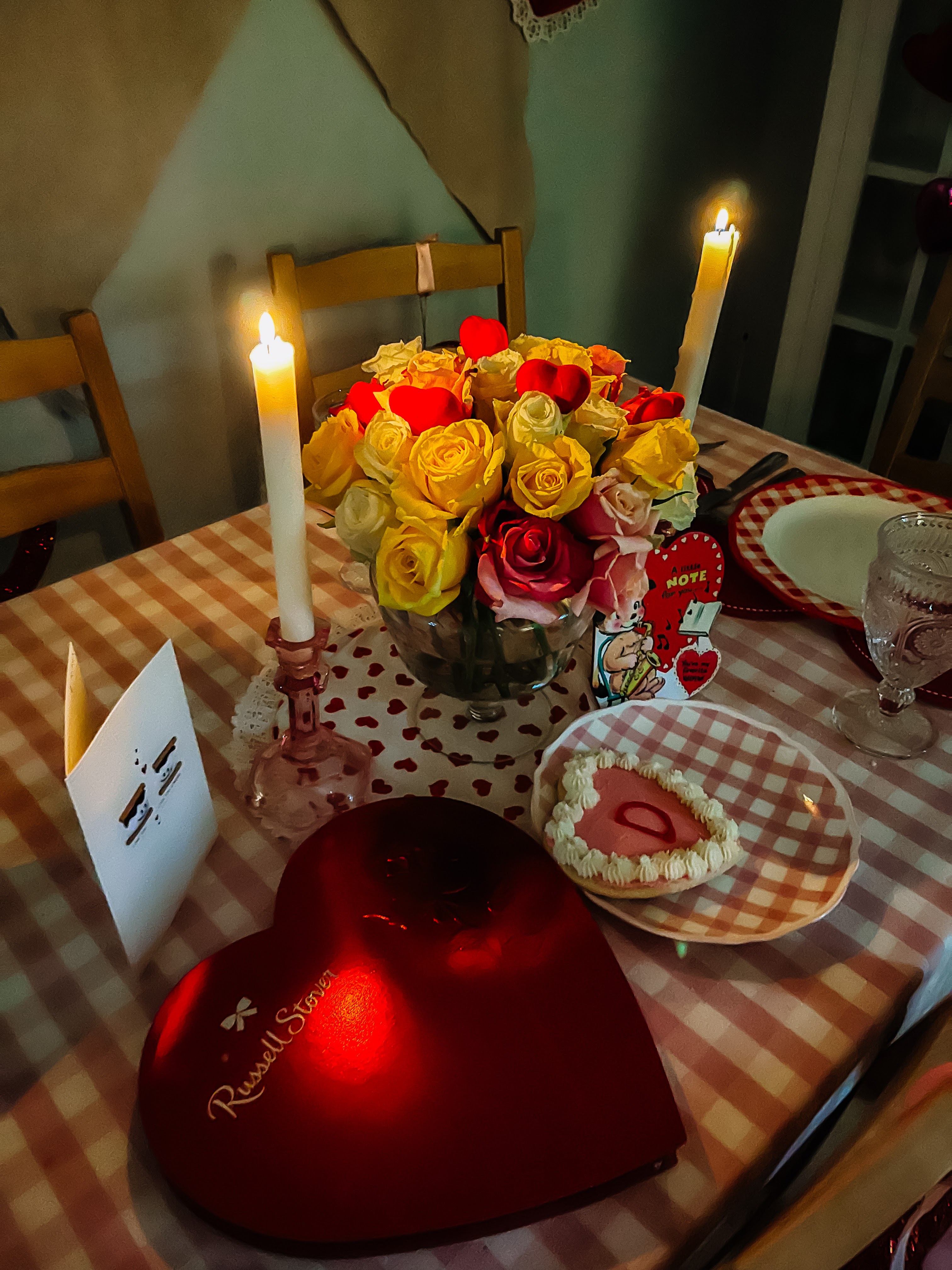 My adorable new V-Day outfit for our quiet V-Day dinner at home. Let’s face it, where we were living in Thatcher, AZ, there aren’t any nice restaurants to go to for V-Day. So I forced David to eat by candlelight, duh.
