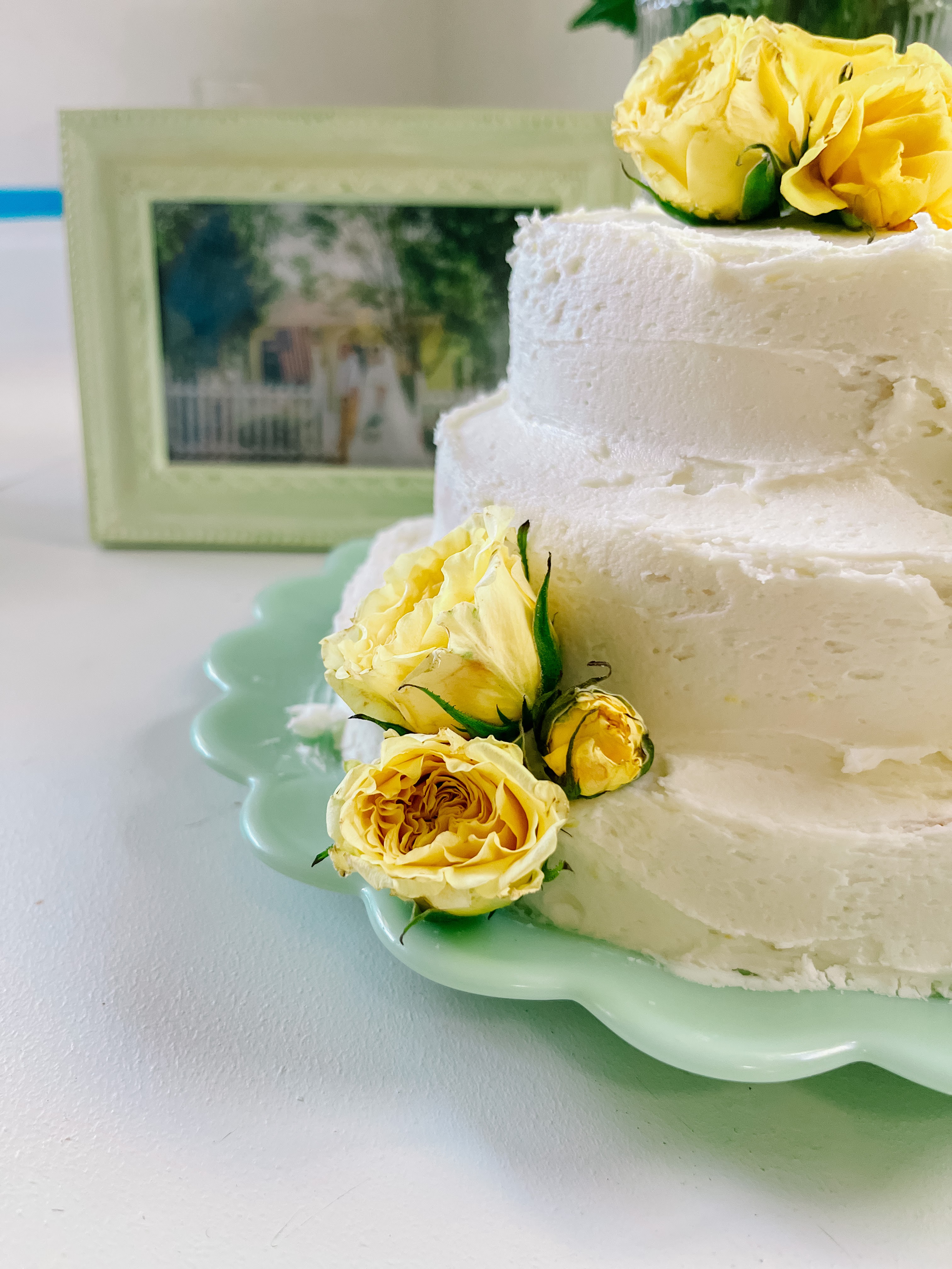 I’m kinda putting the idea in my back pocket to do a mini wedding cake for an anniversary cake everywhere.
