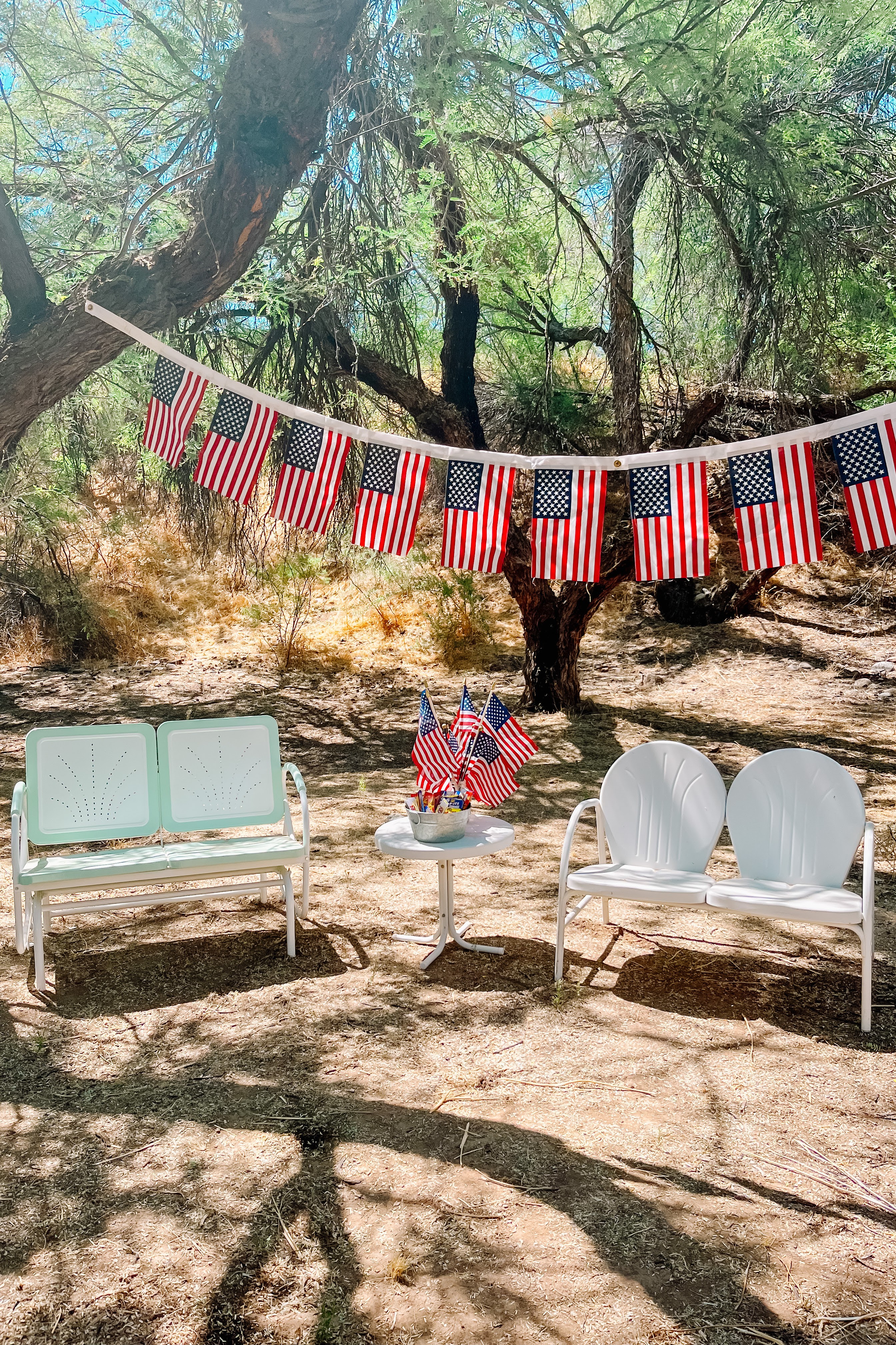 Yes! Even in the scorching heat, I managed to set up some retro lawn furniture and hang up some flags!