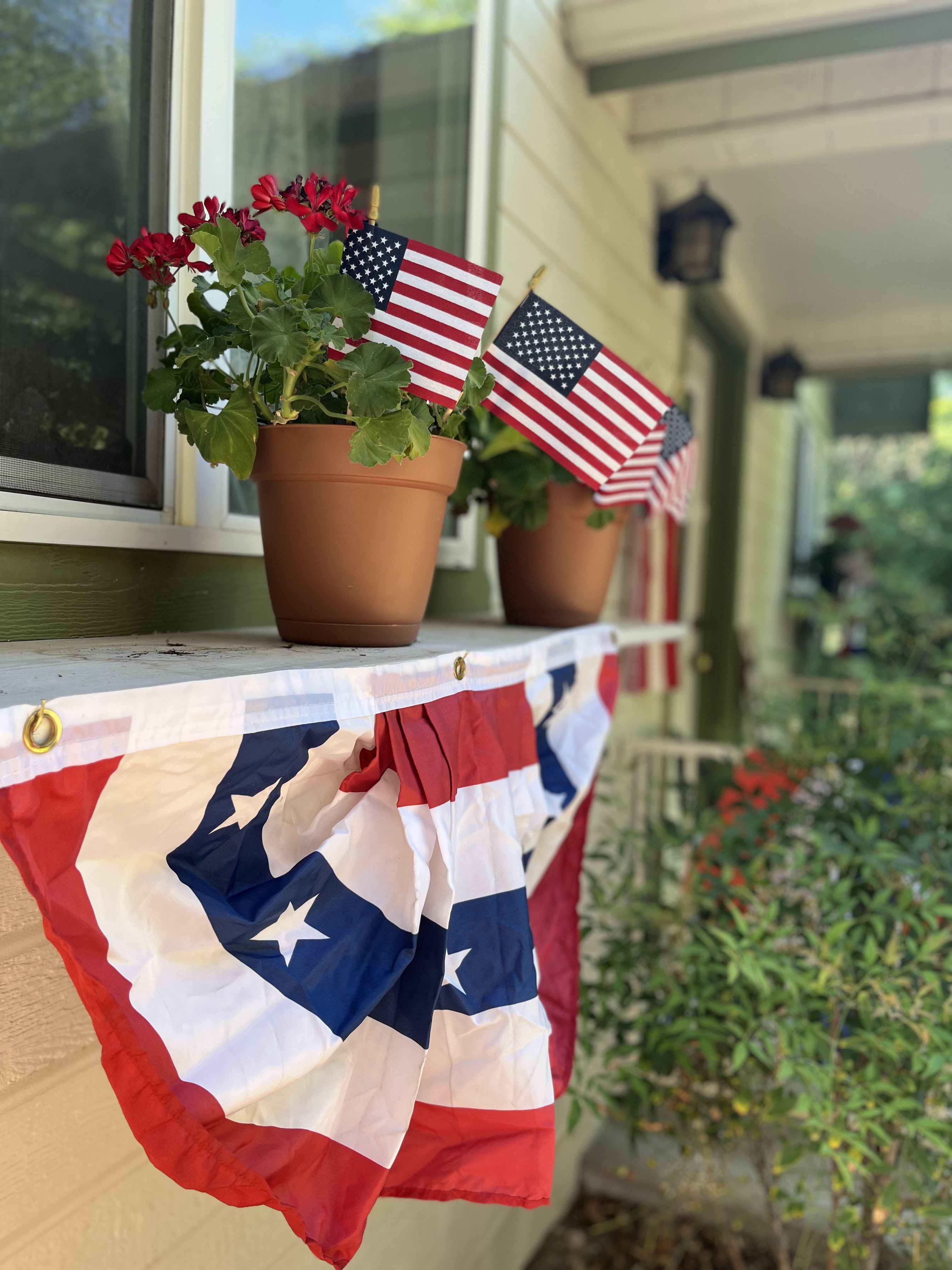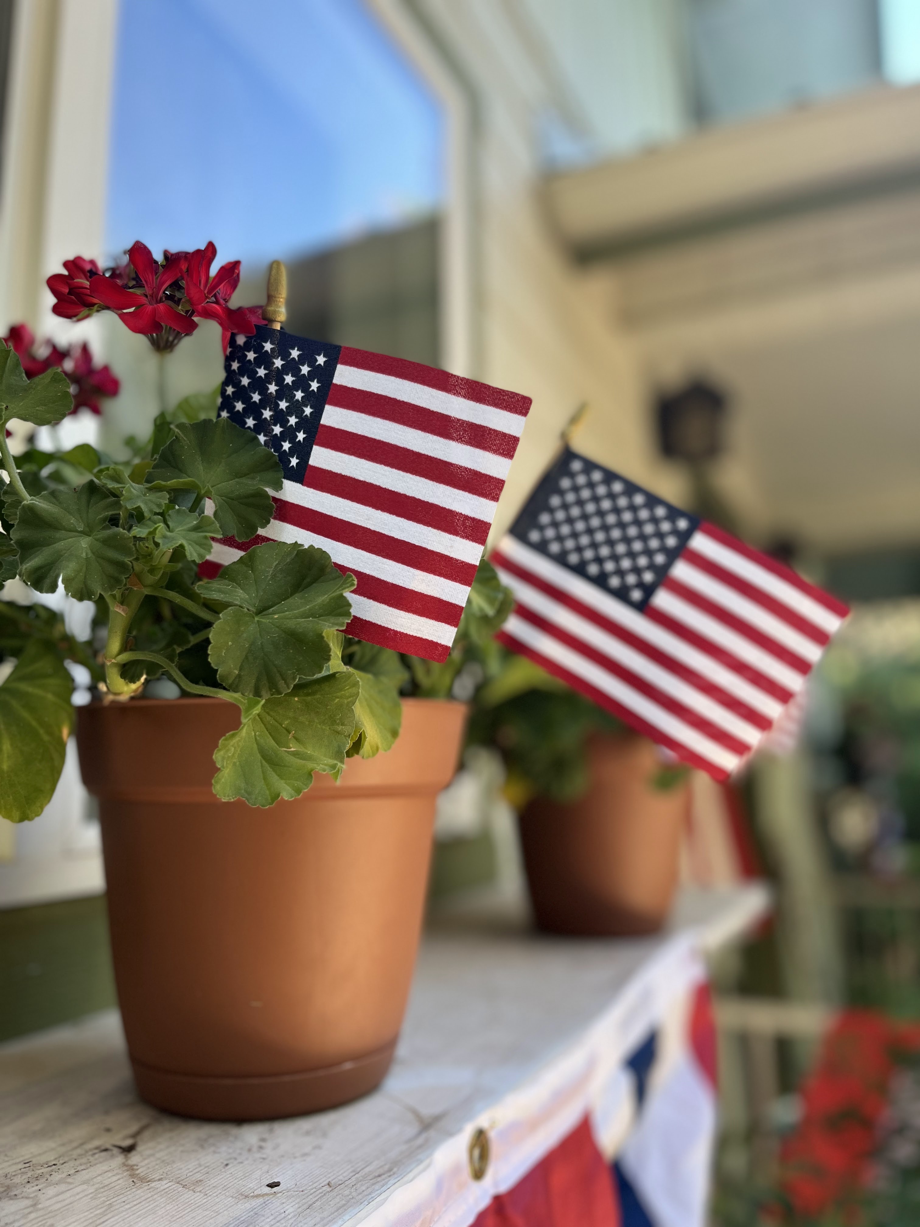 We are still madly renovating the inside of the cottage so no interior decor sadly. I was just a tad devastated to not unearth my 4th of July village from storage this year. Ohhhh, the pain. I was wretched.