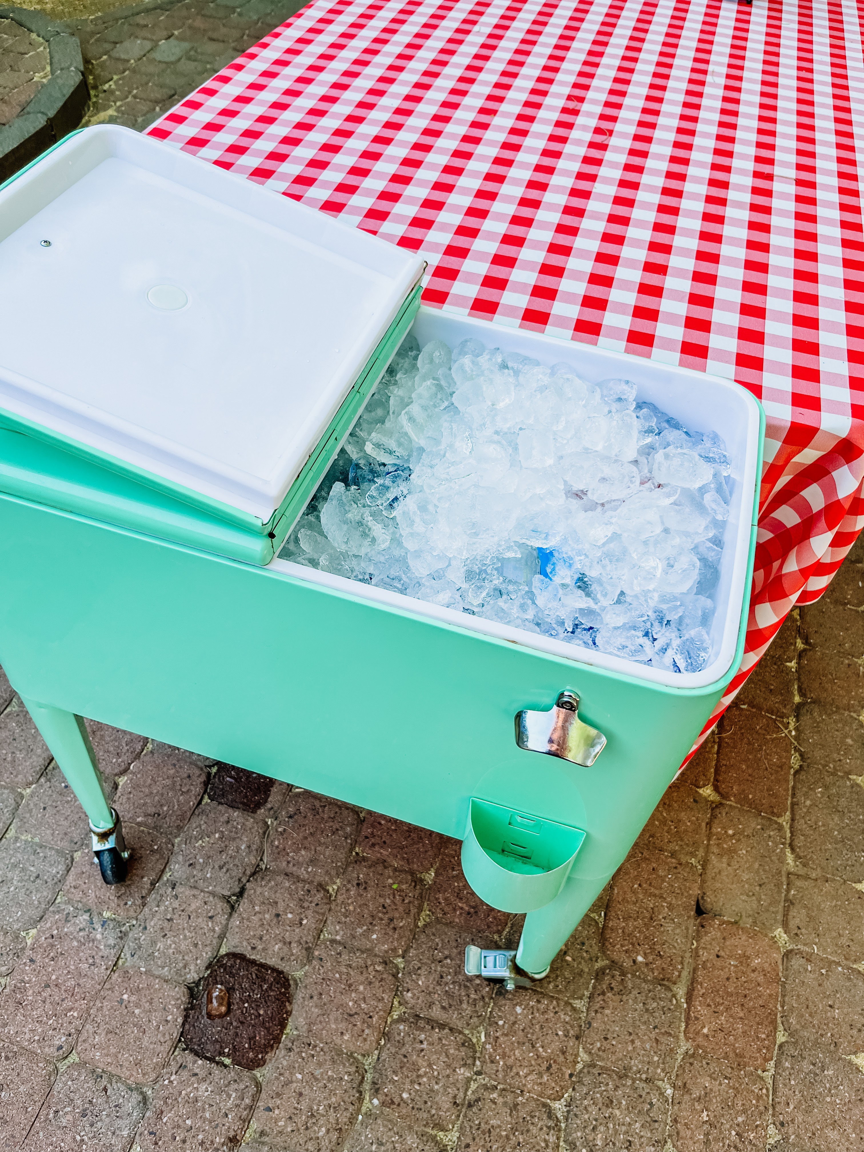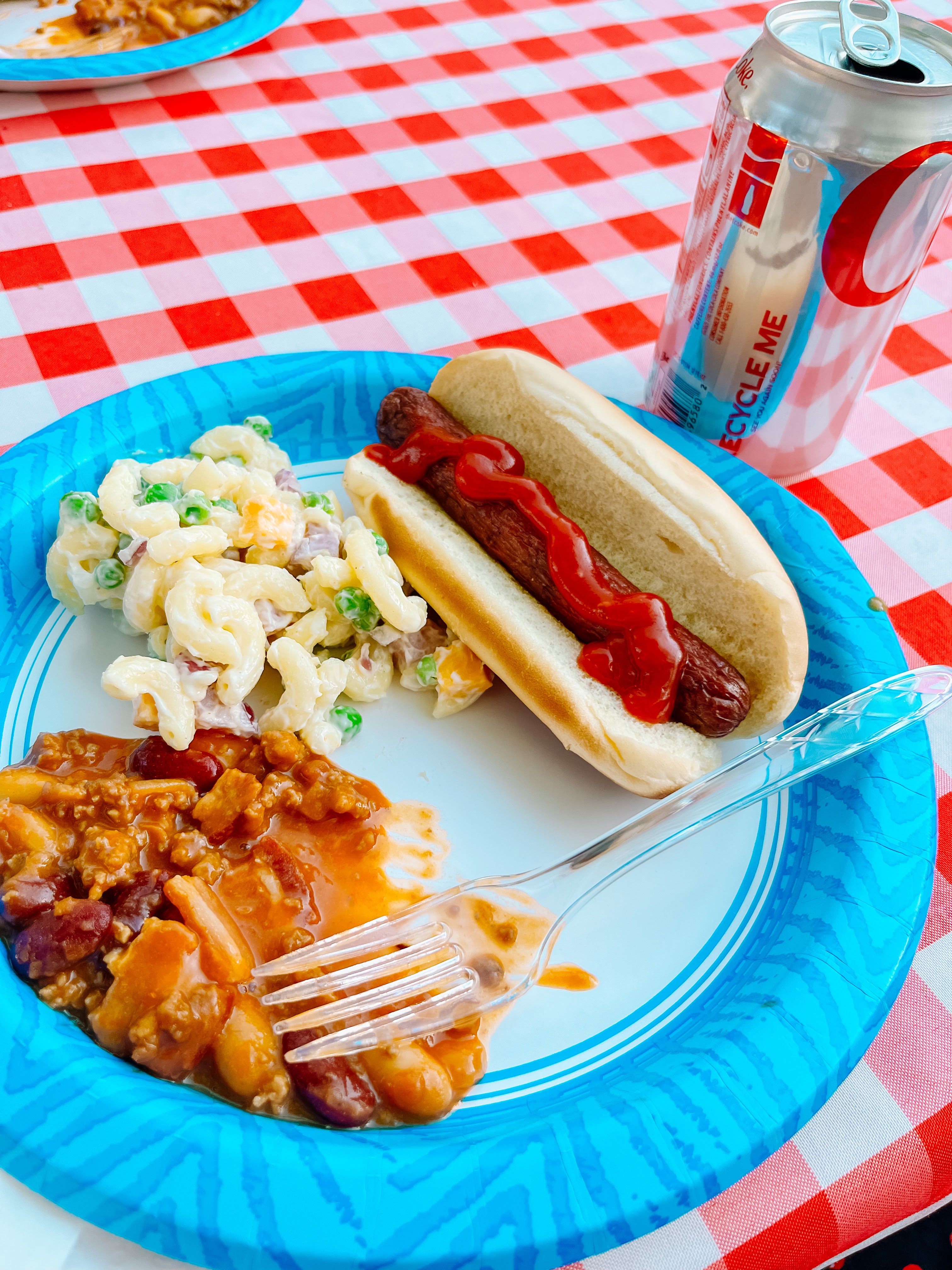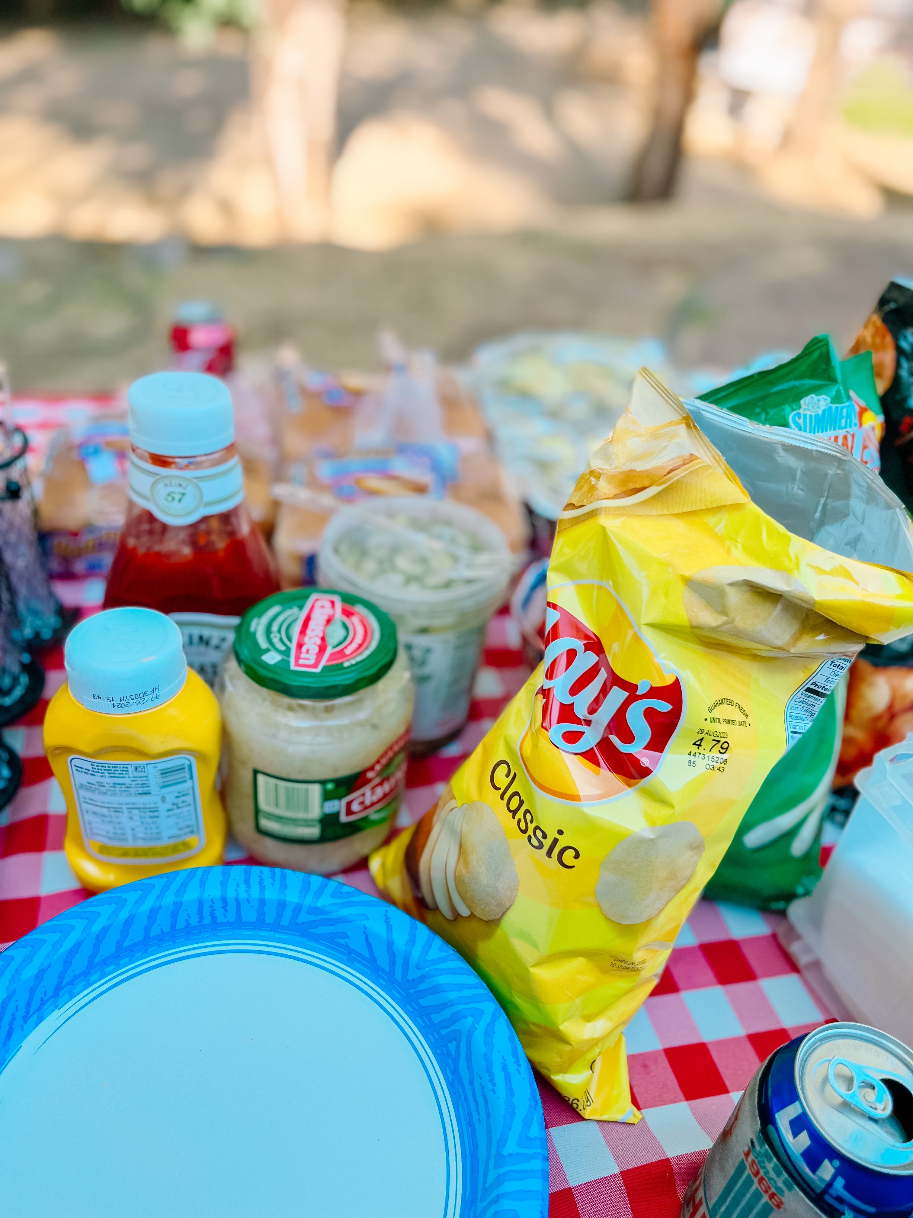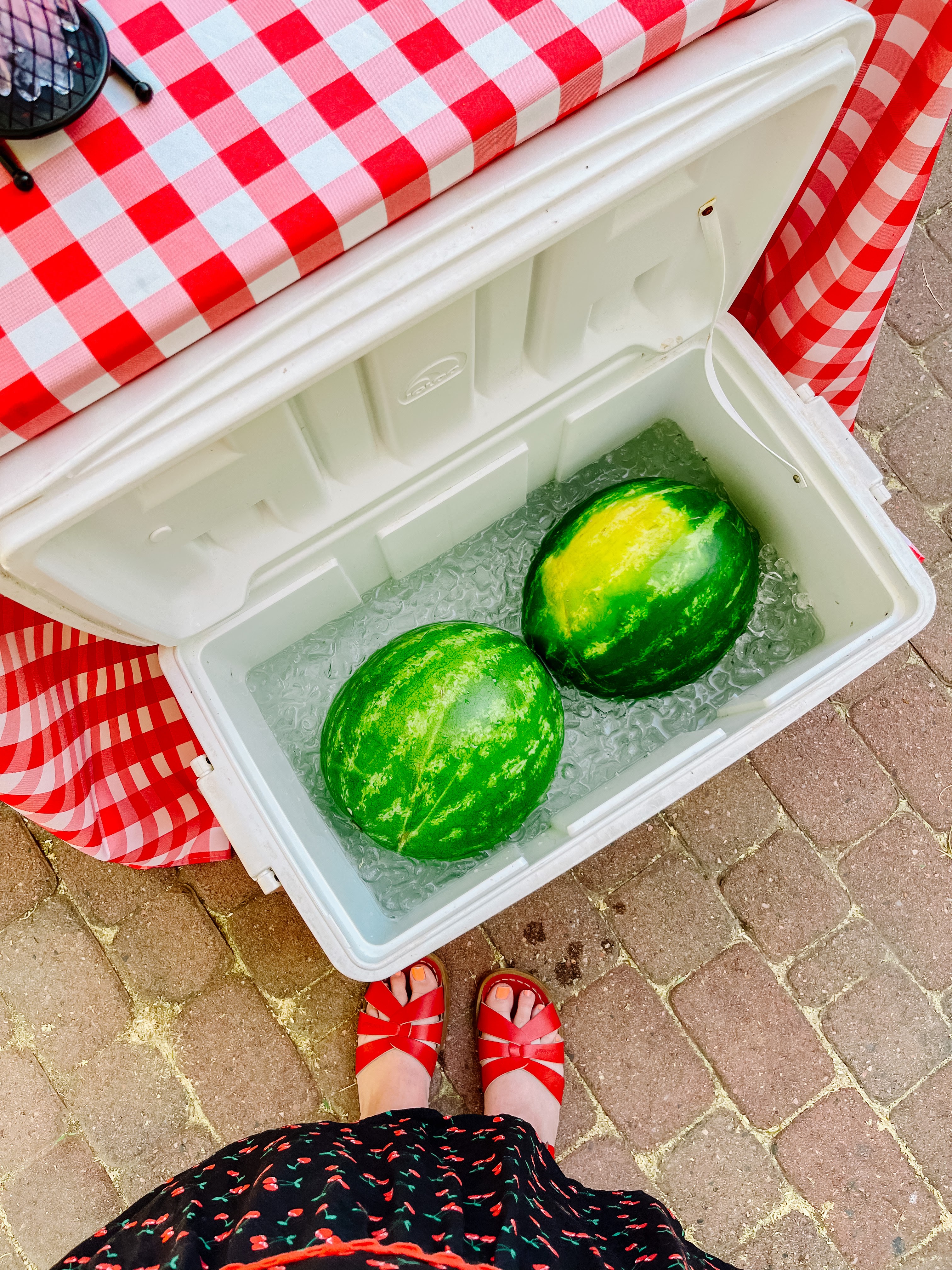 We threw some burgers and hot dogs on David’s Pitt Boss and cut up a big ole’ watermelon and laid out red gingham tablecloths.