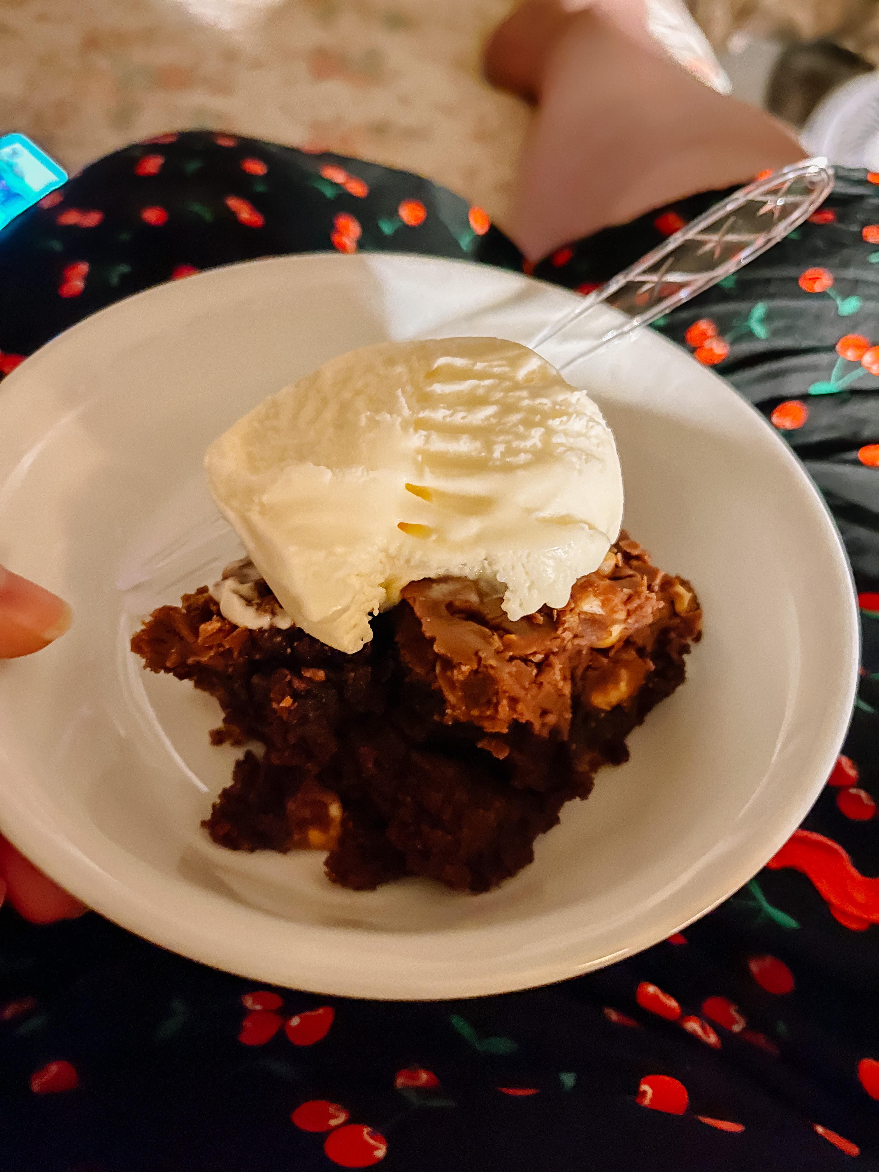 I ended the night by cutting into the Coca Cola chocolate cake that I like to make every year for the 4th of July. Plop a big scoop of vanilla ice cream onto your gooey cake and you’re golden.