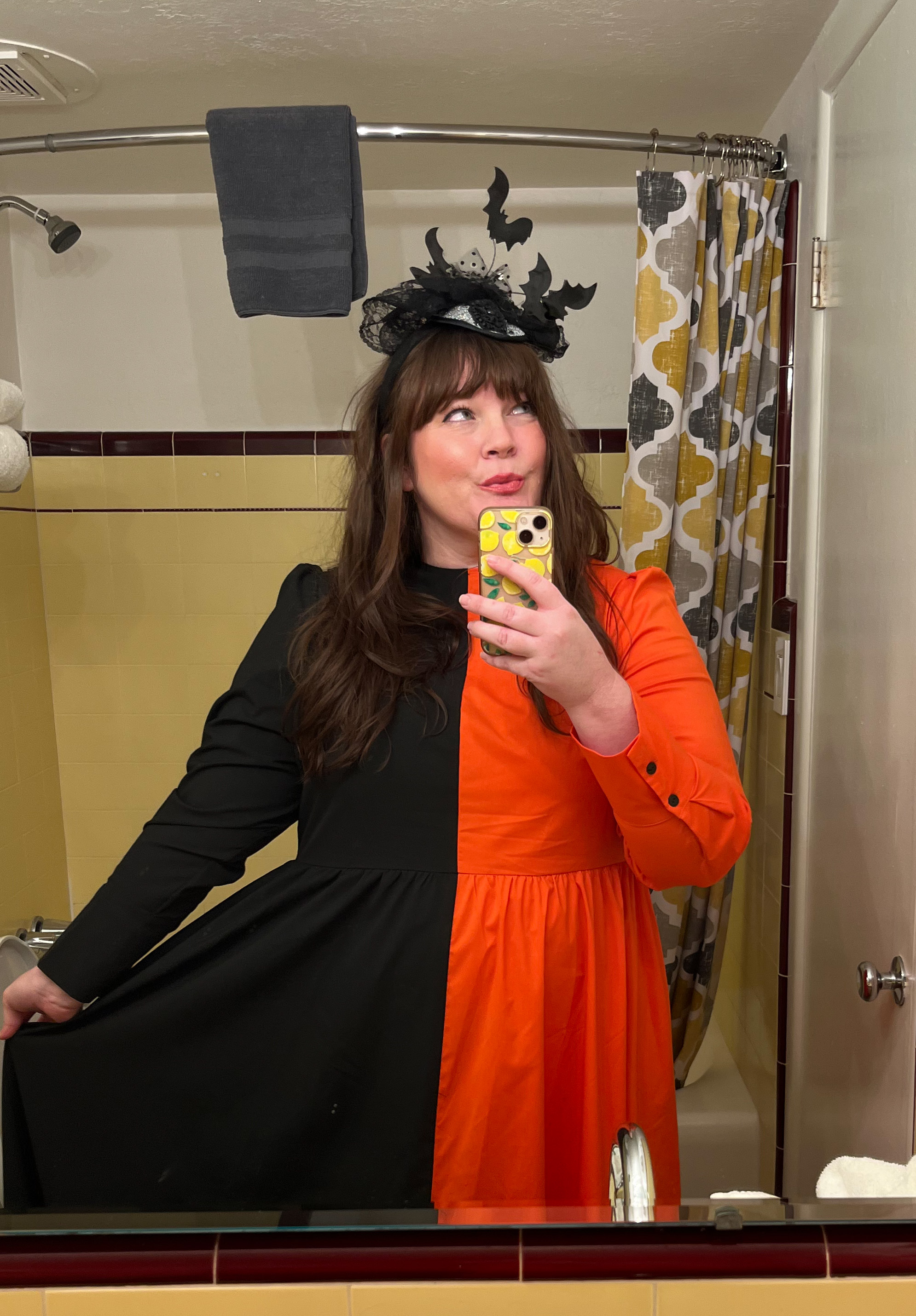 Okaaaaay, the Halloween clothes from Unique Vintage have been getting better and better every year. I instantly saw this orange/black nearly floor length dress and knew I HAD to have it. It will forever be my ghostess with the mostest dress LOL.
