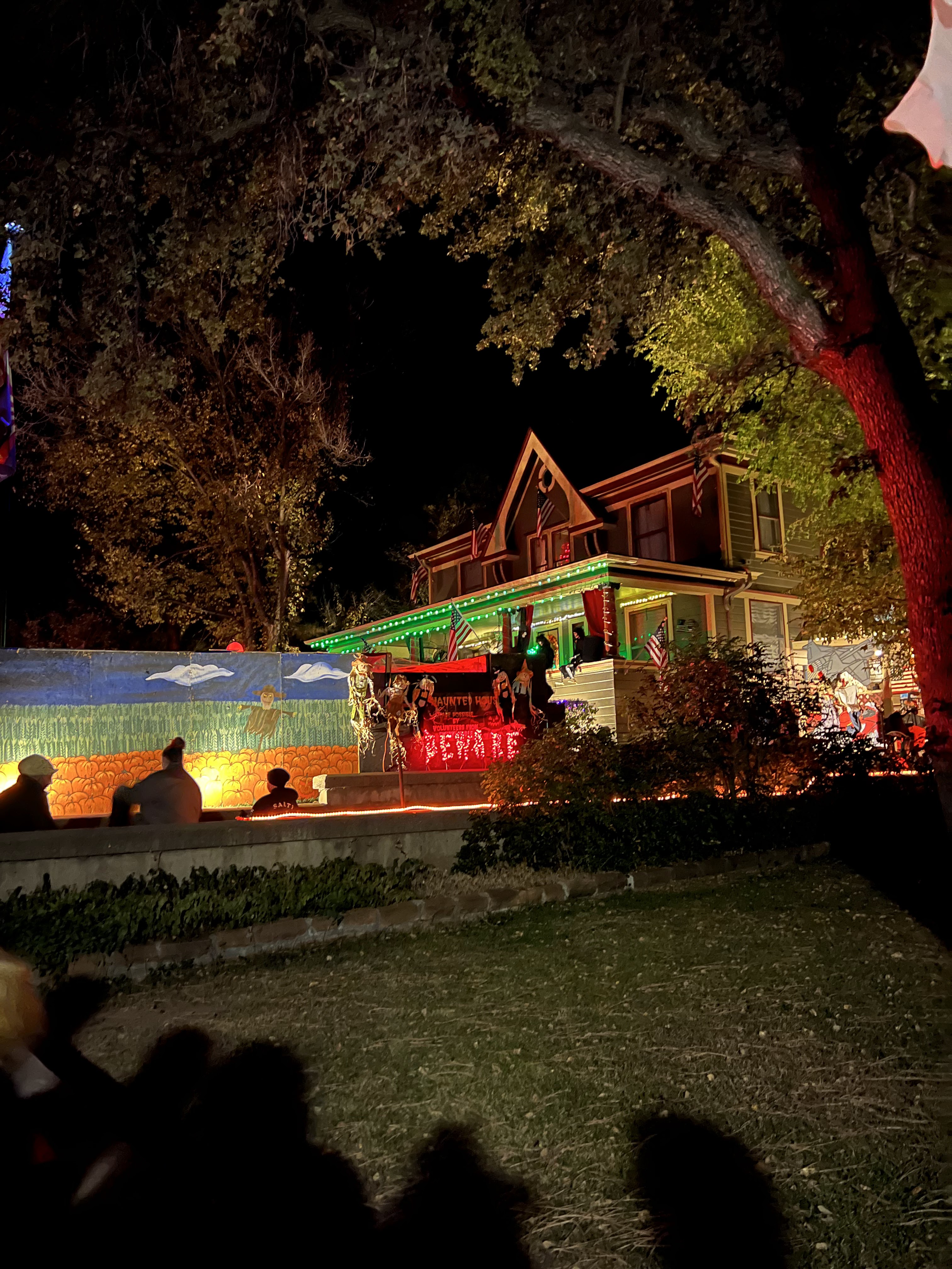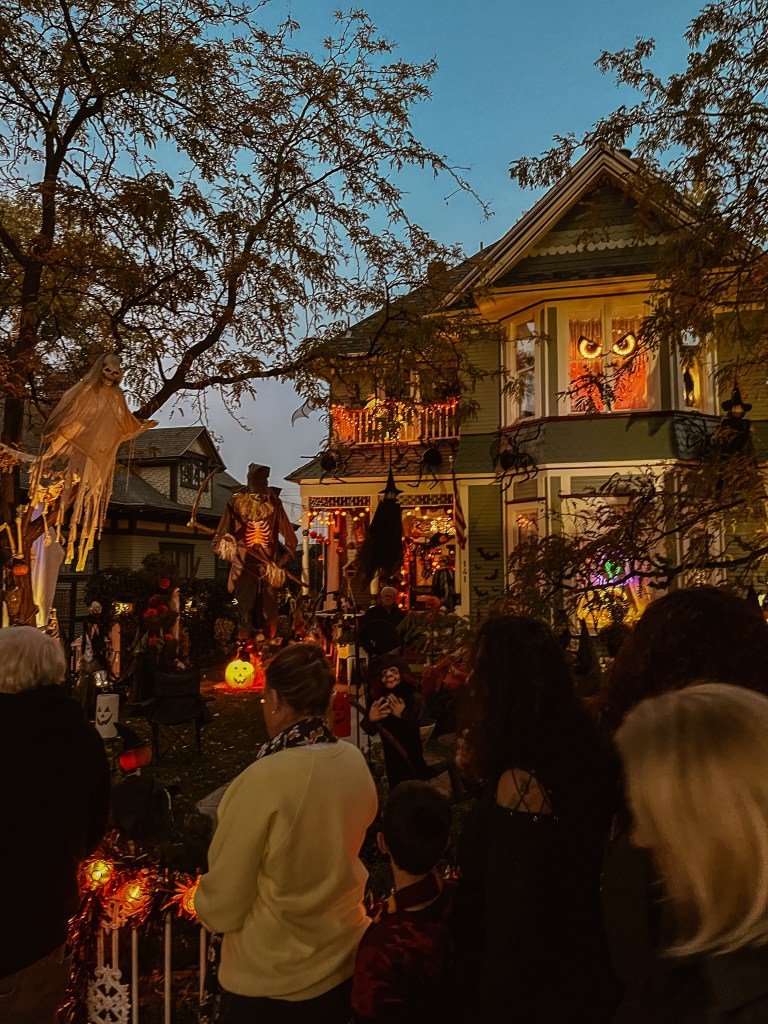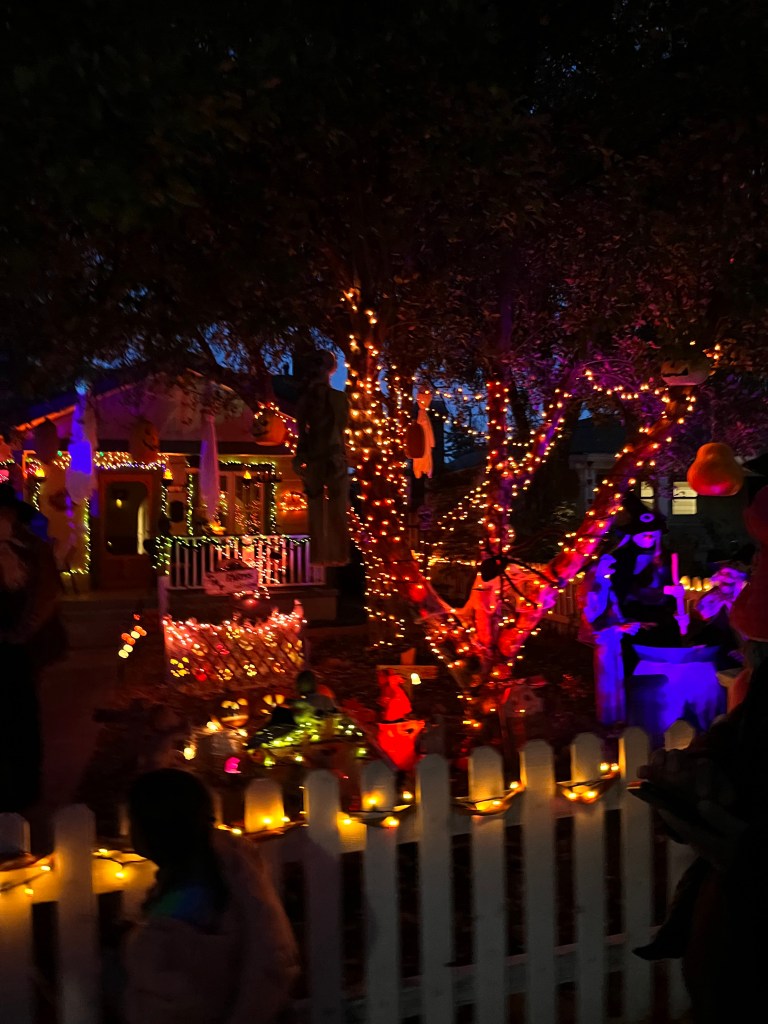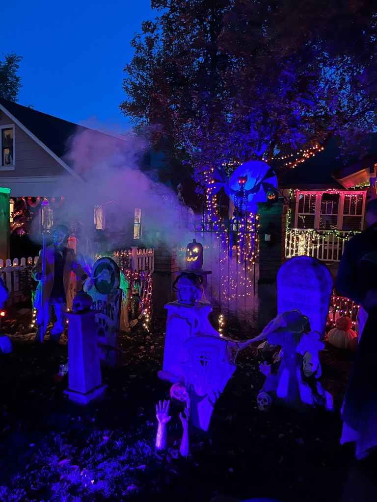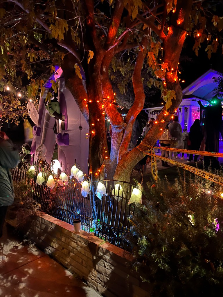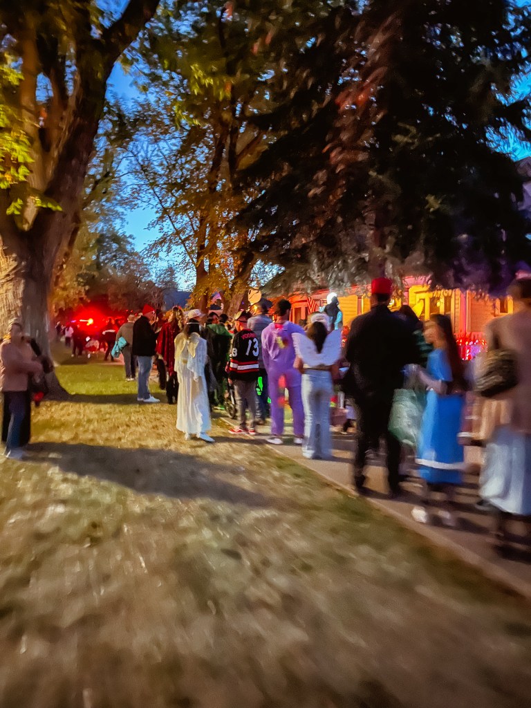 This home every year puts a haunted house in their front lawn. It’s rather sophisticated for a home grown haunted house. There’s a giant maze, complete with flickering lights and they recruit students from the local college to dress up to jump out and scare guests. The line for this haunted house was ENORMOUS. But it was totally free! We waited forever but it was SO worth it.