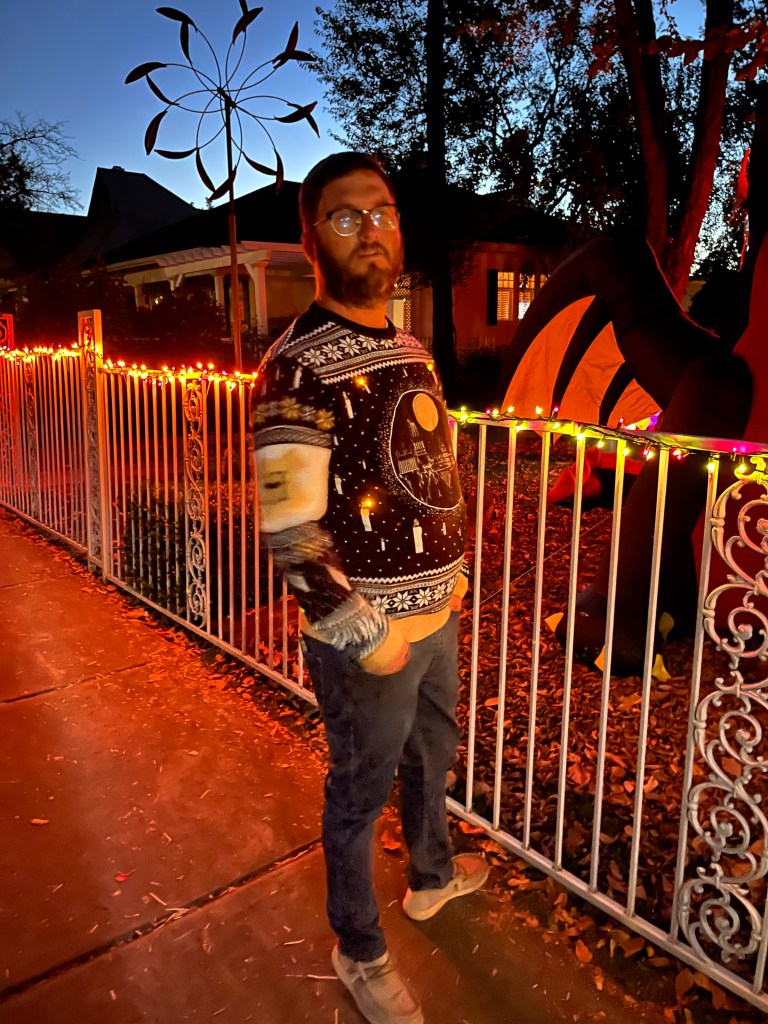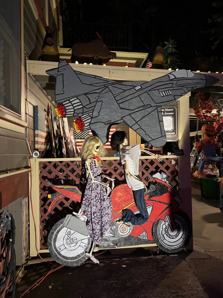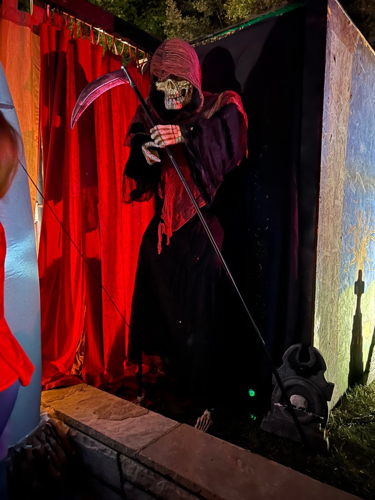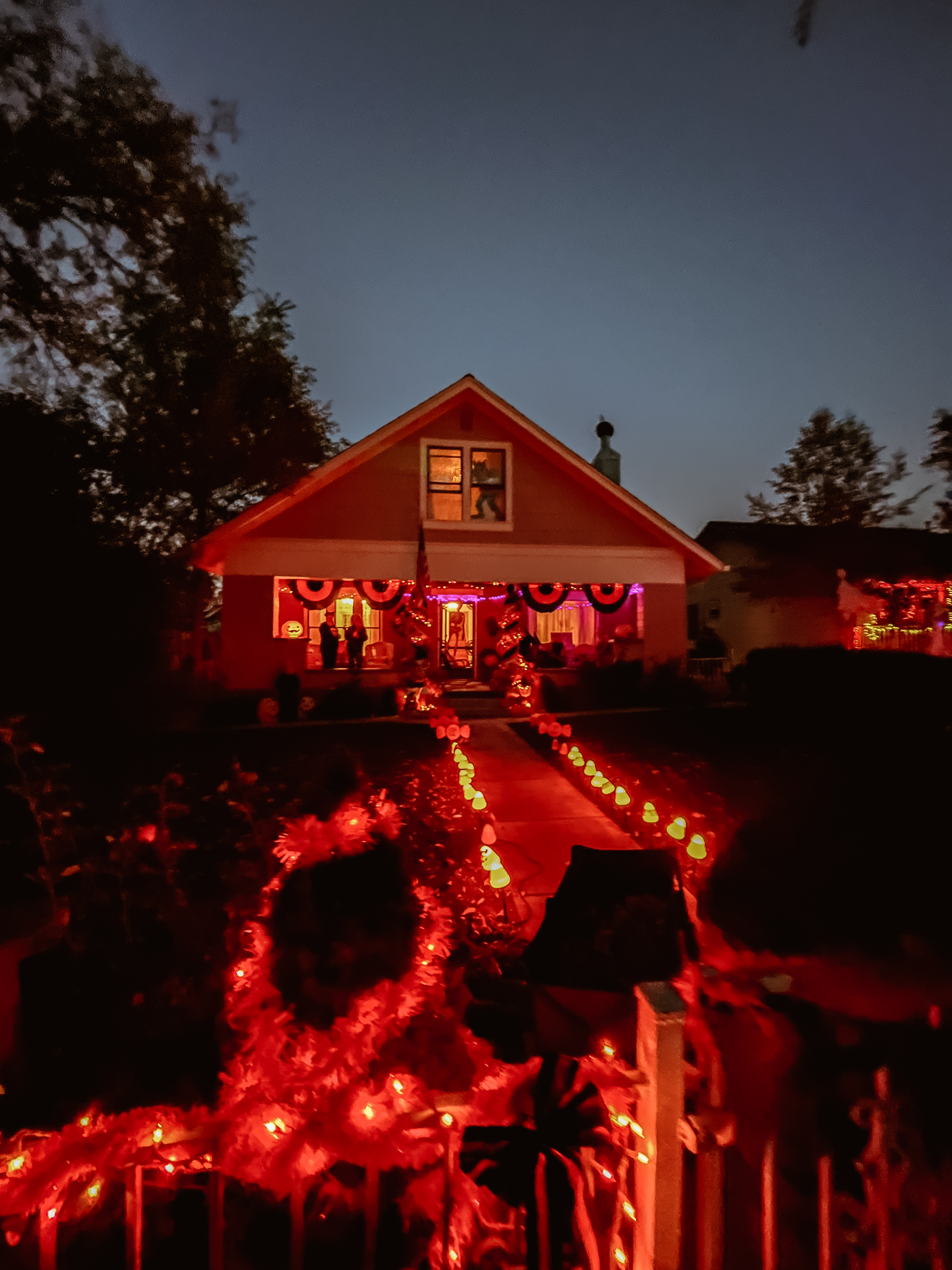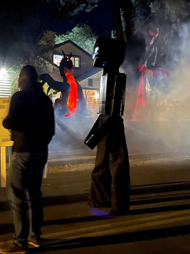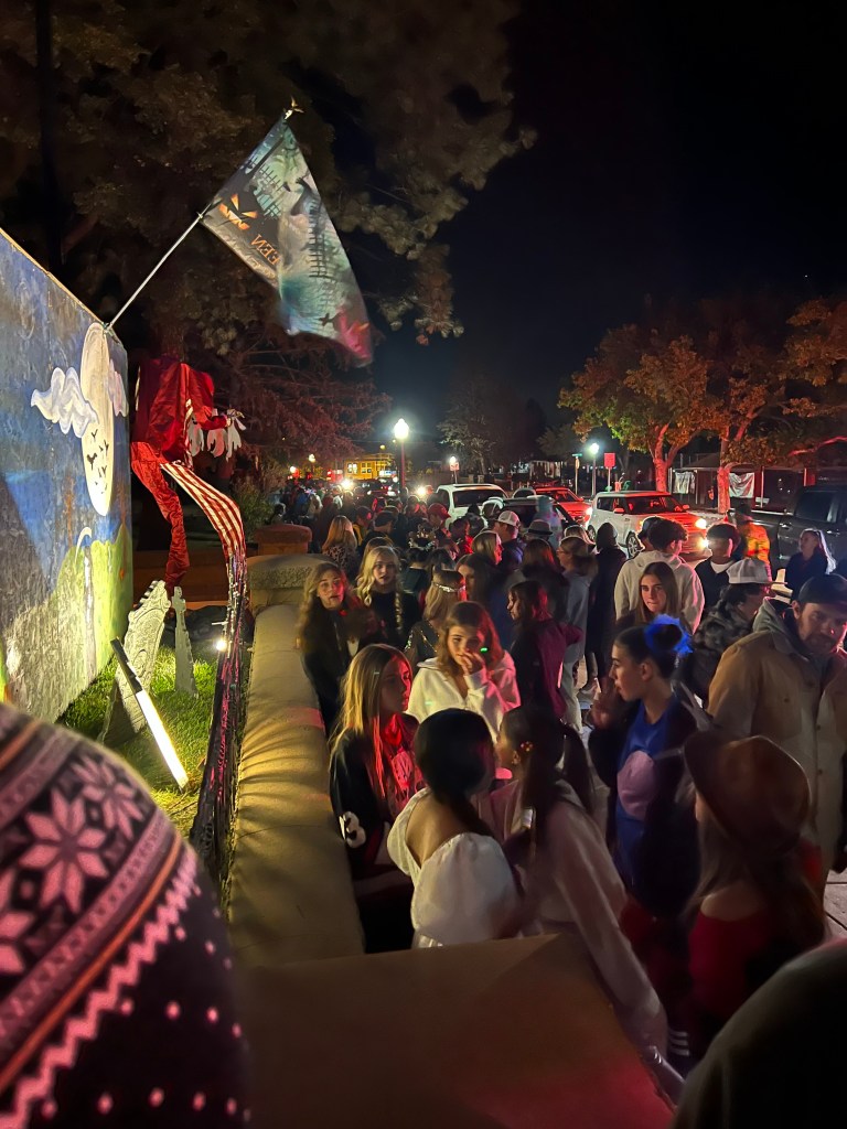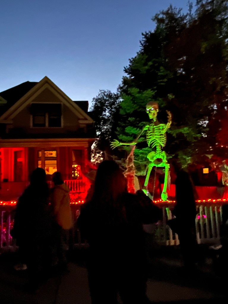This home every year puts a haunted house in their front lawn. It’s rather sophisticated for a home grown haunted house. There’s a giant maze, complete with flickering lights and they recruit students from the local college to dress up to jump out and scare guests. The line for this haunted house was ENORMOUS. But it was totally free! We waited forever but it was SO worth it.