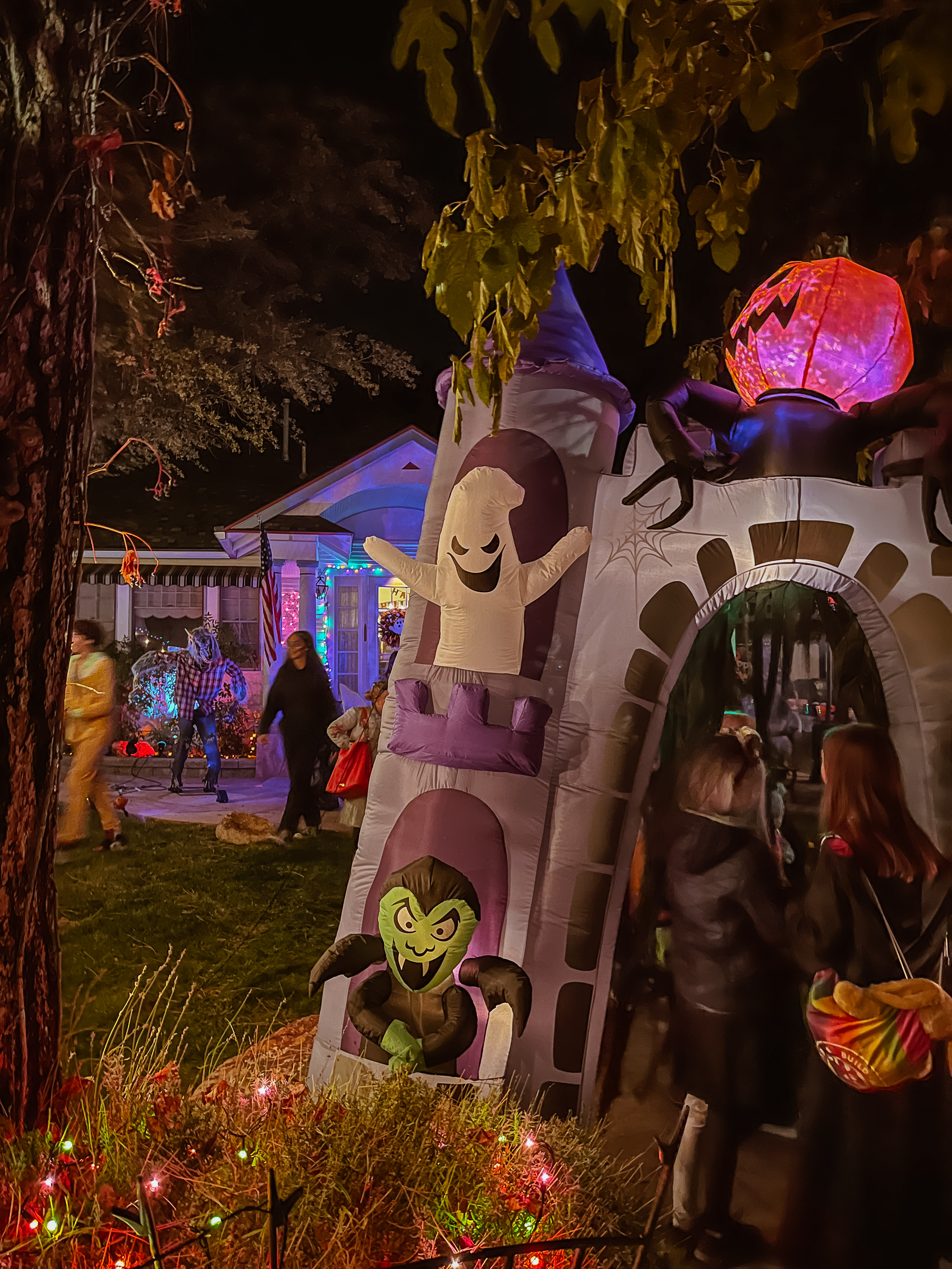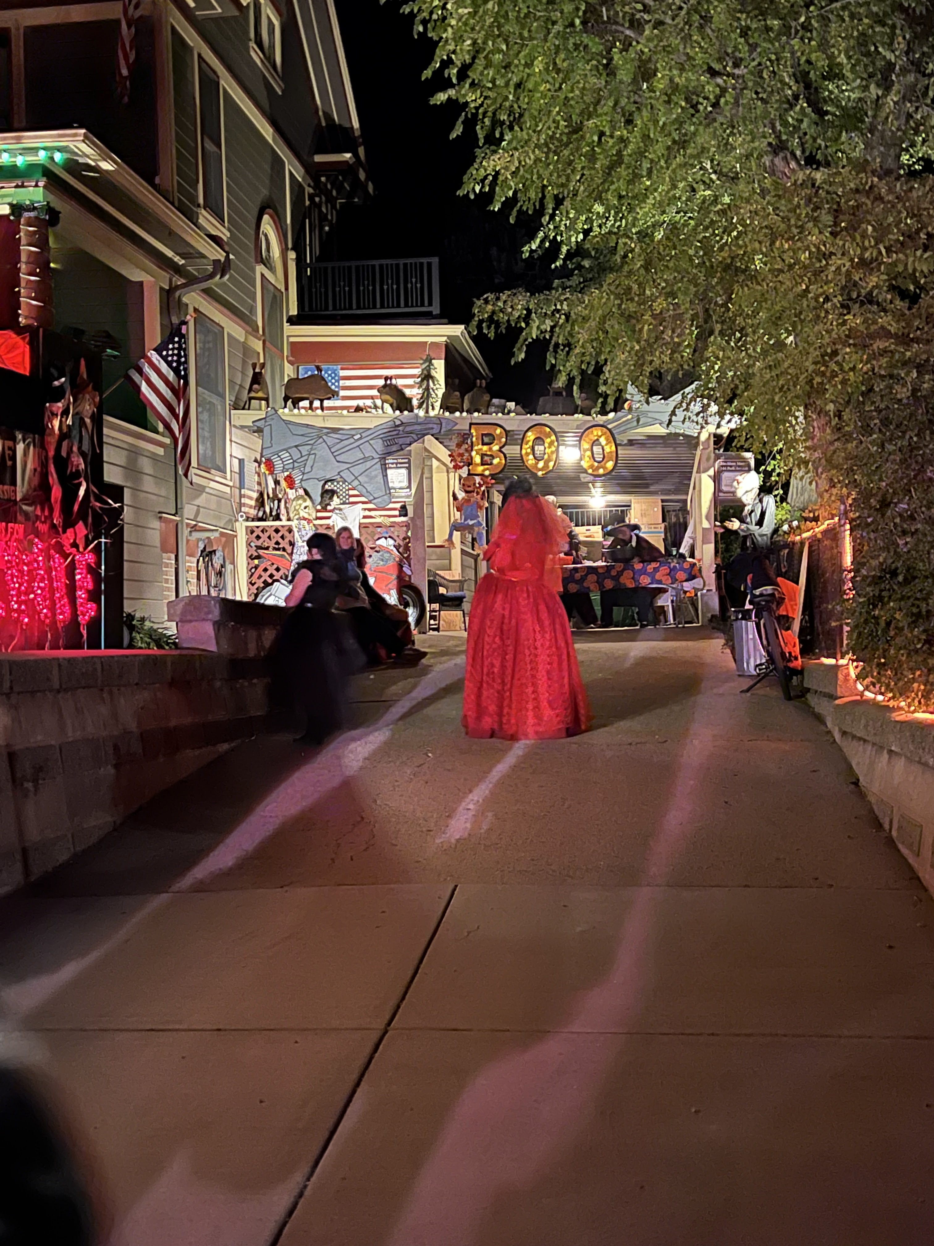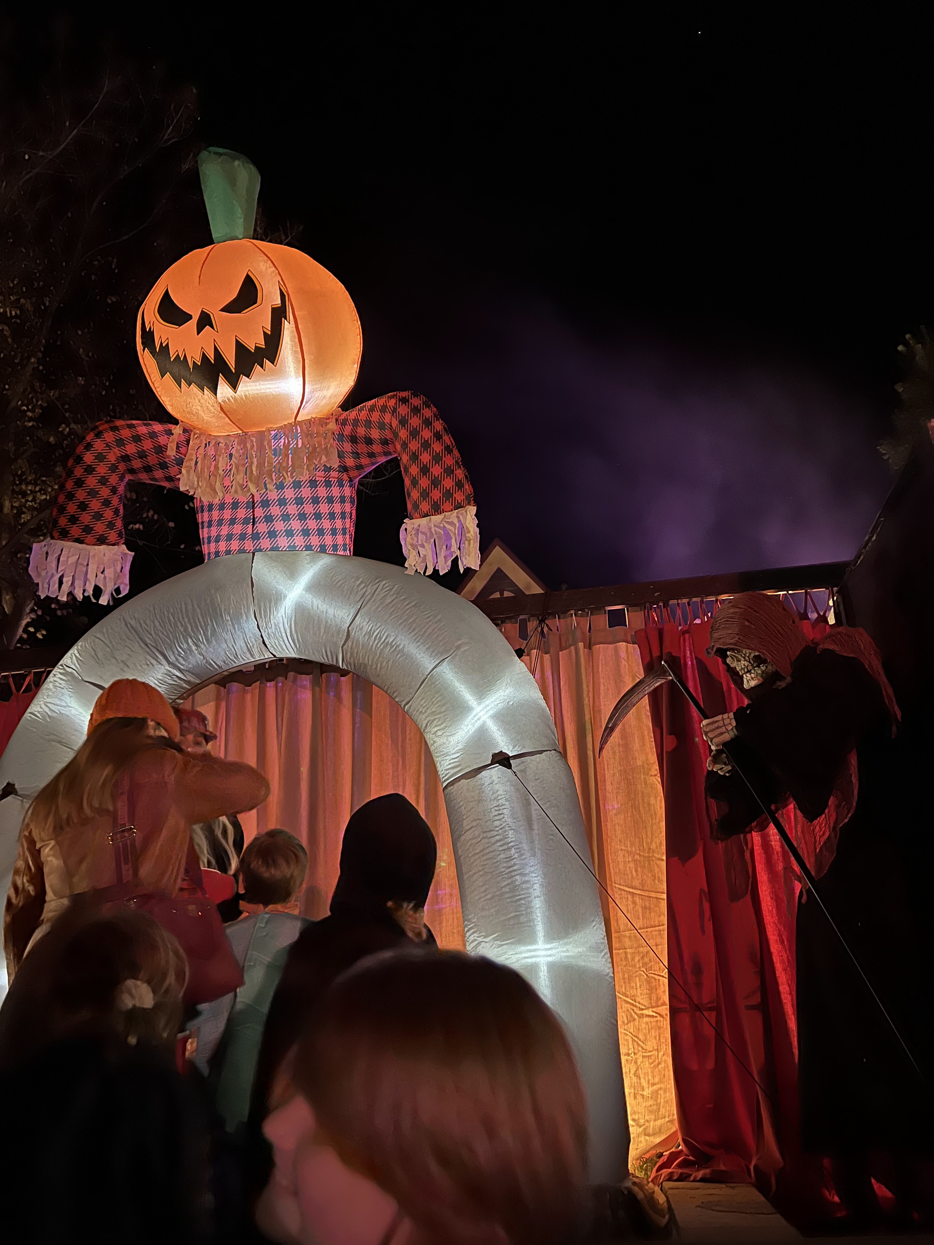 This home every year puts a haunted house in their front lawn. It’s rather sophisticated for a home grown haunted house. There’s a giant maze, complete with flickering lights and they recruit students from the local college to dress up to jump out and scare guests. The line for this haunted house was ENORMOUS. But it was totally free! We waited forever but it was SO worth it.