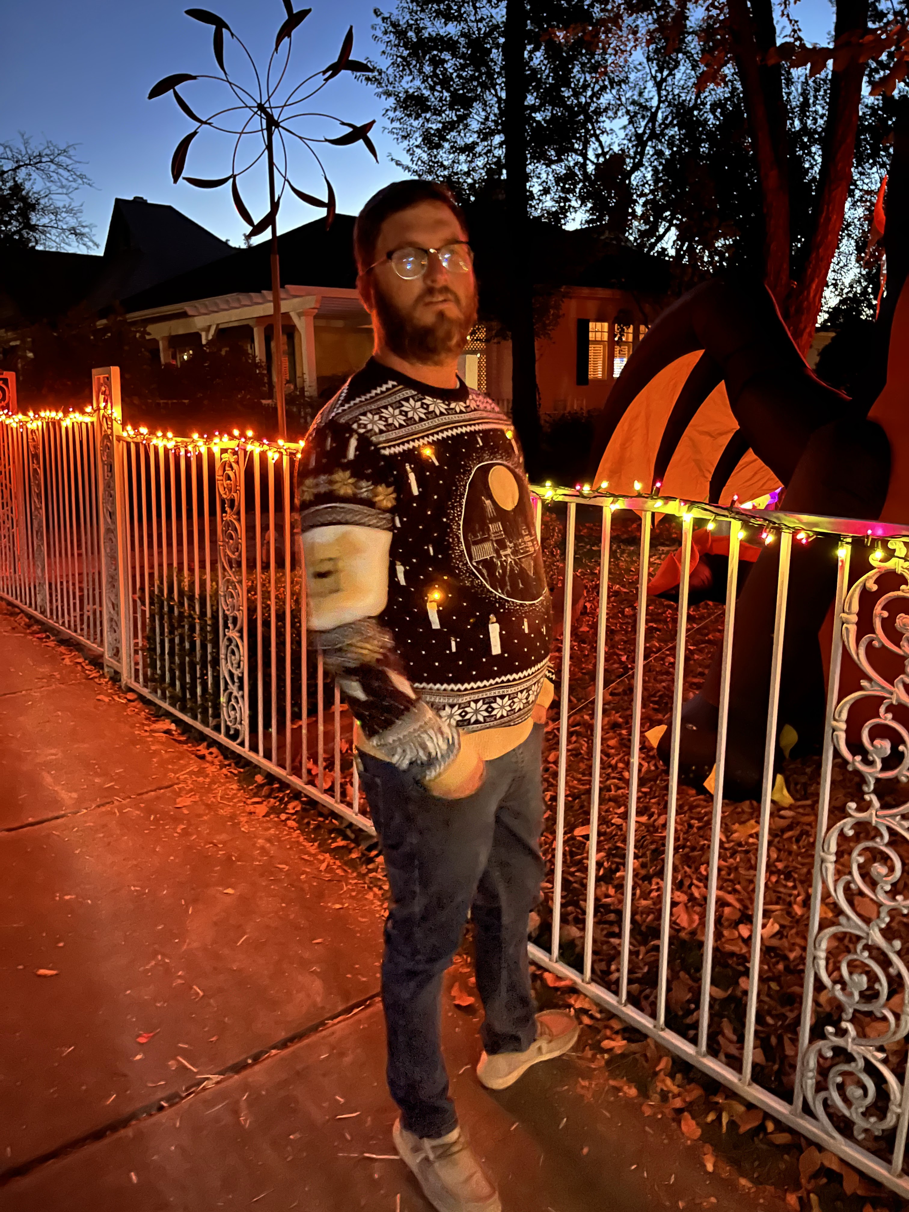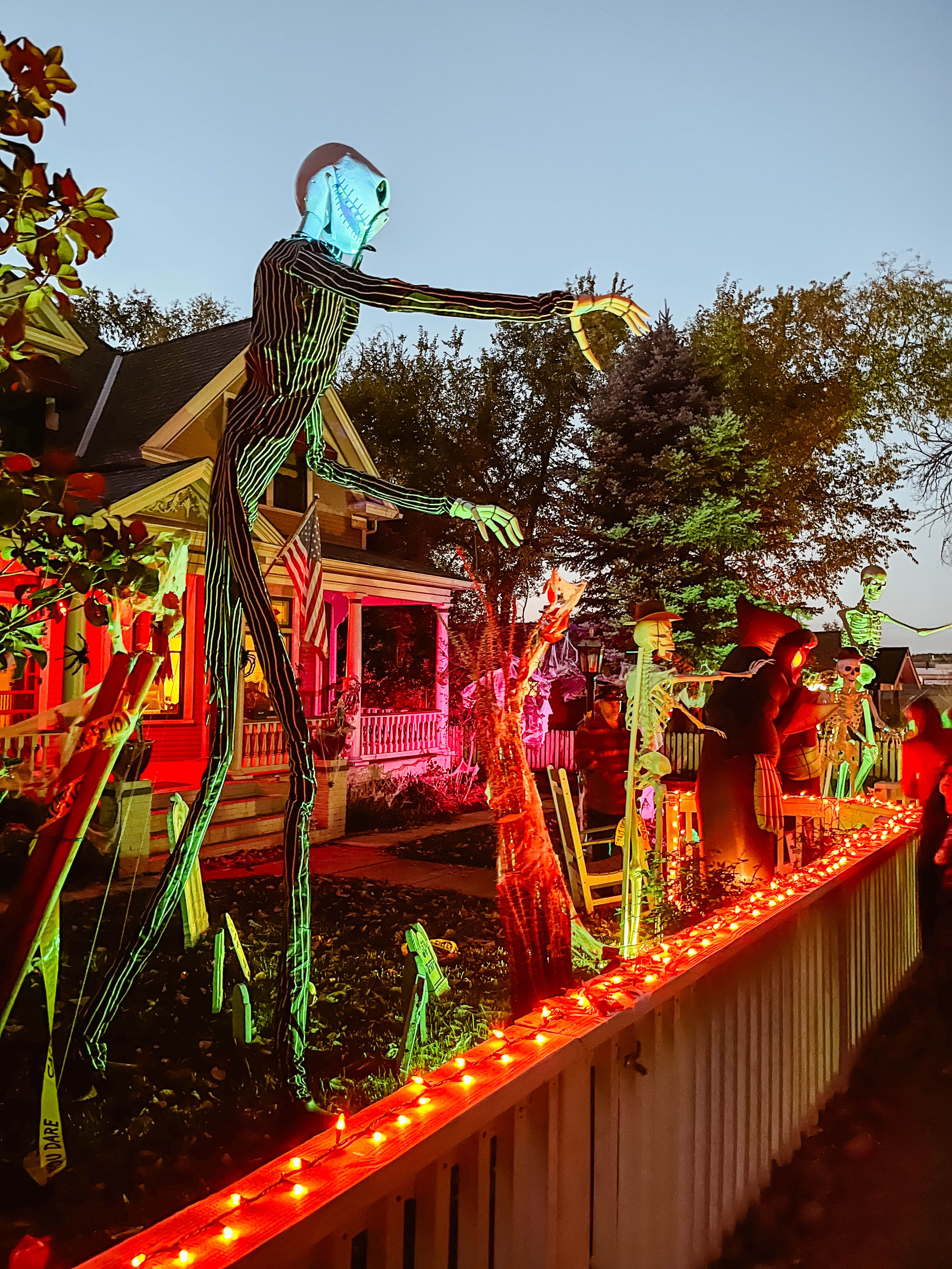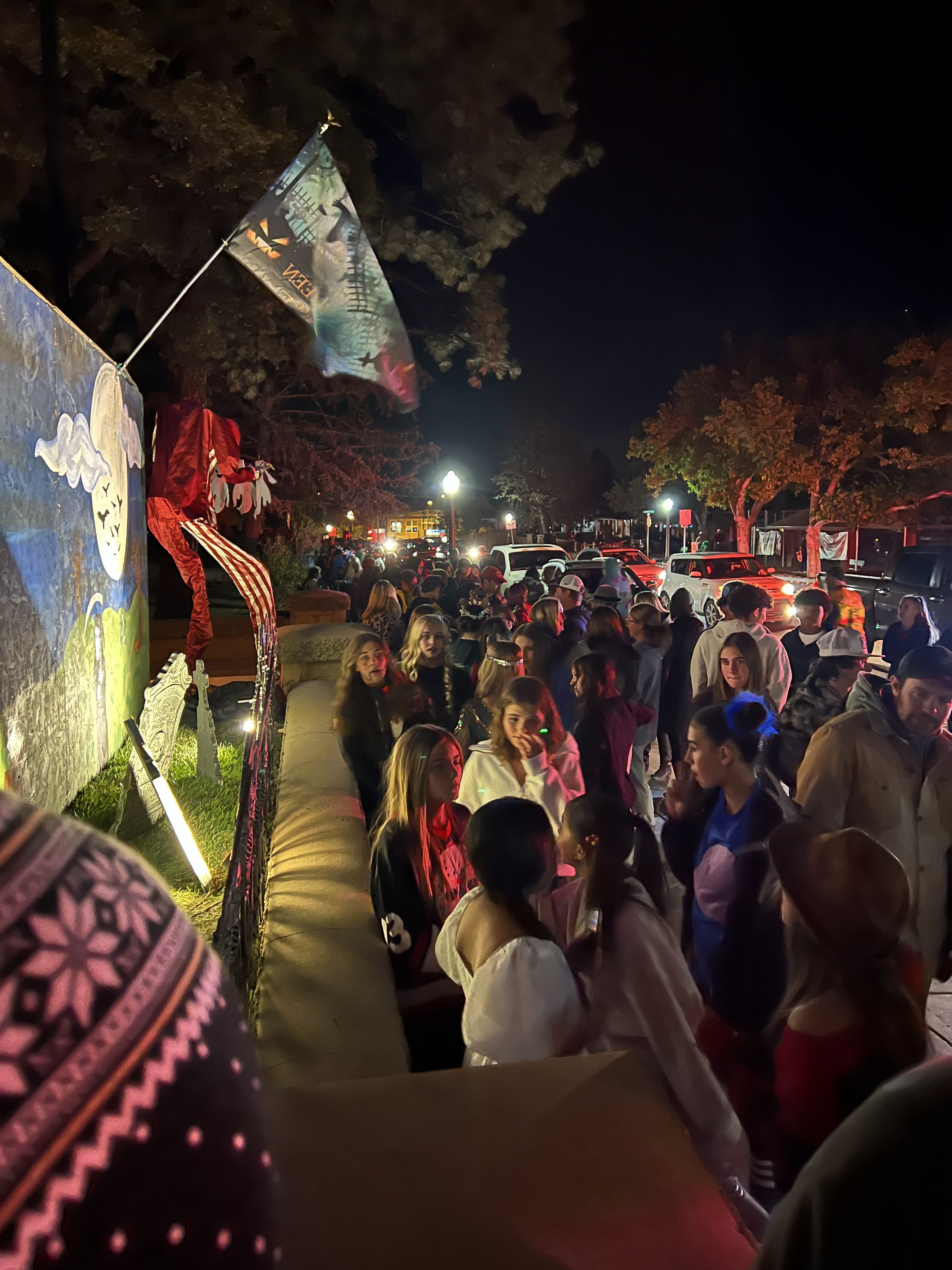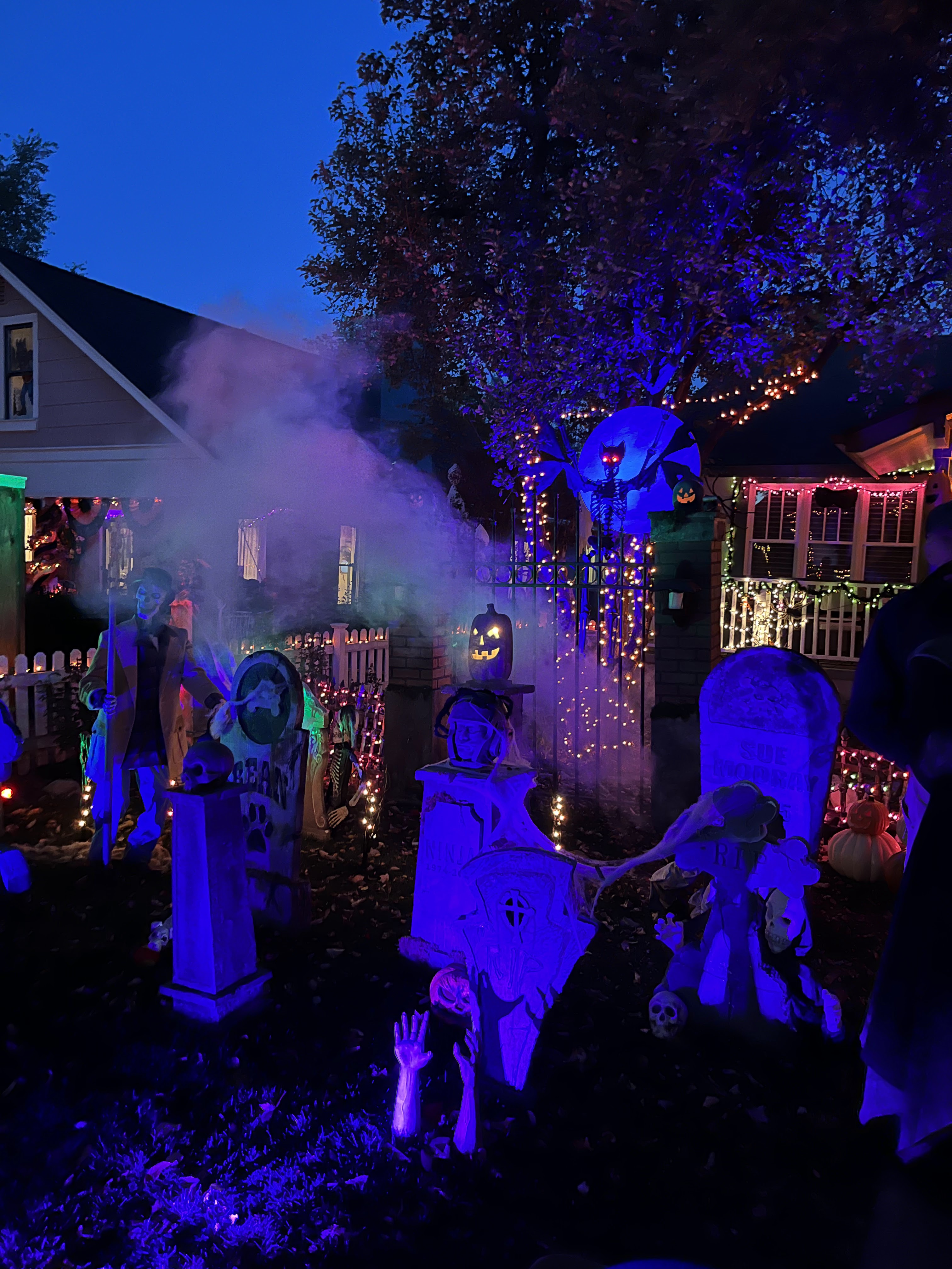 This home every year puts a haunted house in their front lawn. It’s rather sophisticated for a home grown haunted house. There’s a giant maze, complete with flickering lights and they recruit students from the local college to dress up to jump out and scare guests. The line for this haunted house was ENORMOUS. But it was totally free! We waited forever but it was SO worth it.